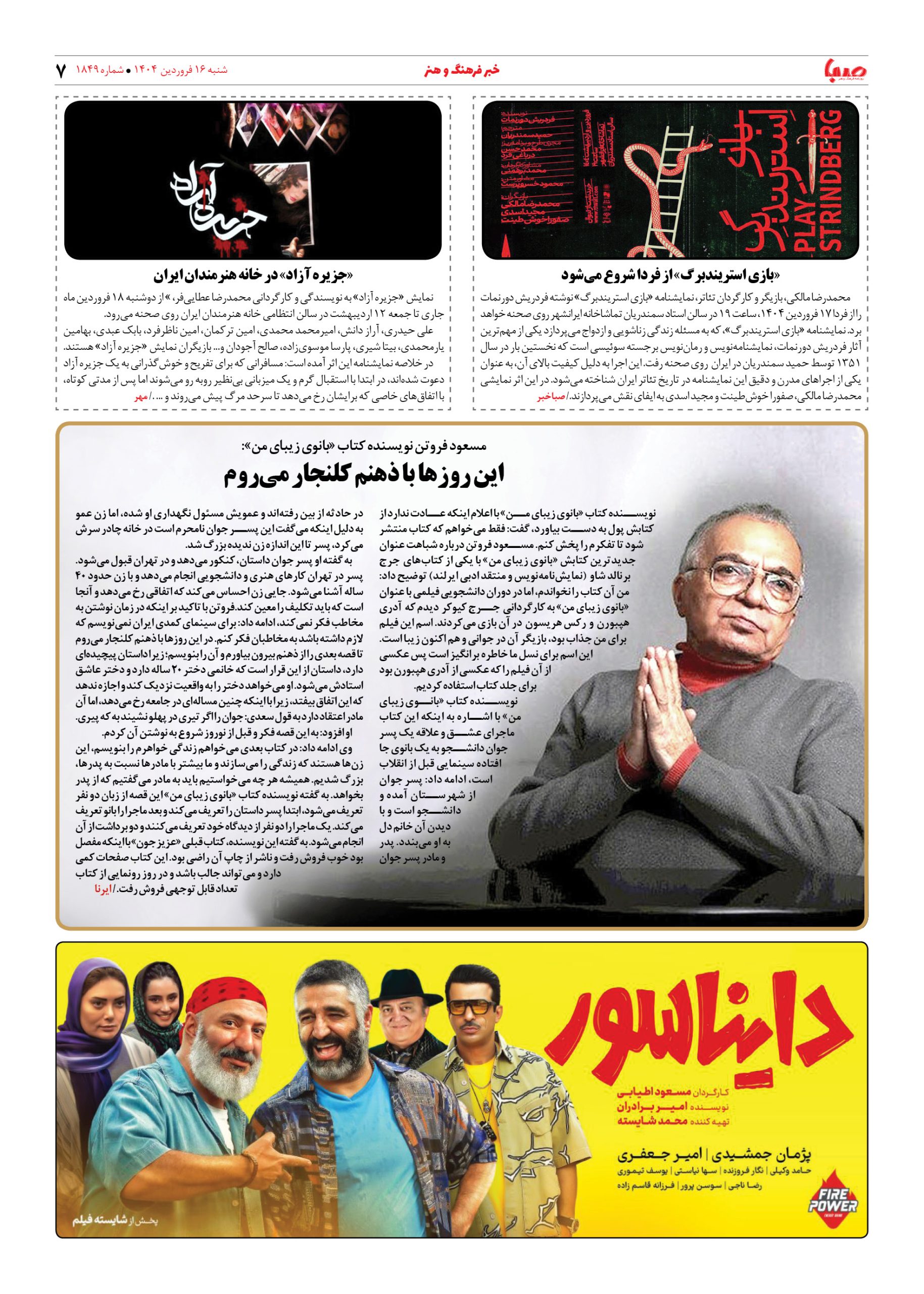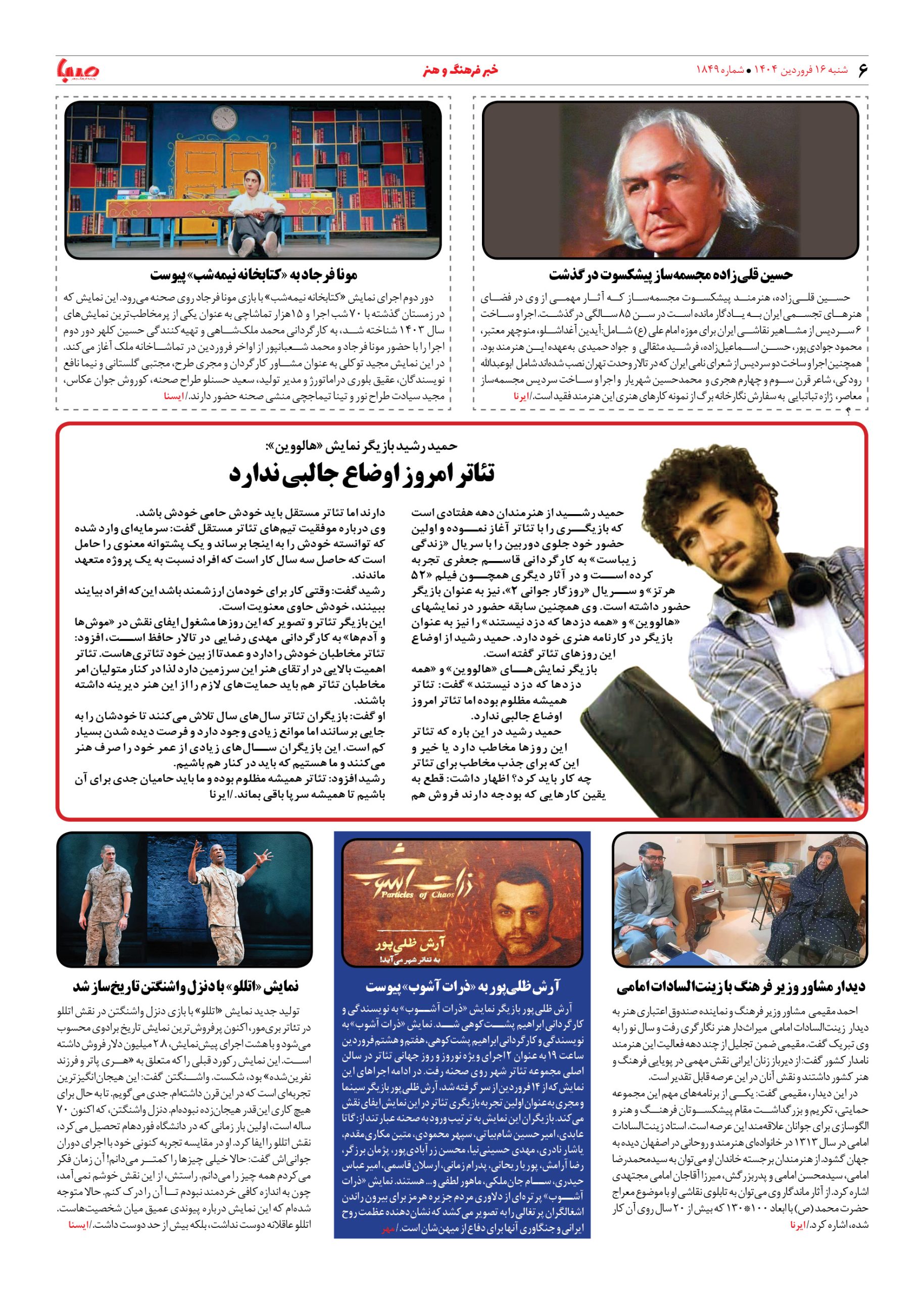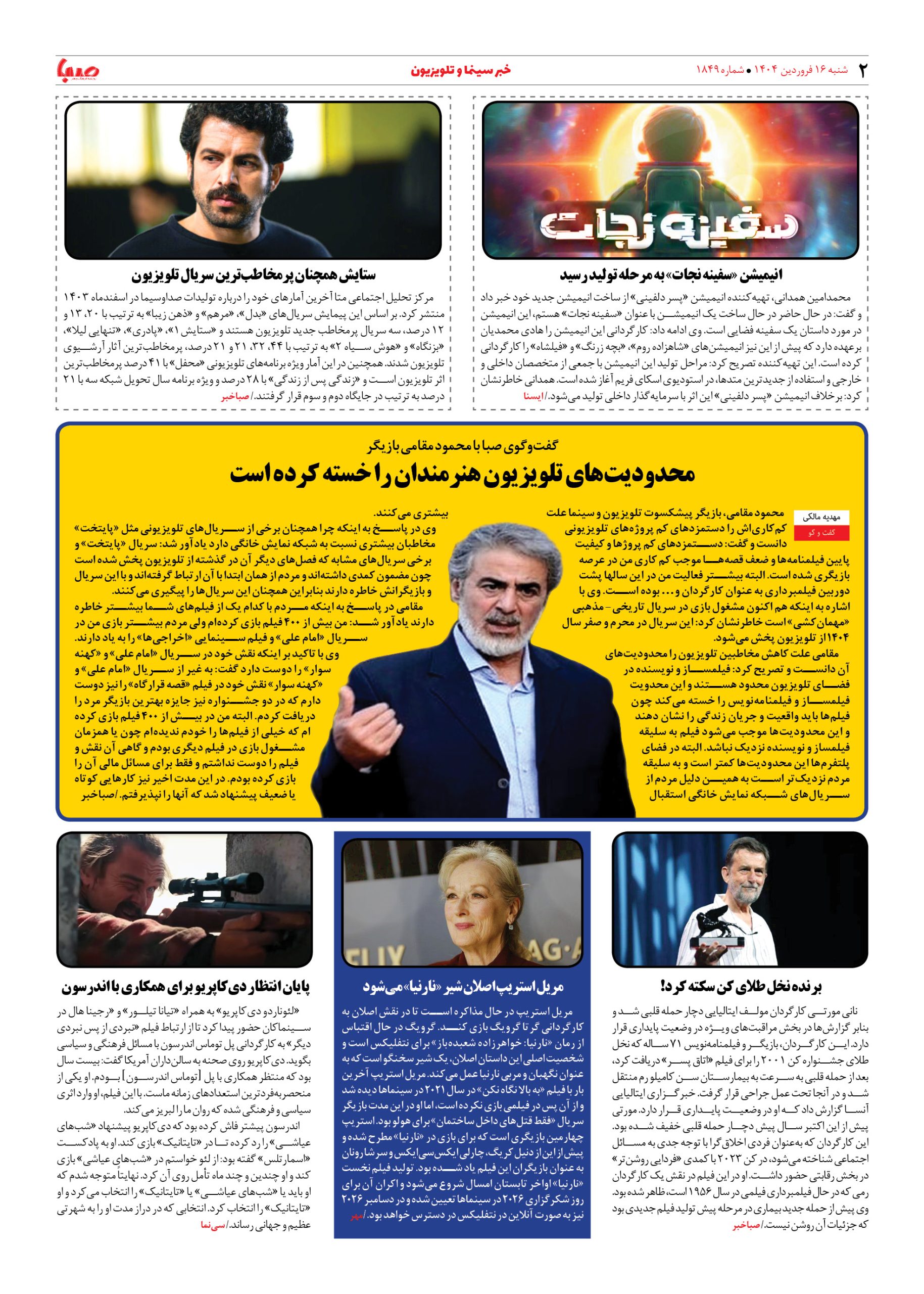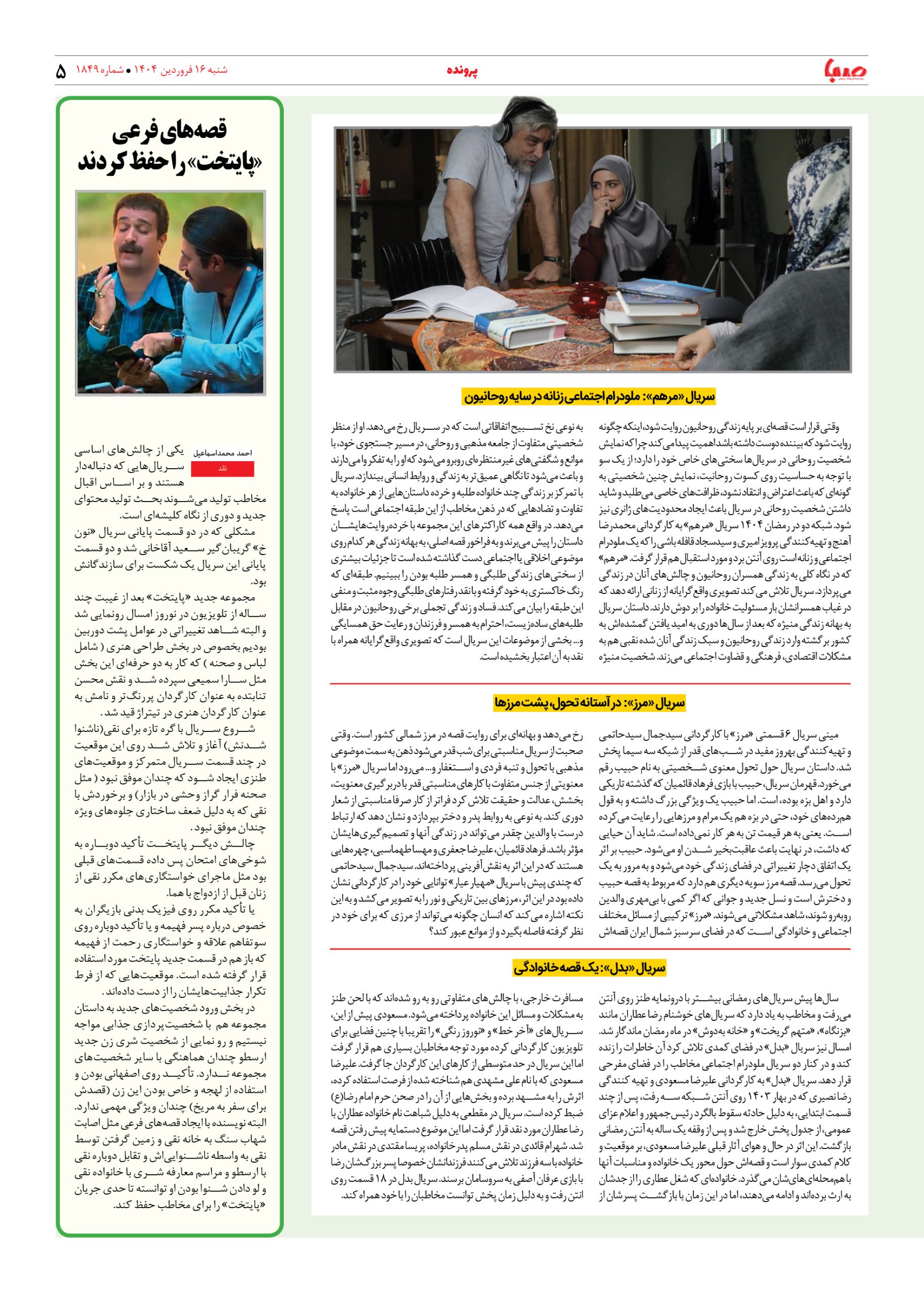 شماره ۱۸۴۹| روزنامه صبا شنبه ۱۶ فروردین ۱۴۰۴