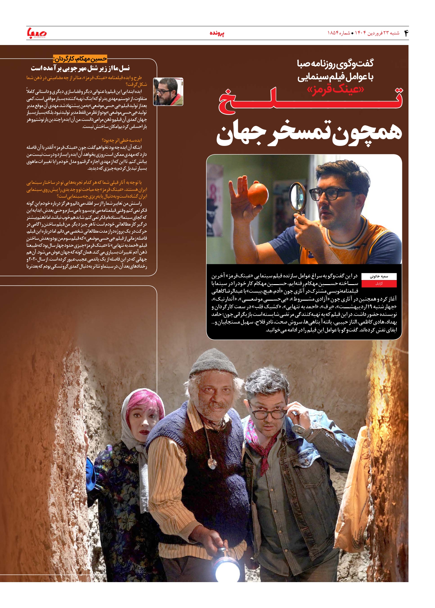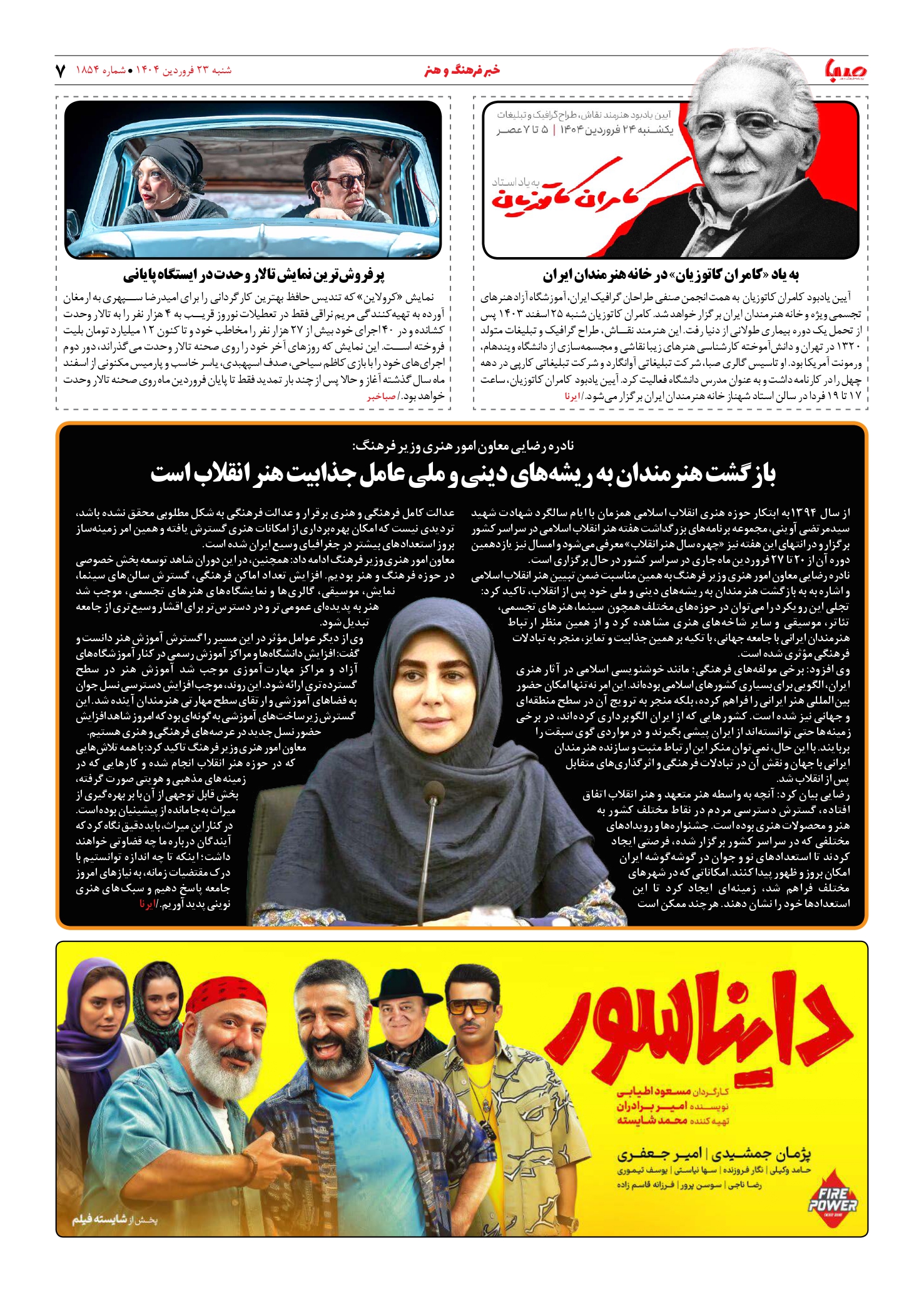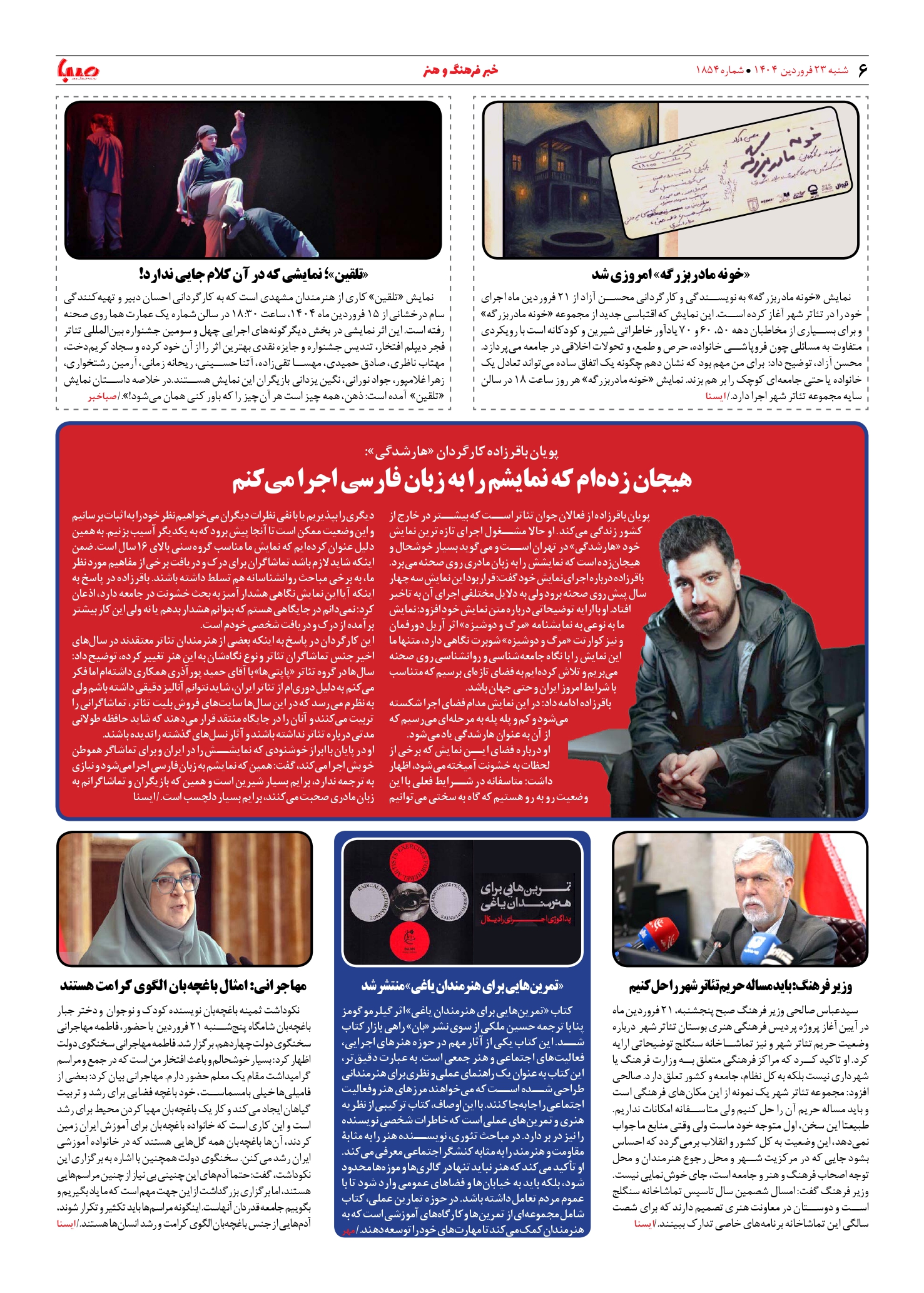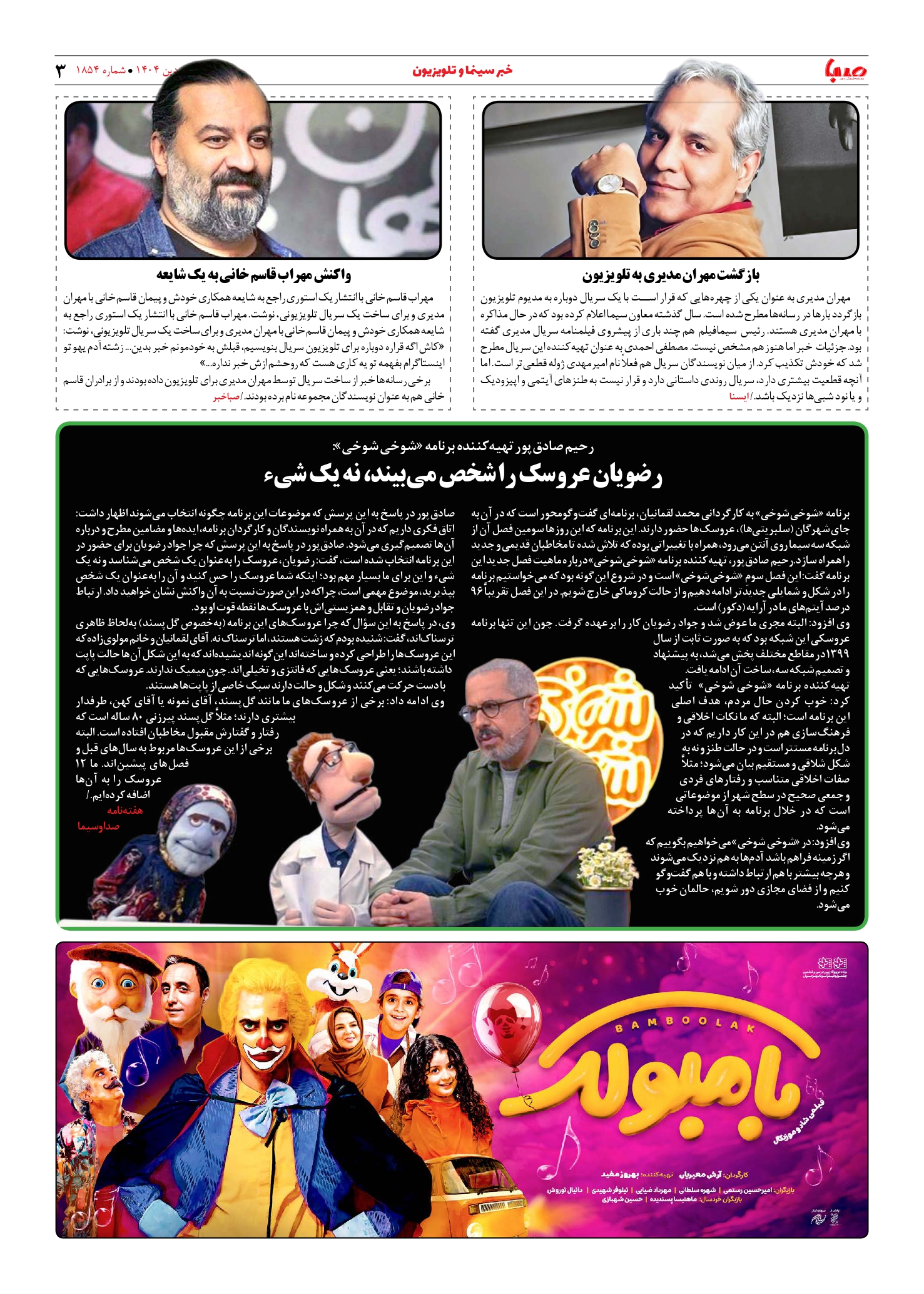 شماره ۱۸۵۴| روزنامه صبا شنبه ۲۳ فروردین ۱۴۰۴