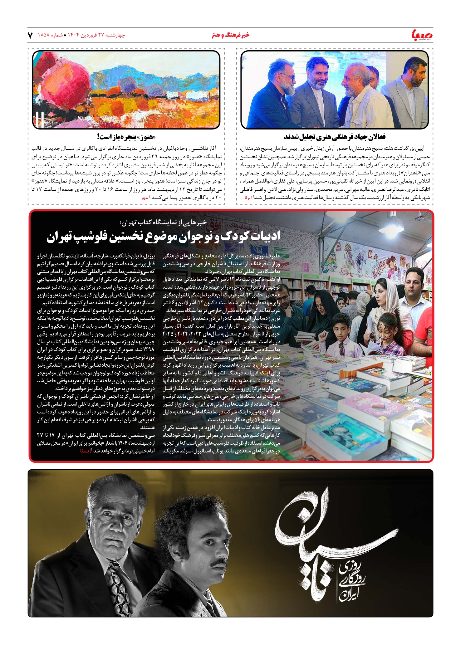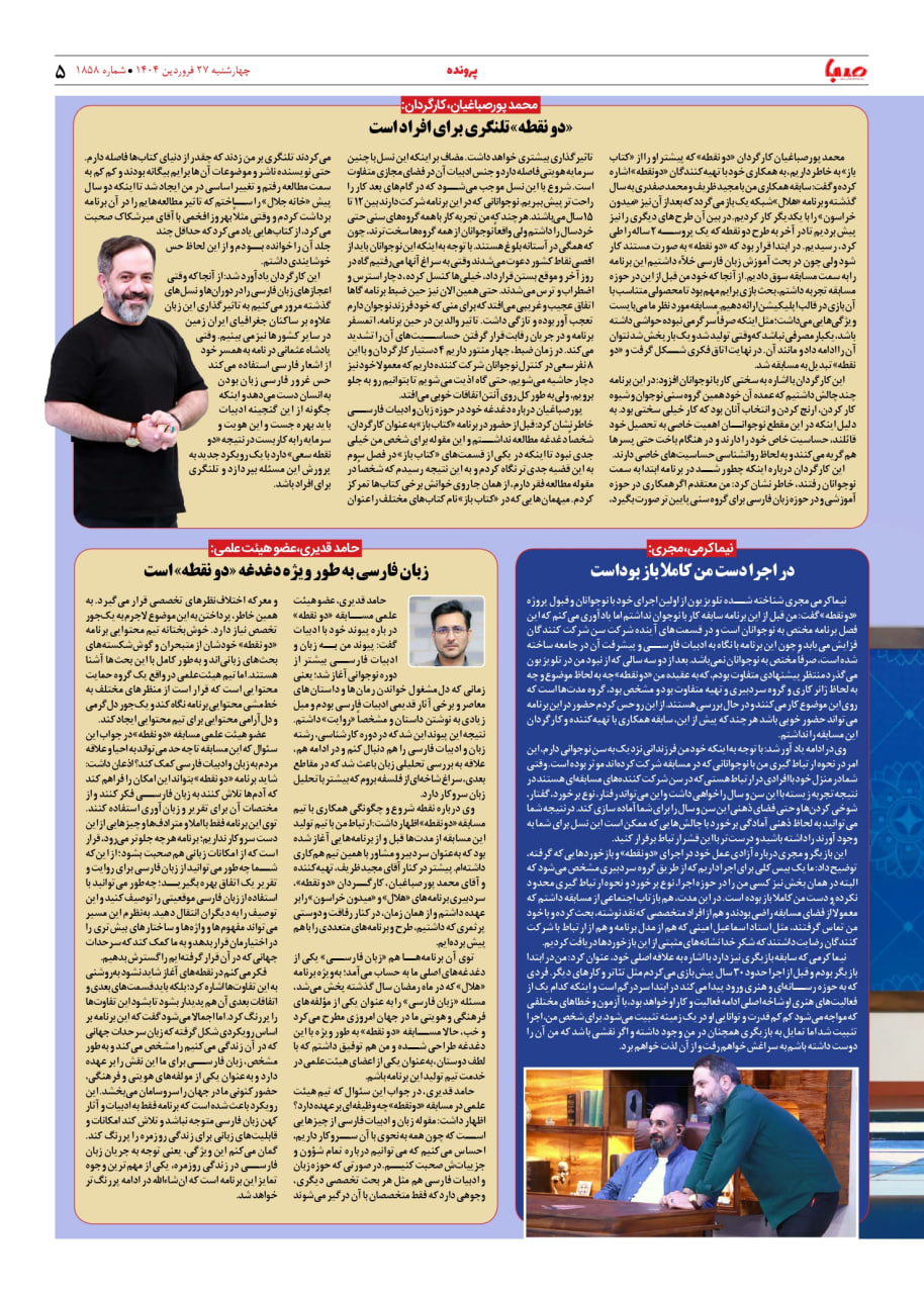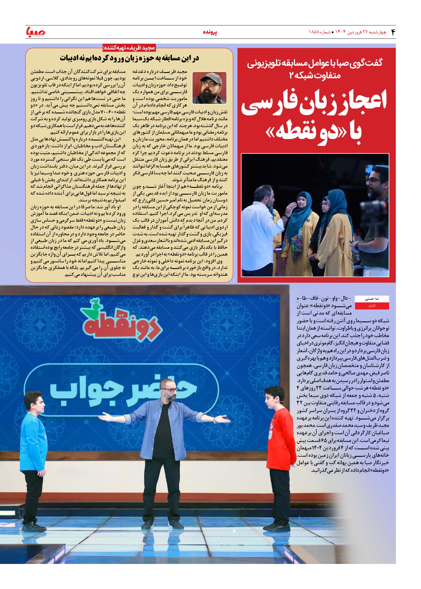 شماره ۱۸۵۸| روزنامه صبا چهارشنبه ۲۷ فروردین ۱۴۰۴