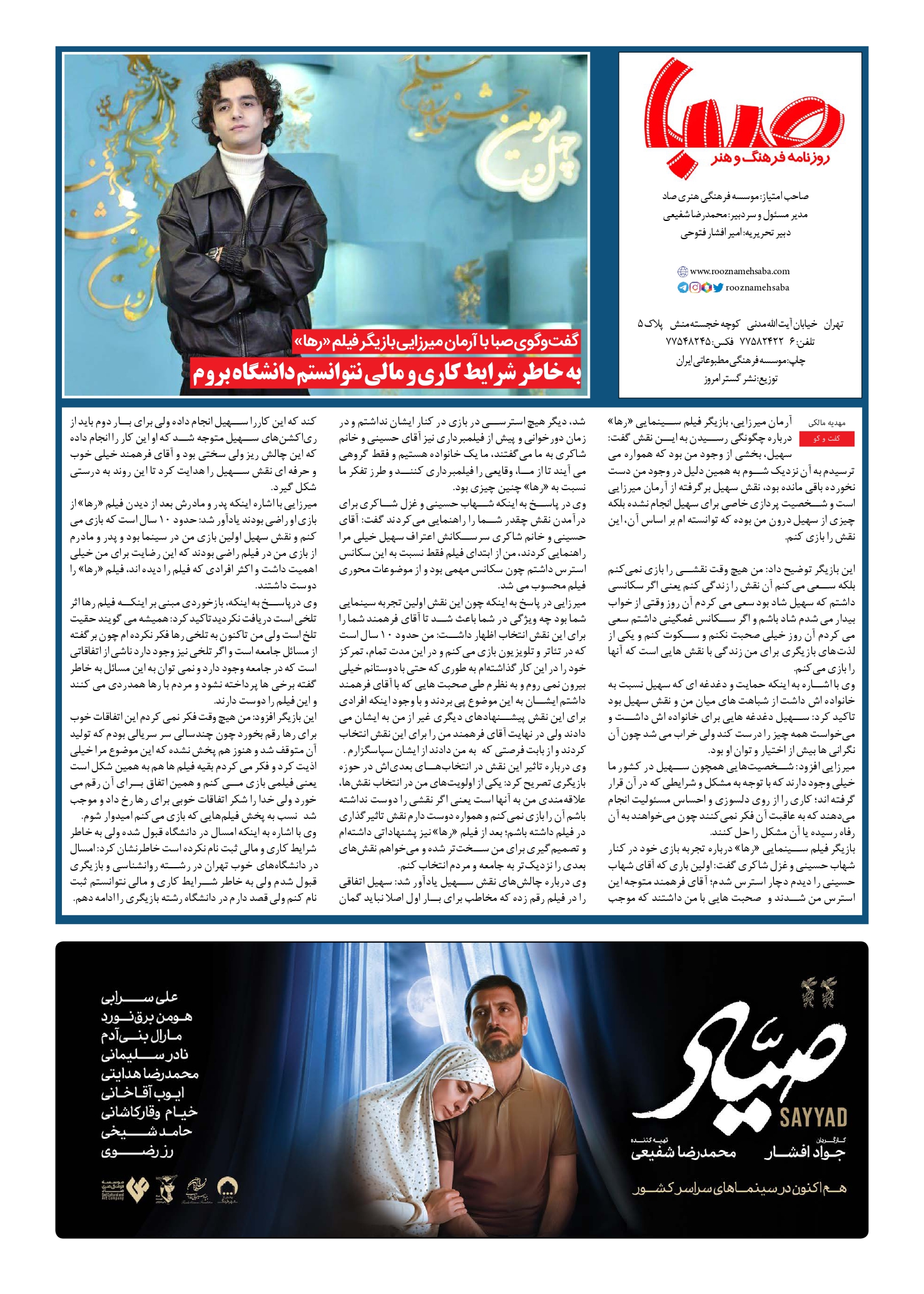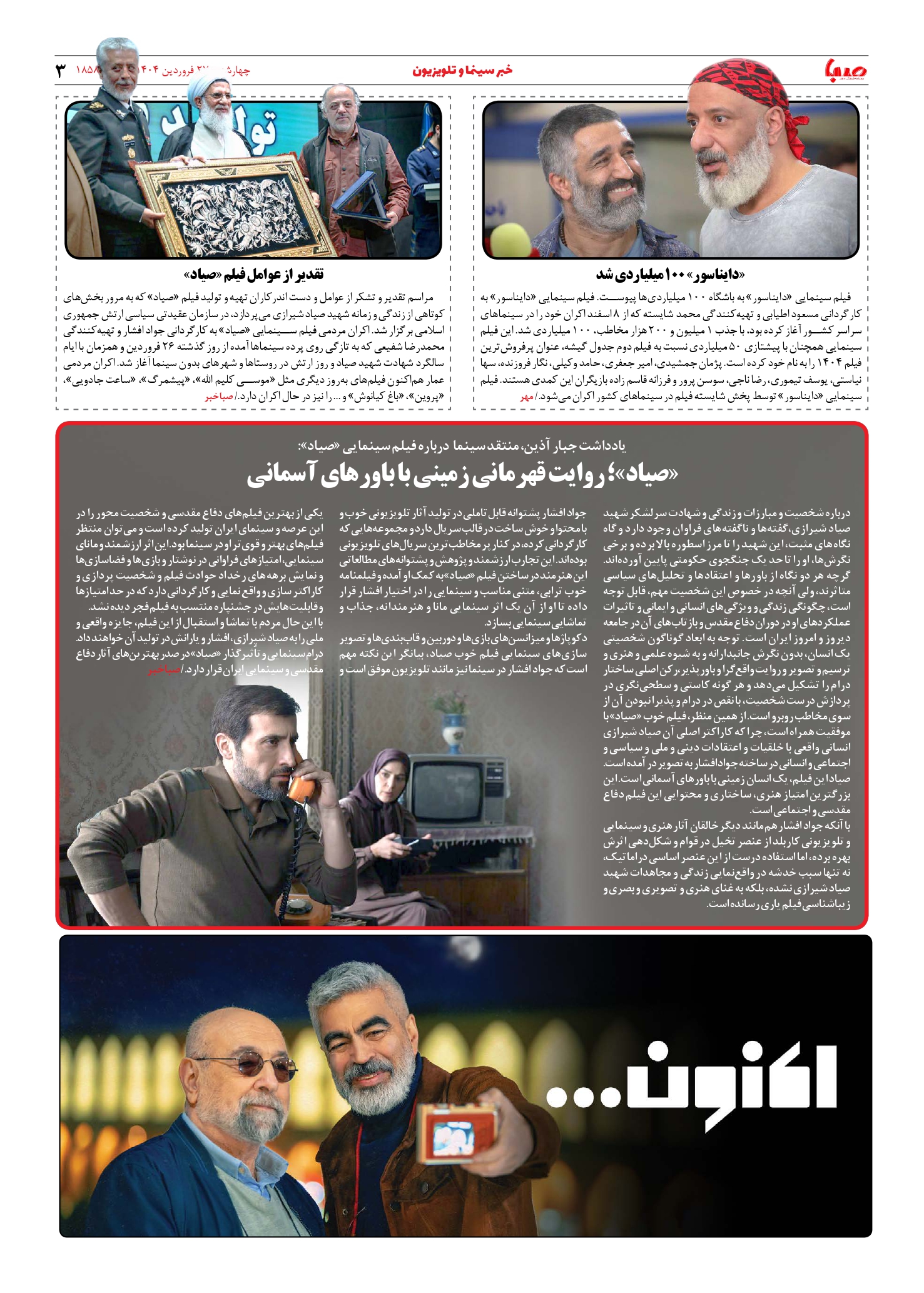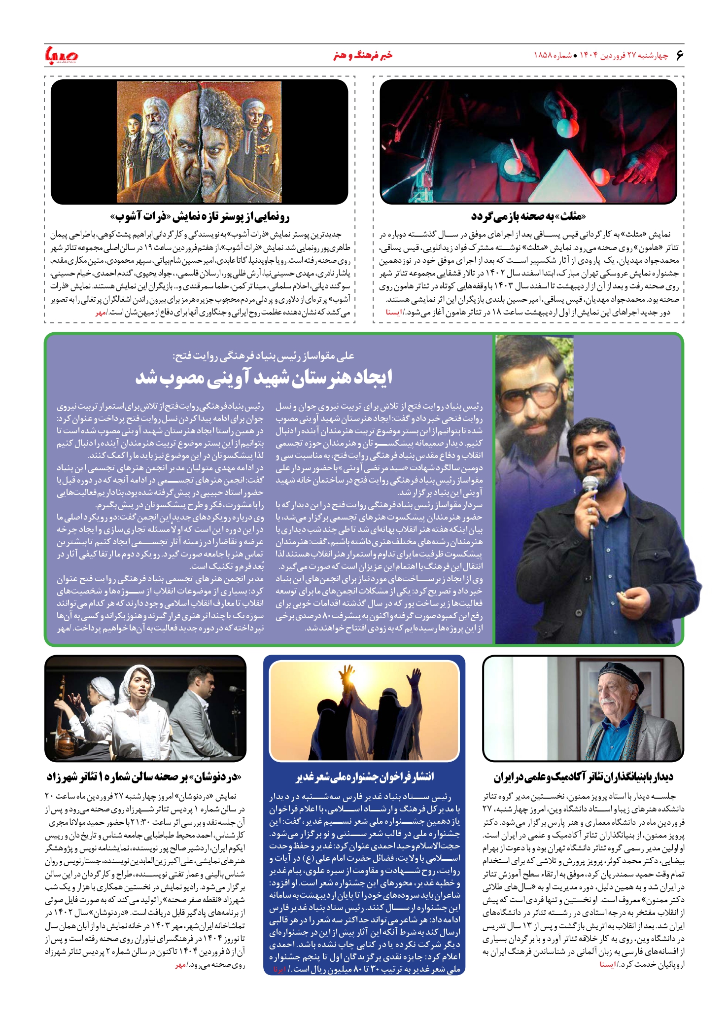 شماره ۱۸۵۸| روزنامه صبا چهارشنبه ۲۷ فروردین ۱۴۰۴