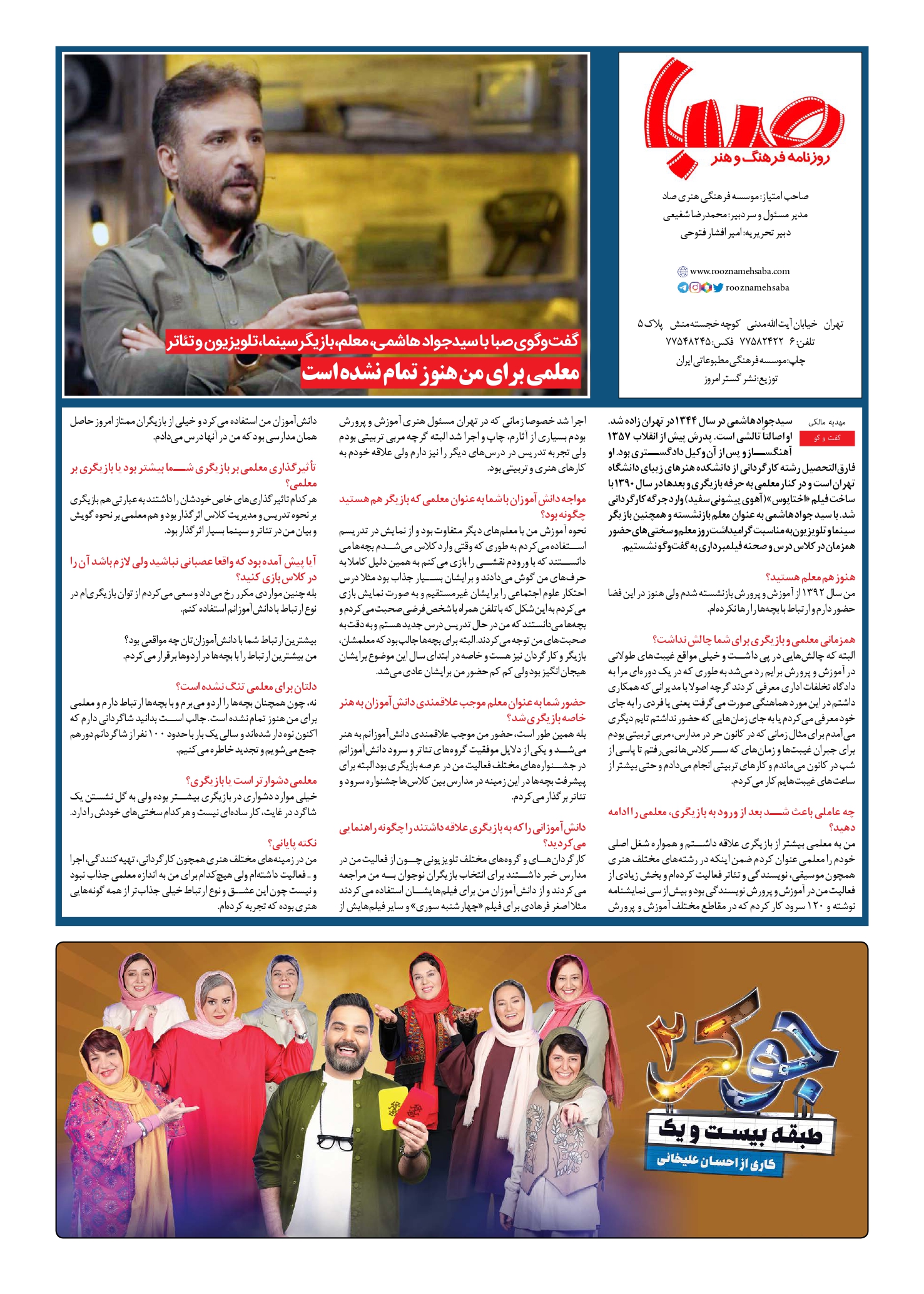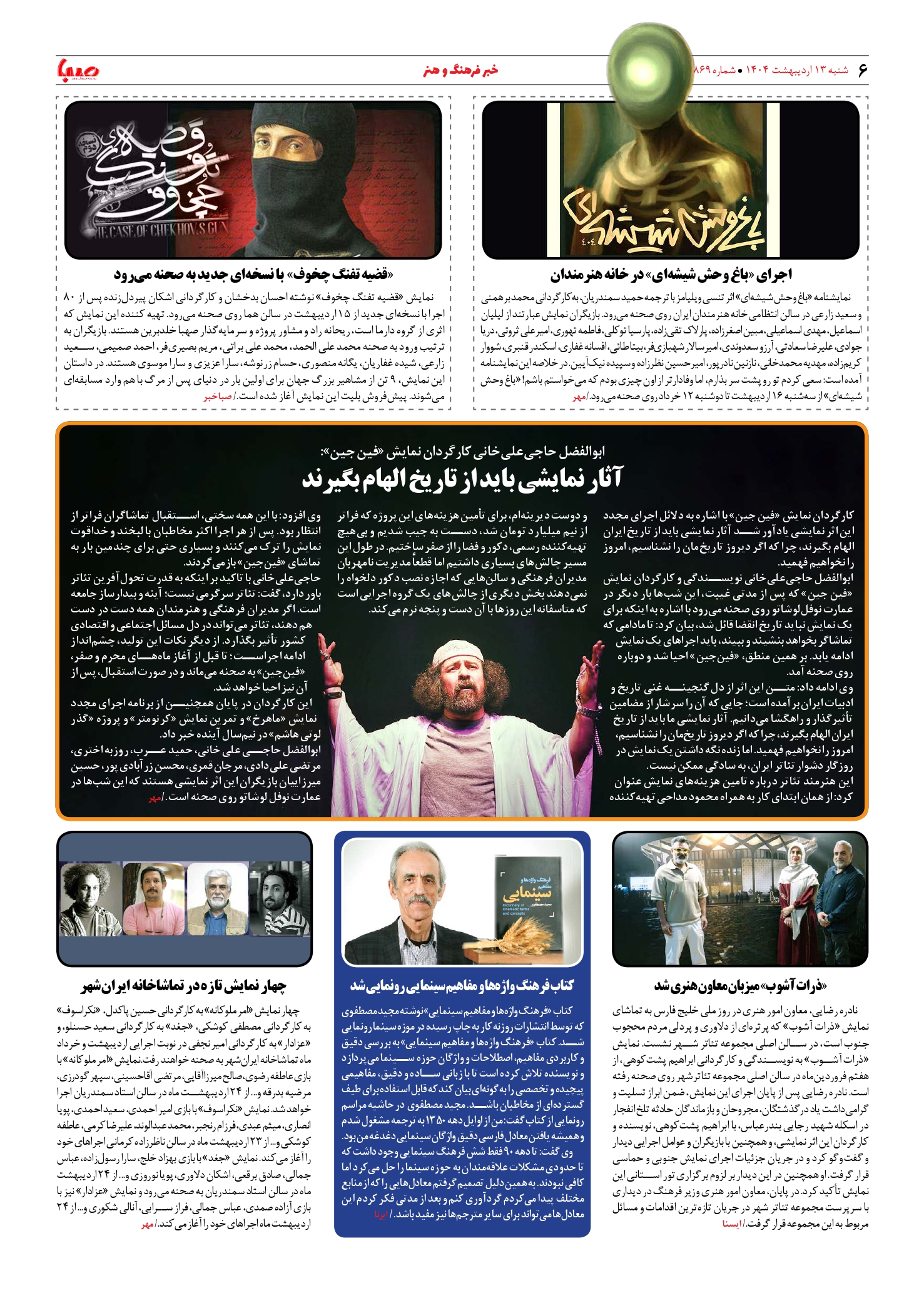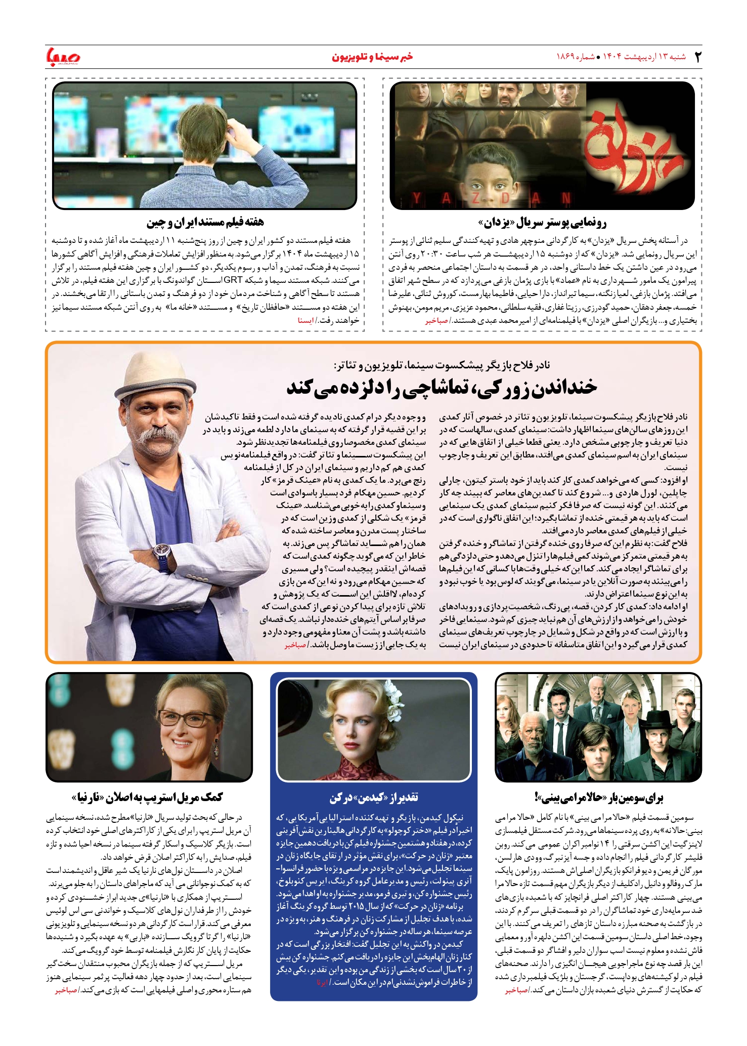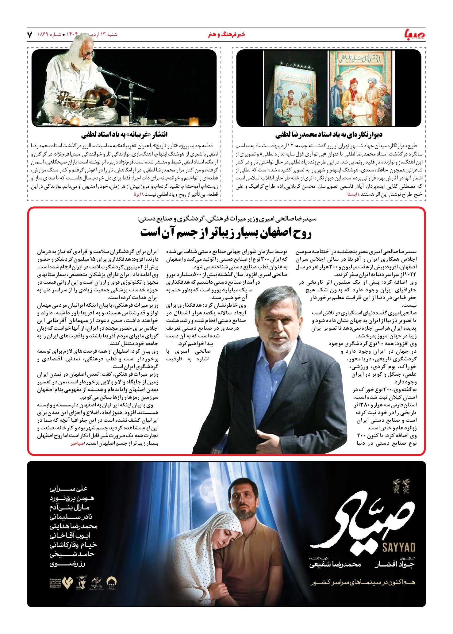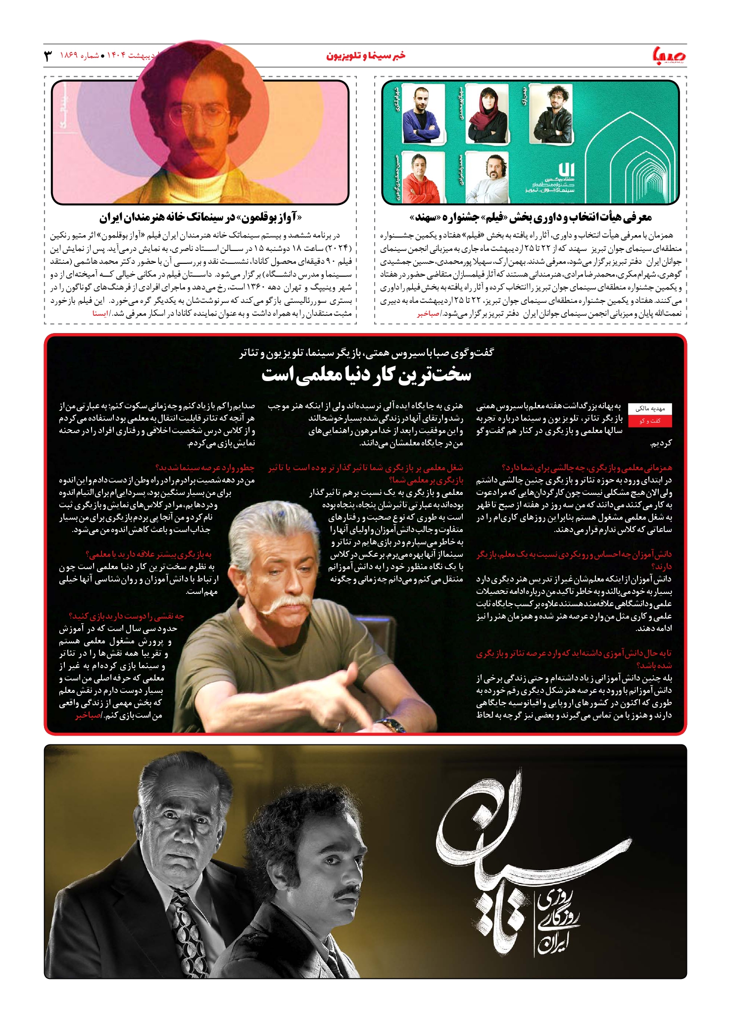 شماره ۱۸۶۹| روزنامه صبا شنبه ۱۳ اردیبهشت ۱۴۰۴