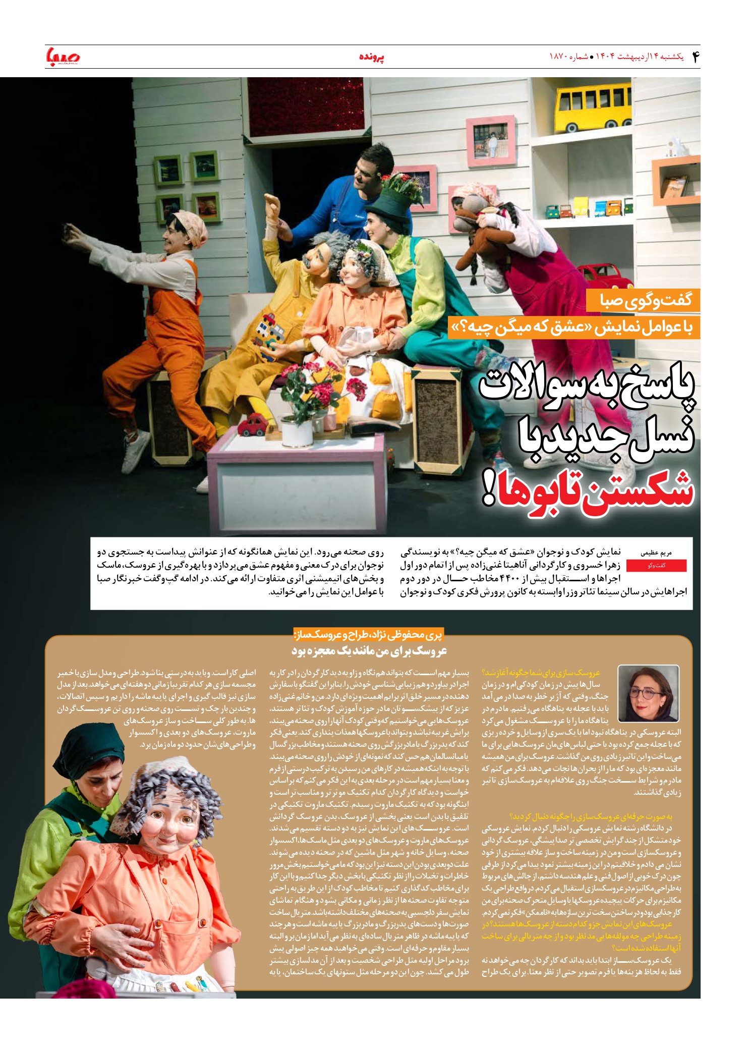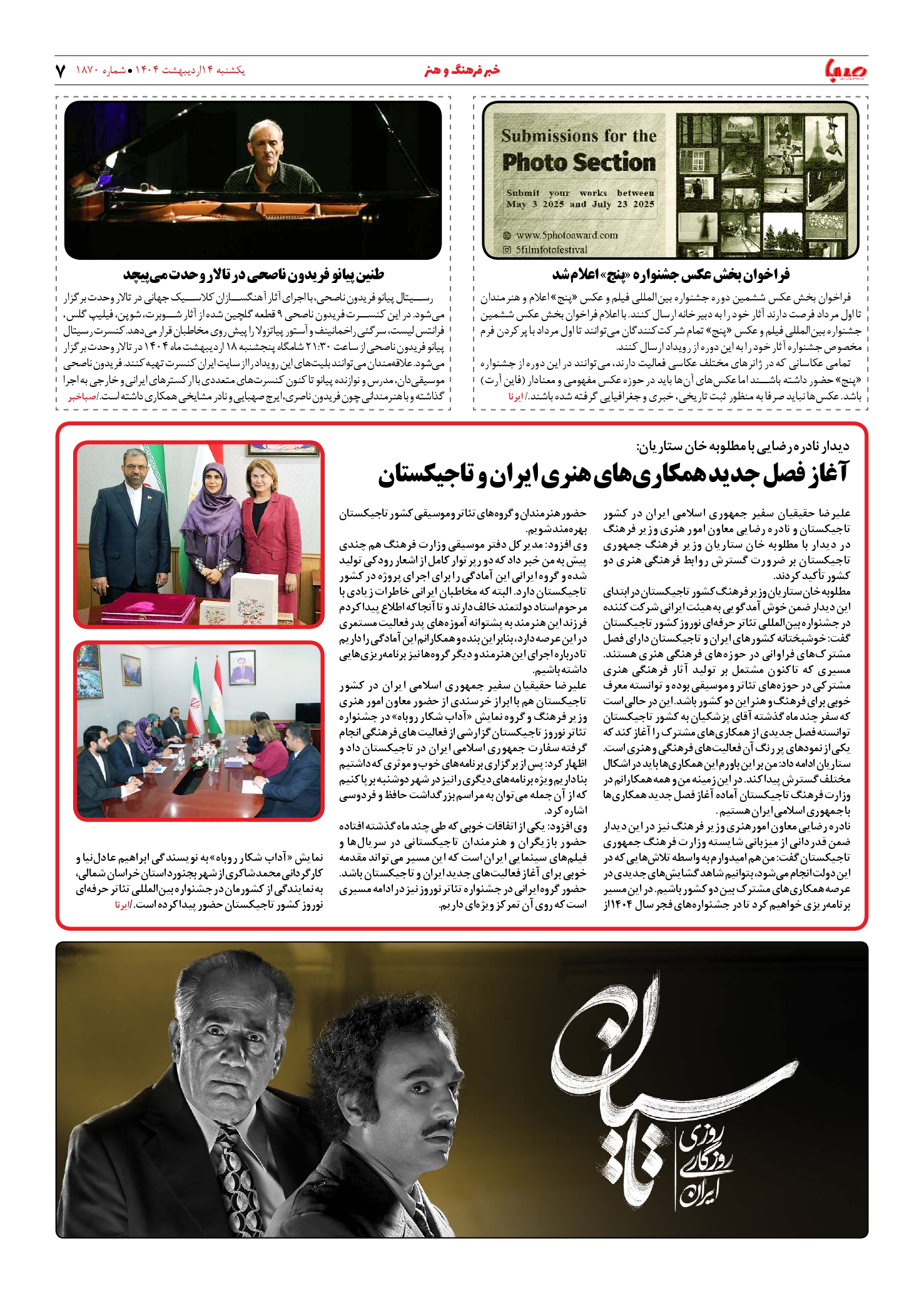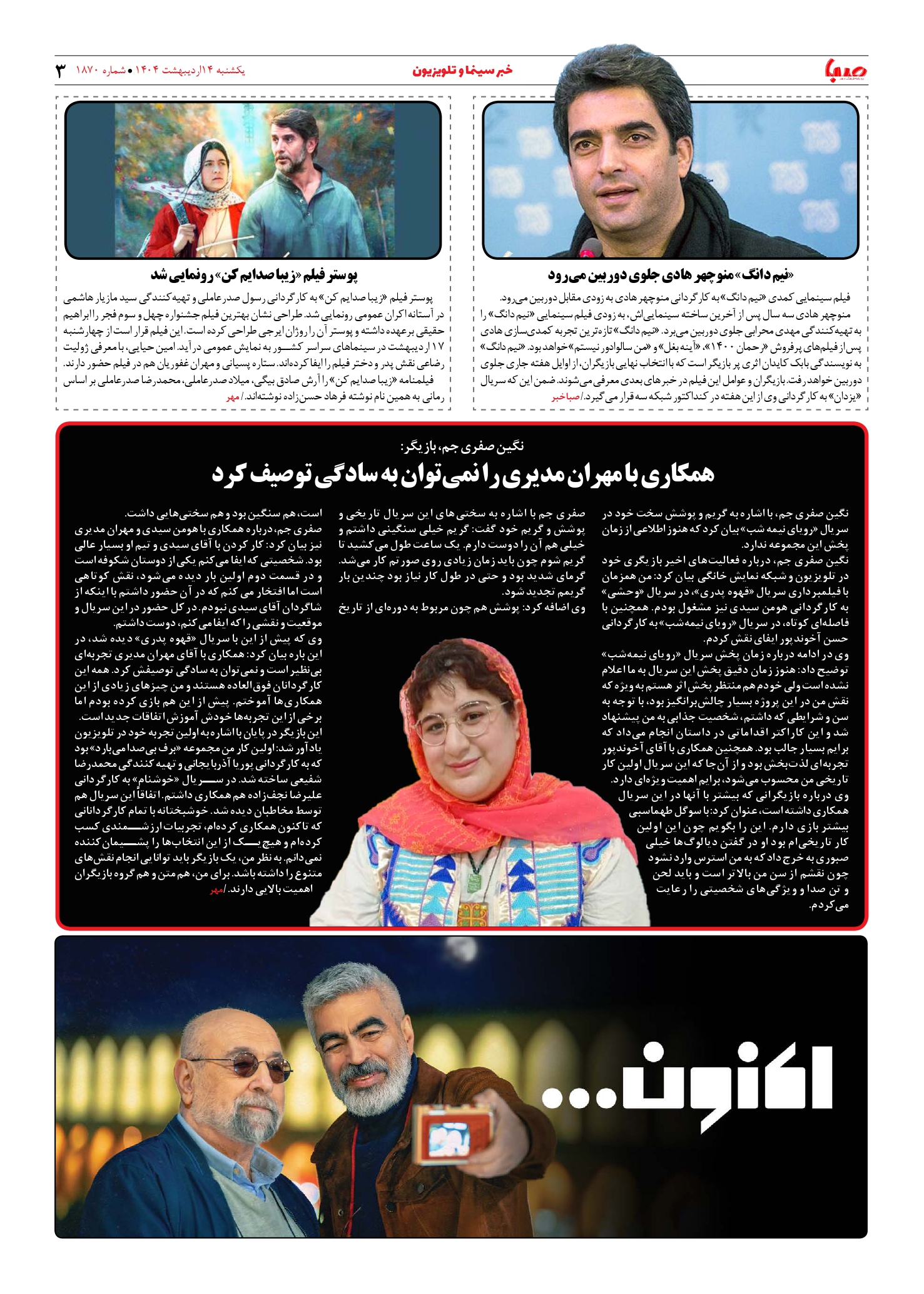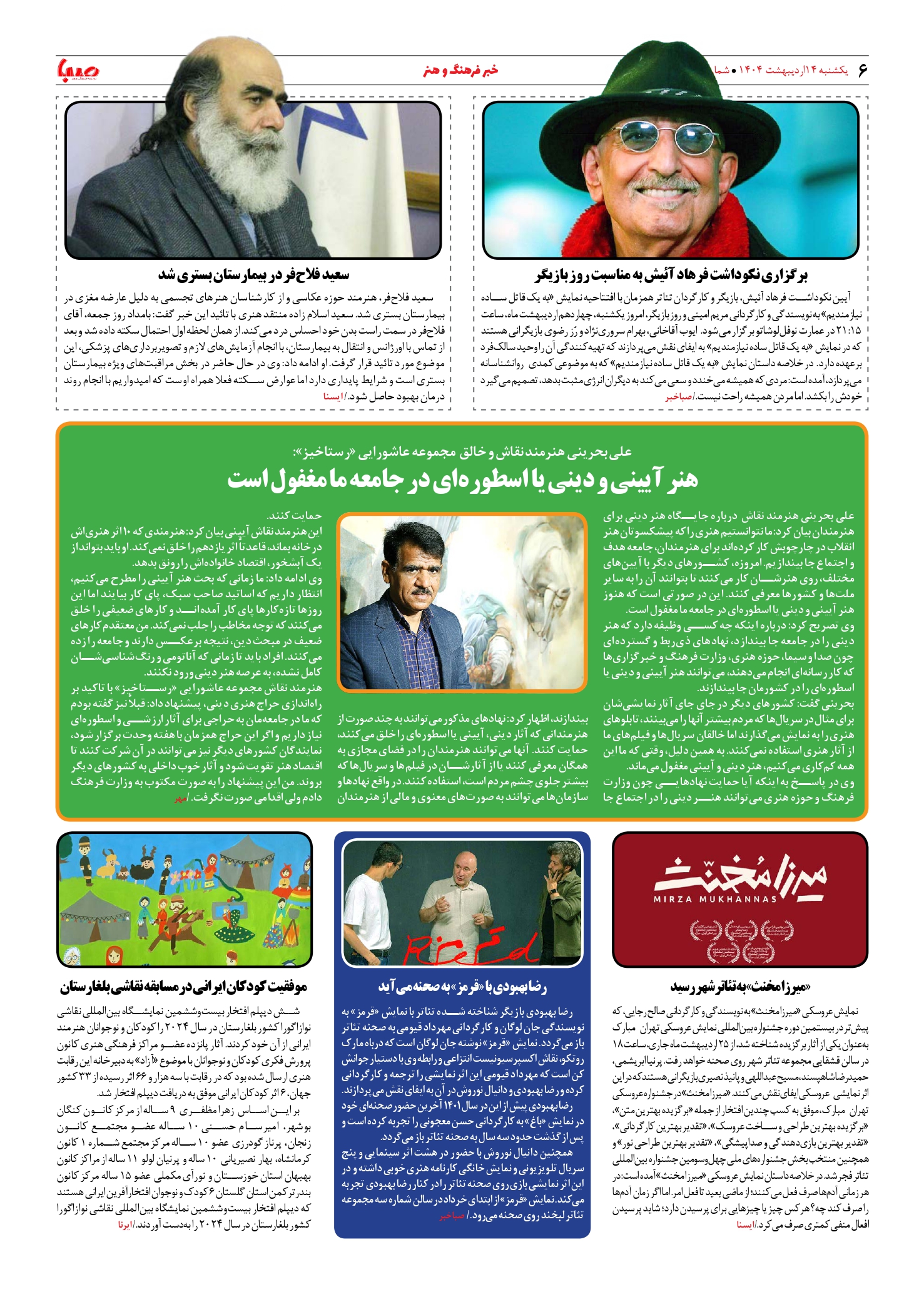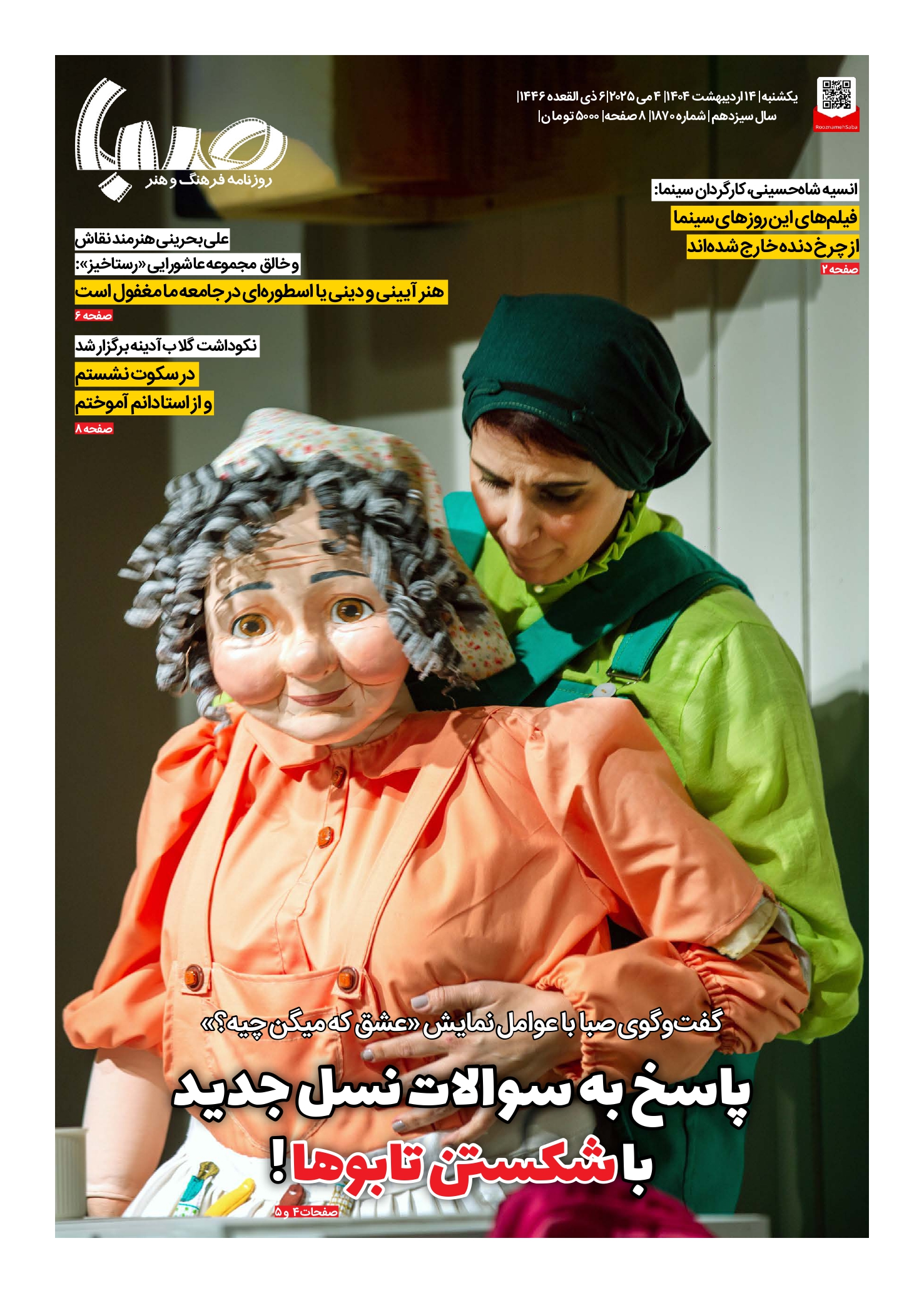 شماره ۱۸۷۰| روزنامه صبا یکشنبه ۱۴ اردیبهشت ۱۴۰۴