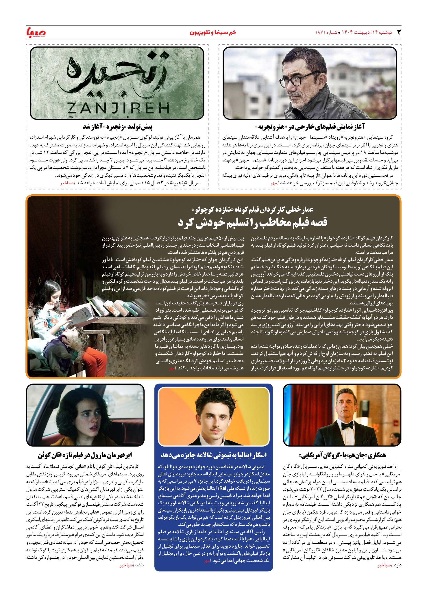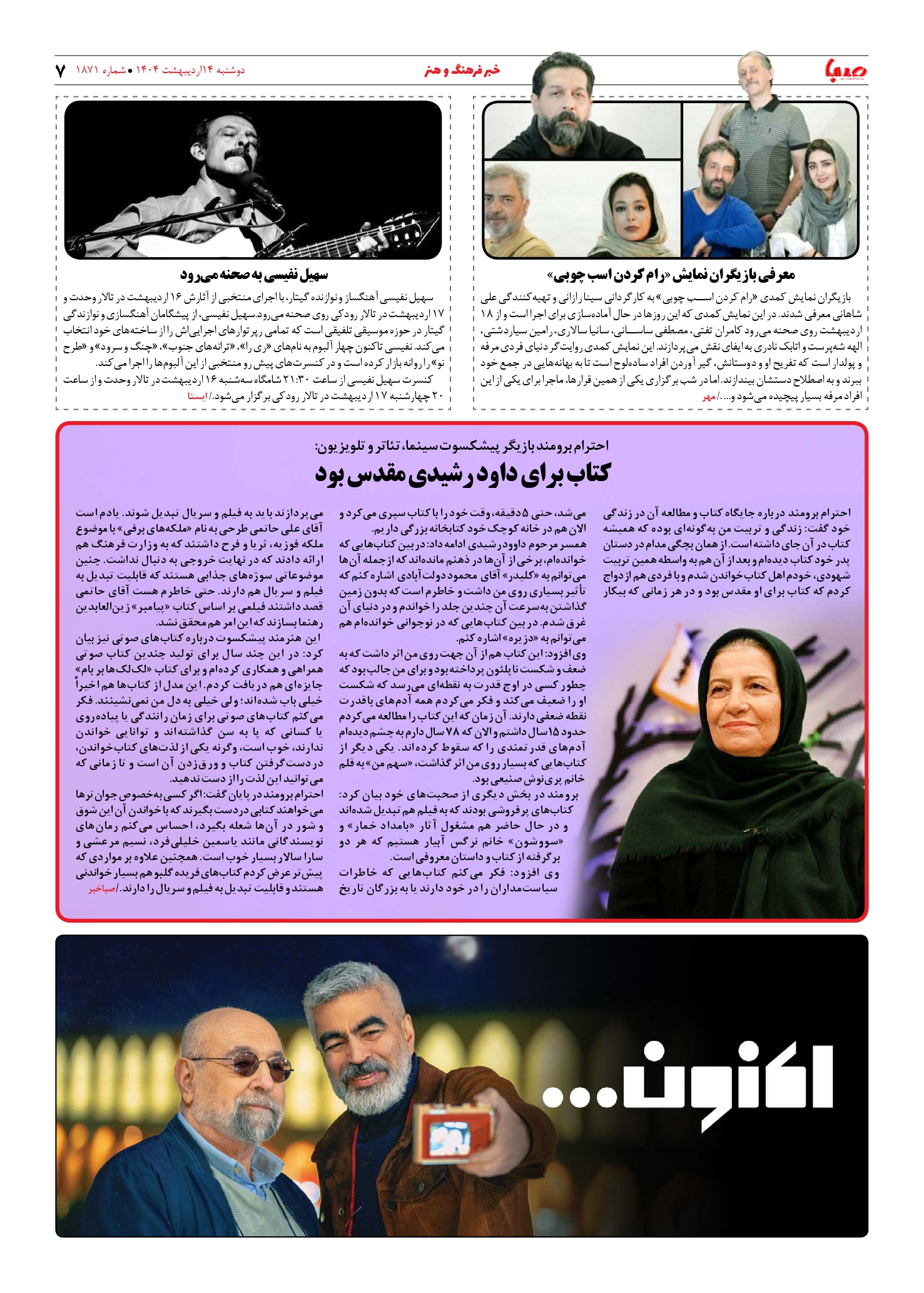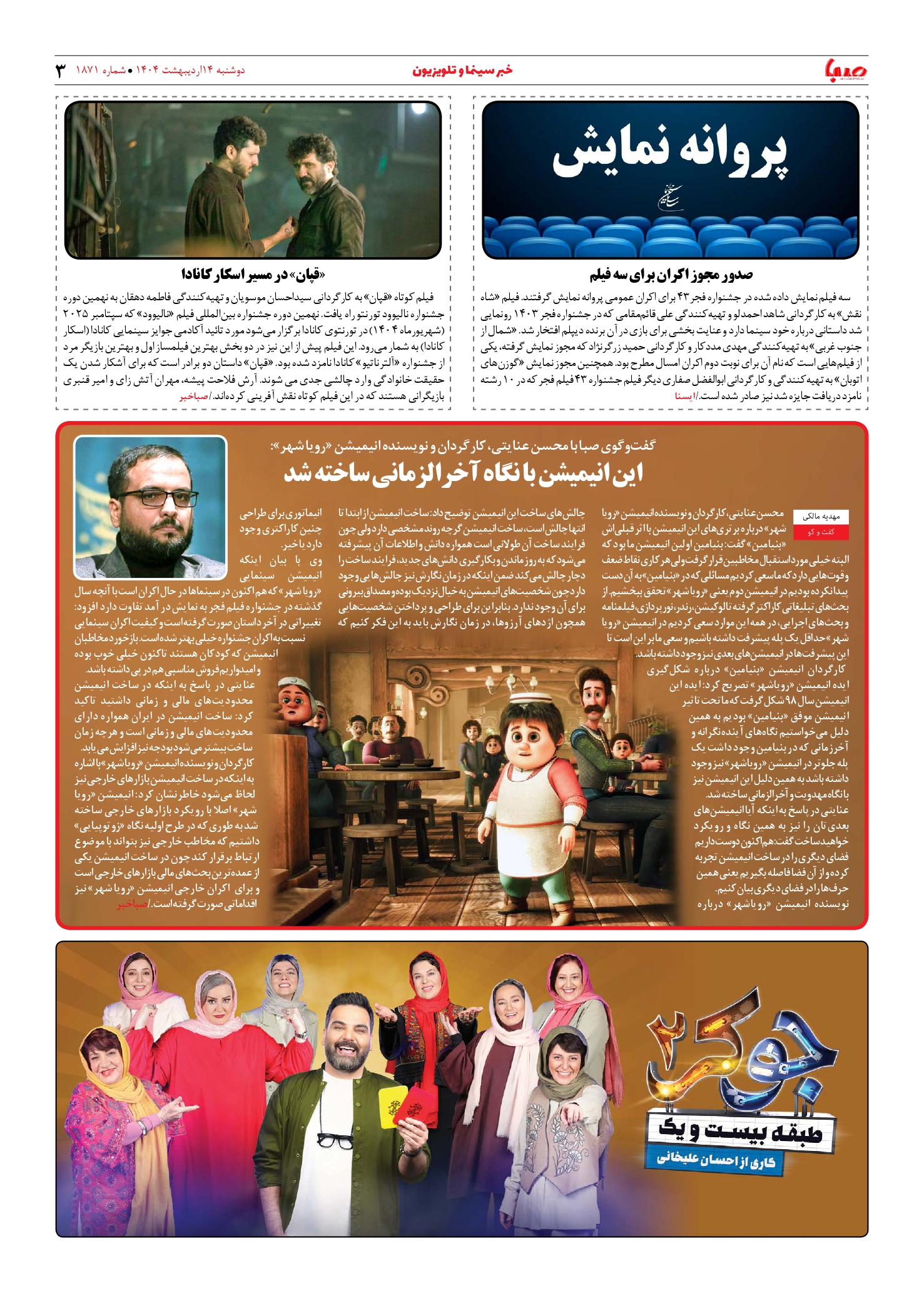 شماره ۱۸۷۱| روزنامه صبا دوشنبه ۱۵ اردیبهشت ۱۴۰۴