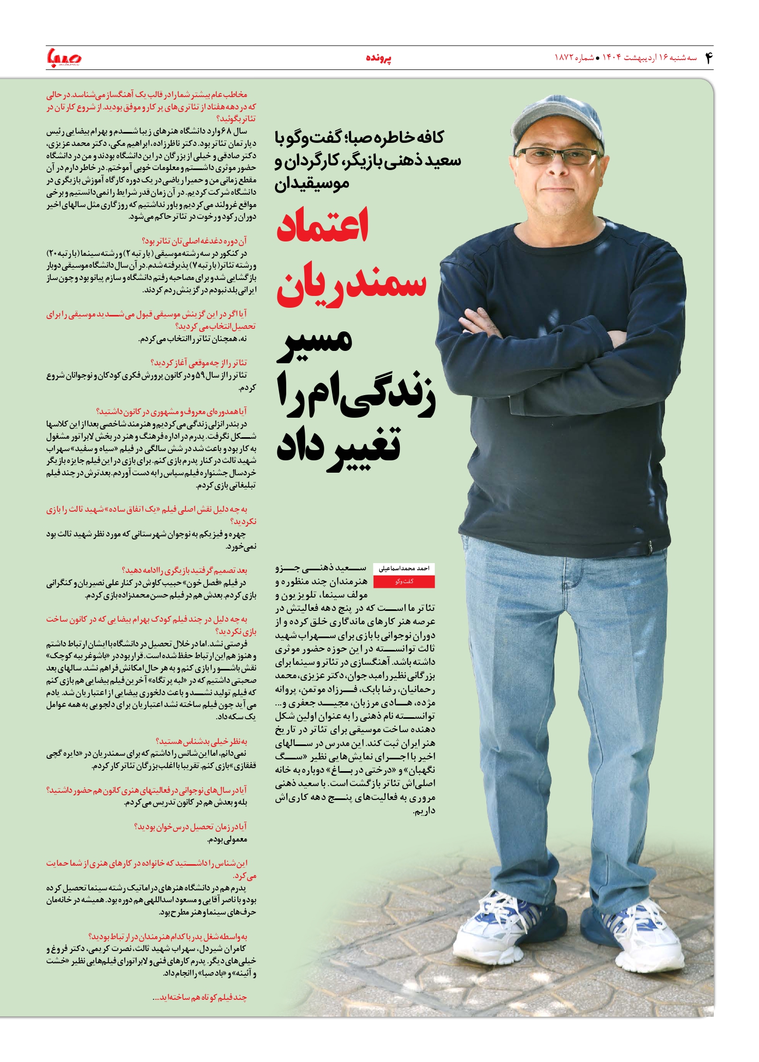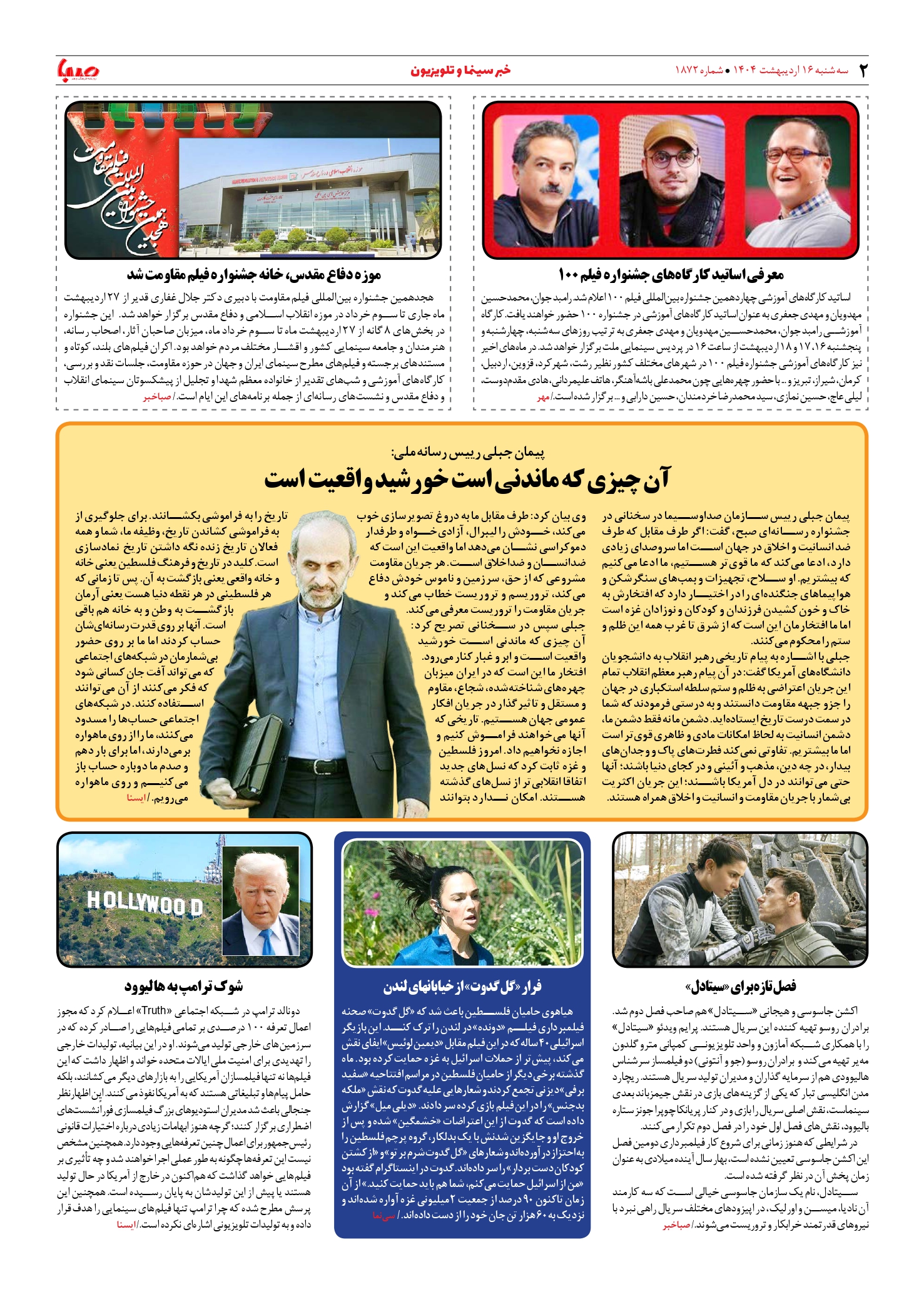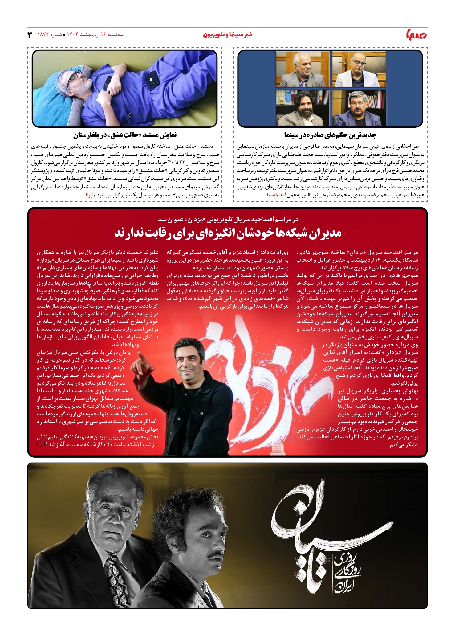 شماره ۱۸۷۲| روزنامه صبا سهشنبه ۱۶ اردیبهشت ۱۴۰۴
