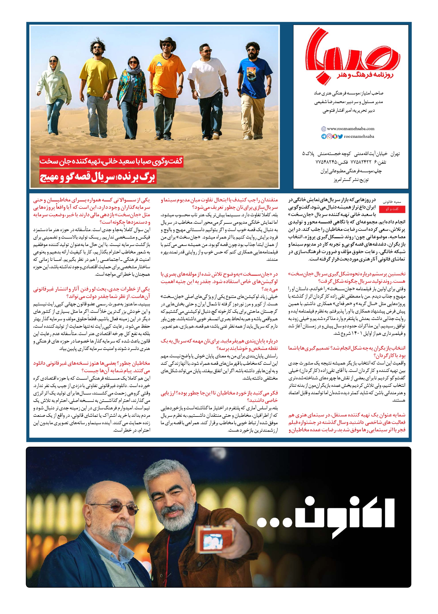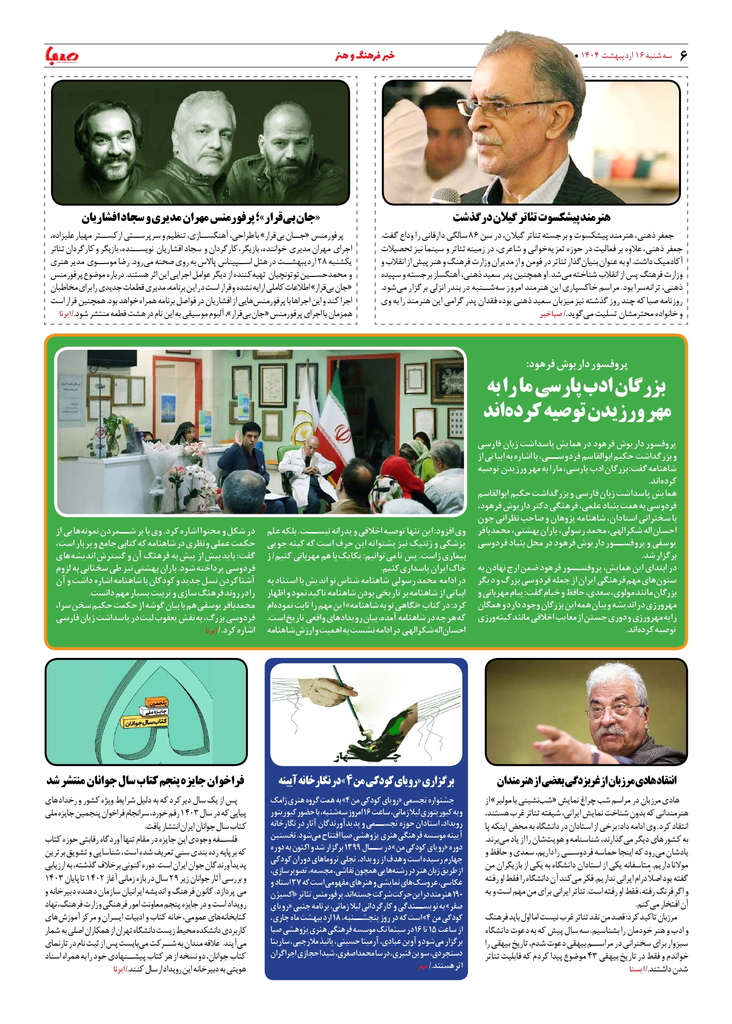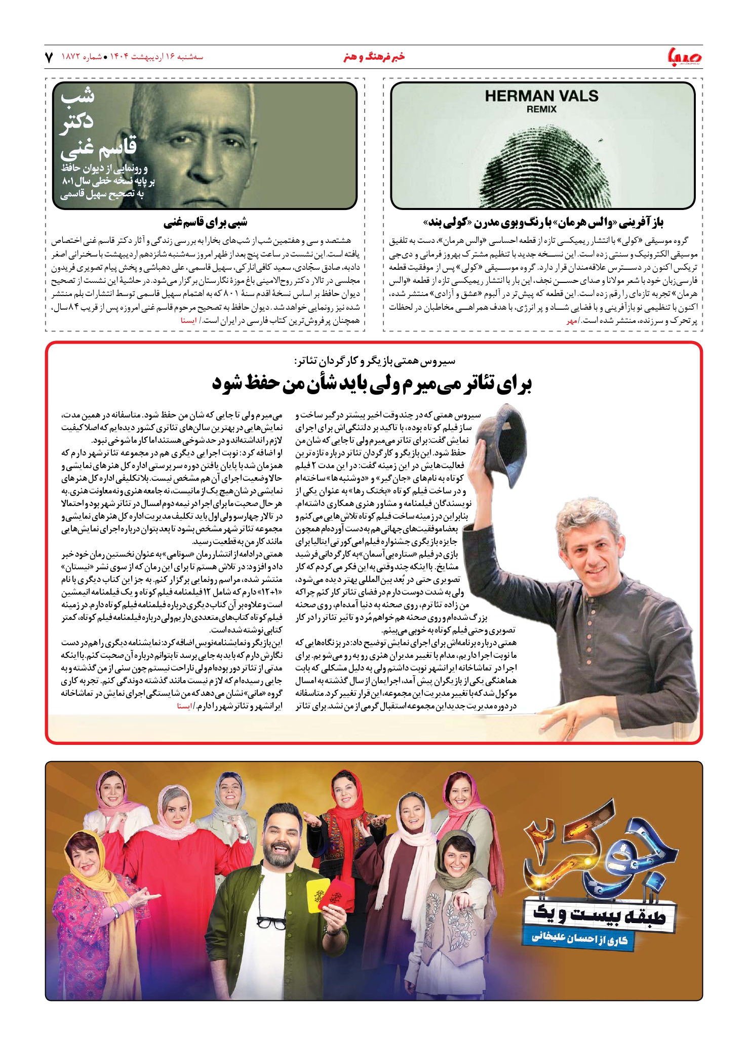 شماره ۱۸۷۲| روزنامه صبا سهشنبه ۱۶ اردیبهشت ۱۴۰۴