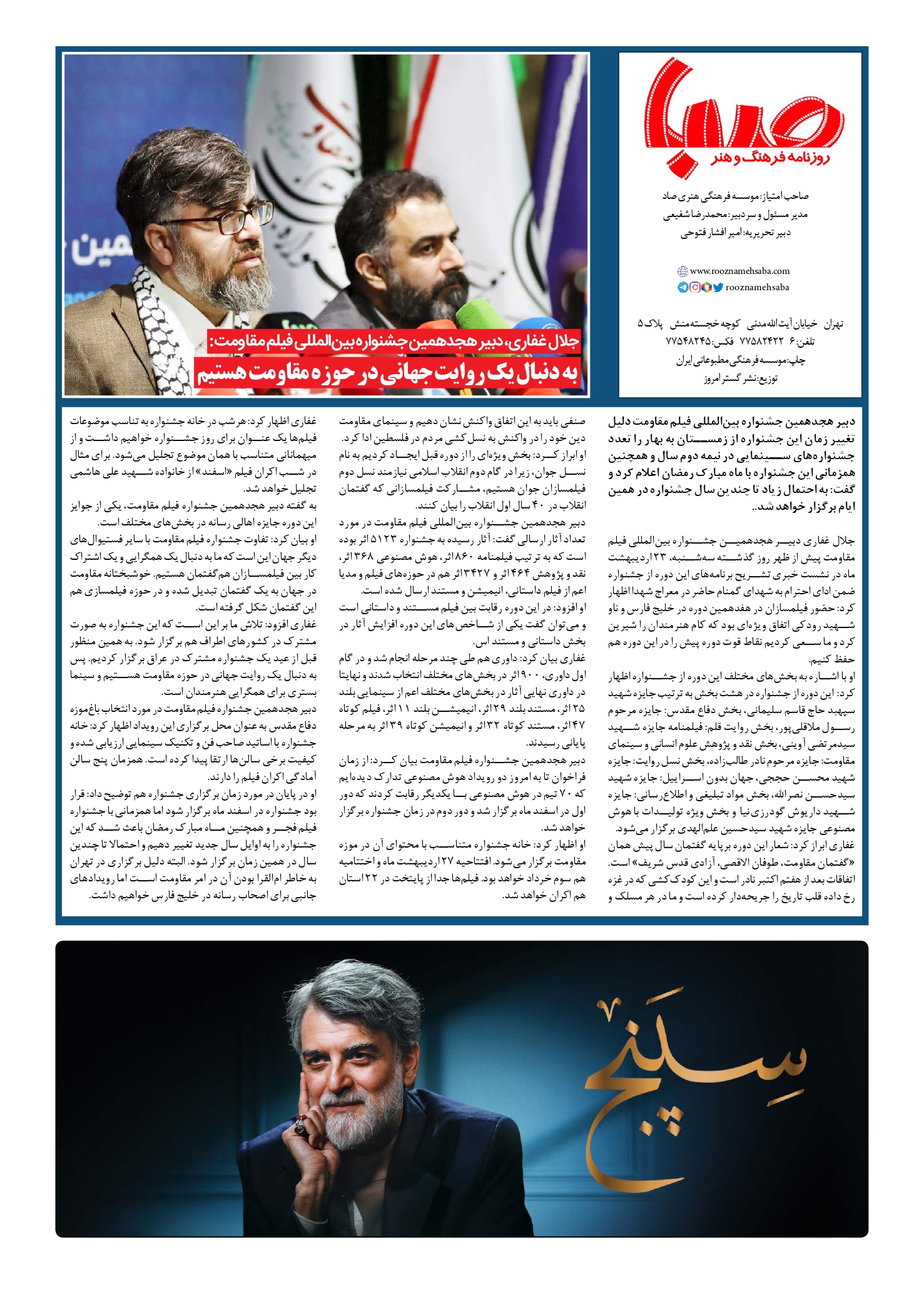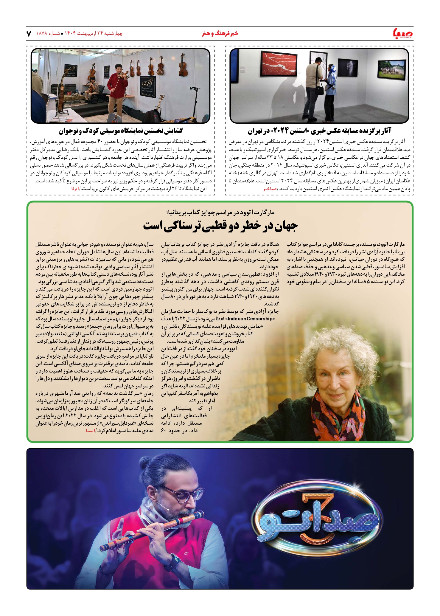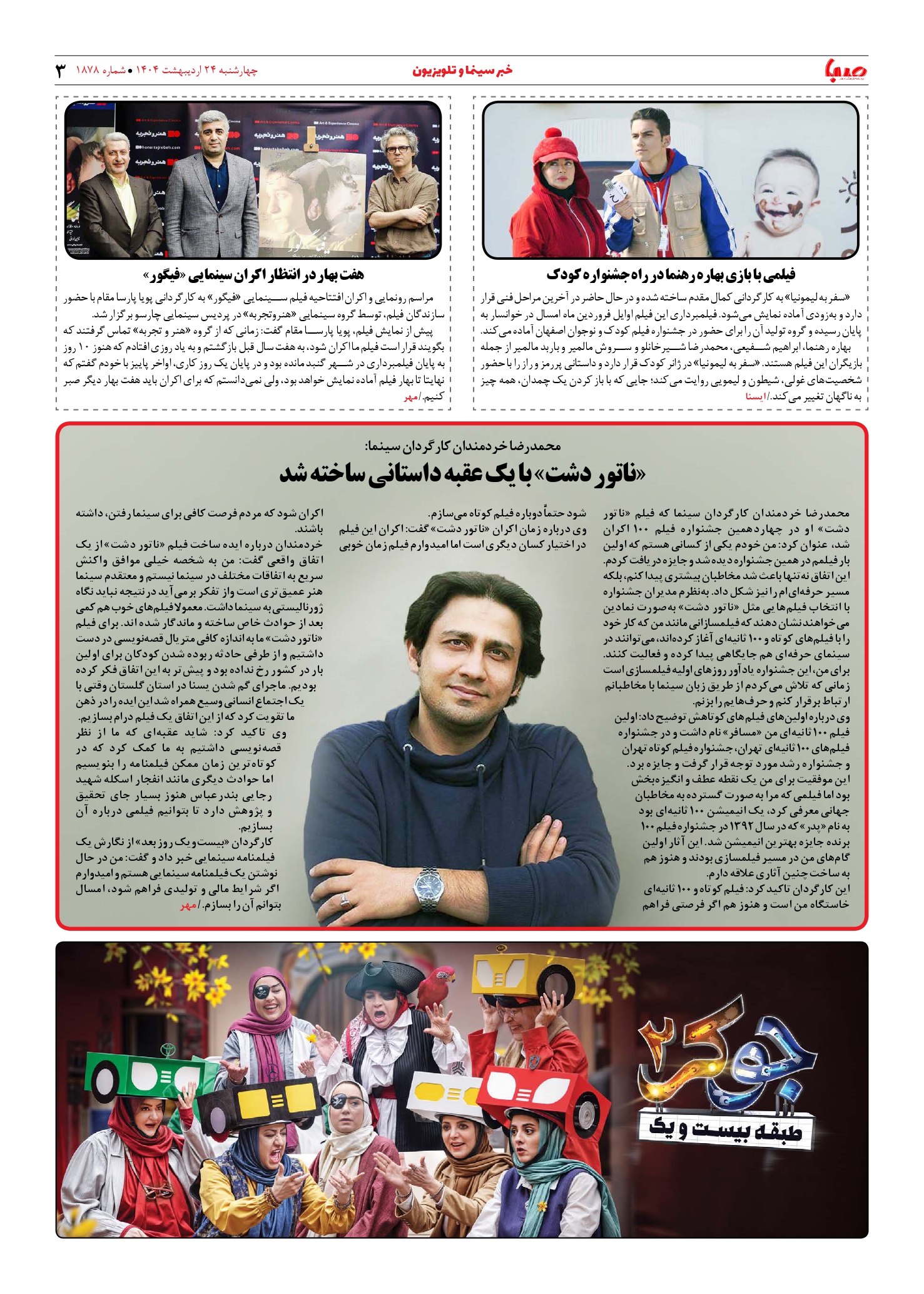 شماره ۱۸۷۸| روزنامه صبا چهارشنبه ۲۴ اردیبهشت ۱۴۰۴