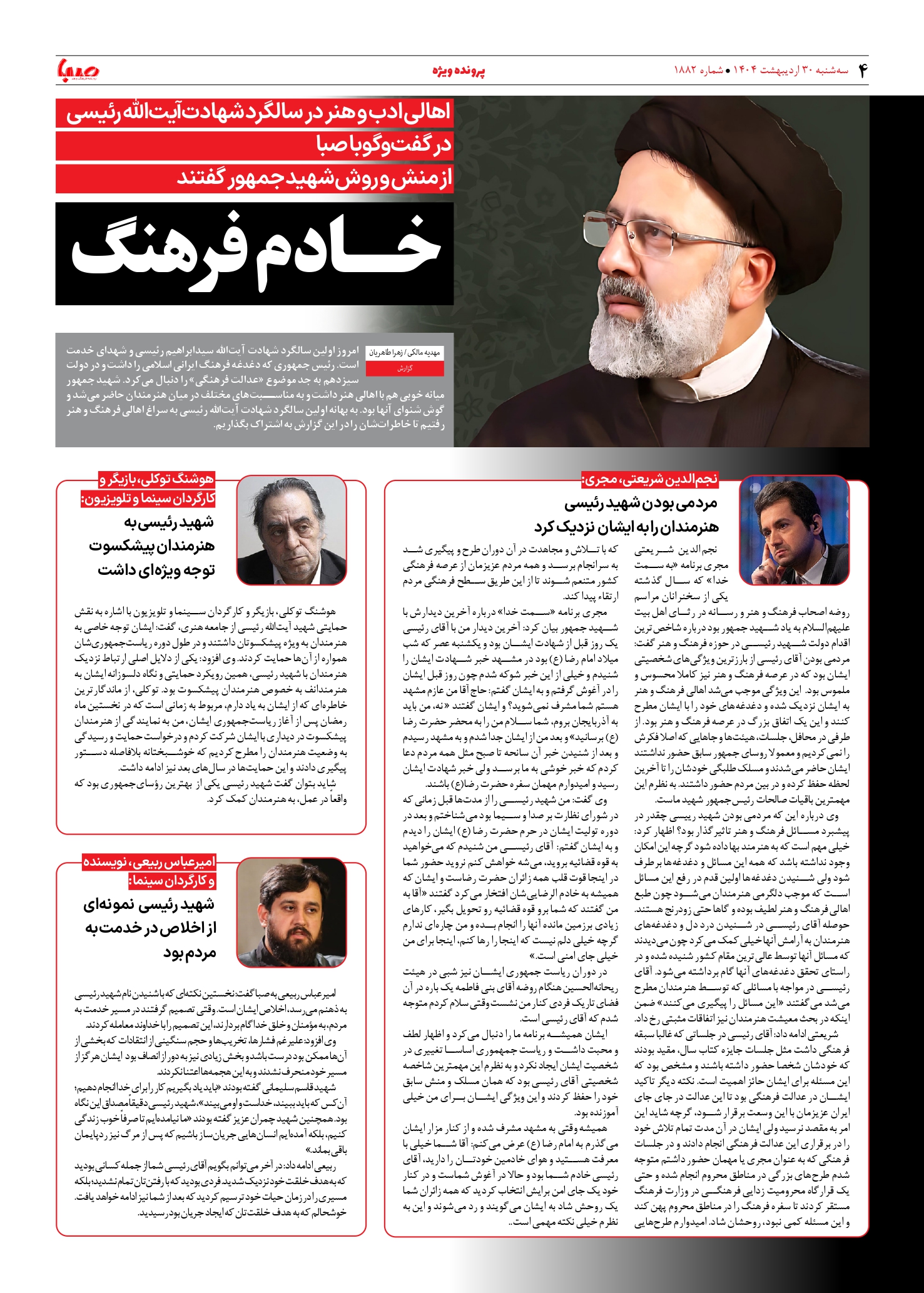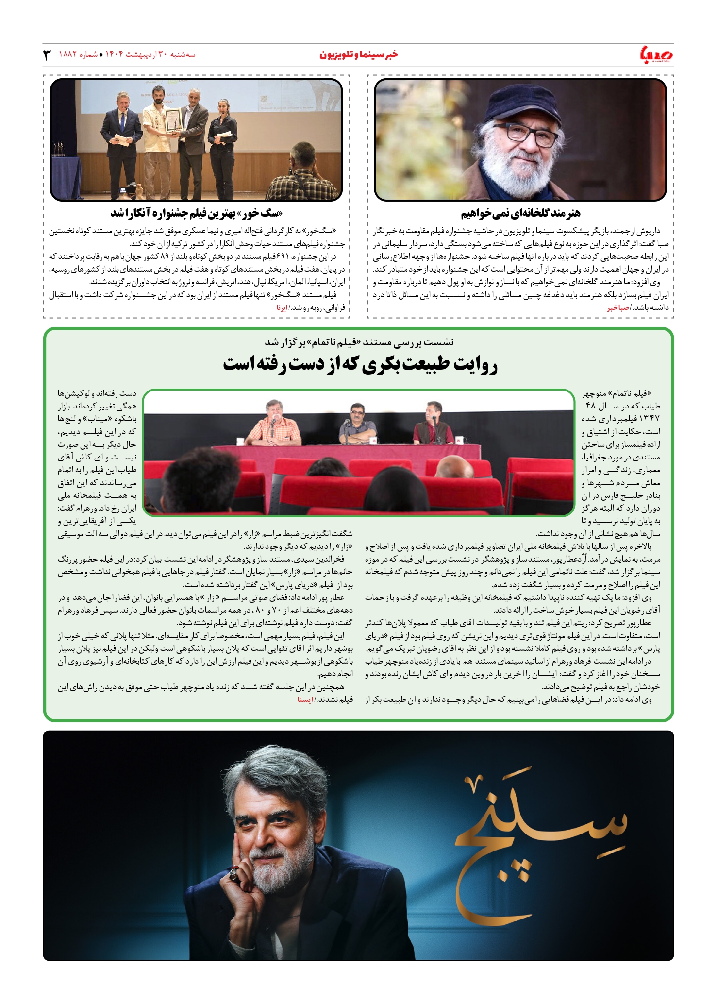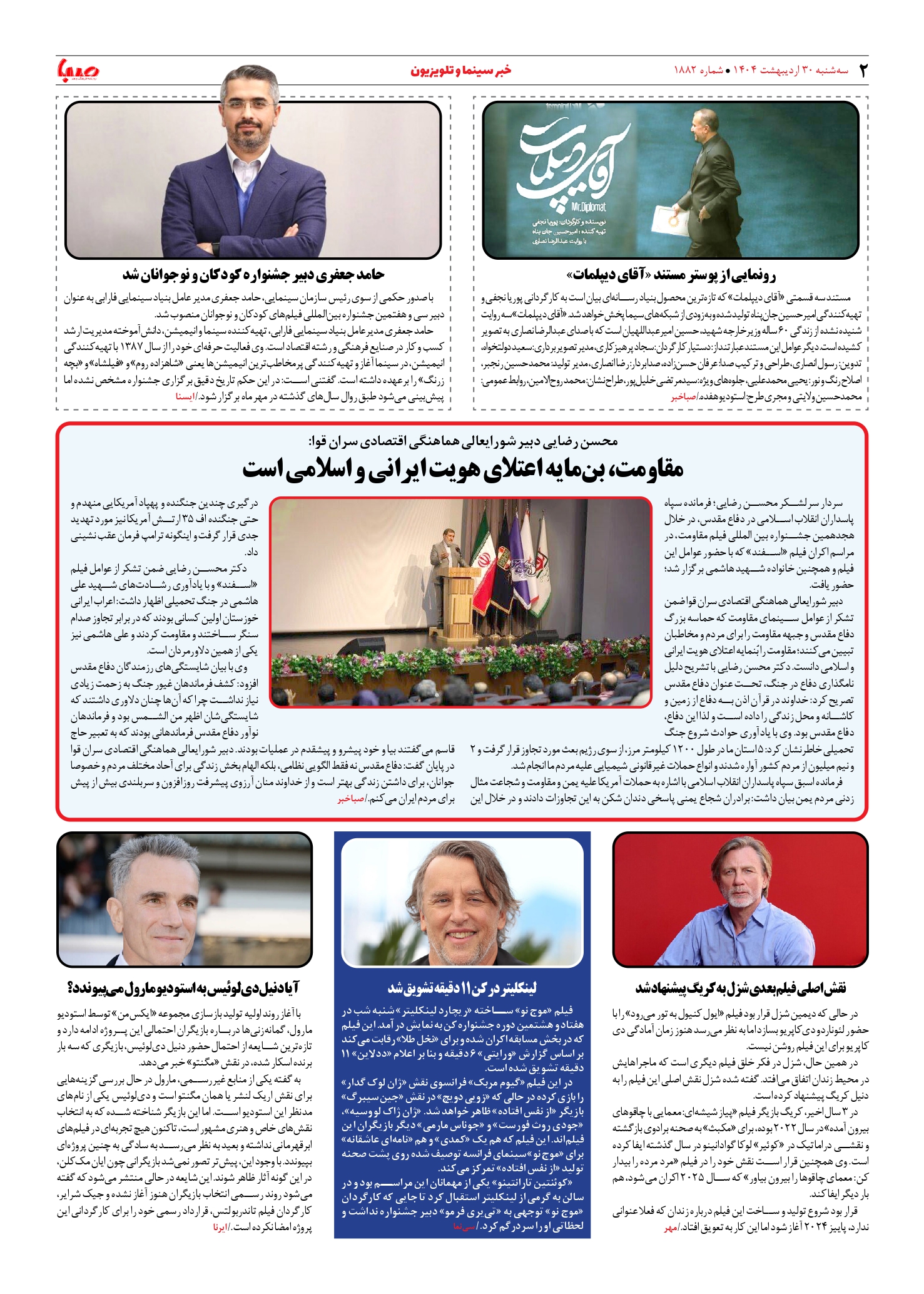 شماره ۱۸۸۲| روزنامه صبا سهشنبه ۳۰ اردیبهشت ۱۴۰۴