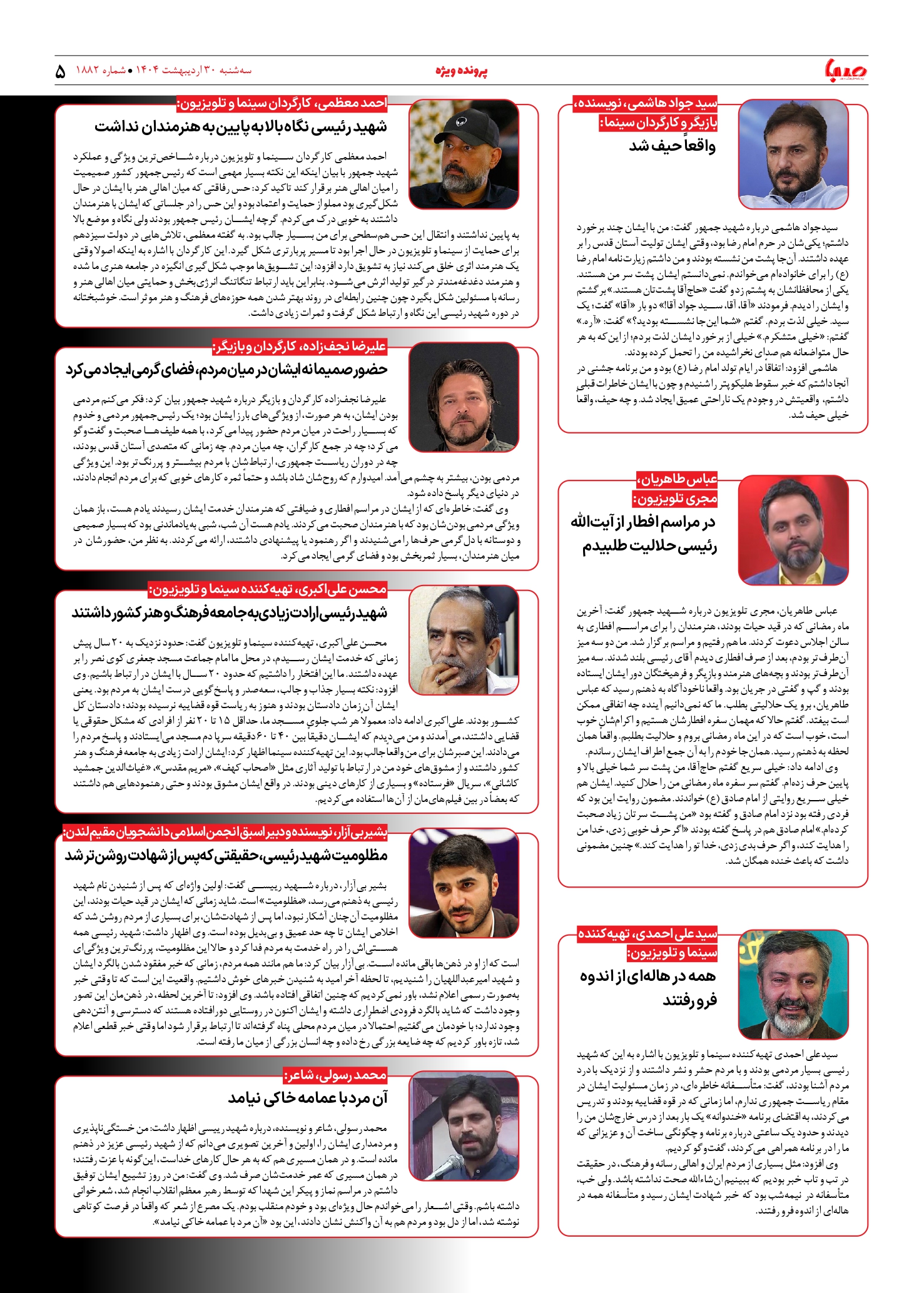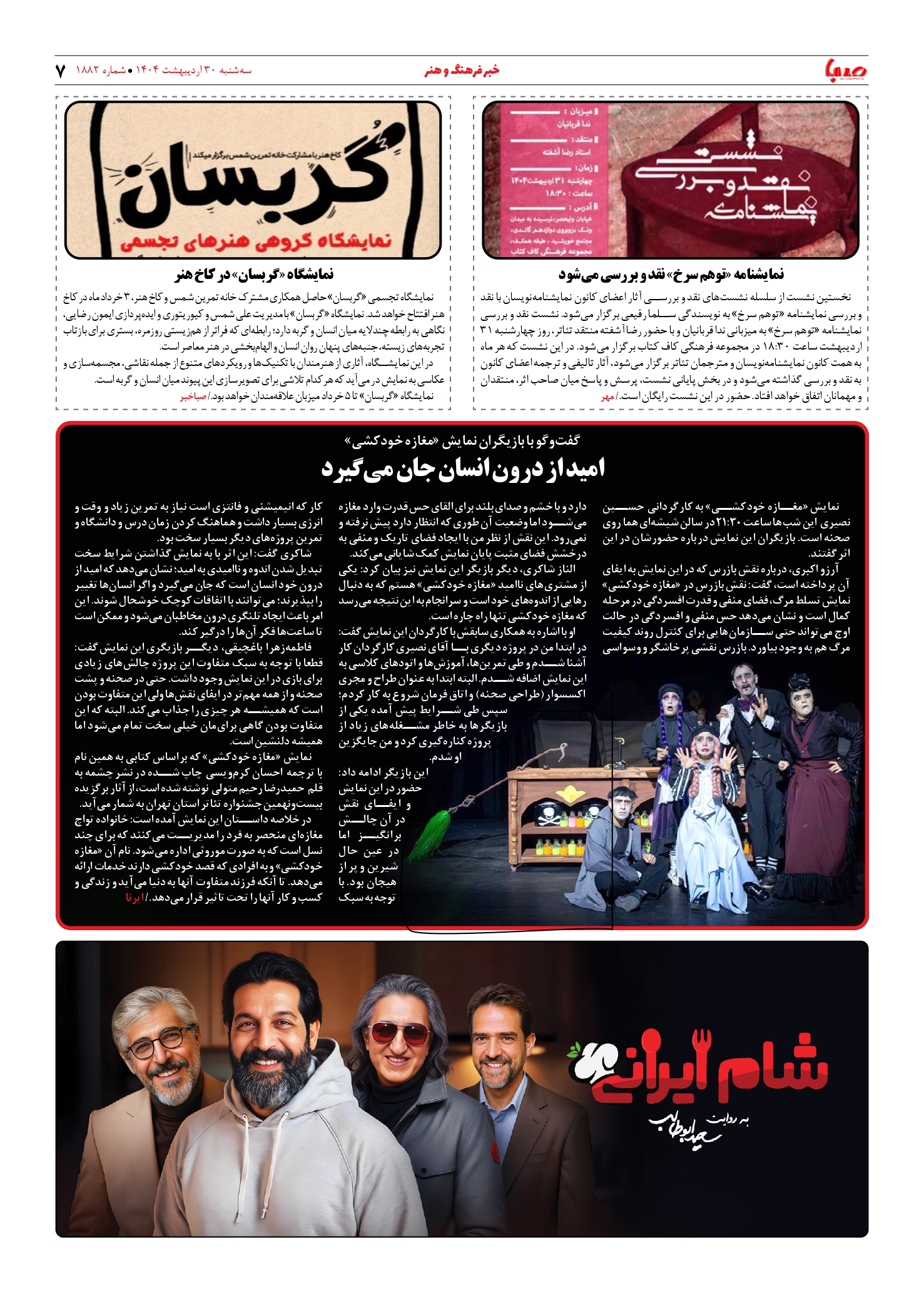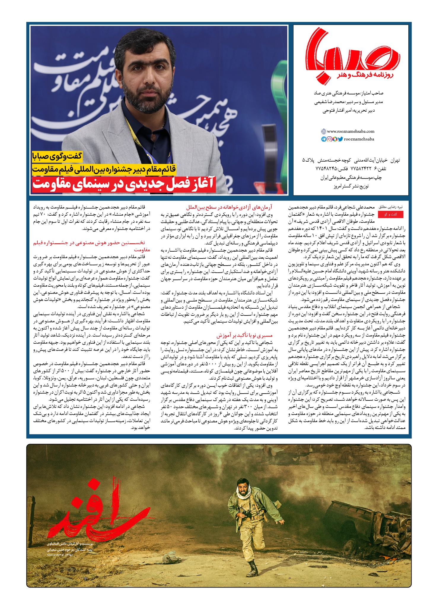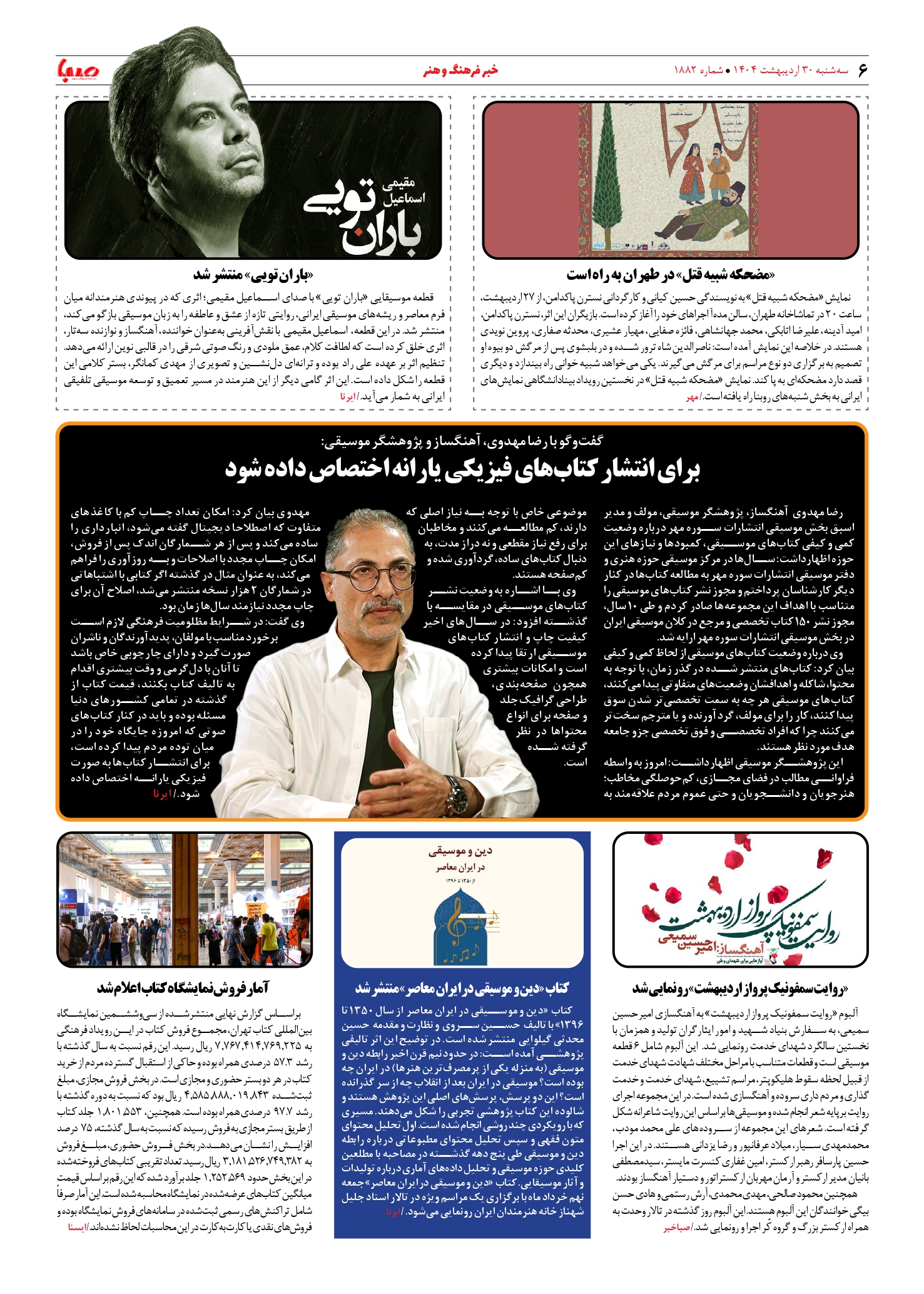 شماره ۱۸۸۲| روزنامه صبا سهشنبه ۳۰ اردیبهشت ۱۴۰۴