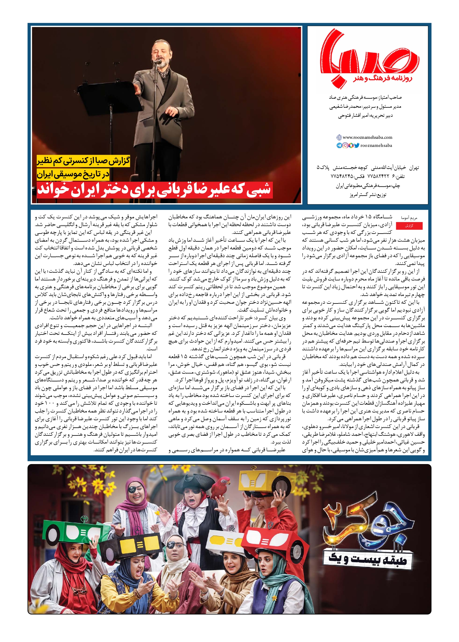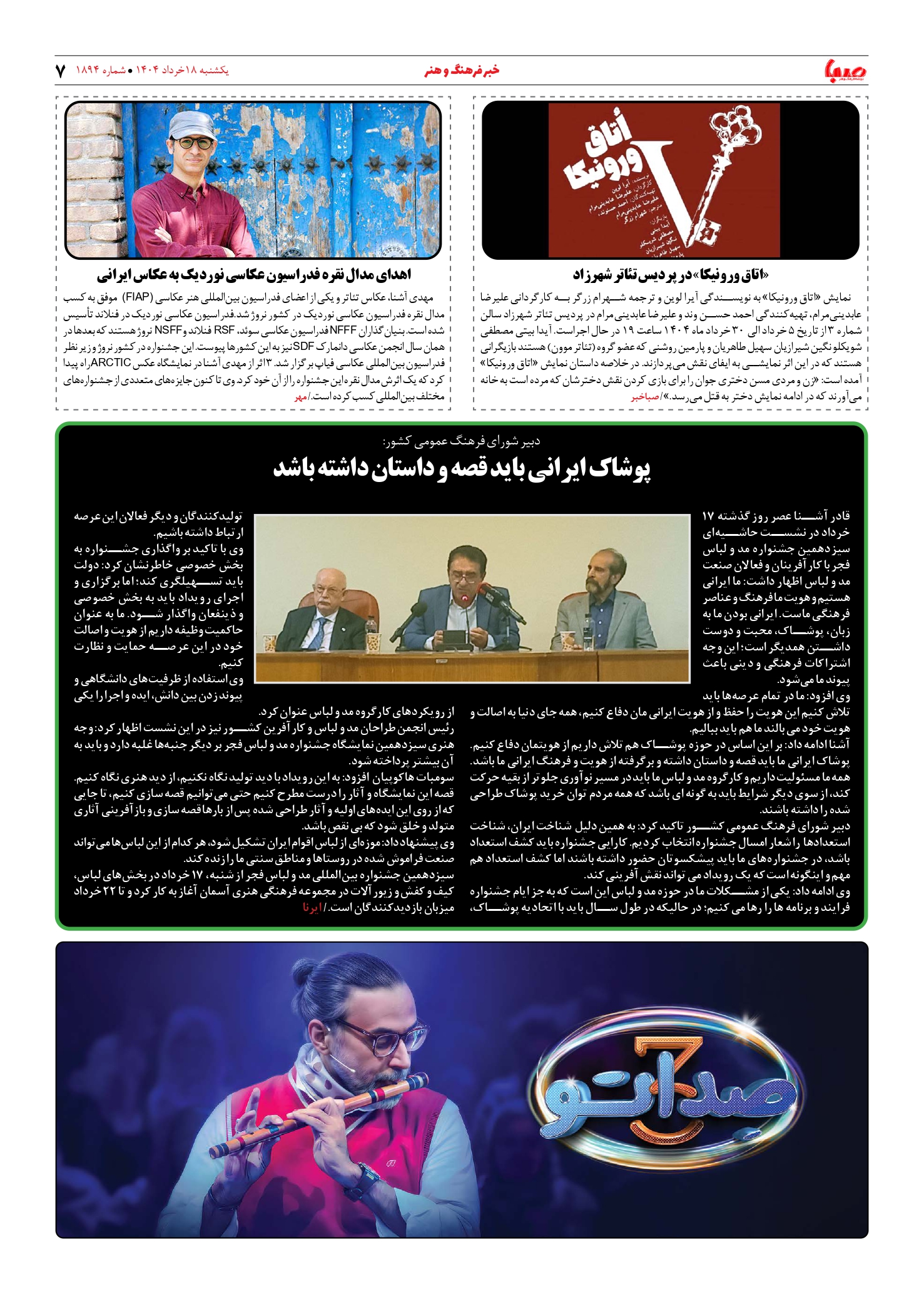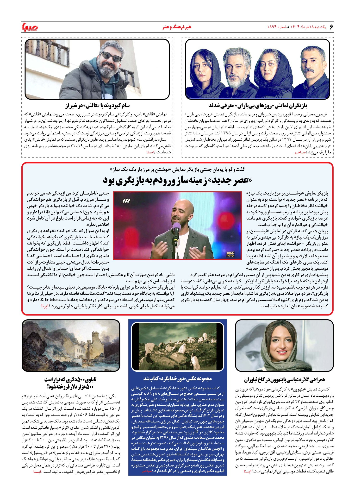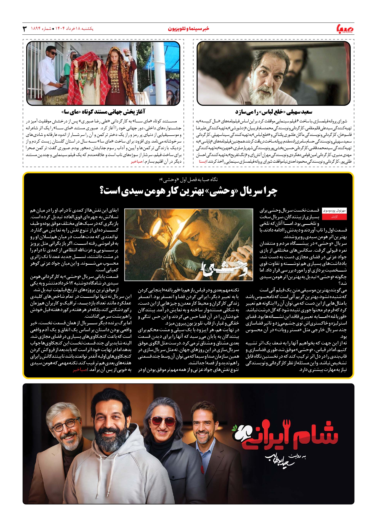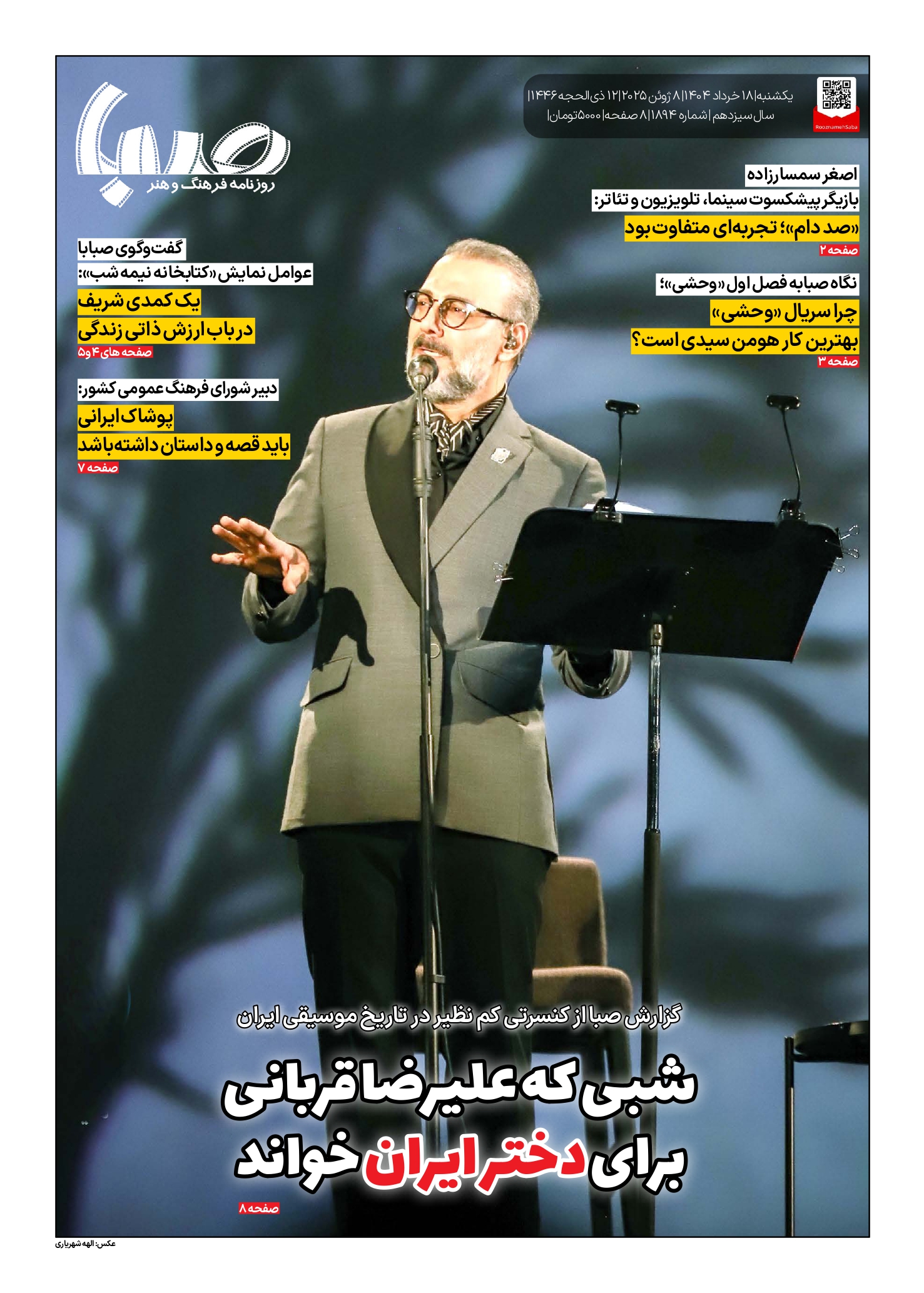 شماره ۱۸۹۴| روزنامه صبا یکشنبه ۱۸ خرداد ۱۴۰۴