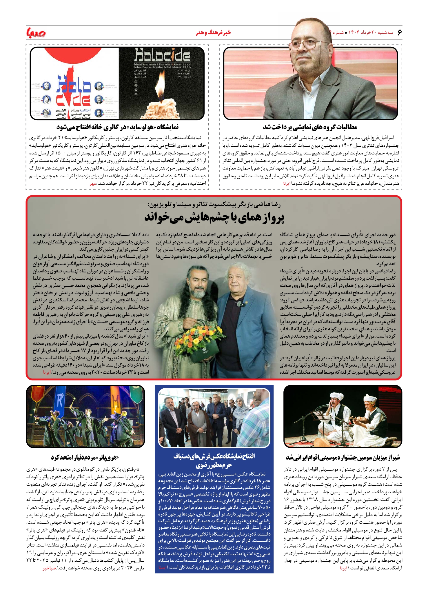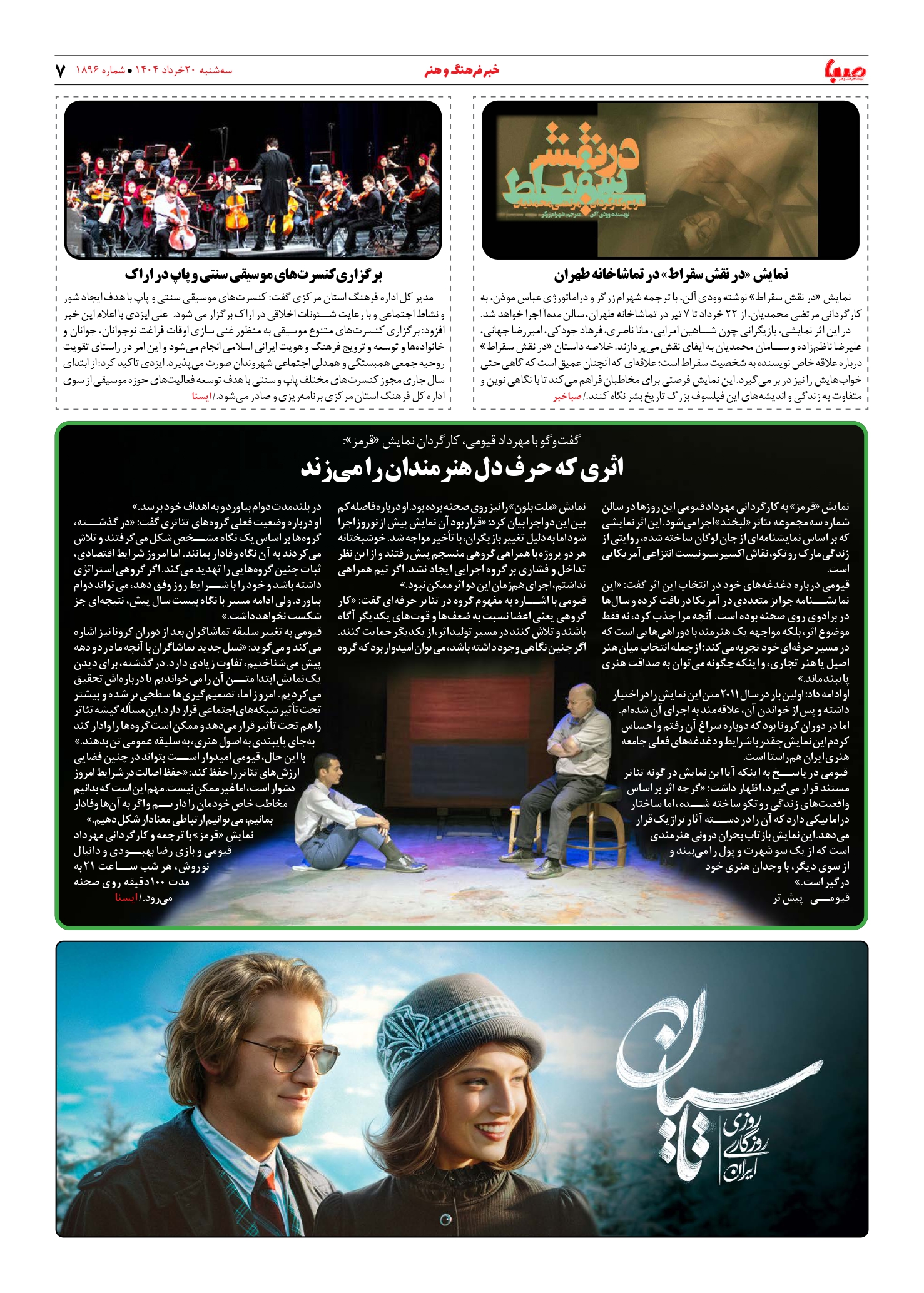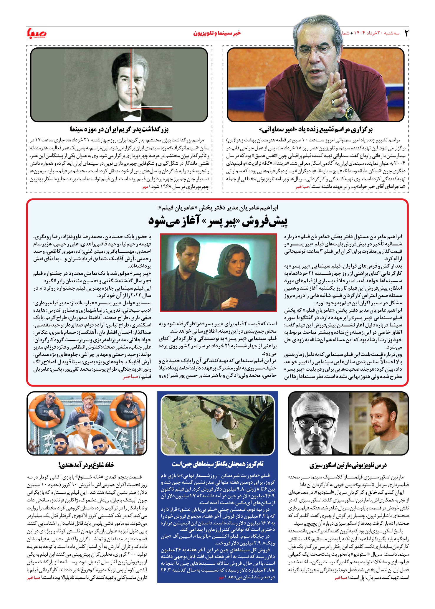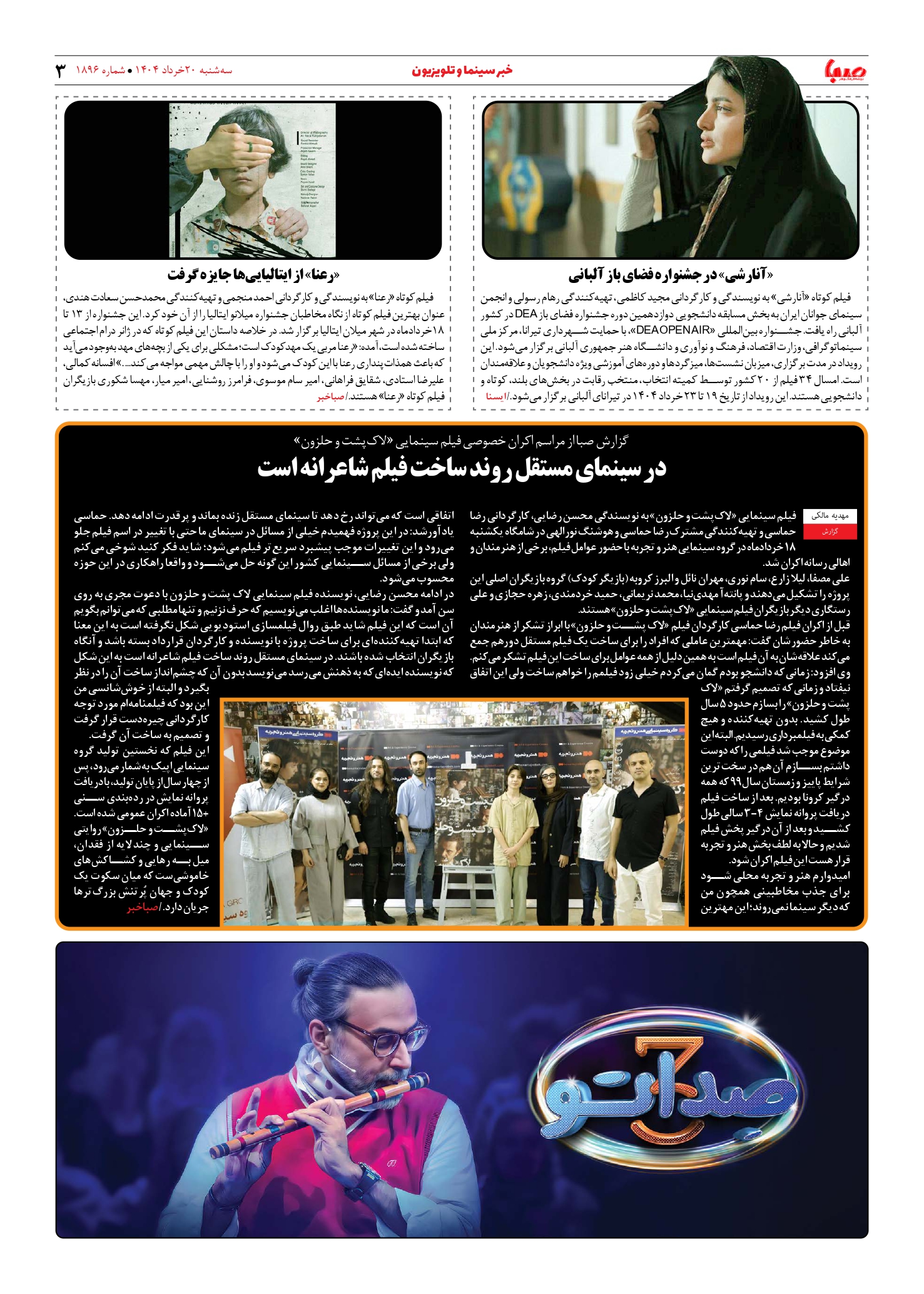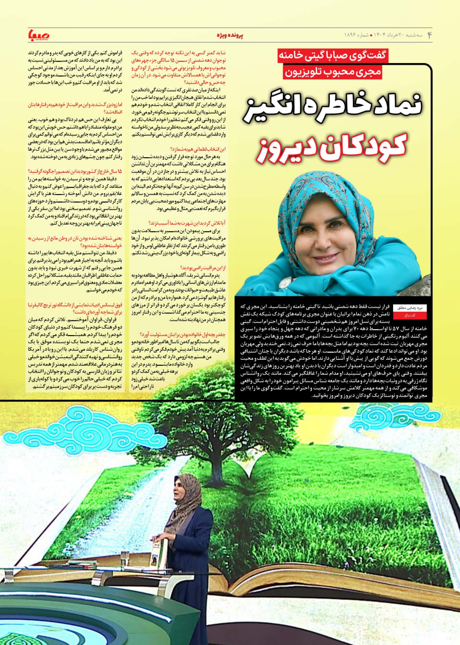 شماره ۱۸۹۶| روزنامه صبا سهشنبه ۲۰ خرداد ۱۴۰۴