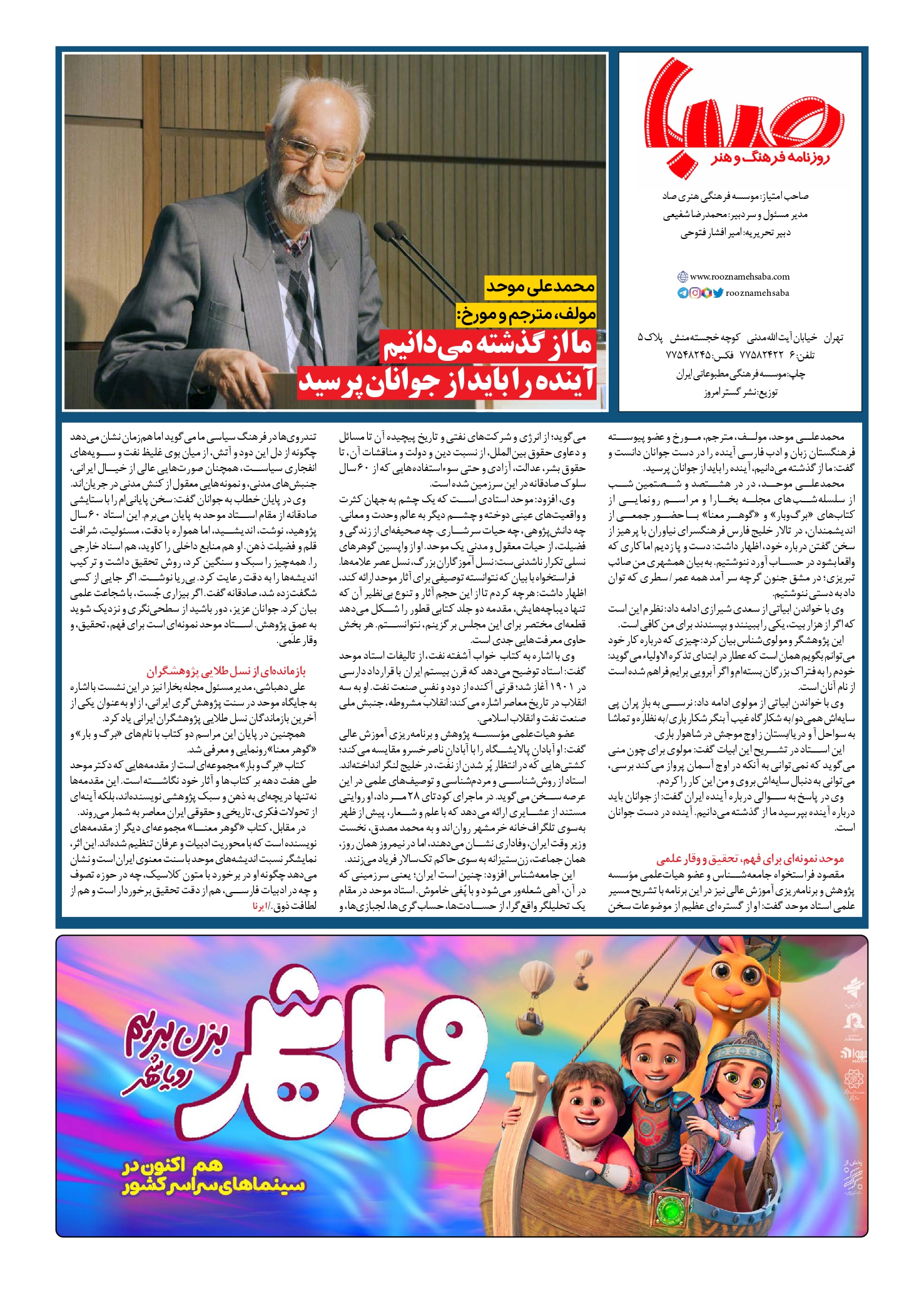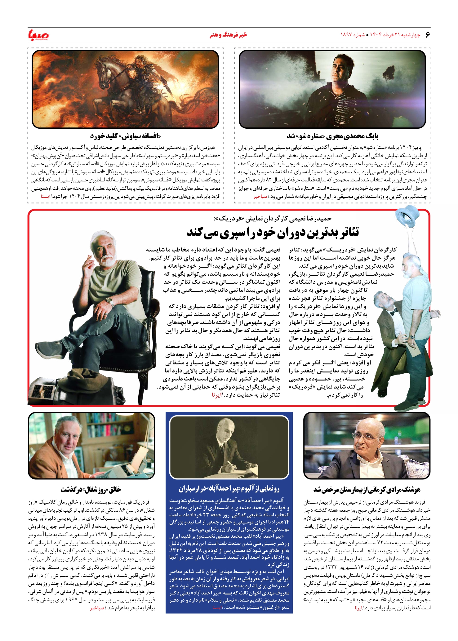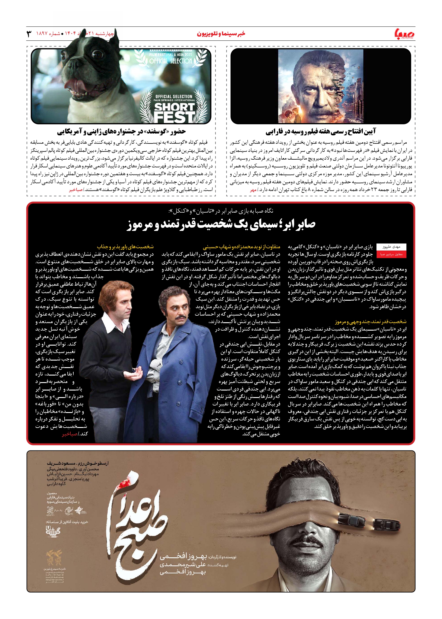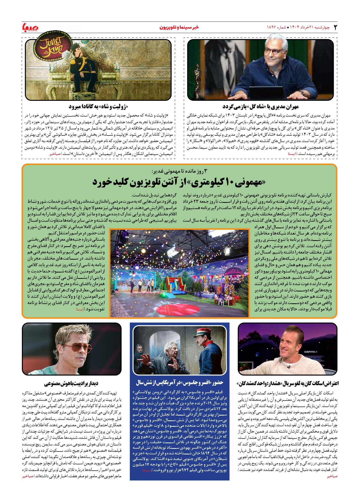 شماره ۱۸۹۷| روزنامه صبا چهارشنبه ۲۱ خرداد ۱۴۰۴