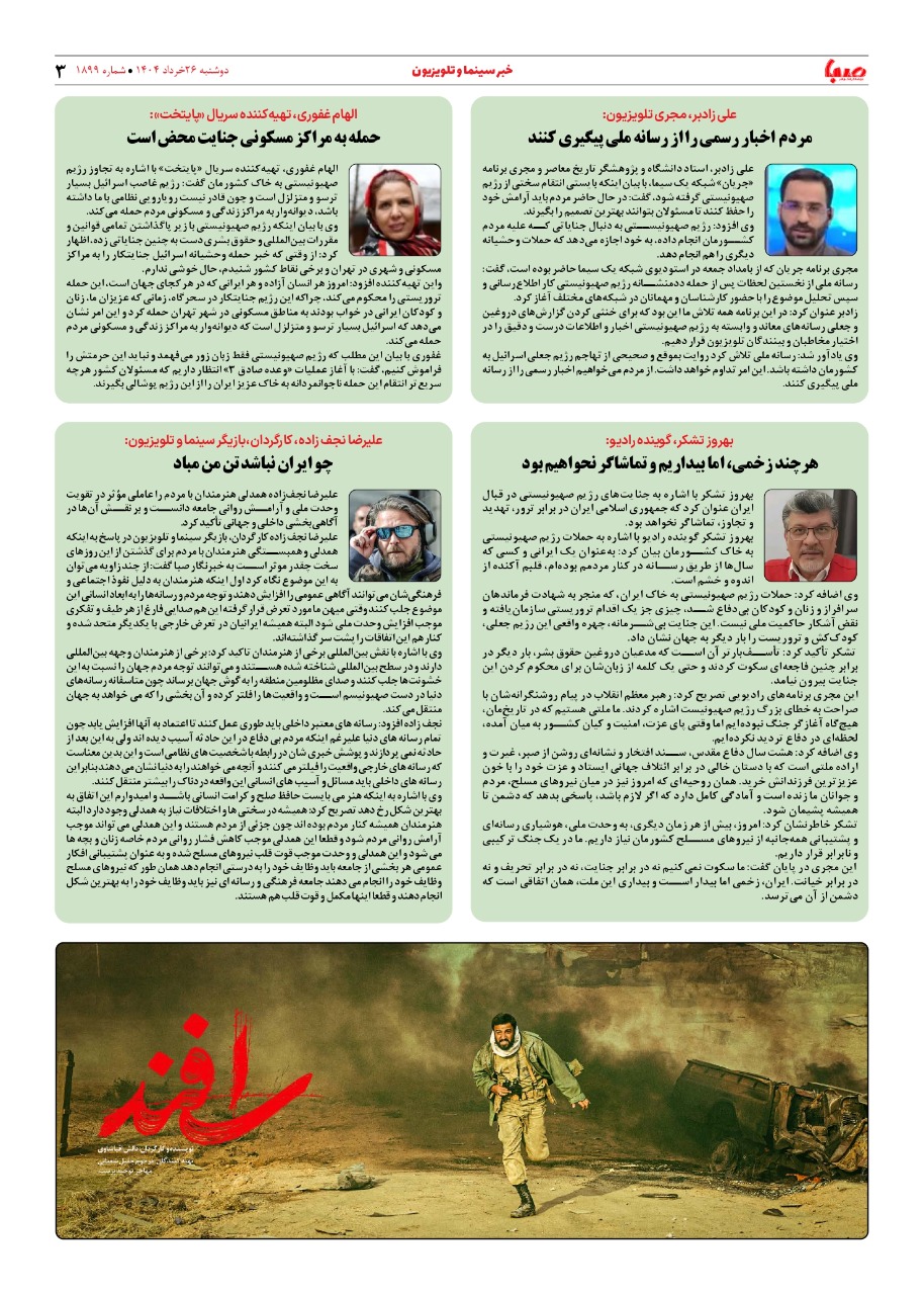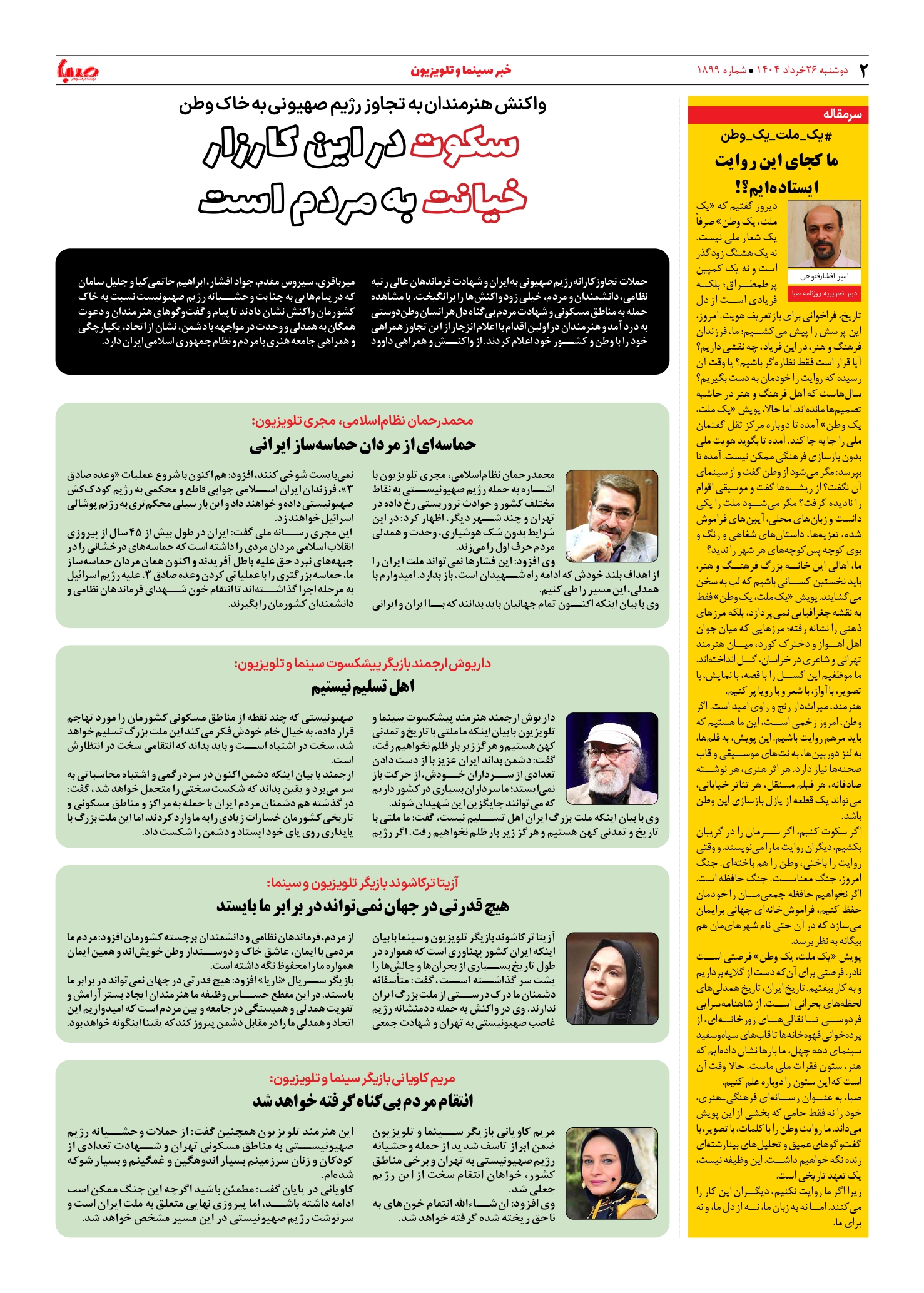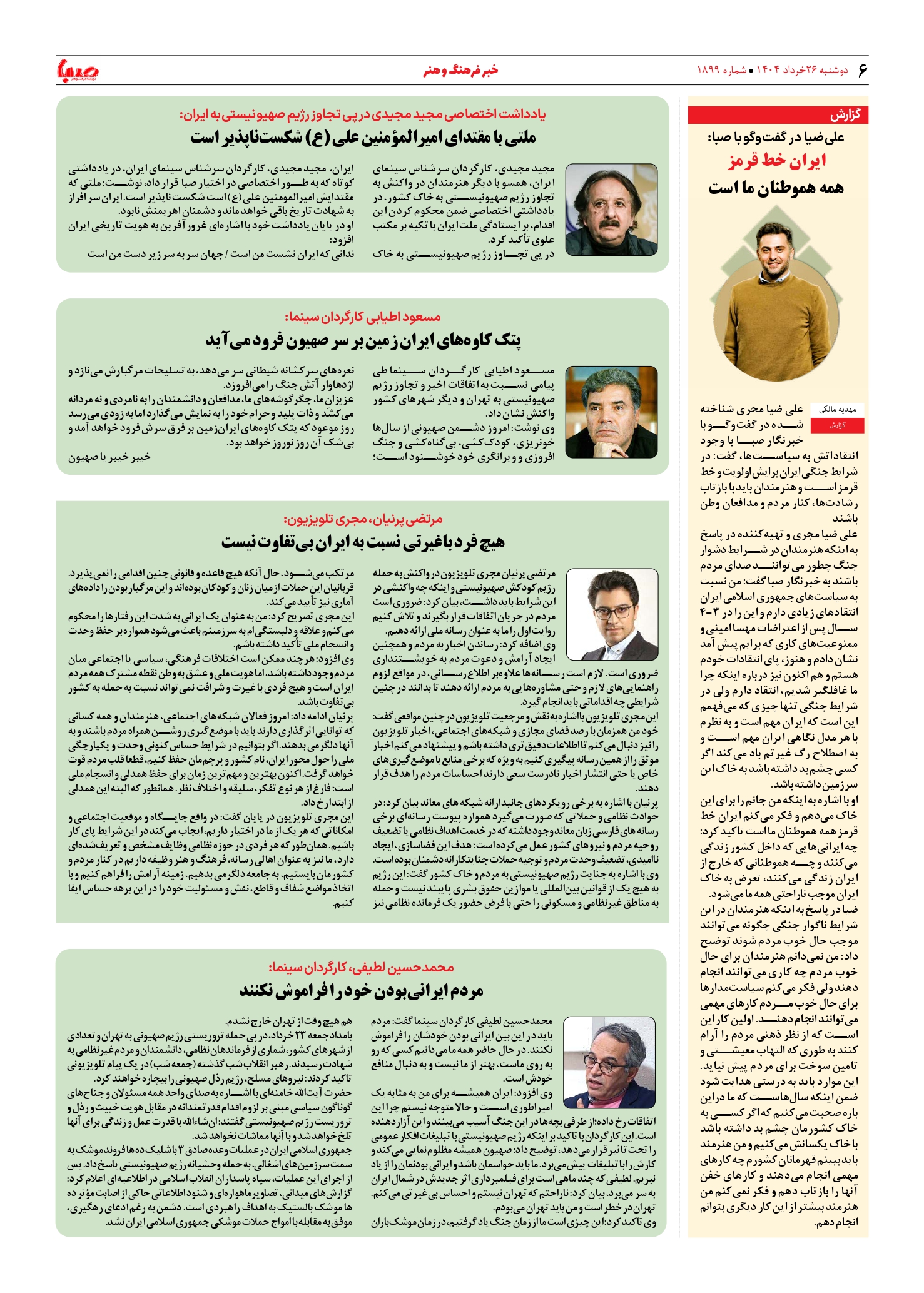 شماره ۱۸۹۹| روزنامه صبا دوشنبه ۲۶ خرداد ۱۴۰۴