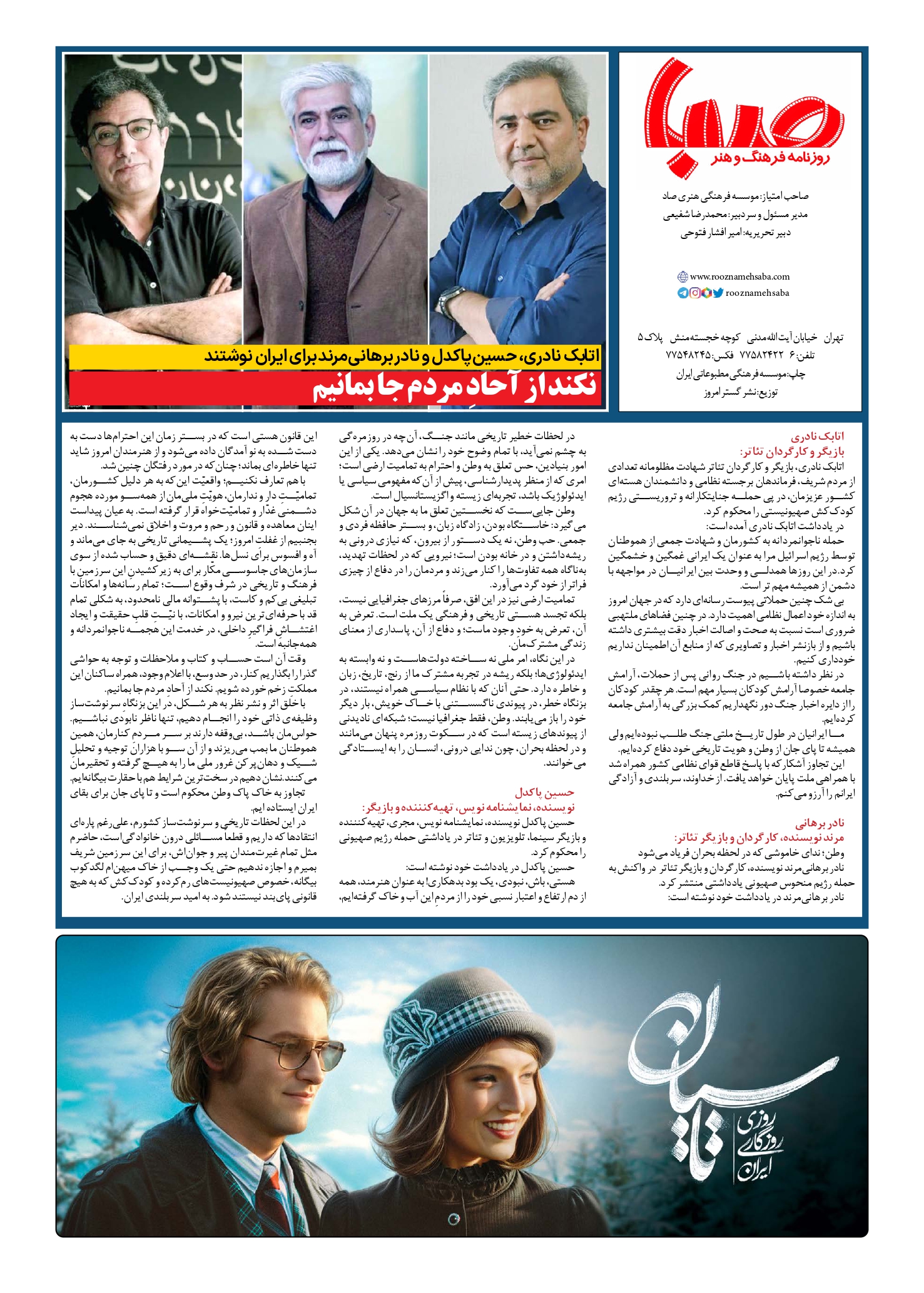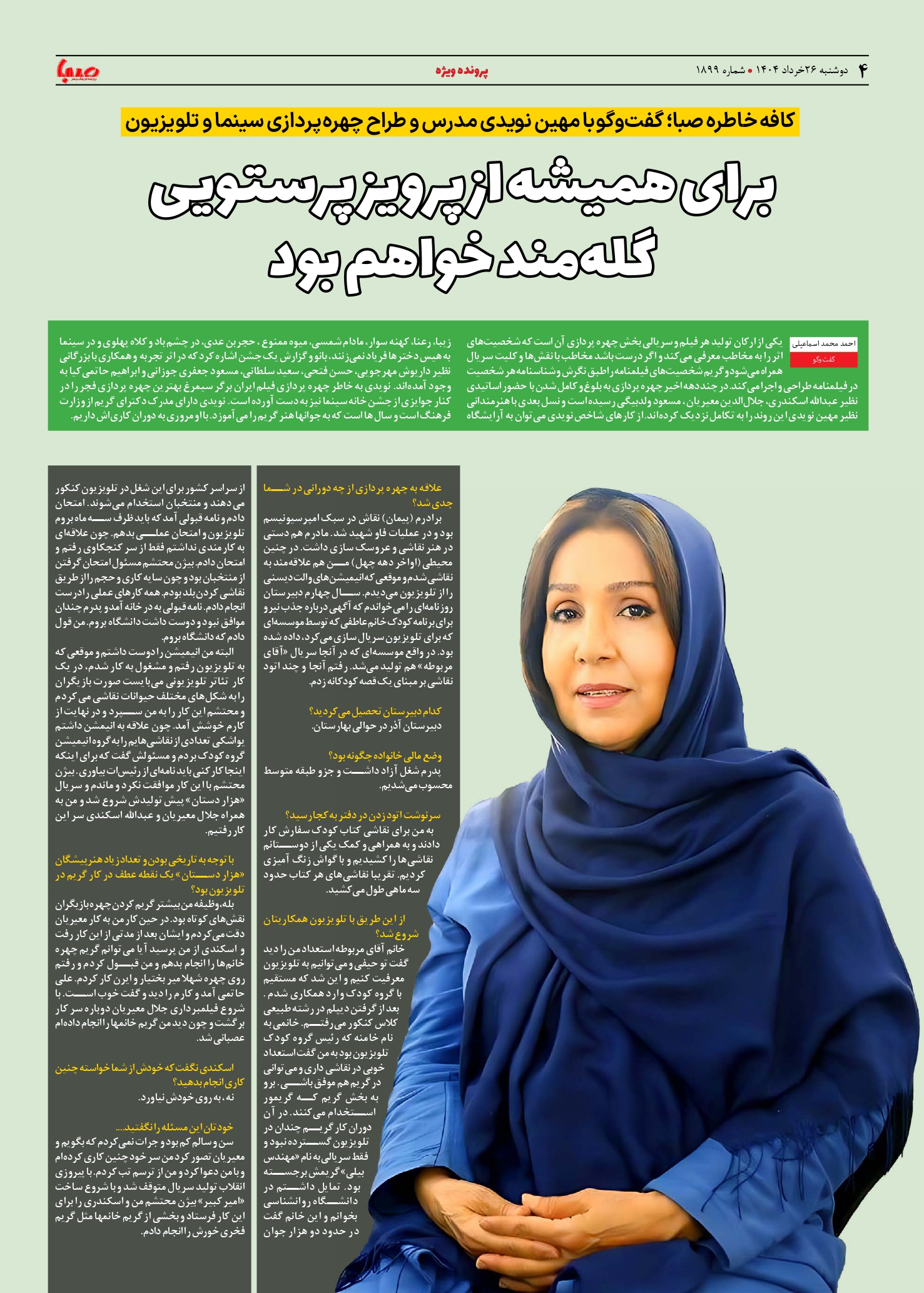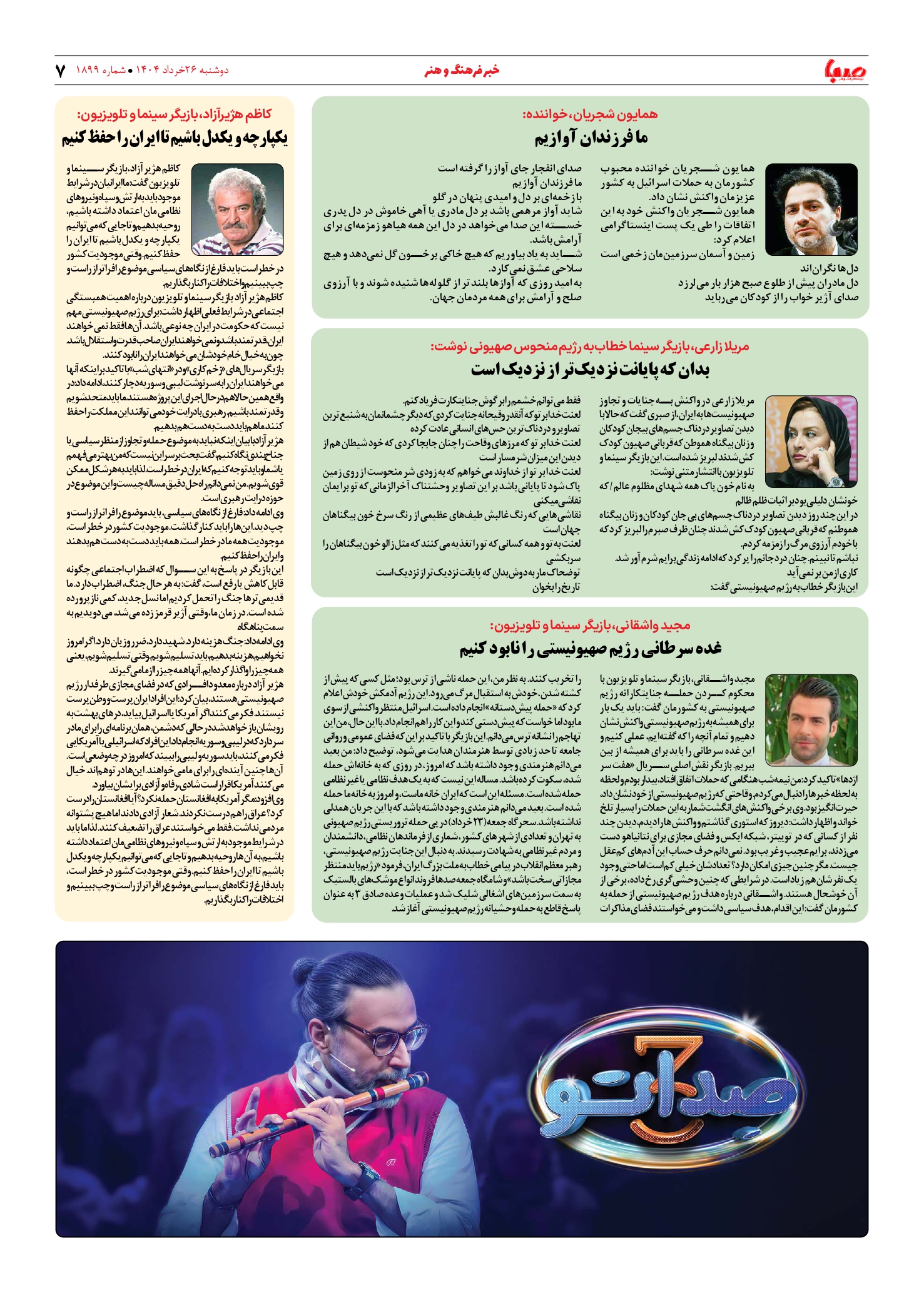 شماره ۱۸۹۹| روزنامه صبا دوشنبه ۲۶ خرداد ۱۴۰۴