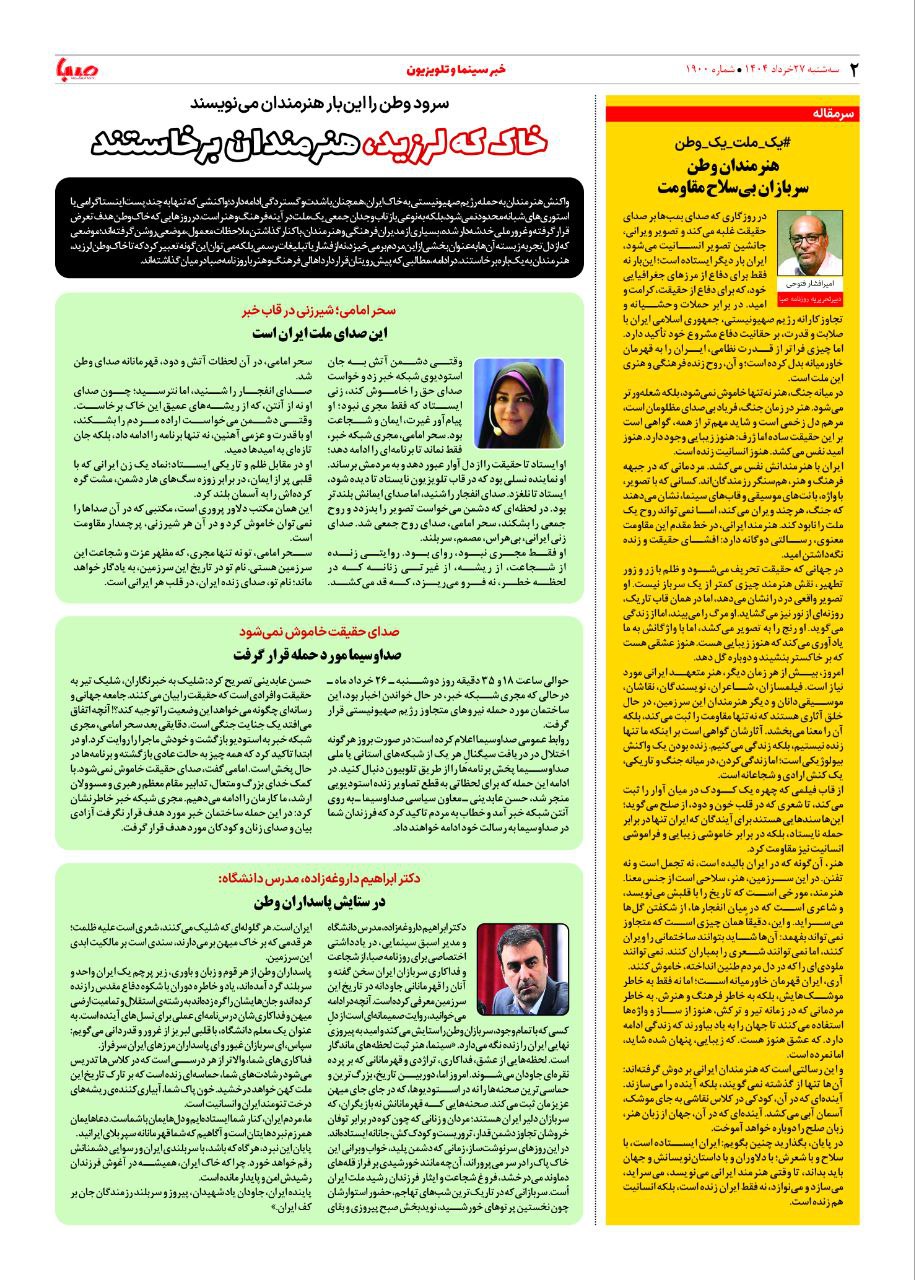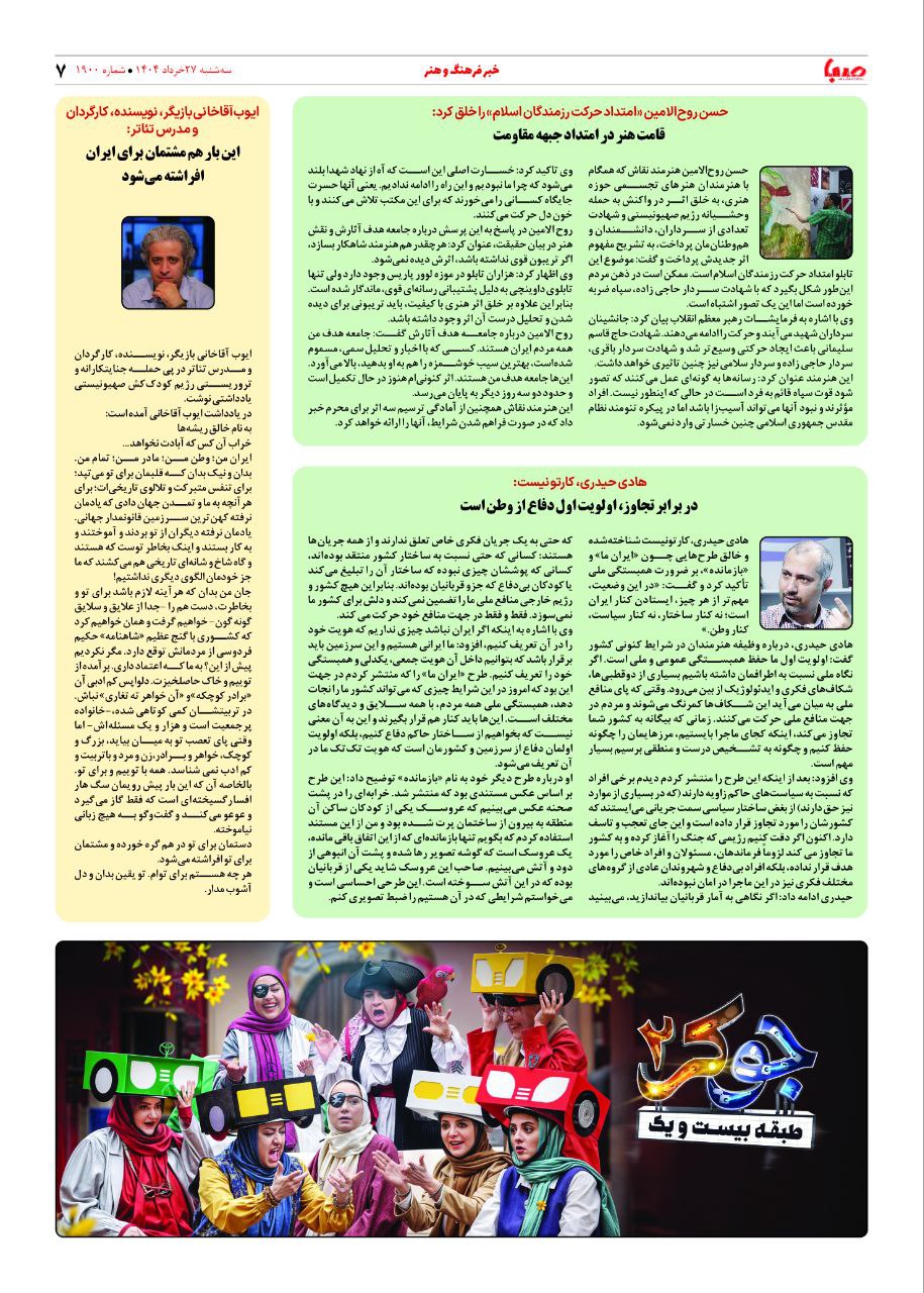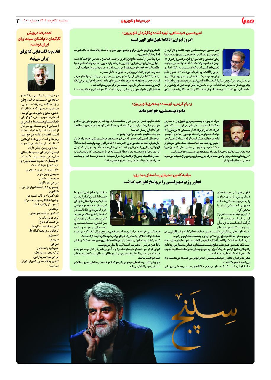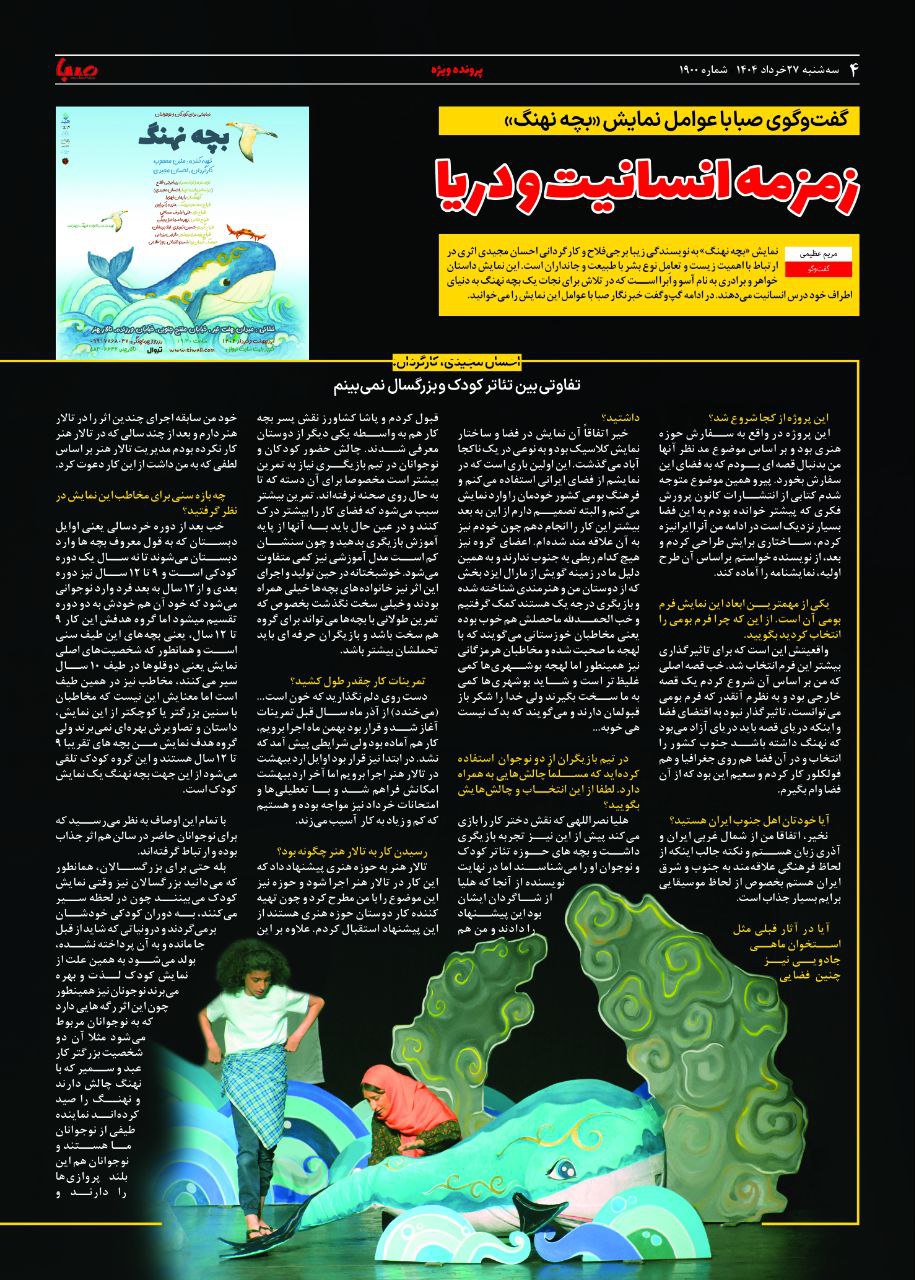 شماره ۱۹۰۰| روزنامه صبا سه شنبه ۲۷ خرداد ۱۴۰۴