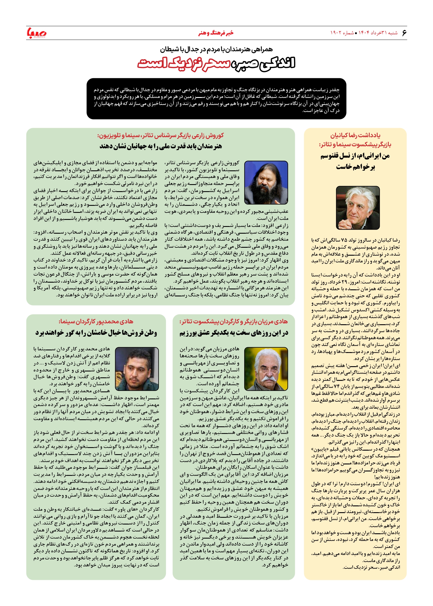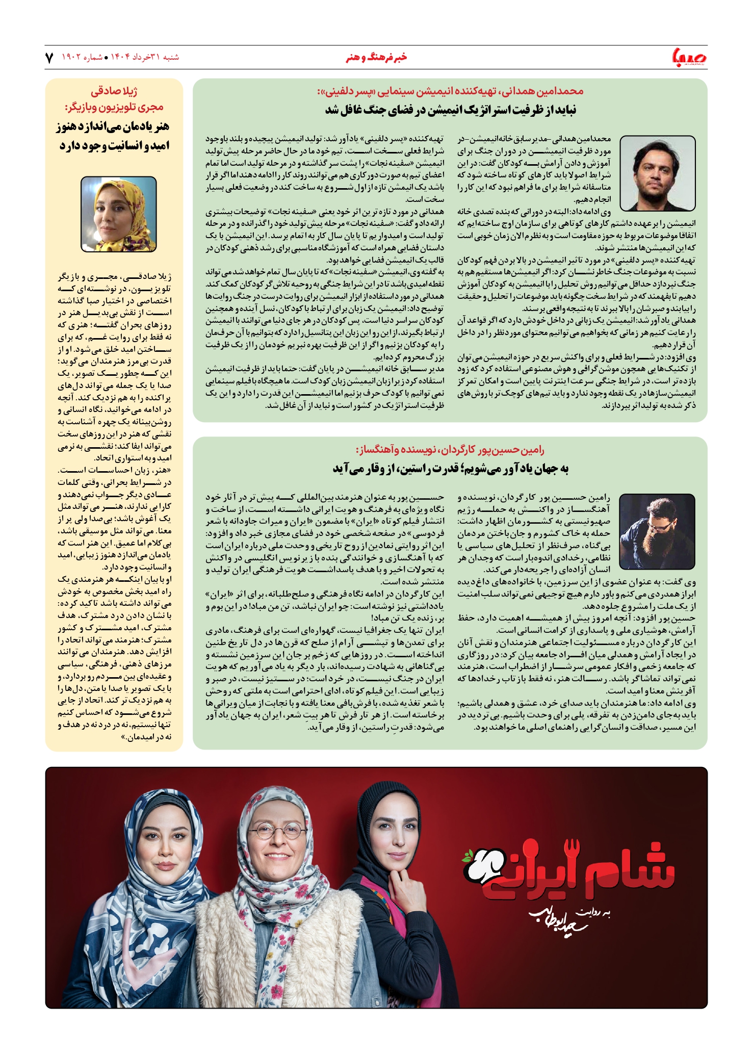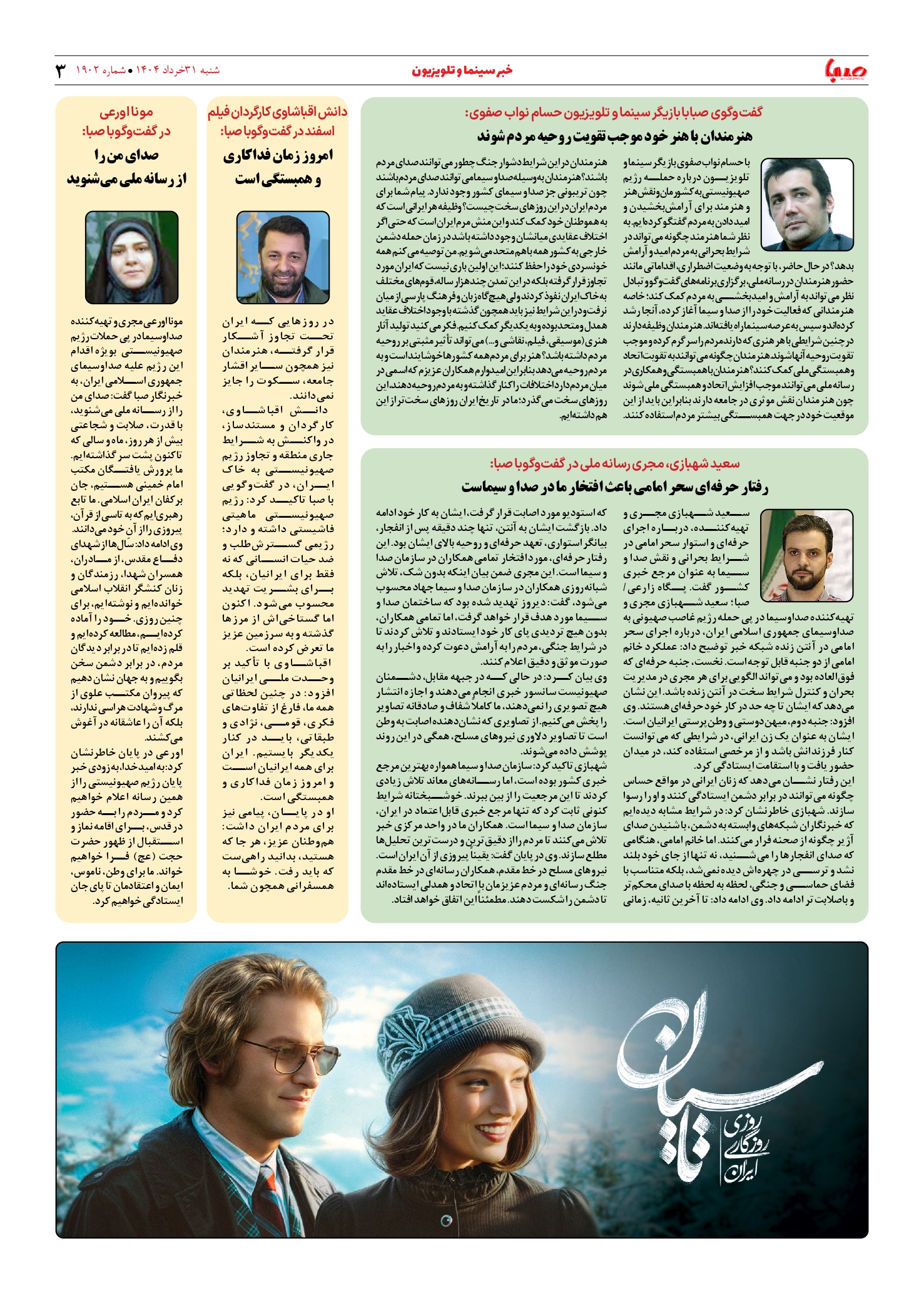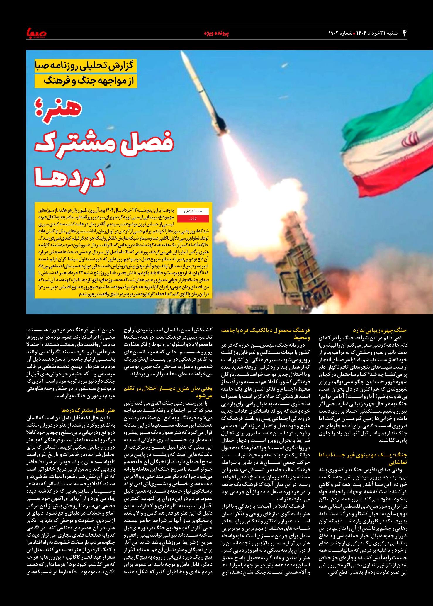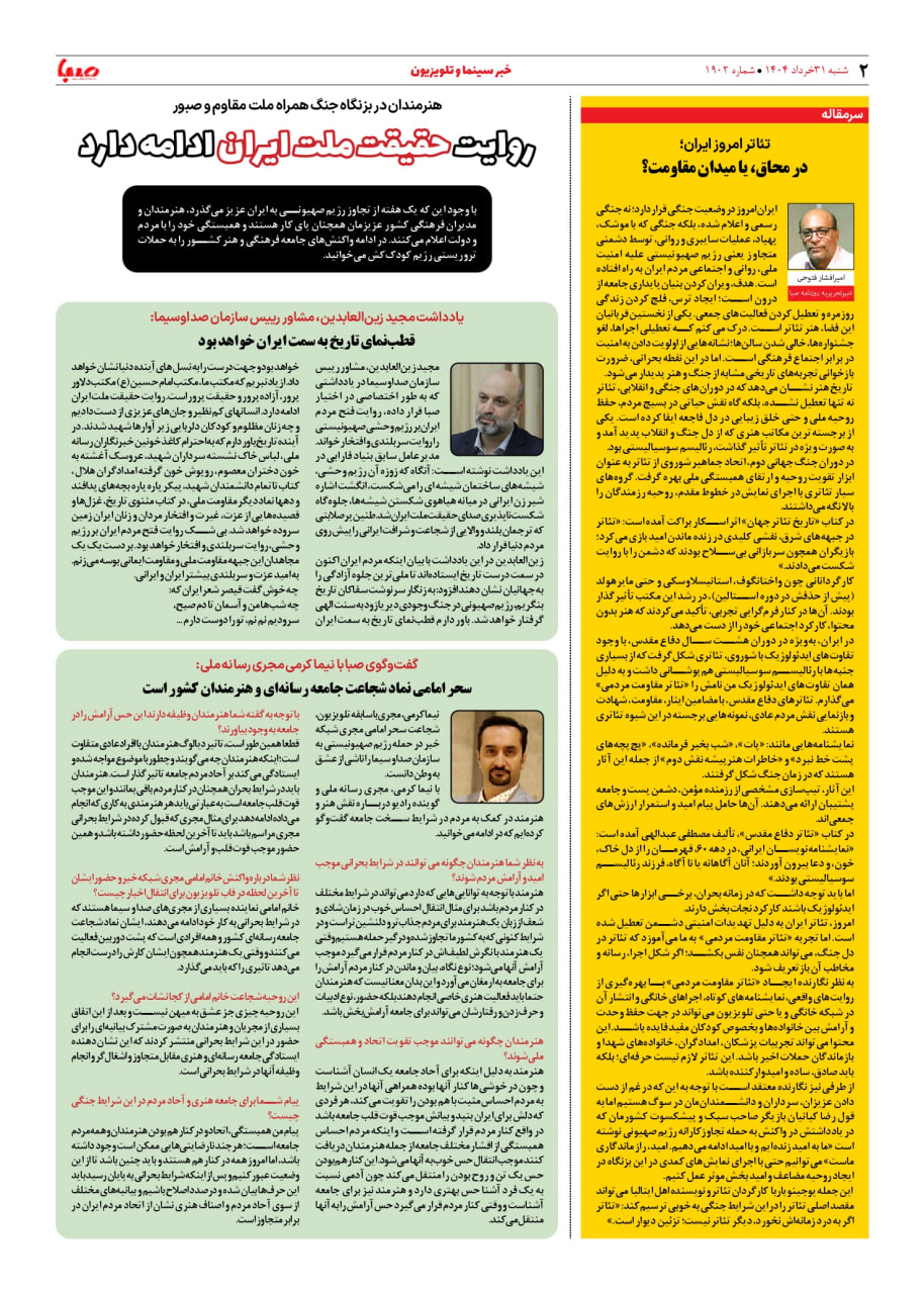 شماره ۱۹۰۲| روزنامه صبا شنبه ۳۱ خرداد ۱۴۰۴