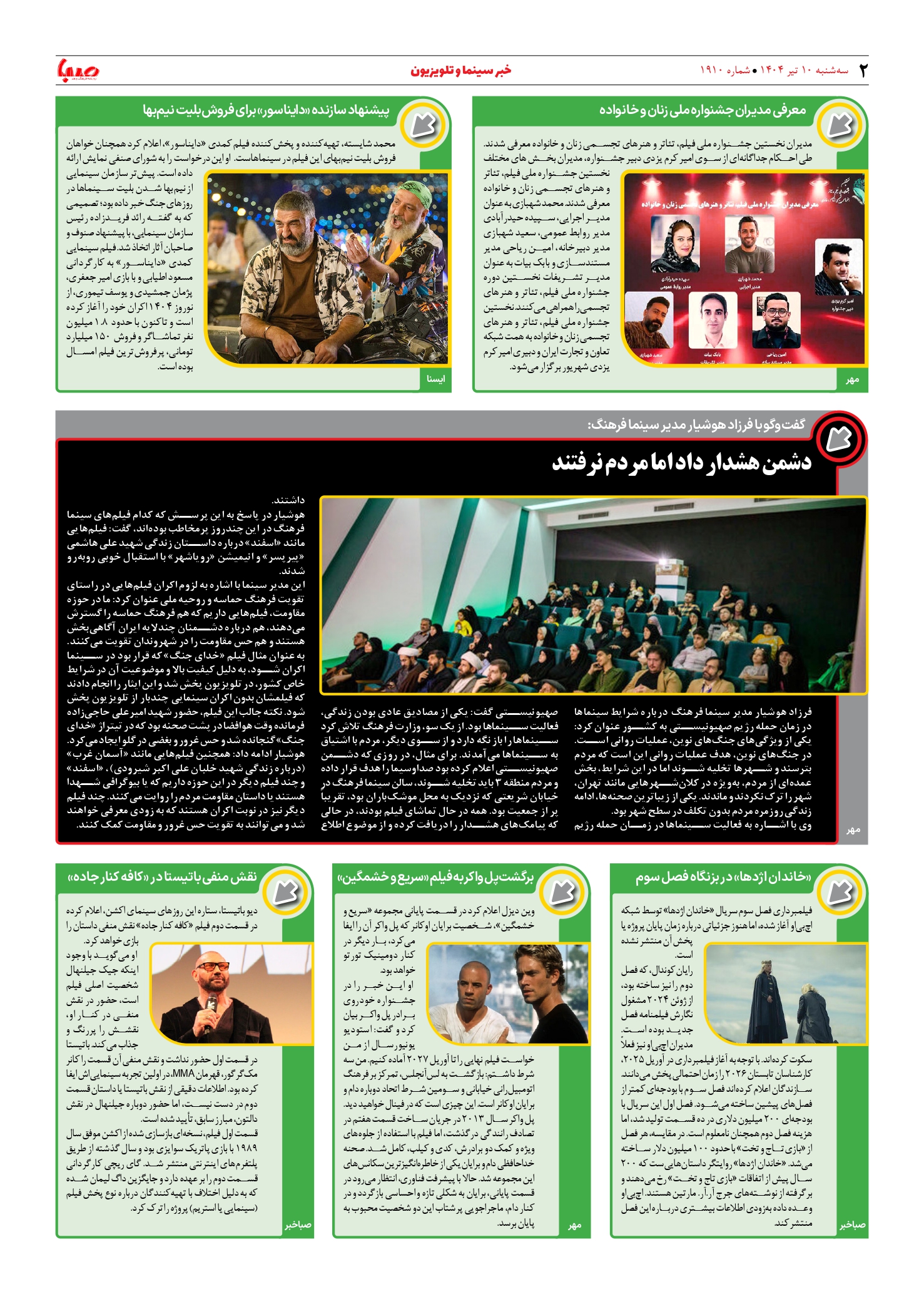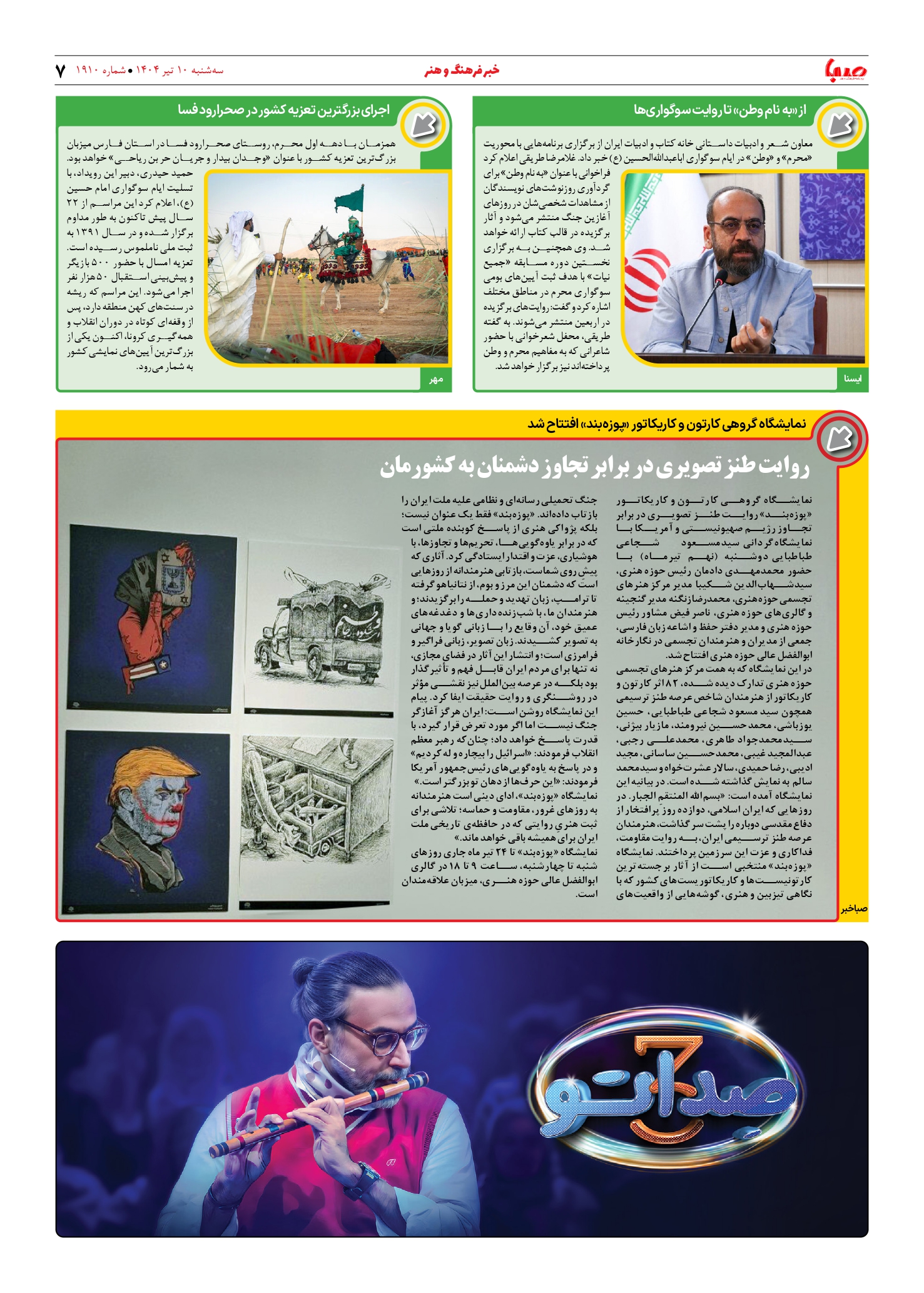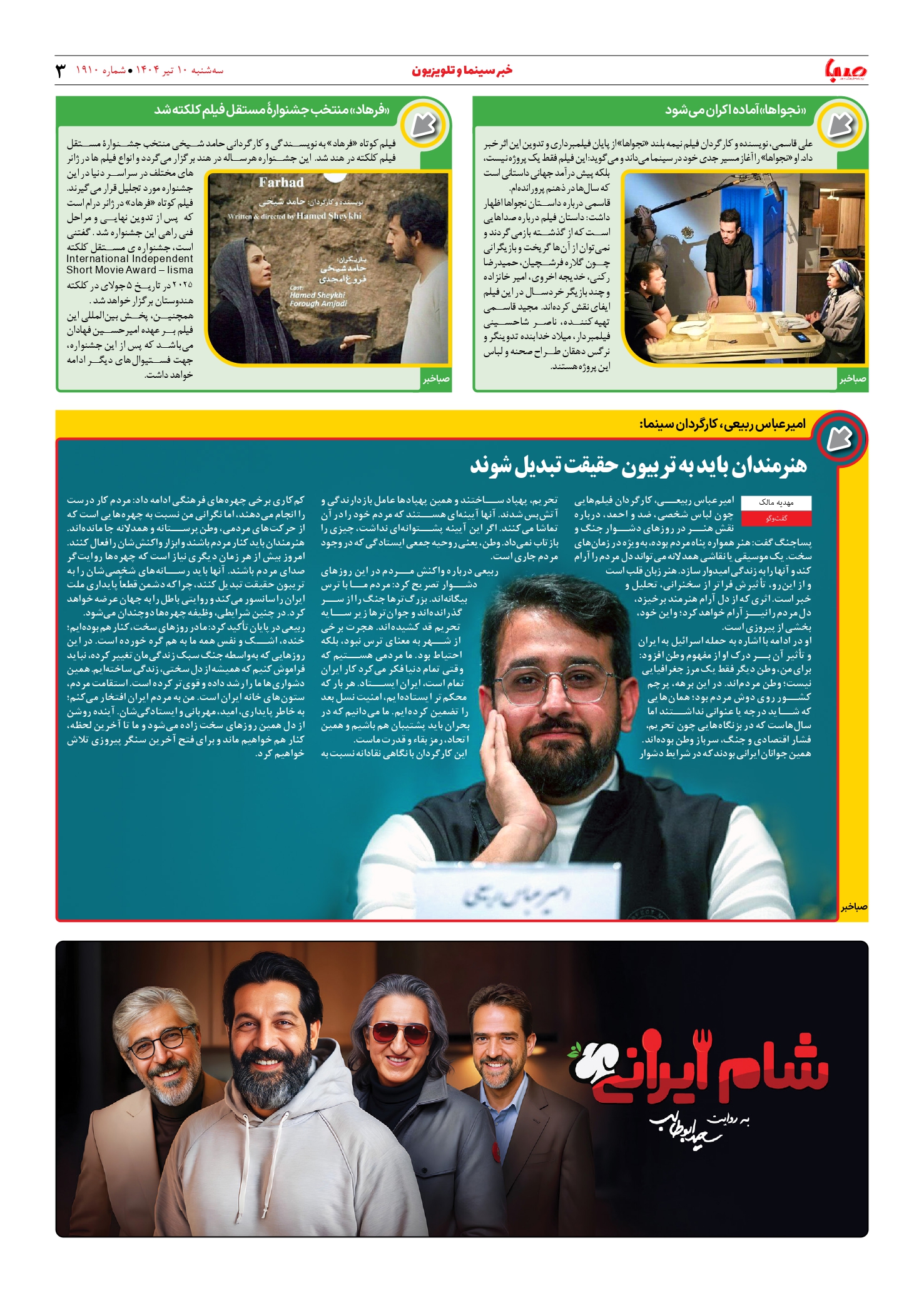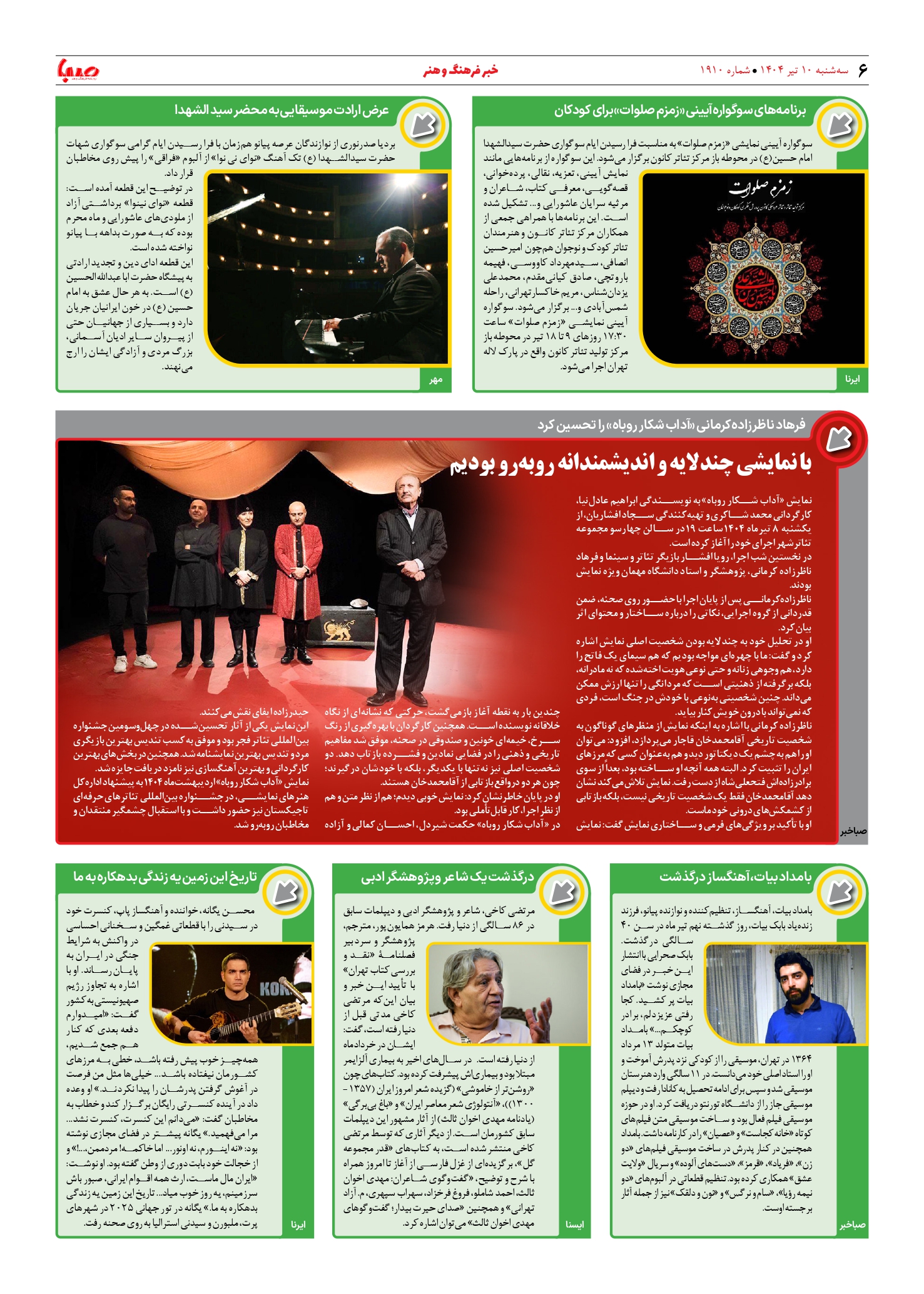 شماره ۱۹۱۰| روزنامه صبا سهشنبه ۱۰ تیر ۱۴۰۴