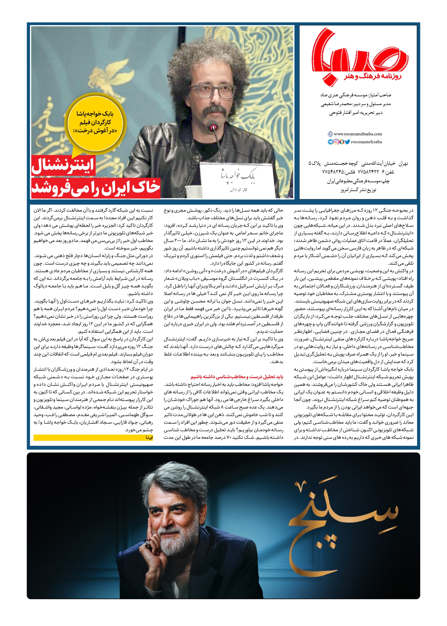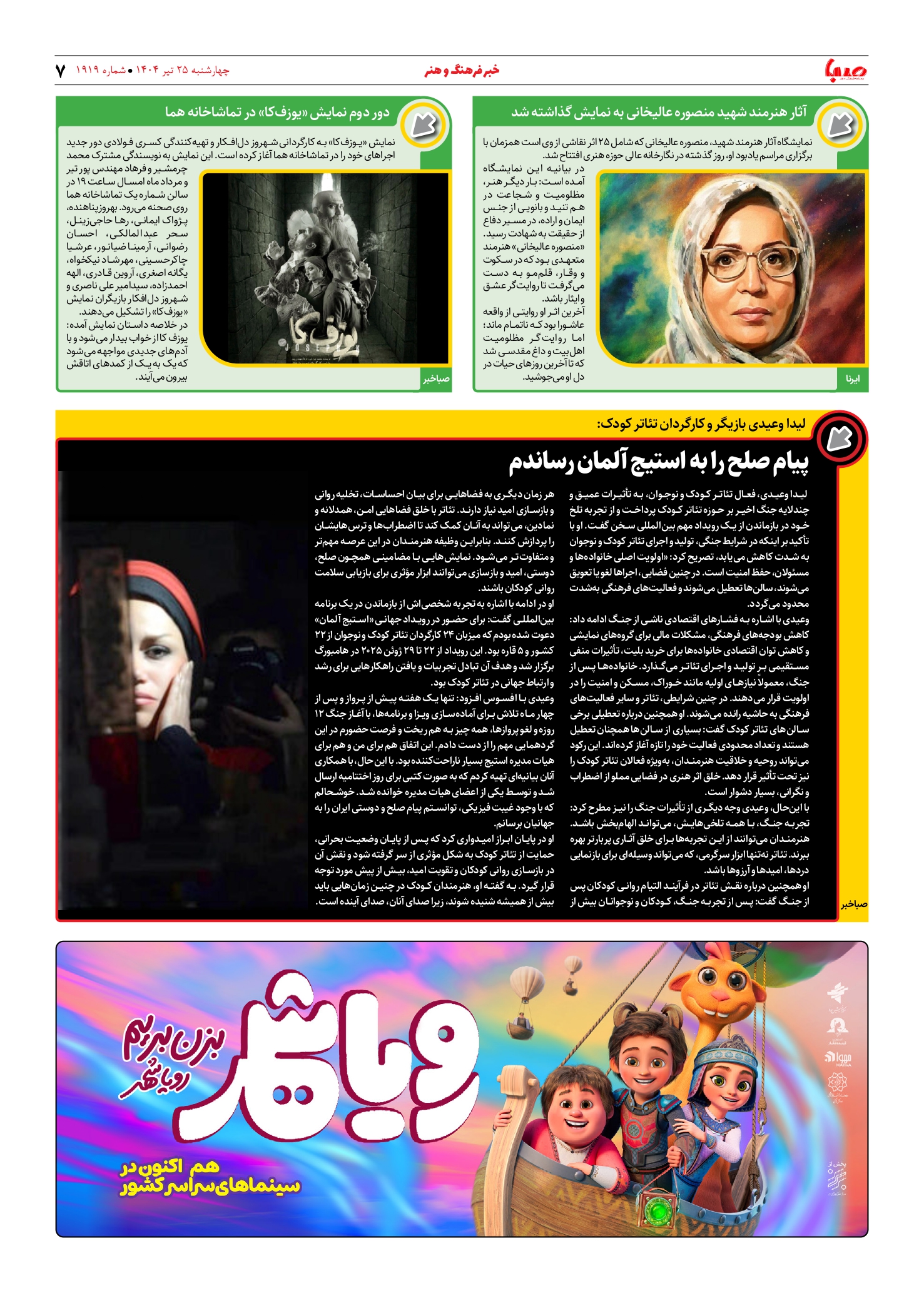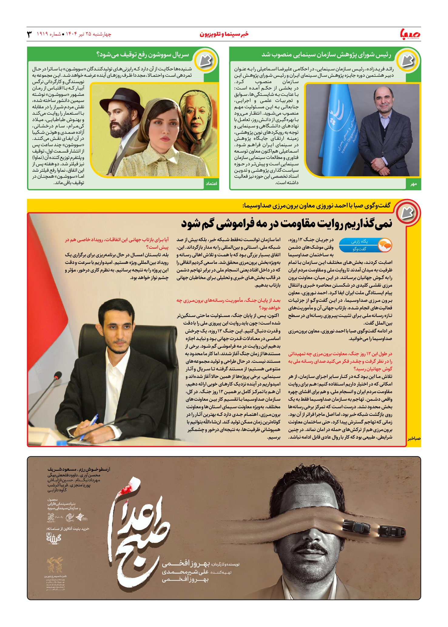 شماره ۱۹۱۹| روزنامه صبا چهارشنبه ۲۵ تیر ۱۴۰۴