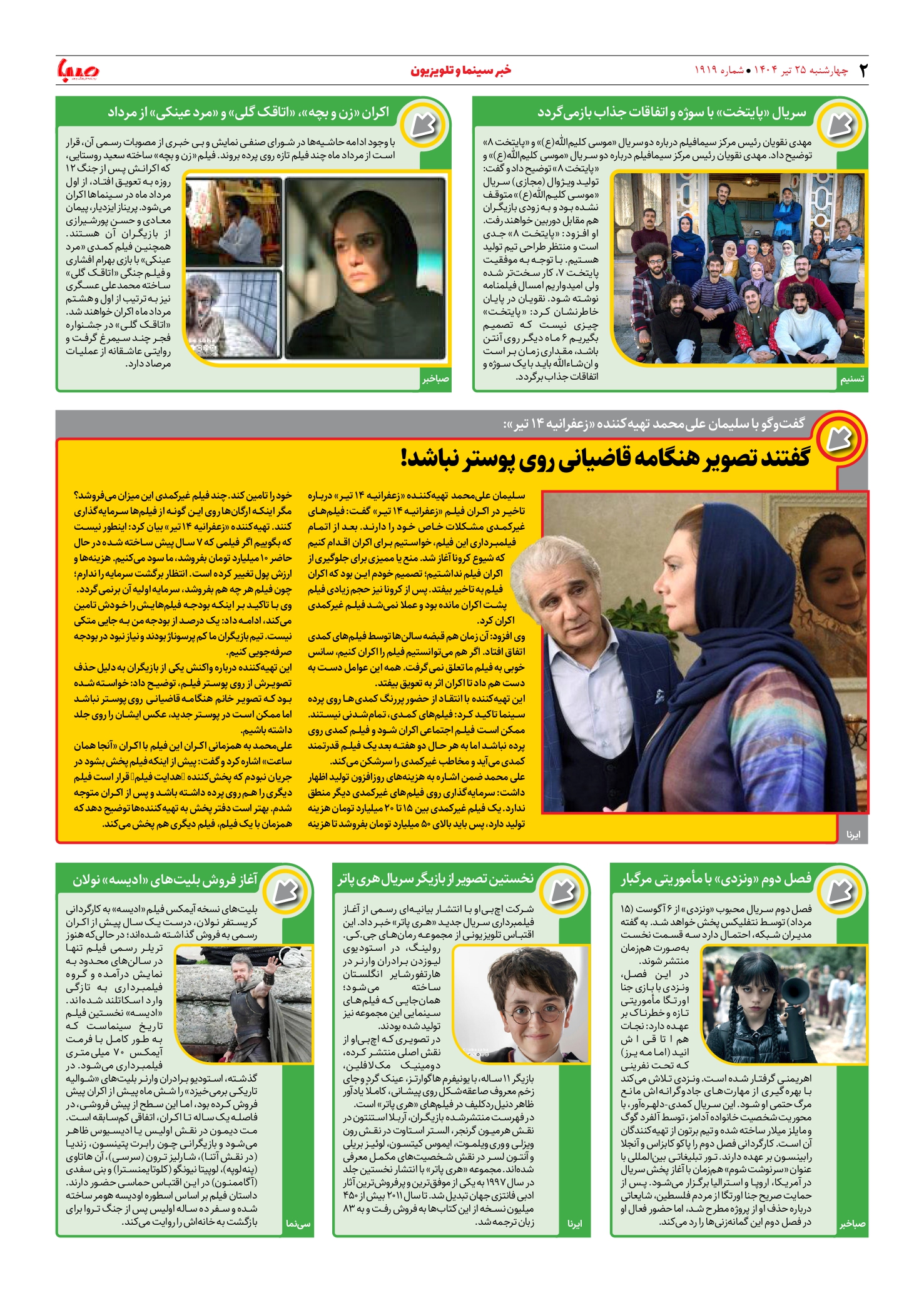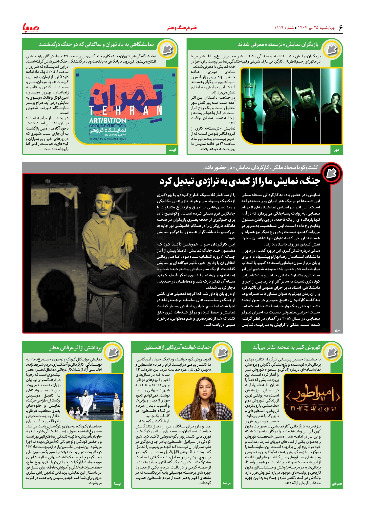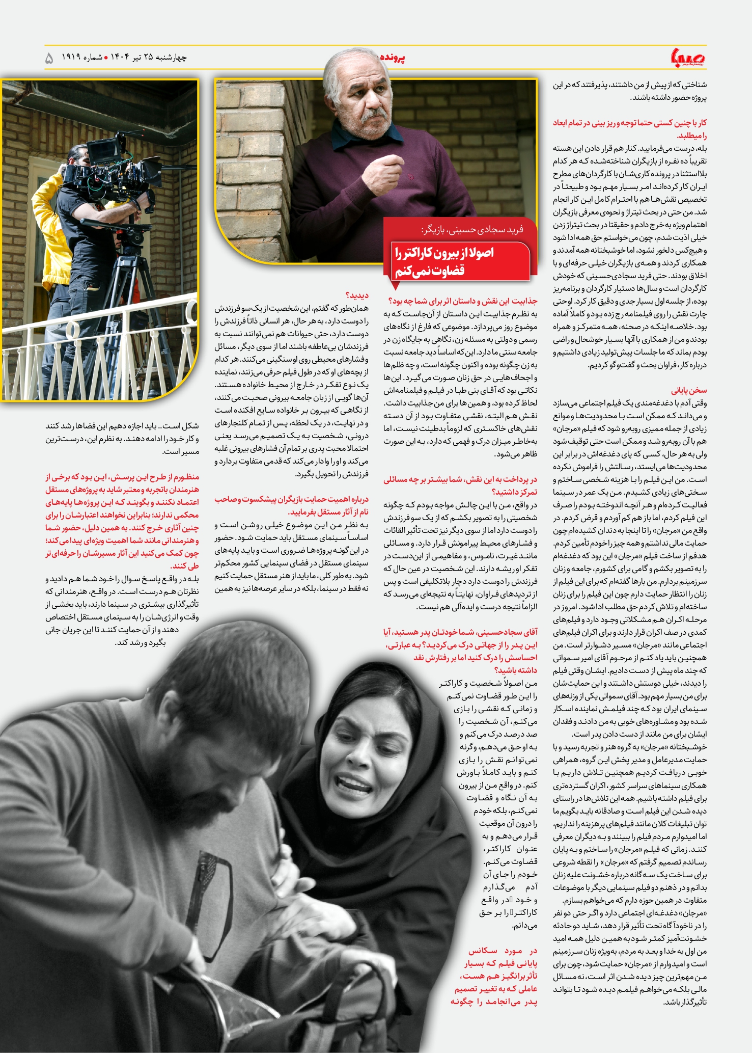 شماره ۱۹۱۹| روزنامه صبا چهارشنبه ۲۵ تیر ۱۴۰۴