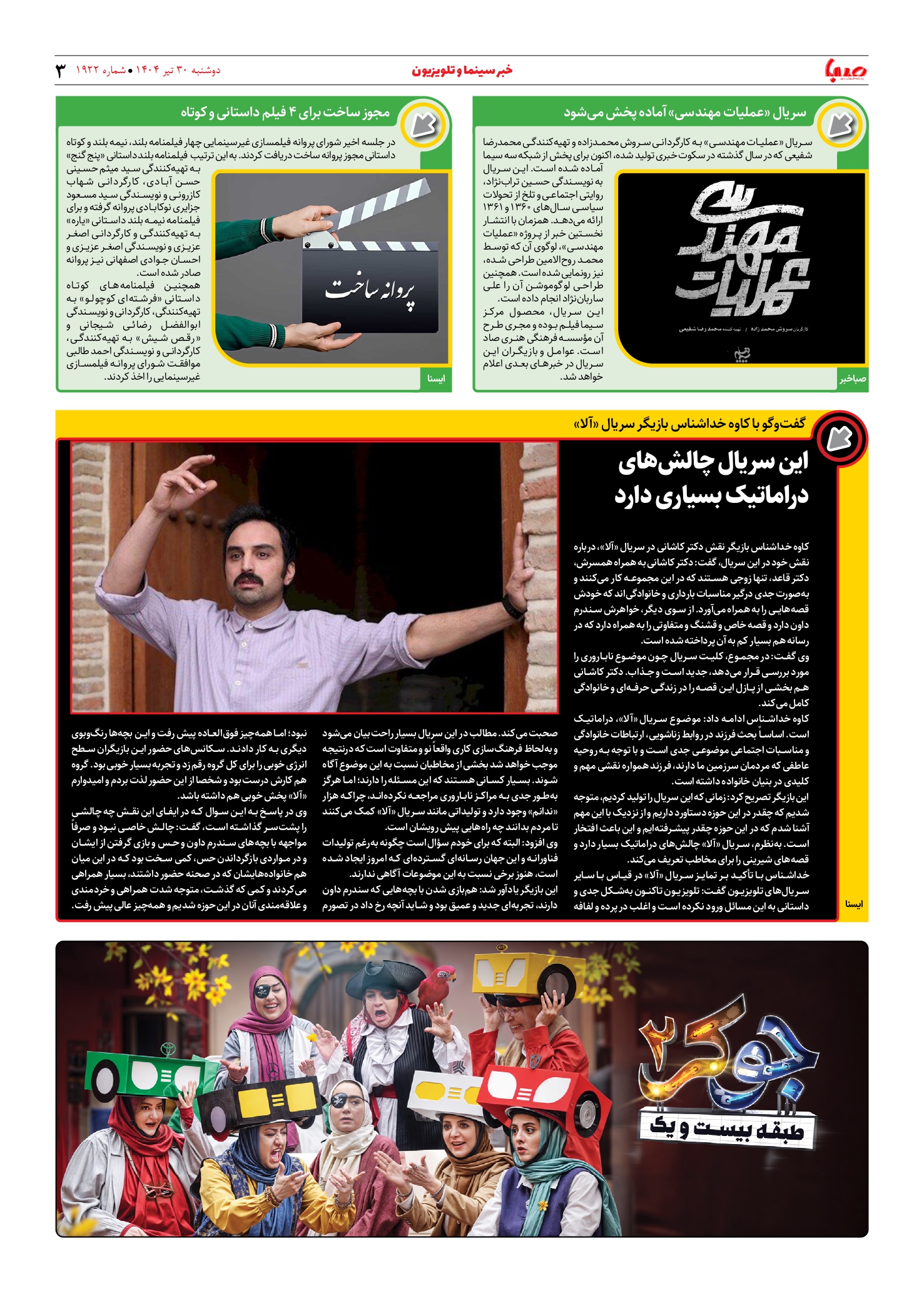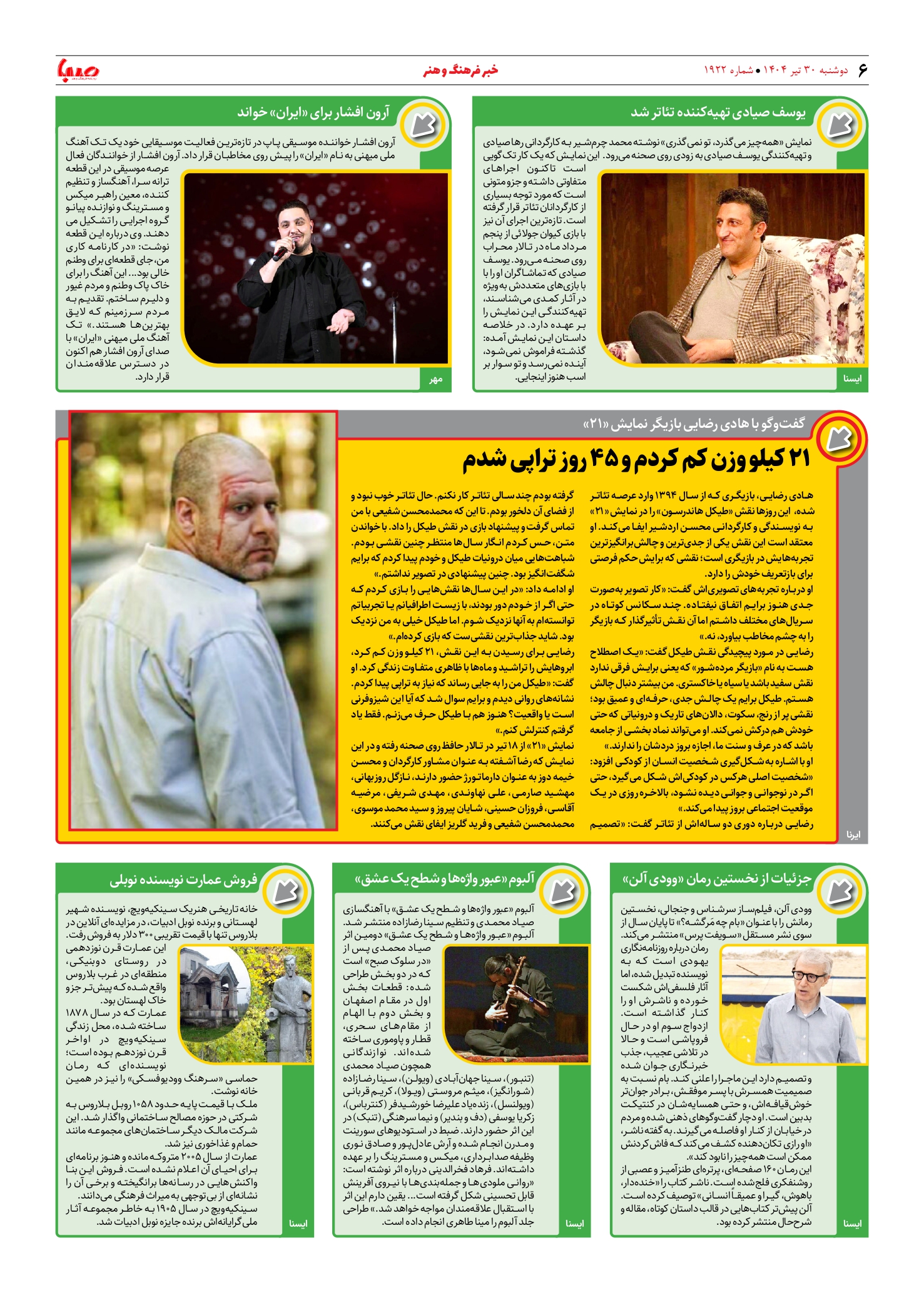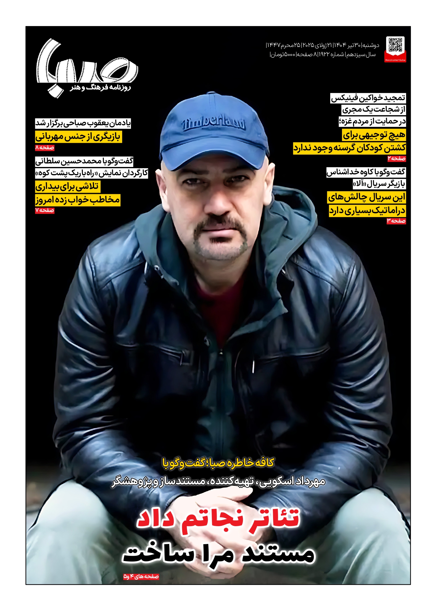 شماره ۱۹۲۲| روزنامه صبا دوشنبه ۳۰ تیر ۱۴۰۴