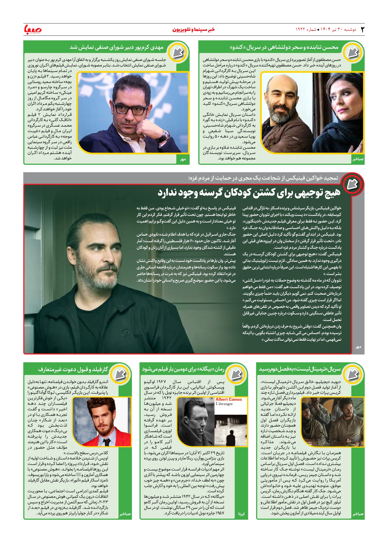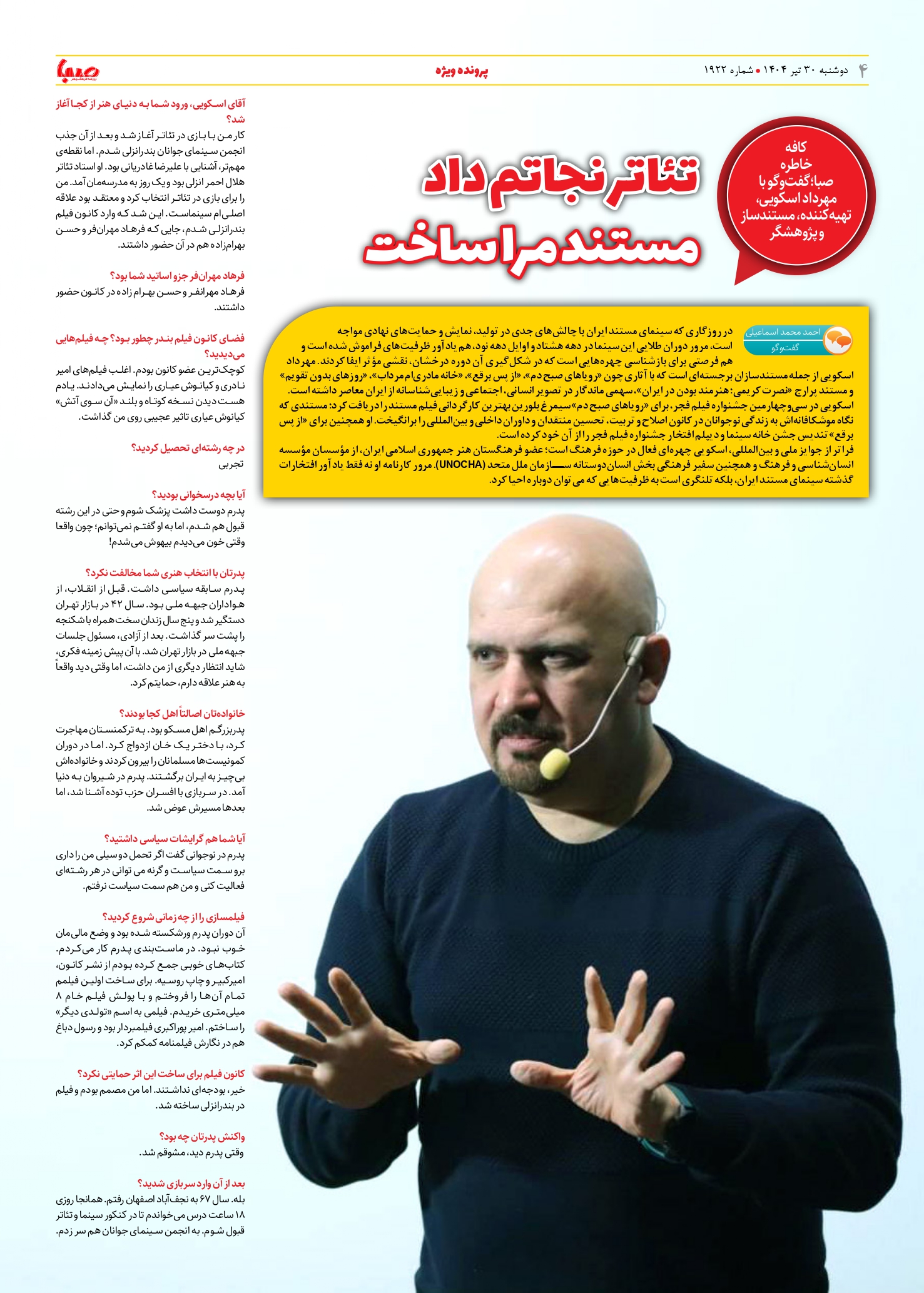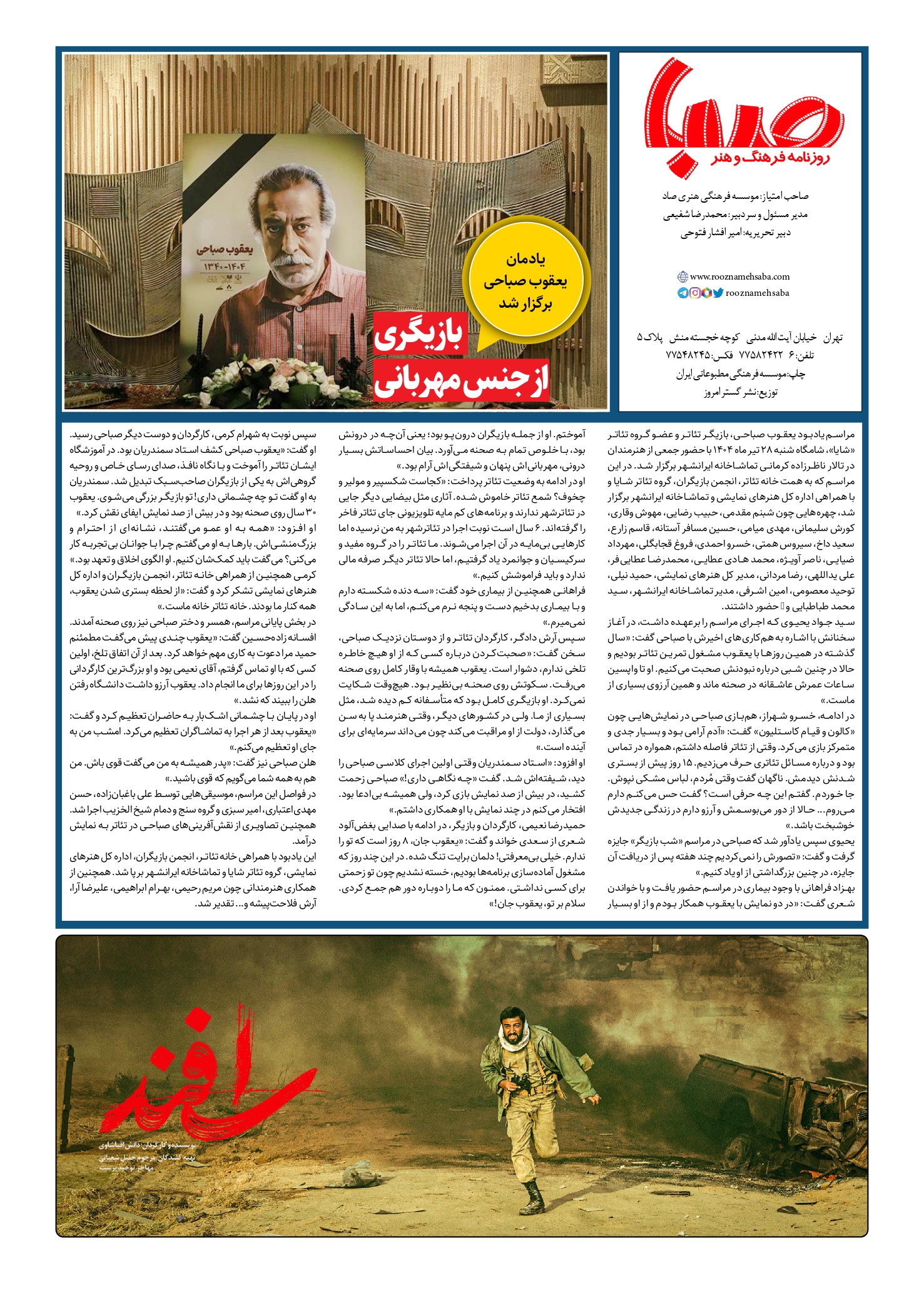 شماره ۱۹۲۲| روزنامه صبا دوشنبه ۳۰ تیر ۱۴۰۴