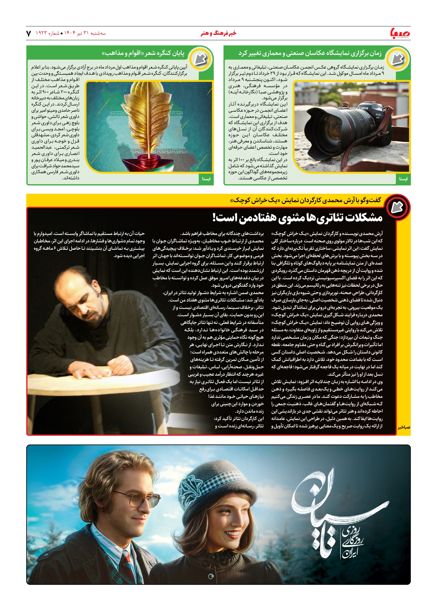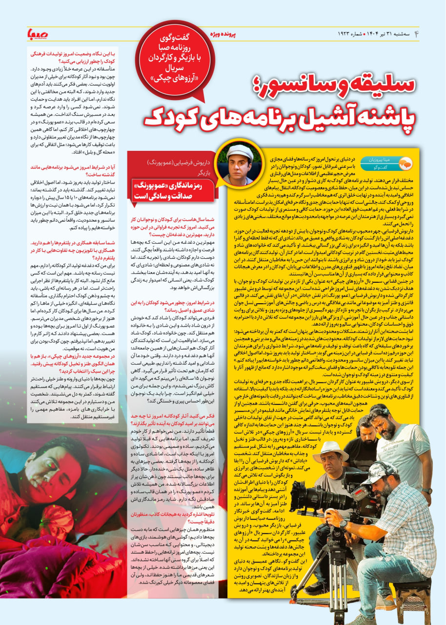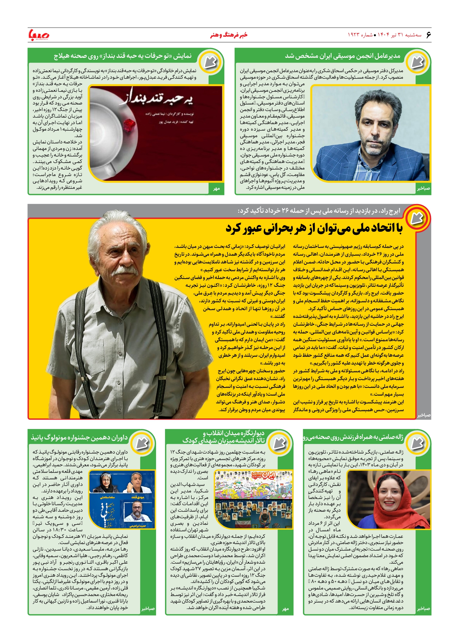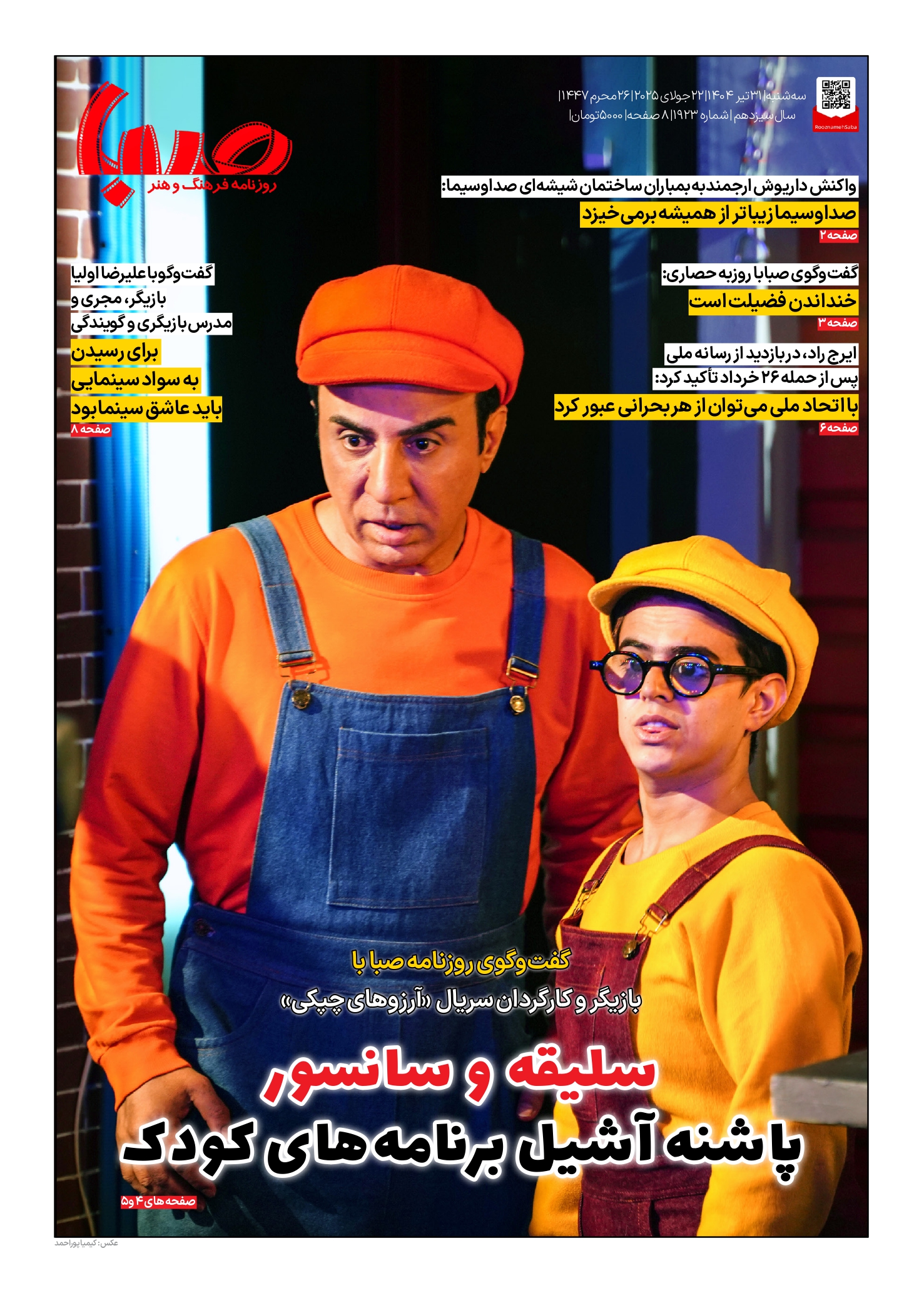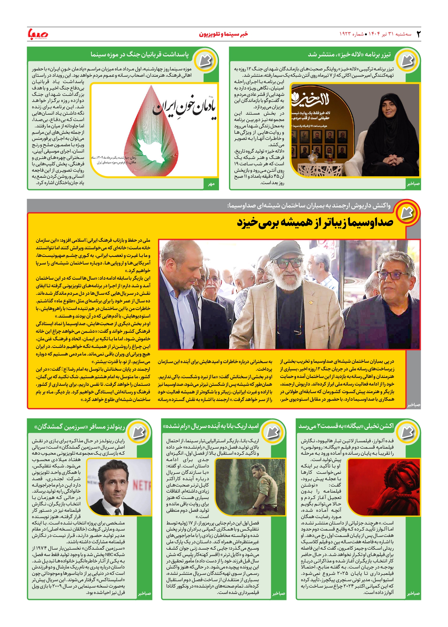 شماره ۱۹۲۳| روزنامه صبا سهشنبه ۳۱ تیر ۱۴۰۴