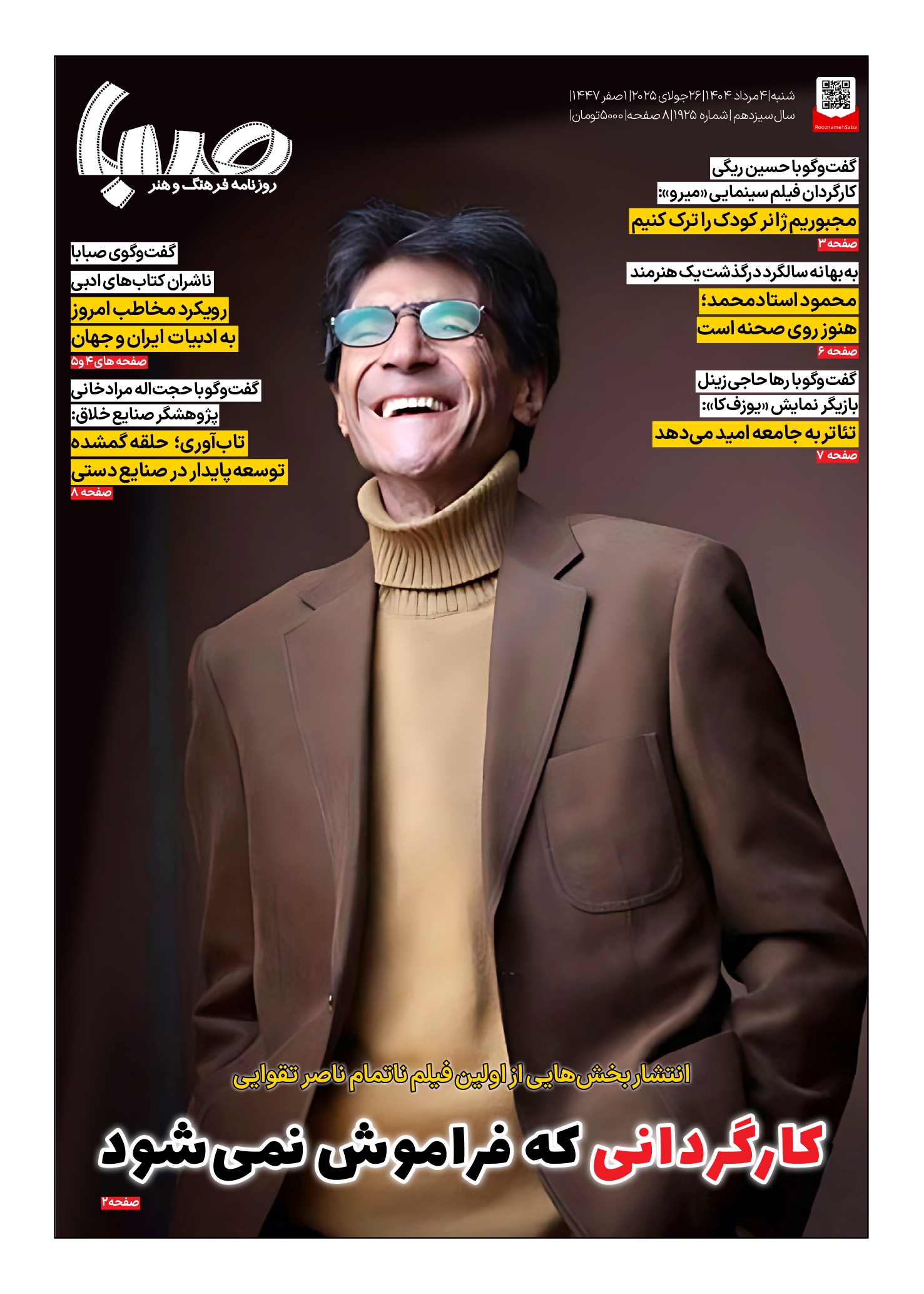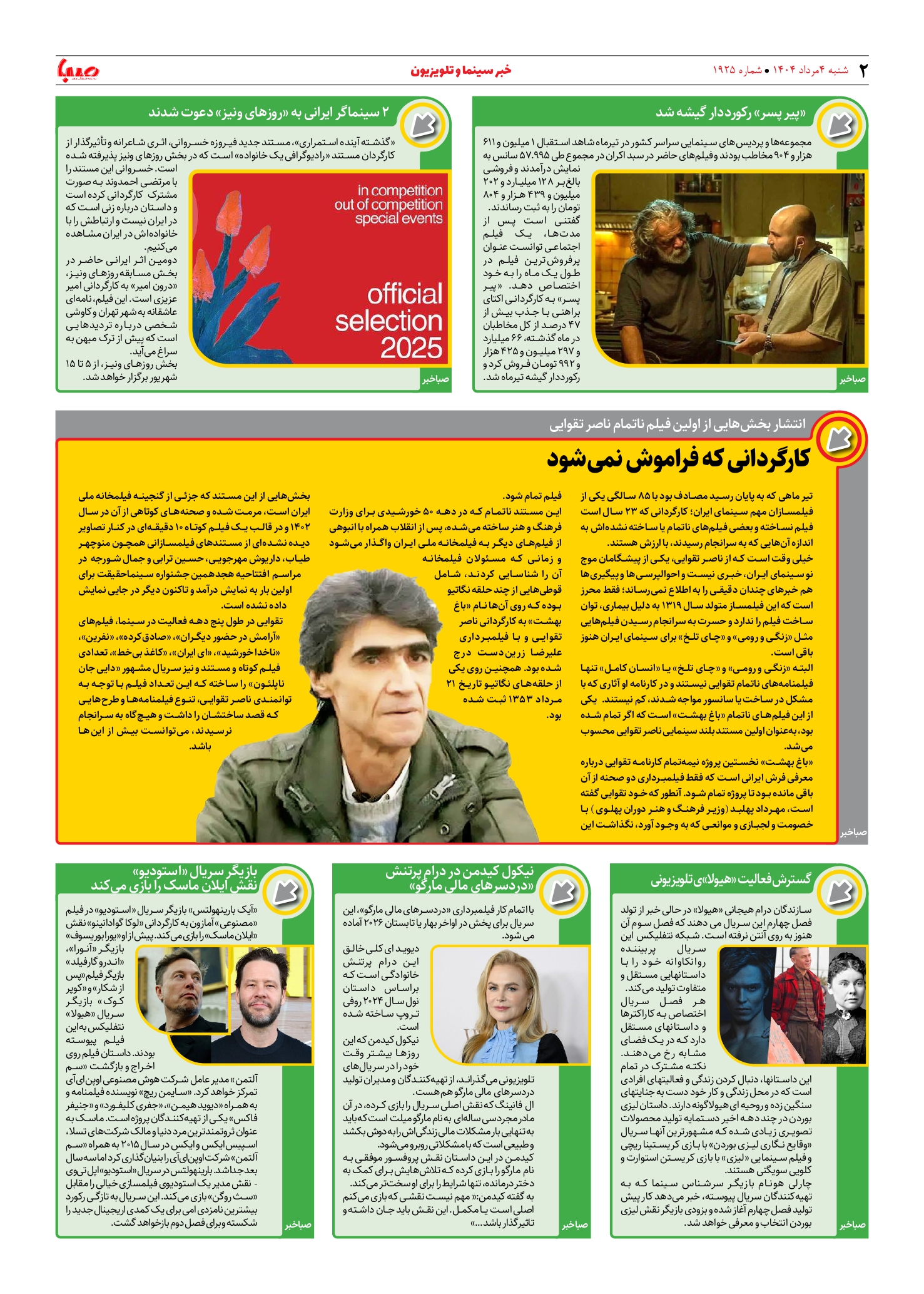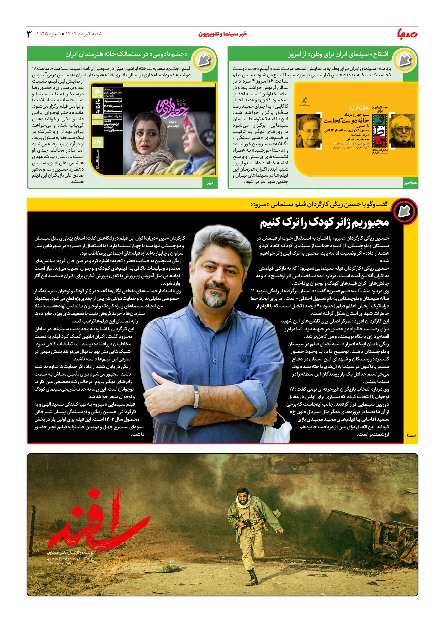 شماره ۱۹۲۵| روزنامه صبا شنبه ۴ مرداد ۱۴۰۴