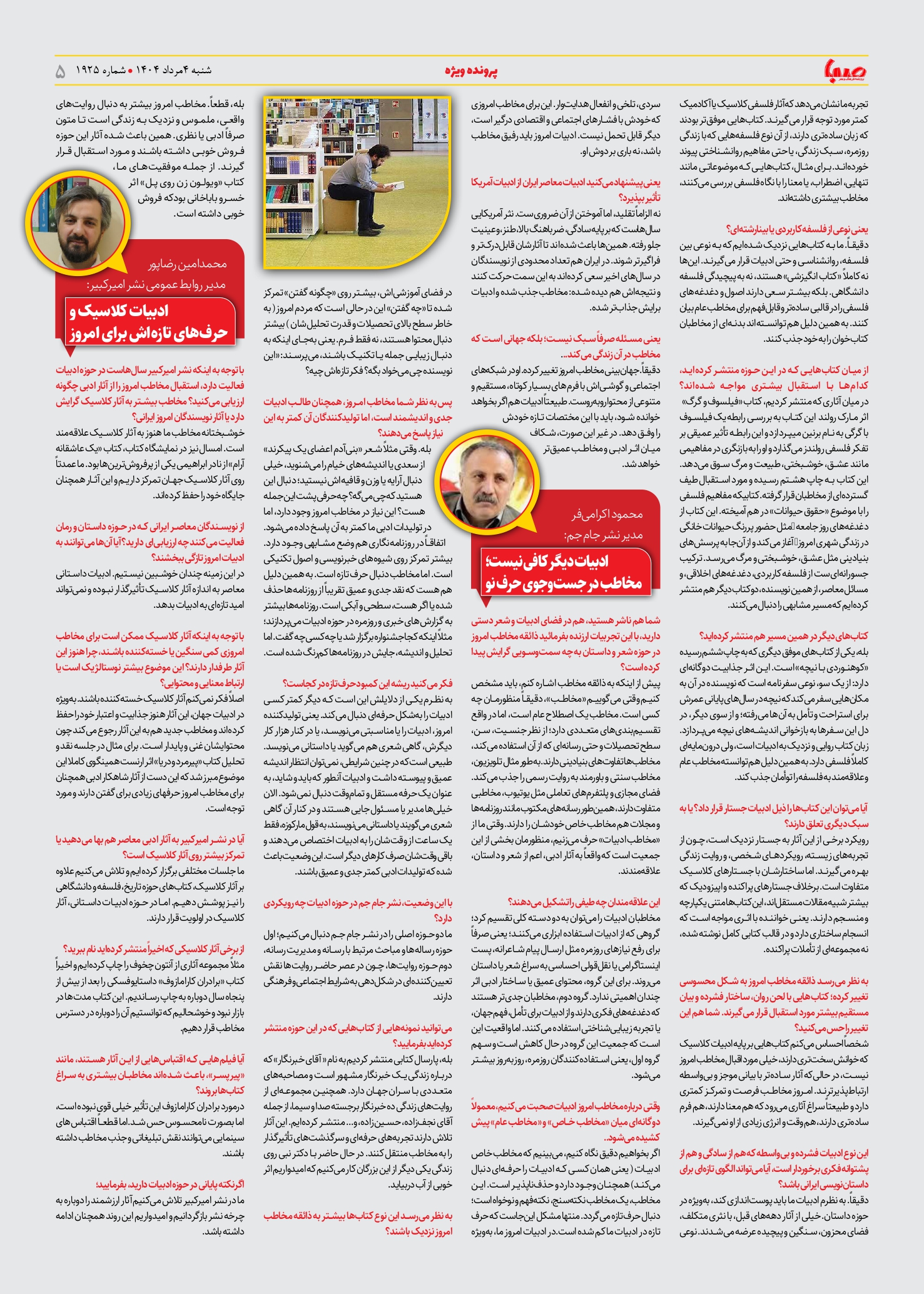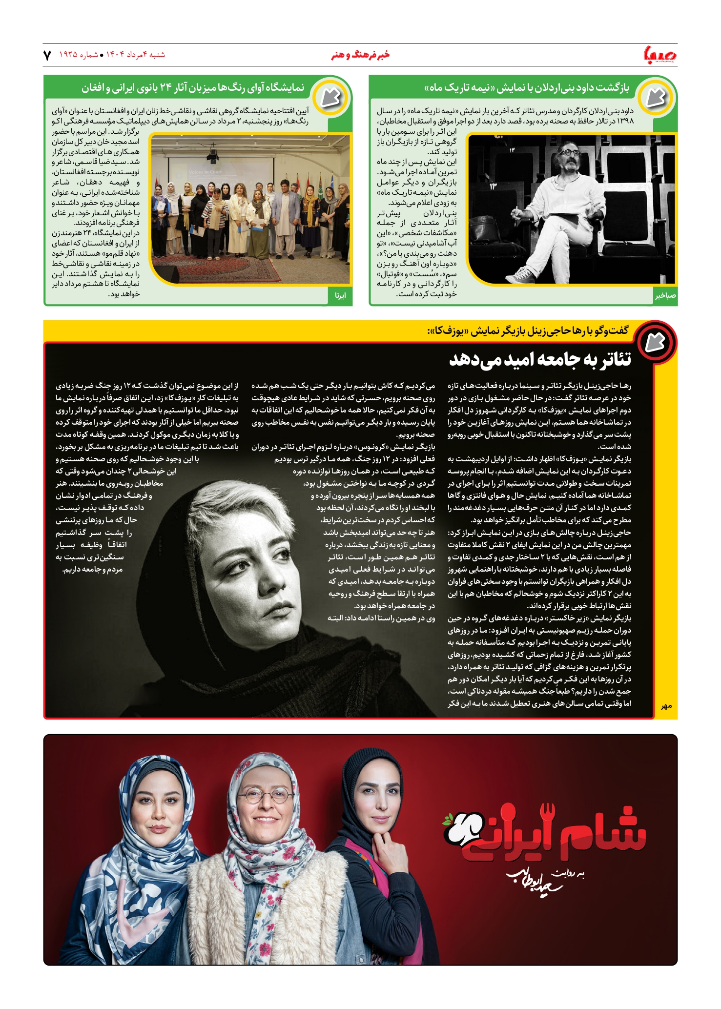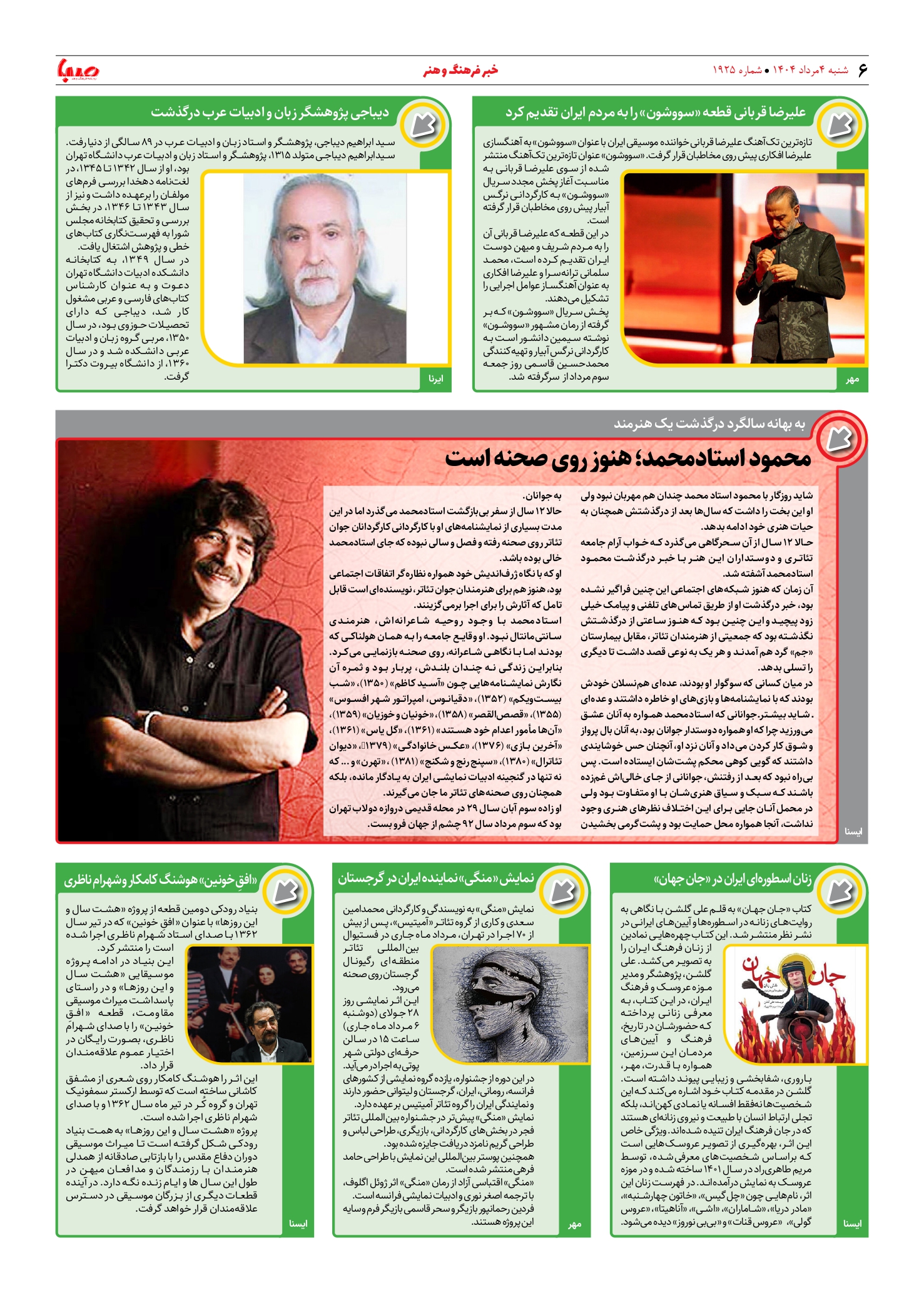شماره ۱۹۲۵| روزنامه صبا شنبه ۴ مرداد ۱۴۰۴