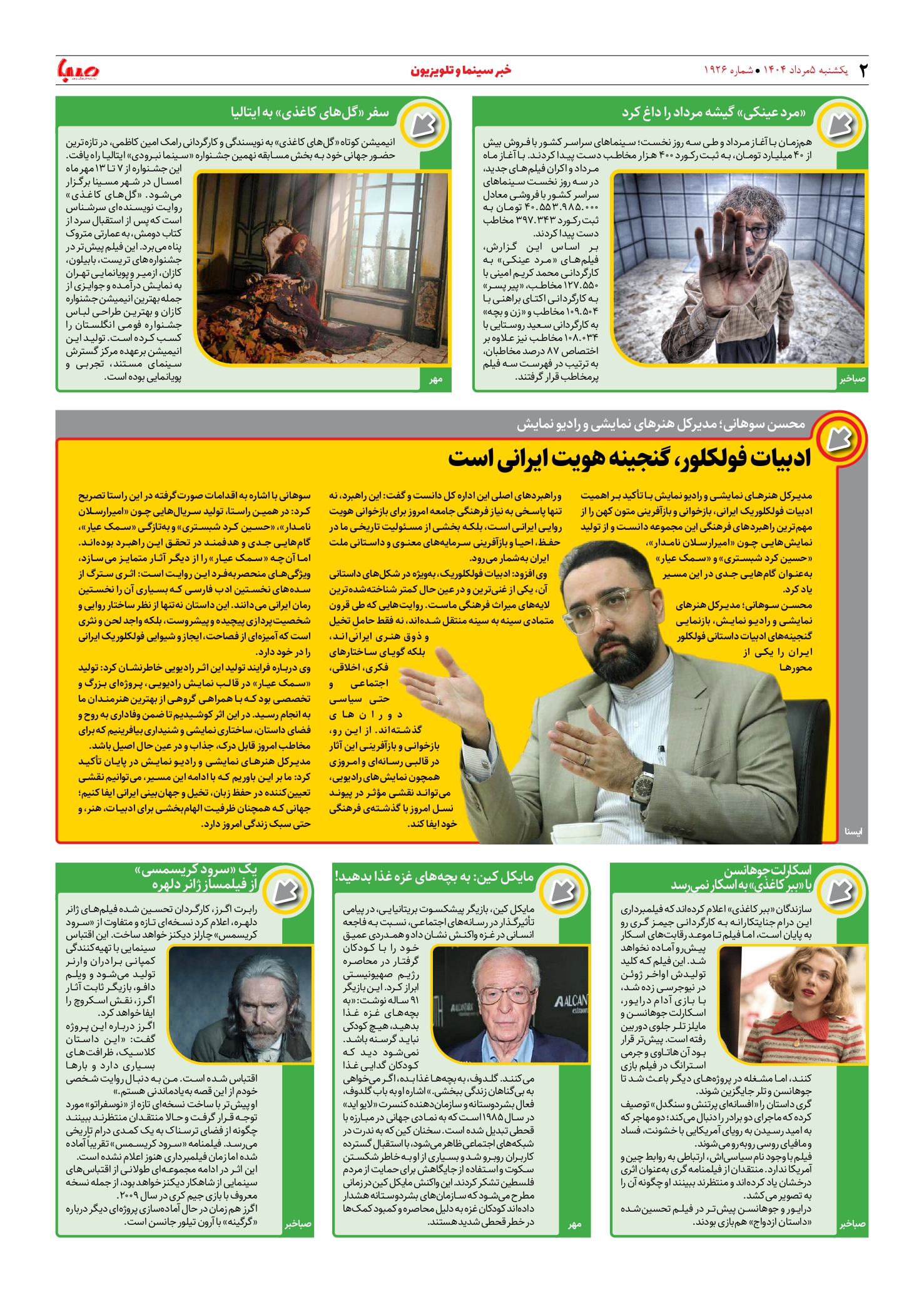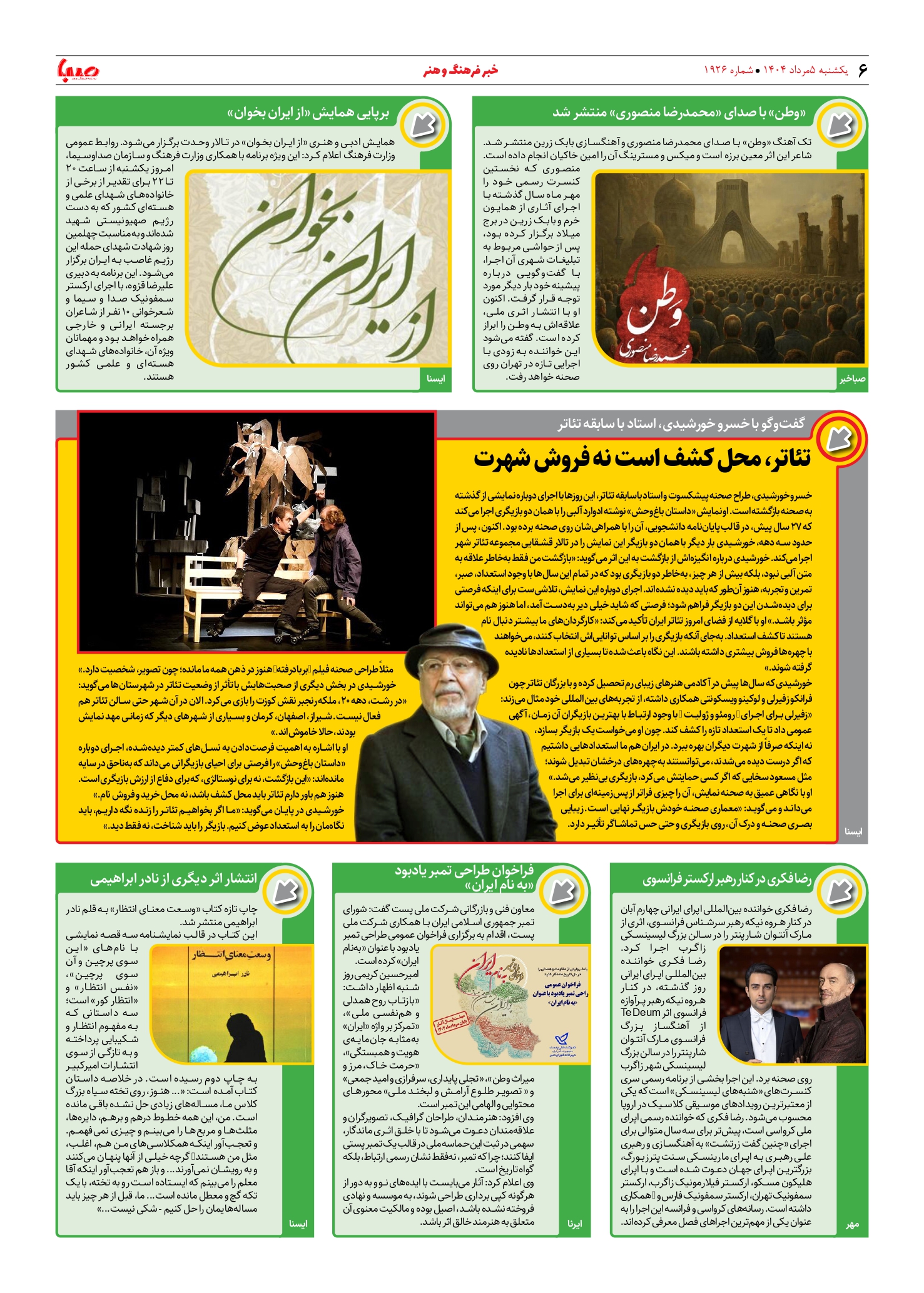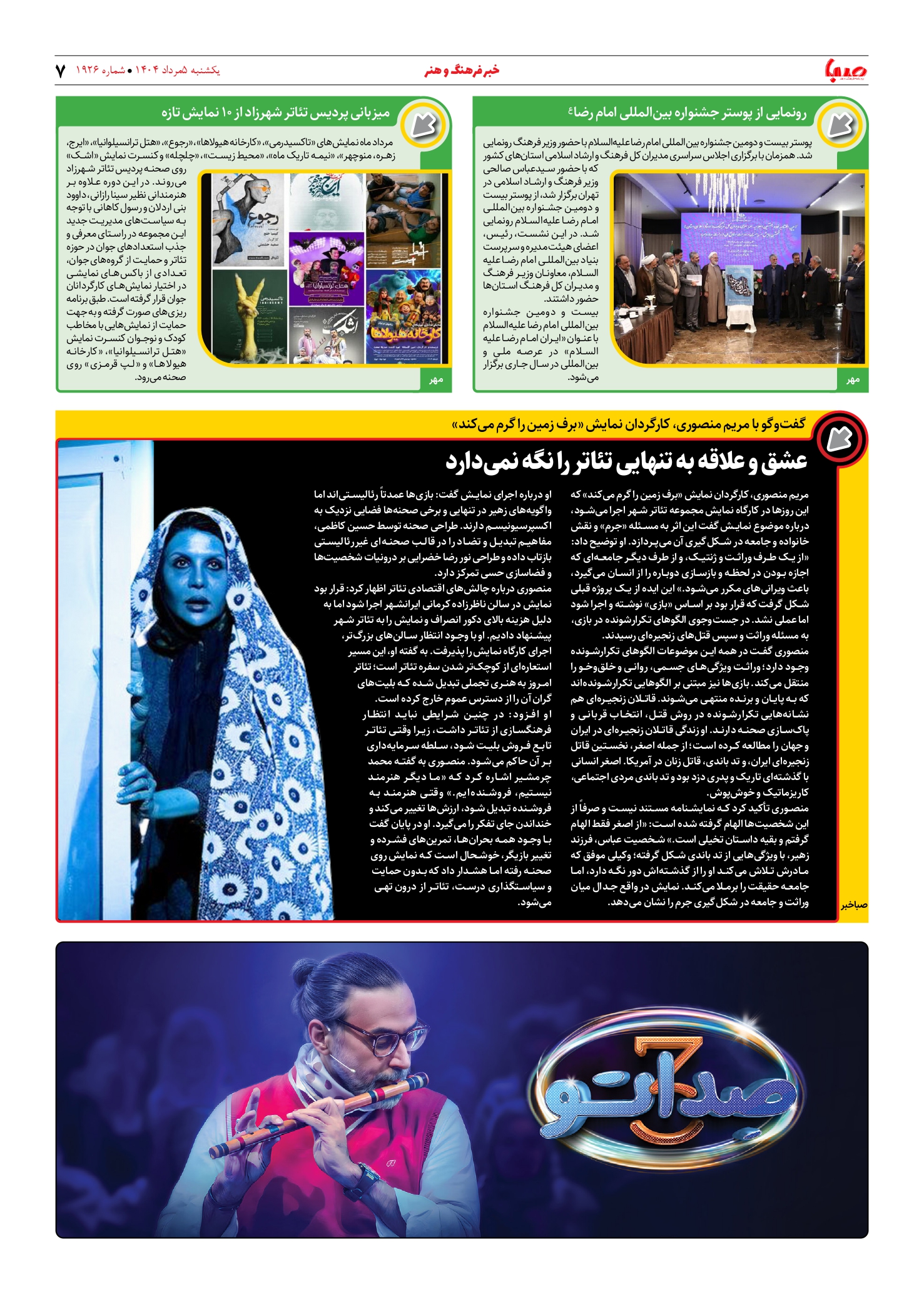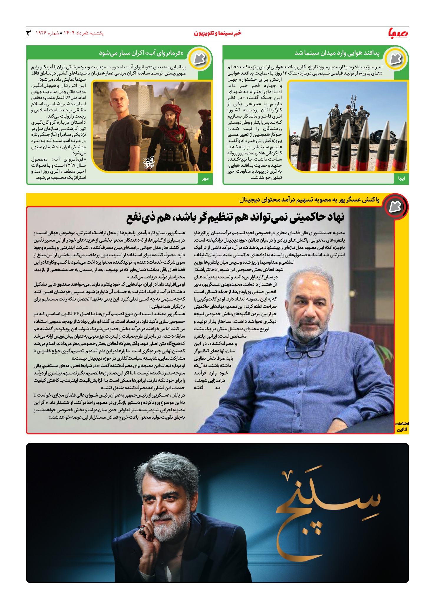 شماره ۱۹۲۶| روزنامه صبا یکشنبه ۵ مرداد ۱۴۰۴