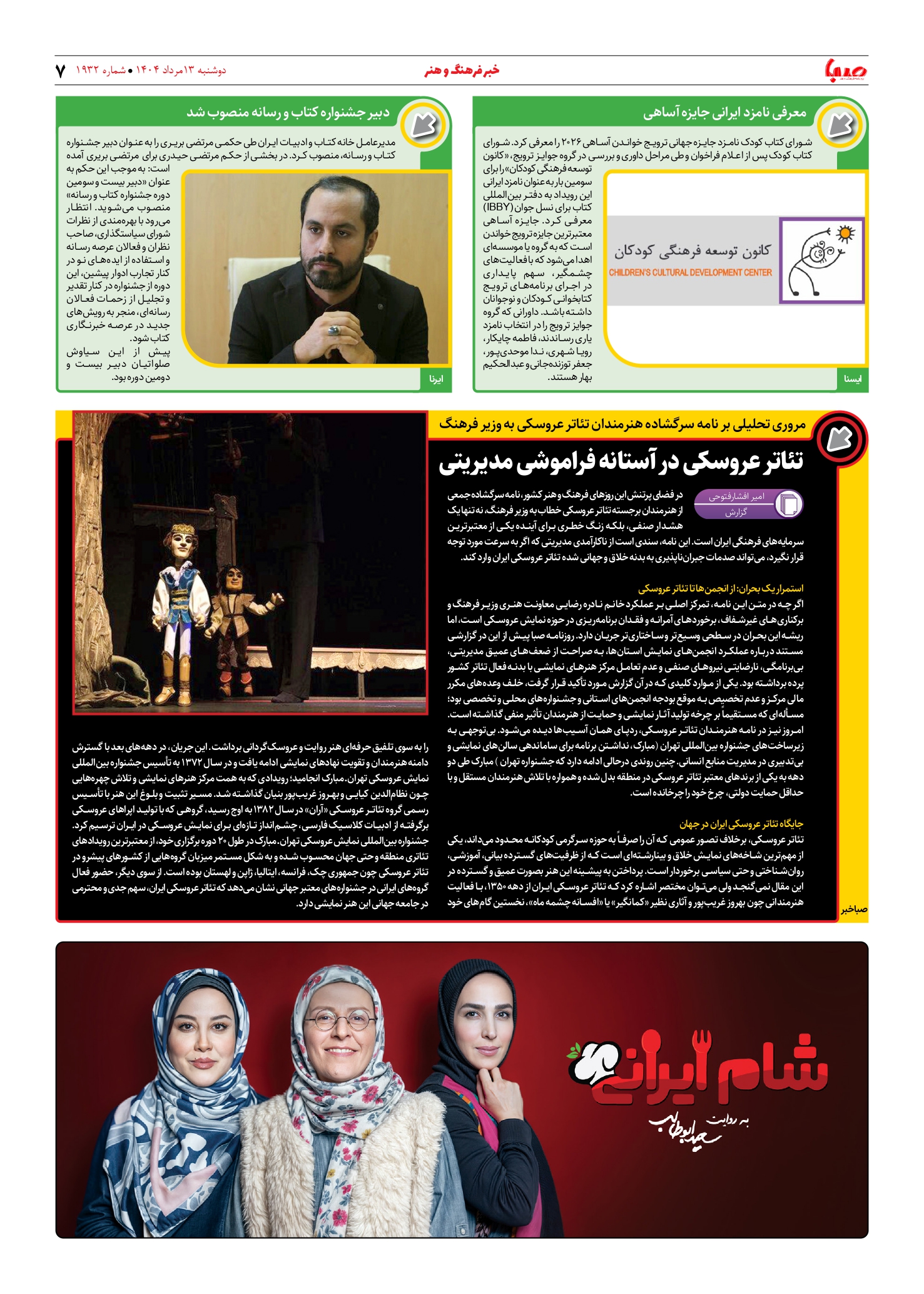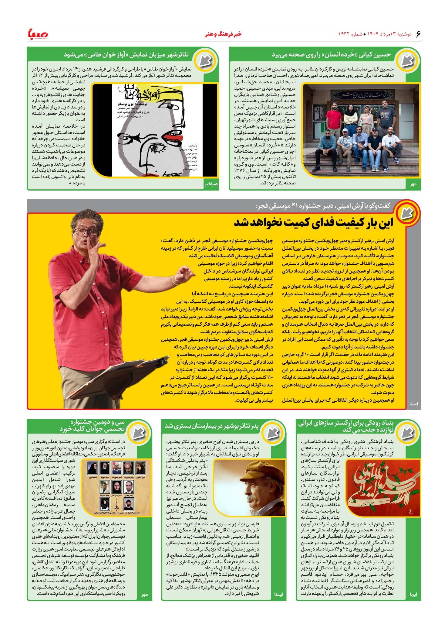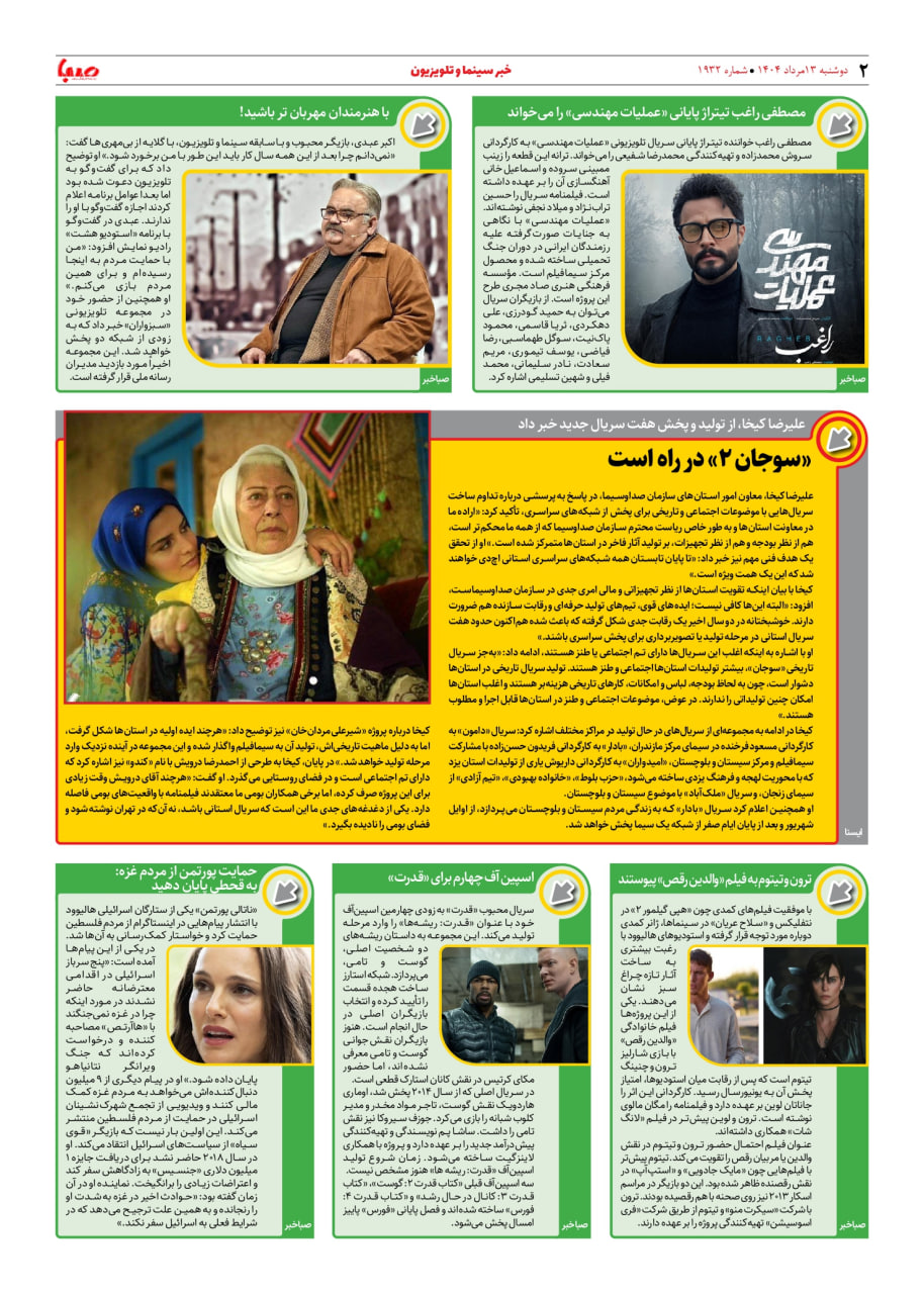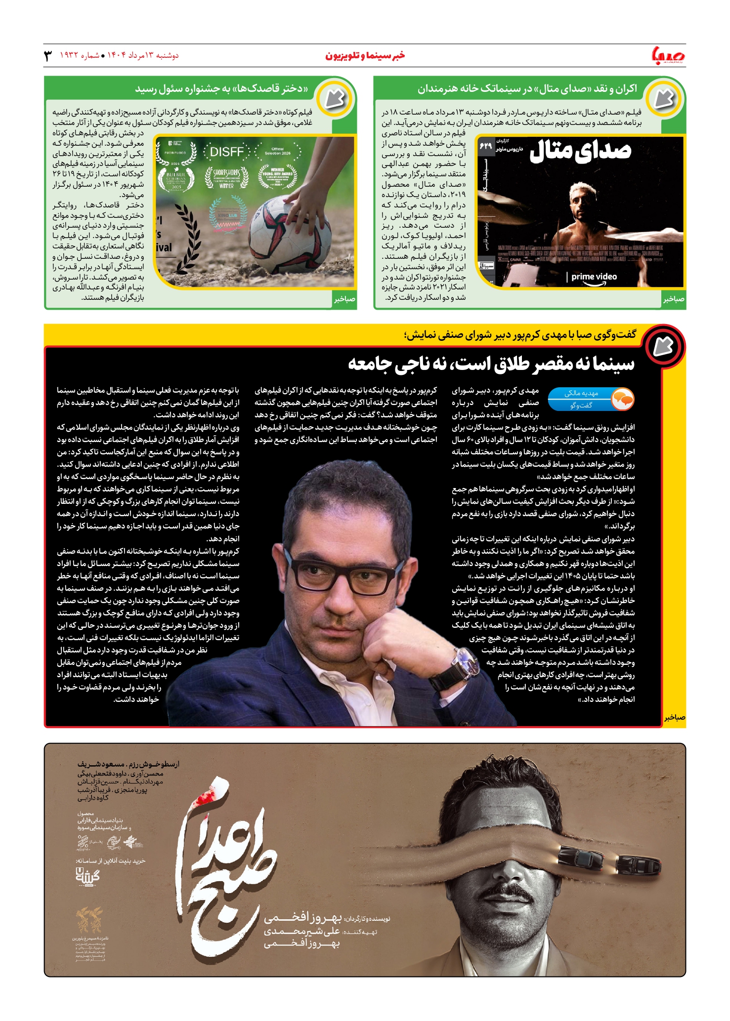 شماره ۱۹۳۲| روزنامه صبا دوشنبه ۱۳ مرداد ۱۴۰۴