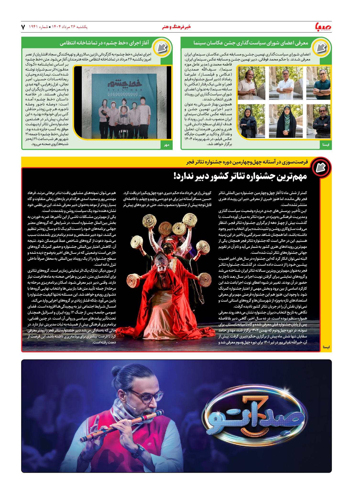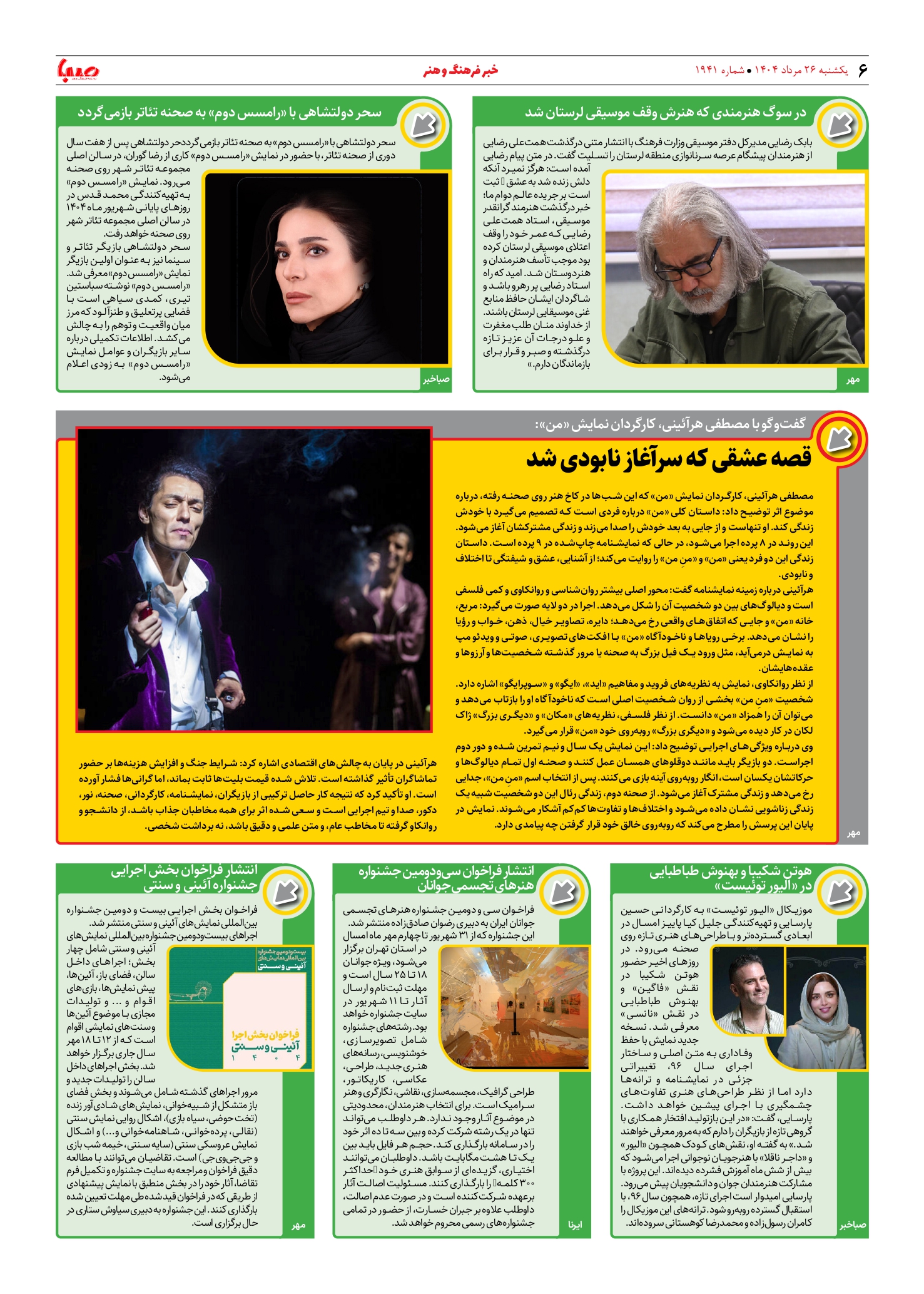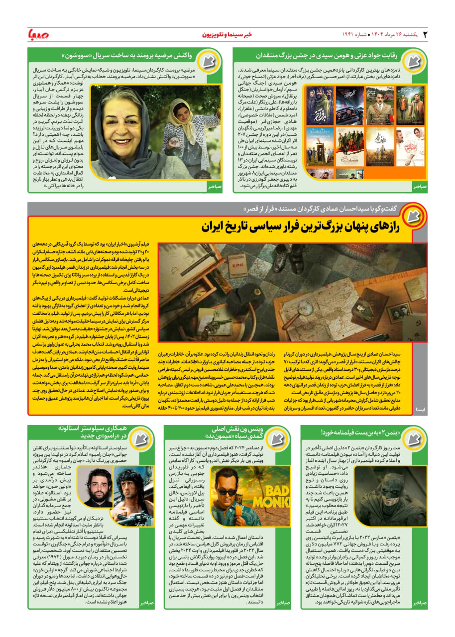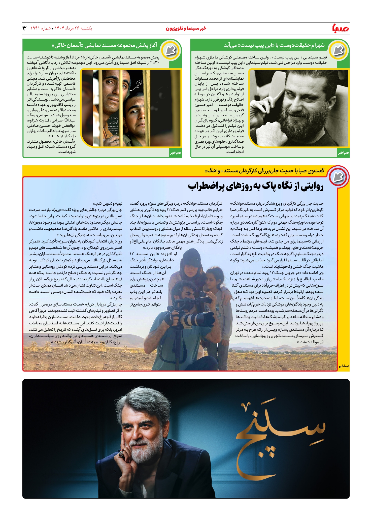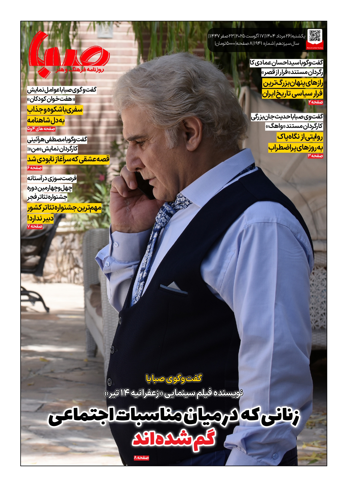 شماره ۱۹۴۱| روزنامه صبا یکشنبه ۲۶ مرداد ۱۴۰۴