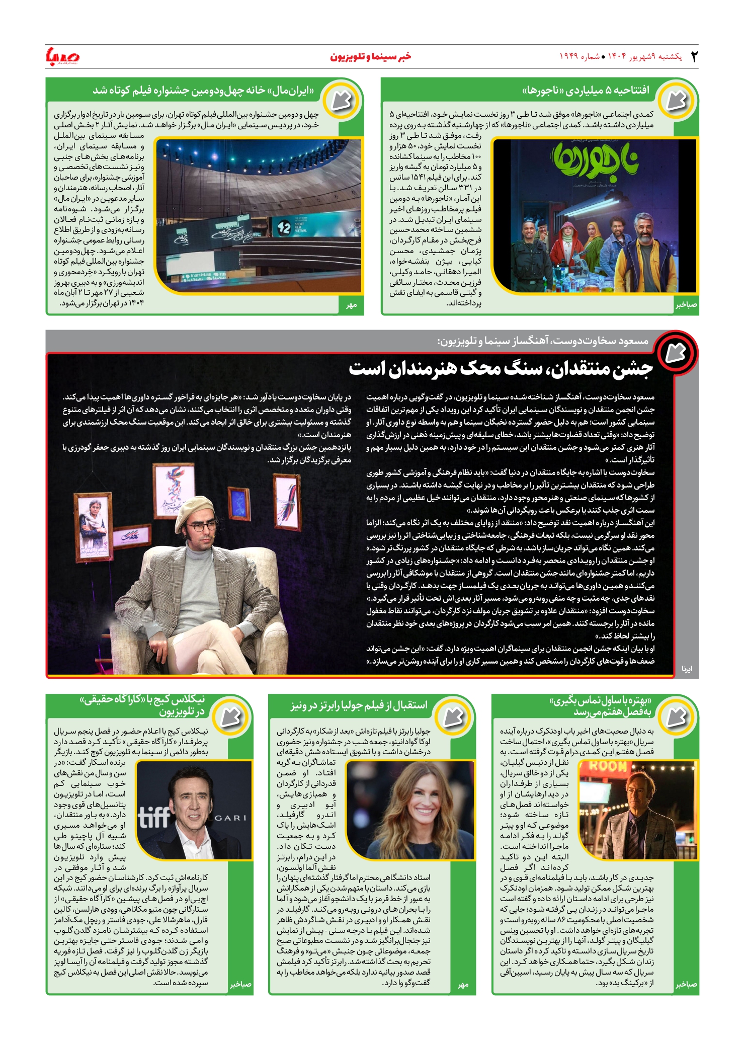 شماره ۱۹۴۹| روزنامه صبا یکشنبه ۹ شهریور ۱۴۰۴