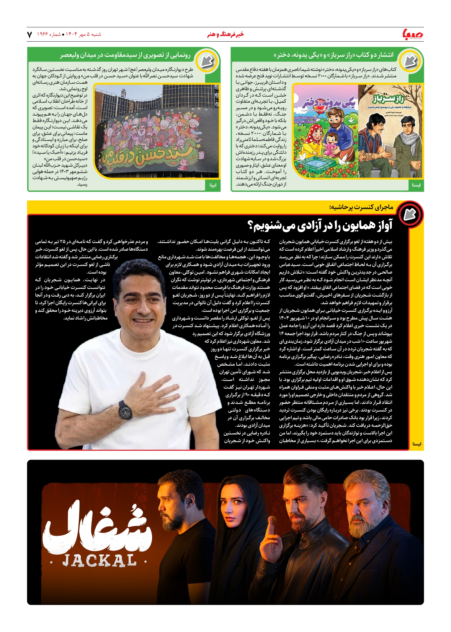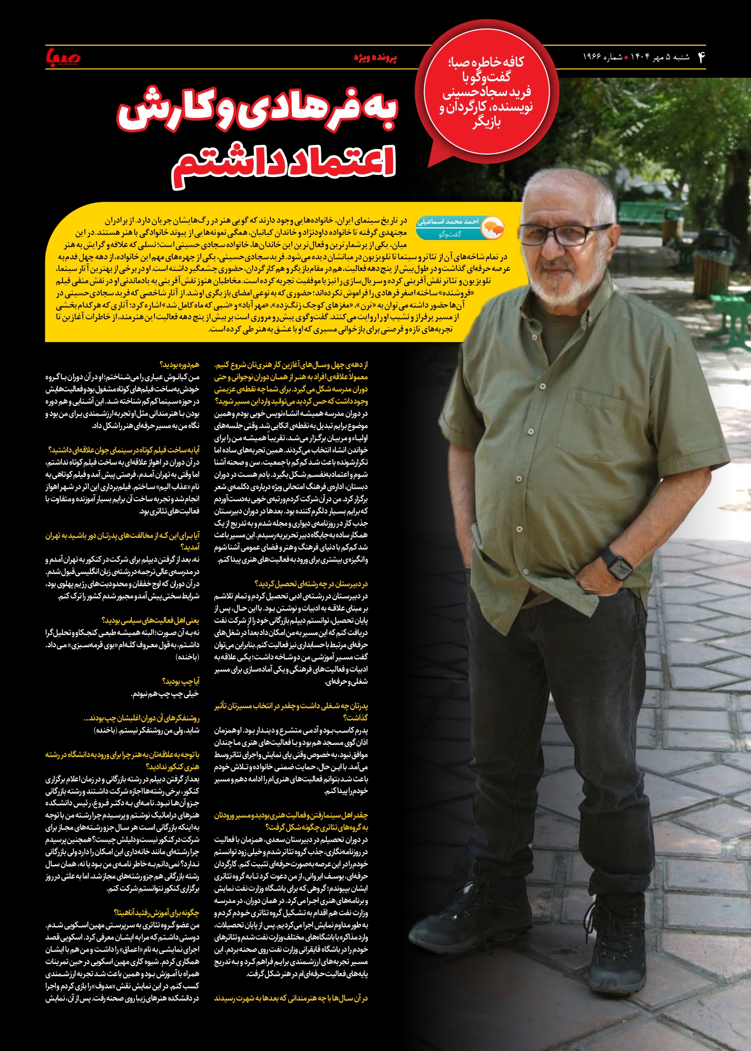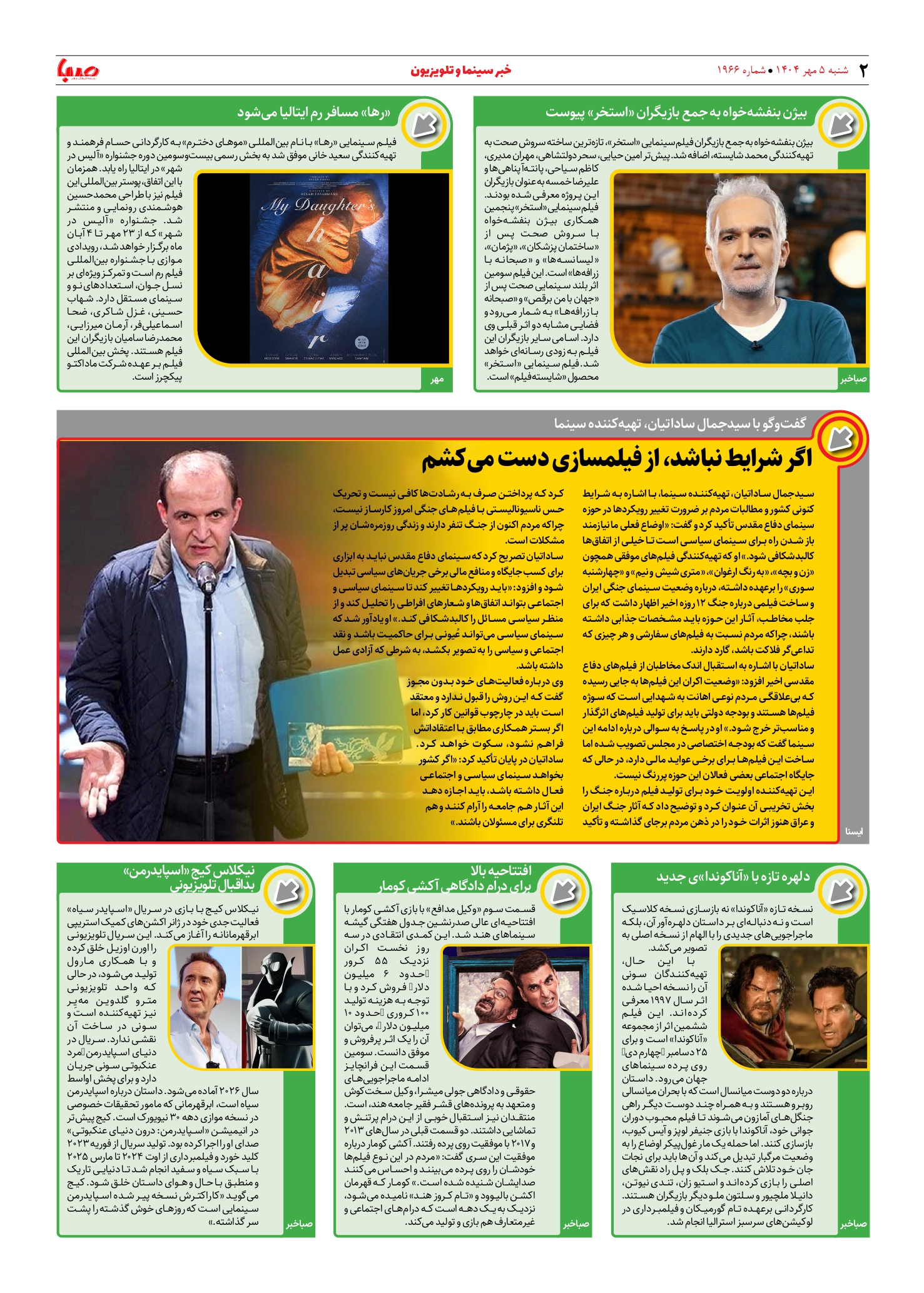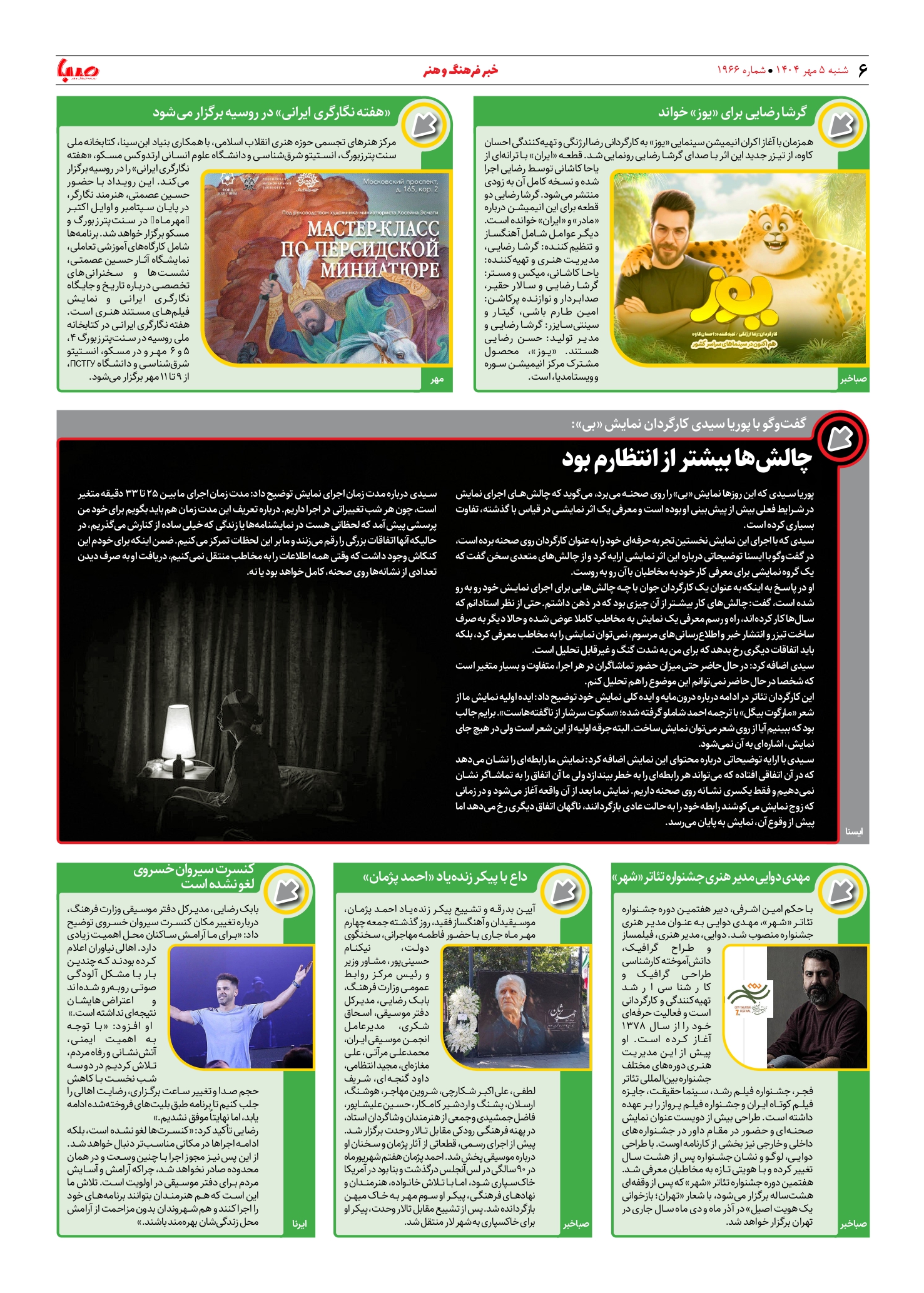 شماره ۱۹۶۶| روزنامه صبا شنبه ۵ مهر ۱۴۰۴