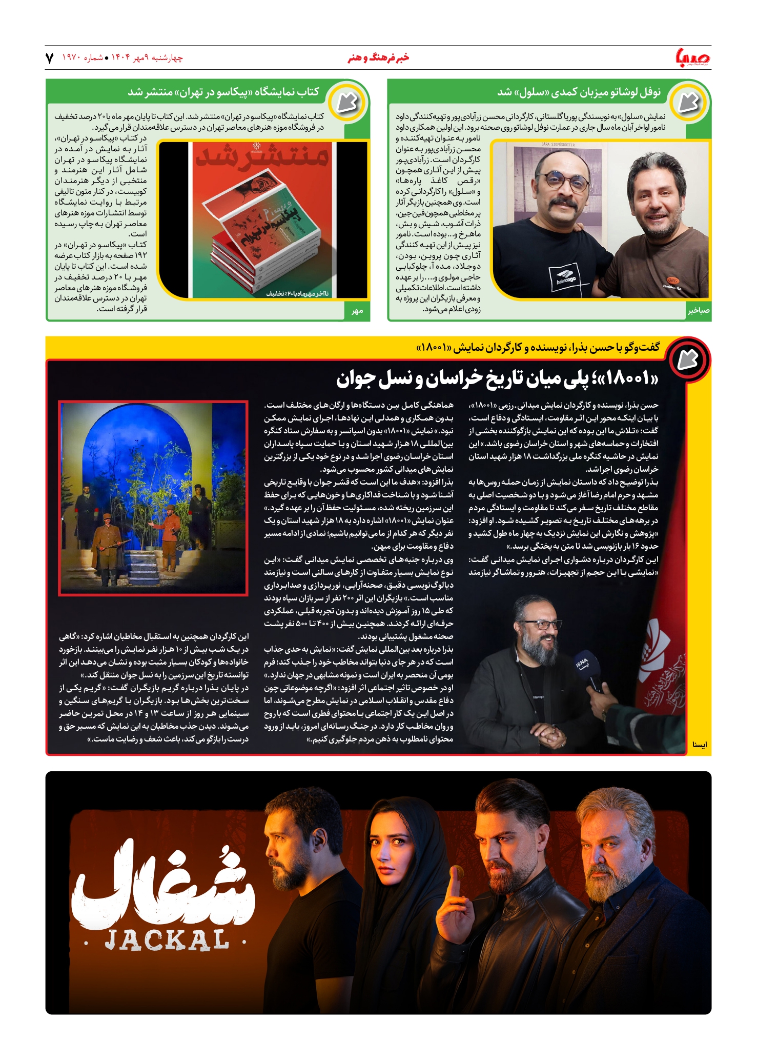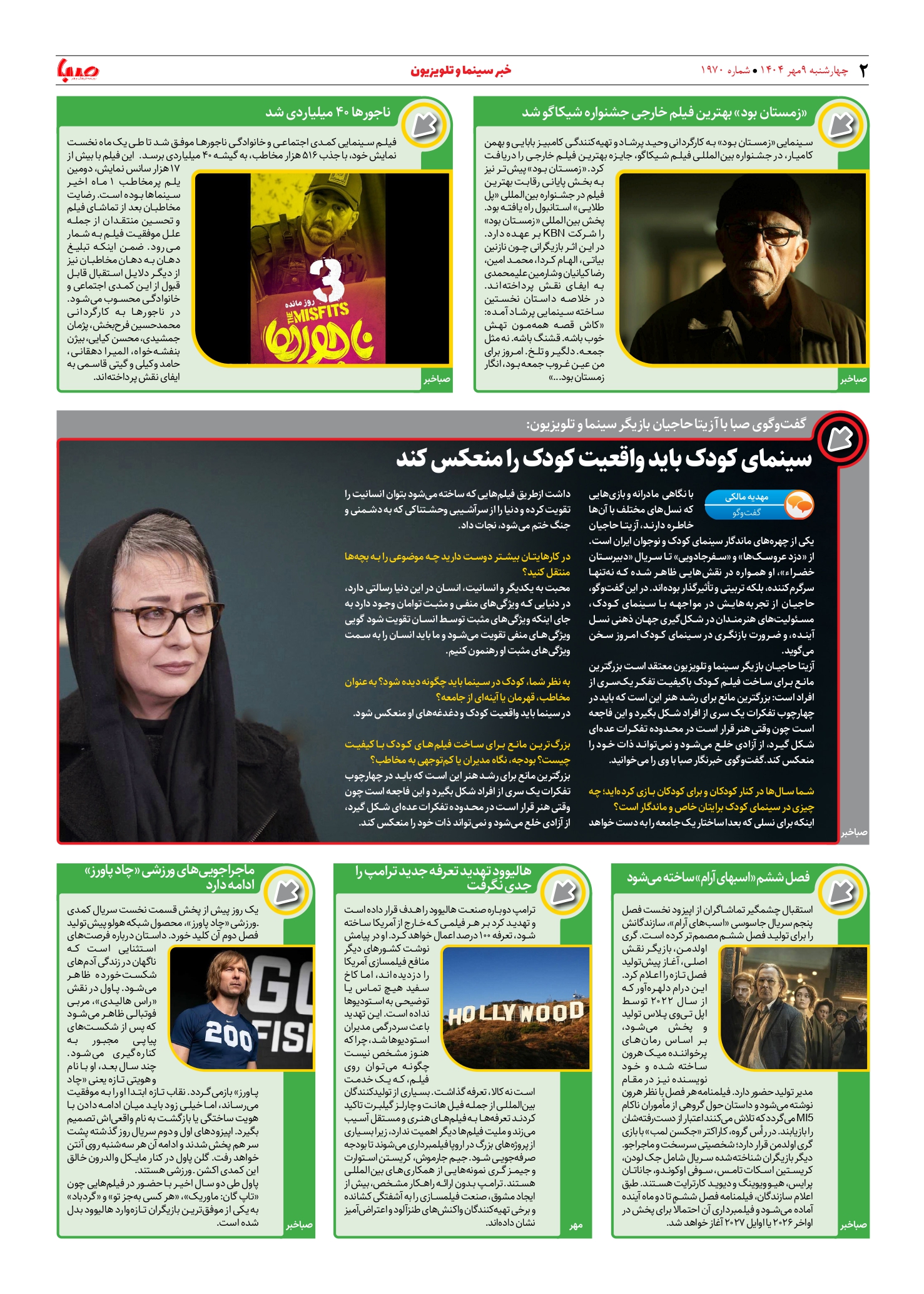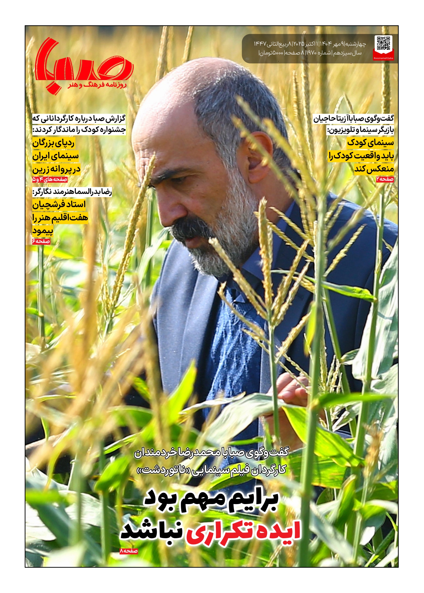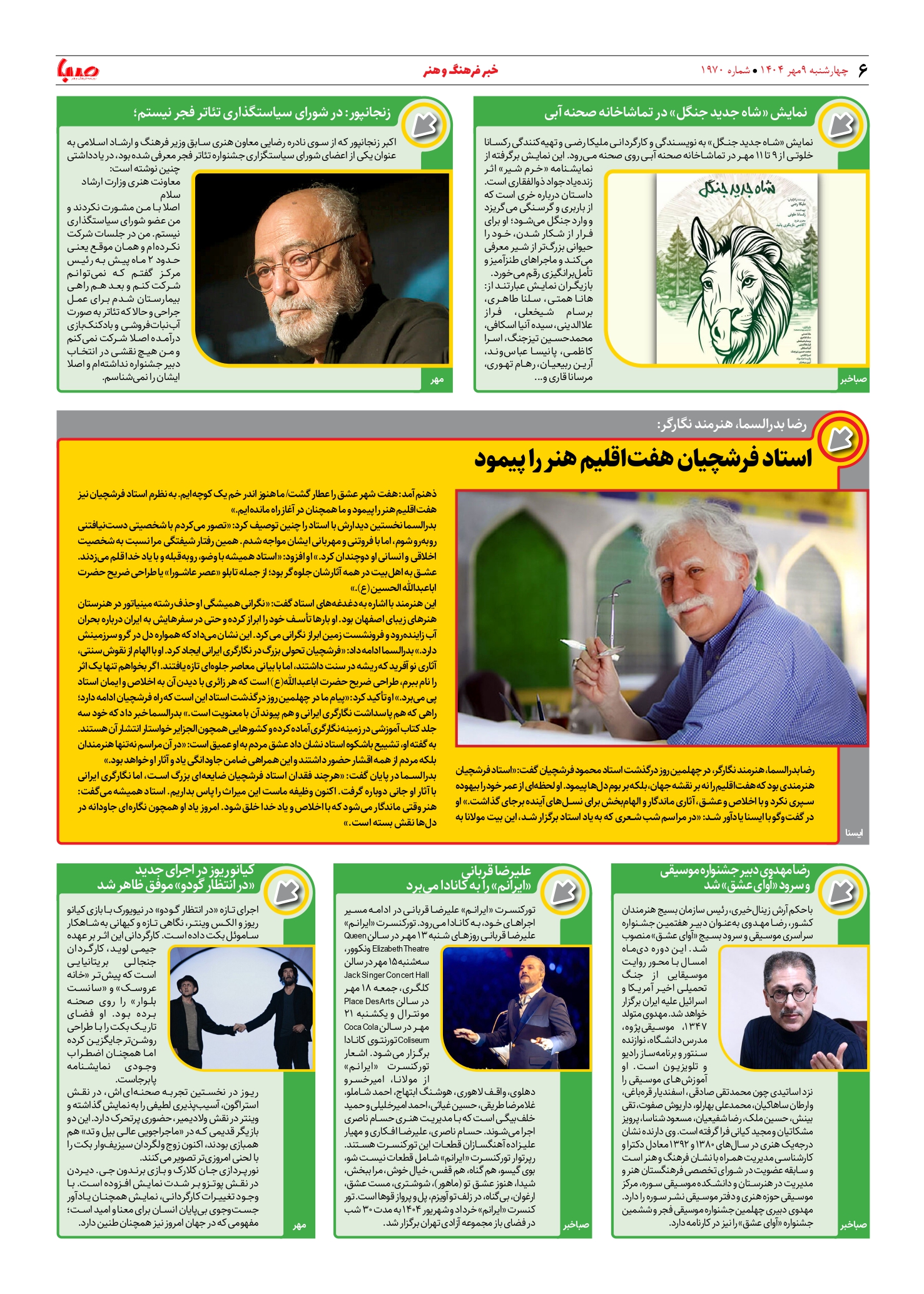 شماره ۱۹۷۰| روزنامه صبا چهارشنبه ۹ مهر ۱۴۰۴
