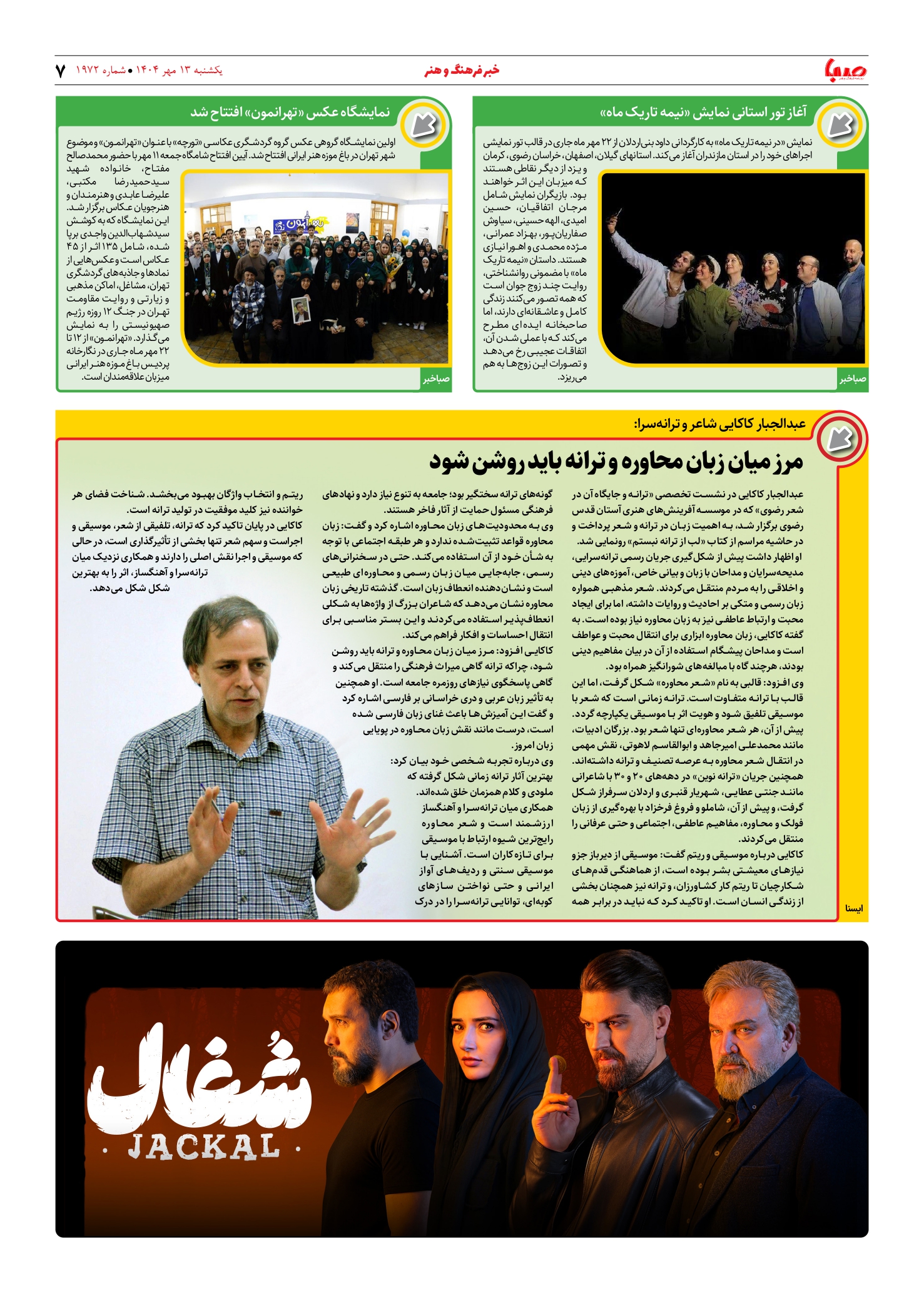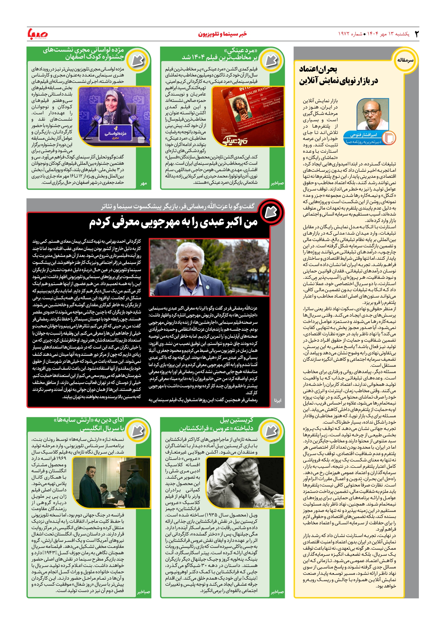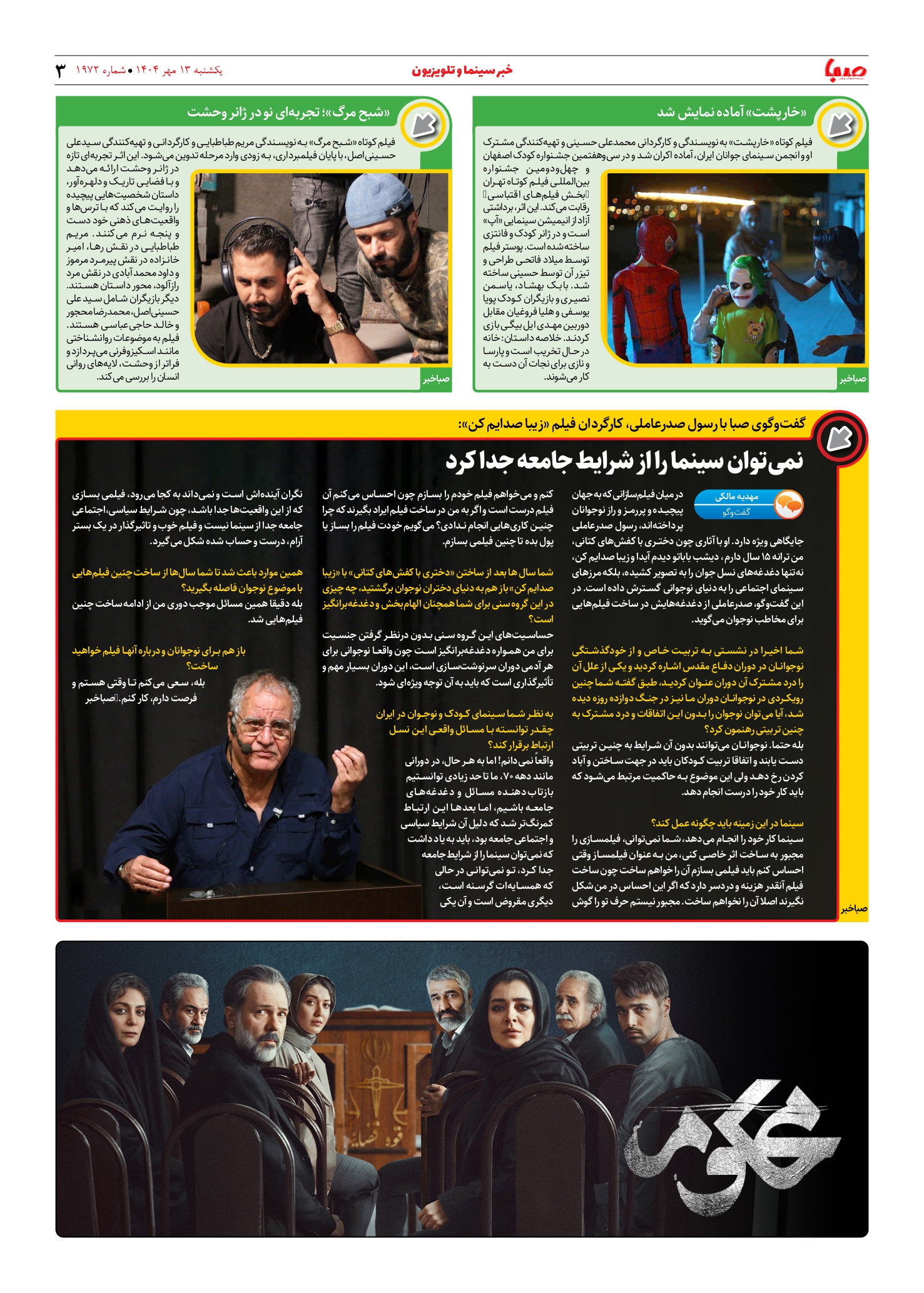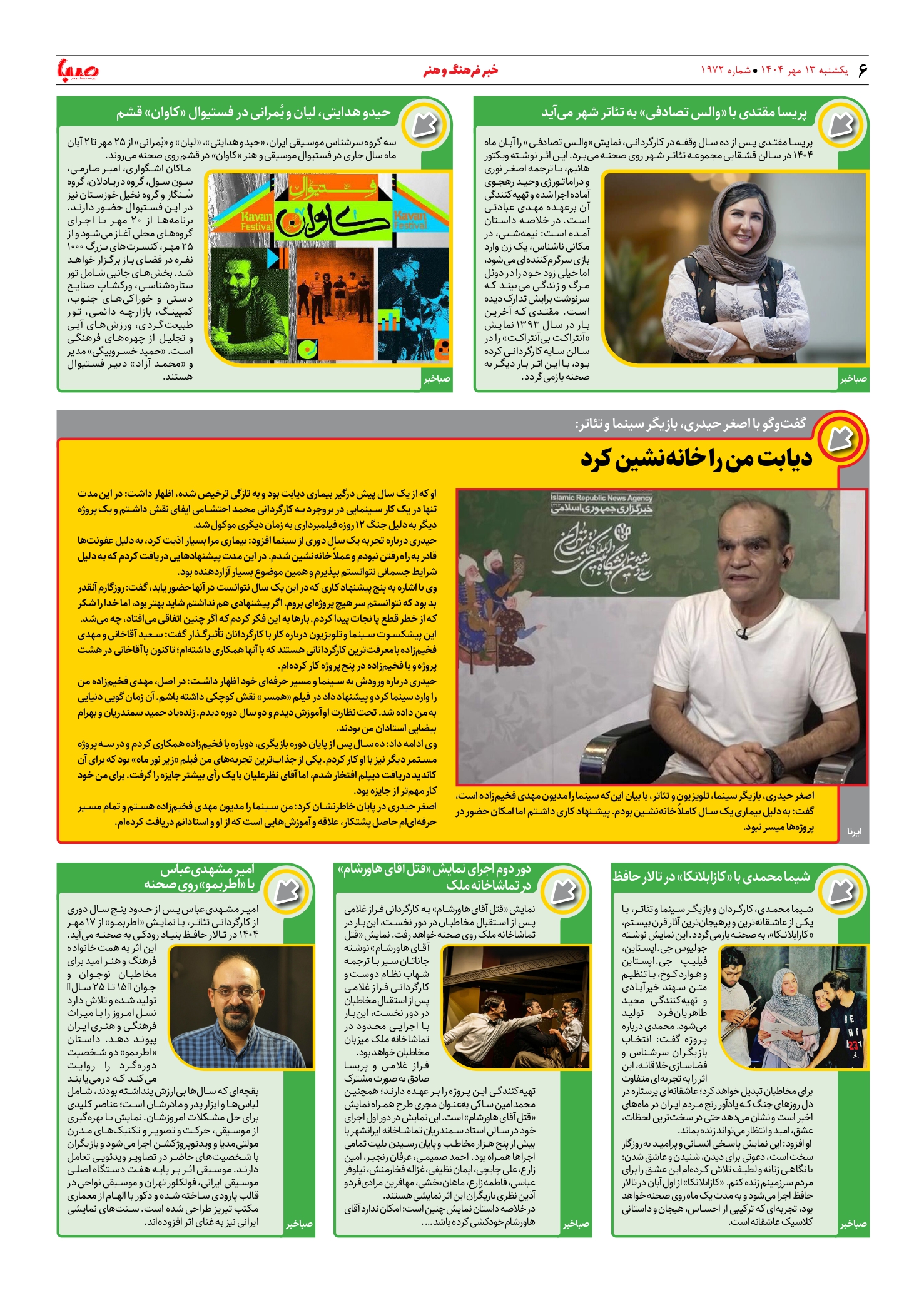 شماره ۱۹۷۲| روزنامه صبا یکشنبه ۱۳ مهر ۱۴۰۴