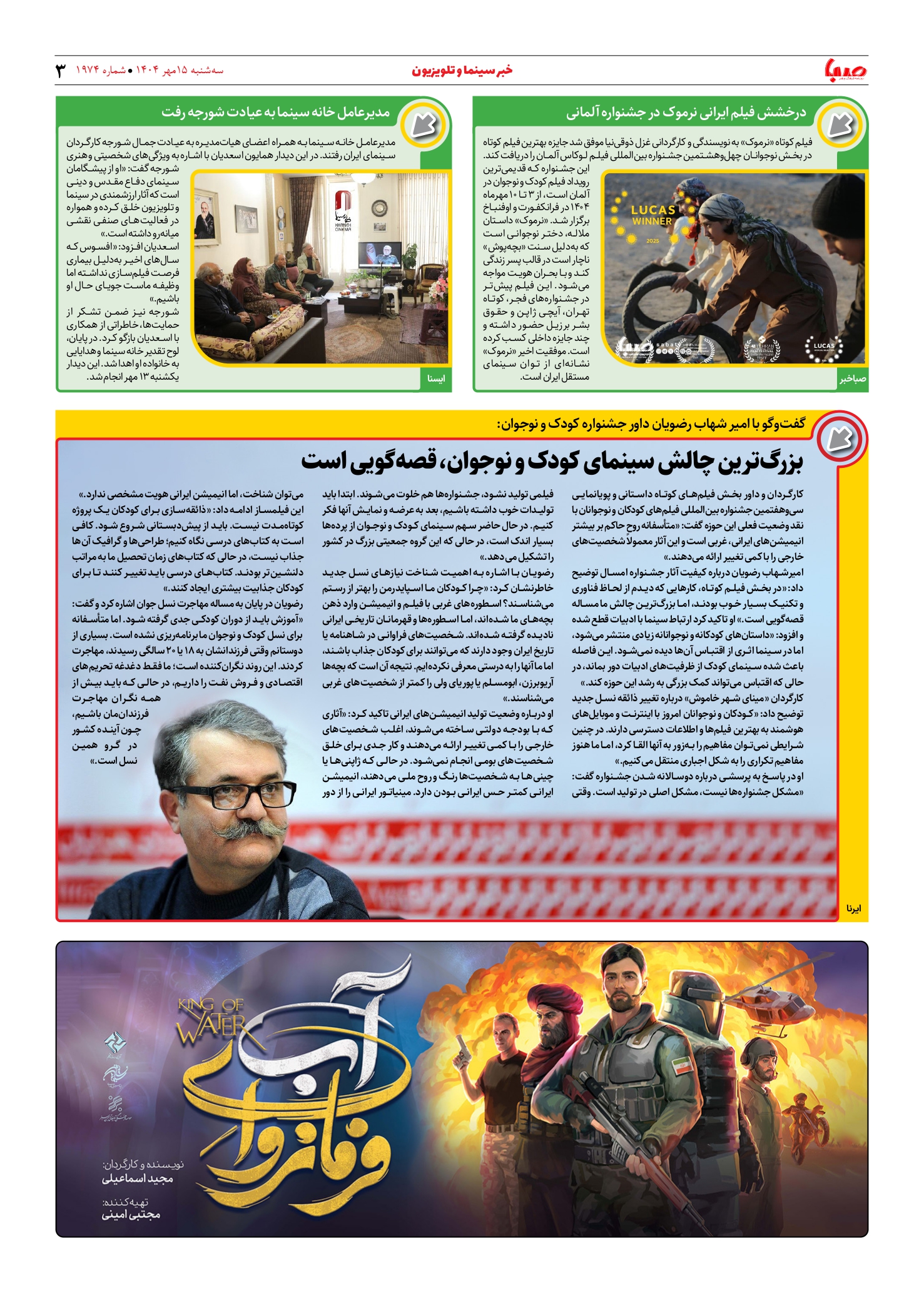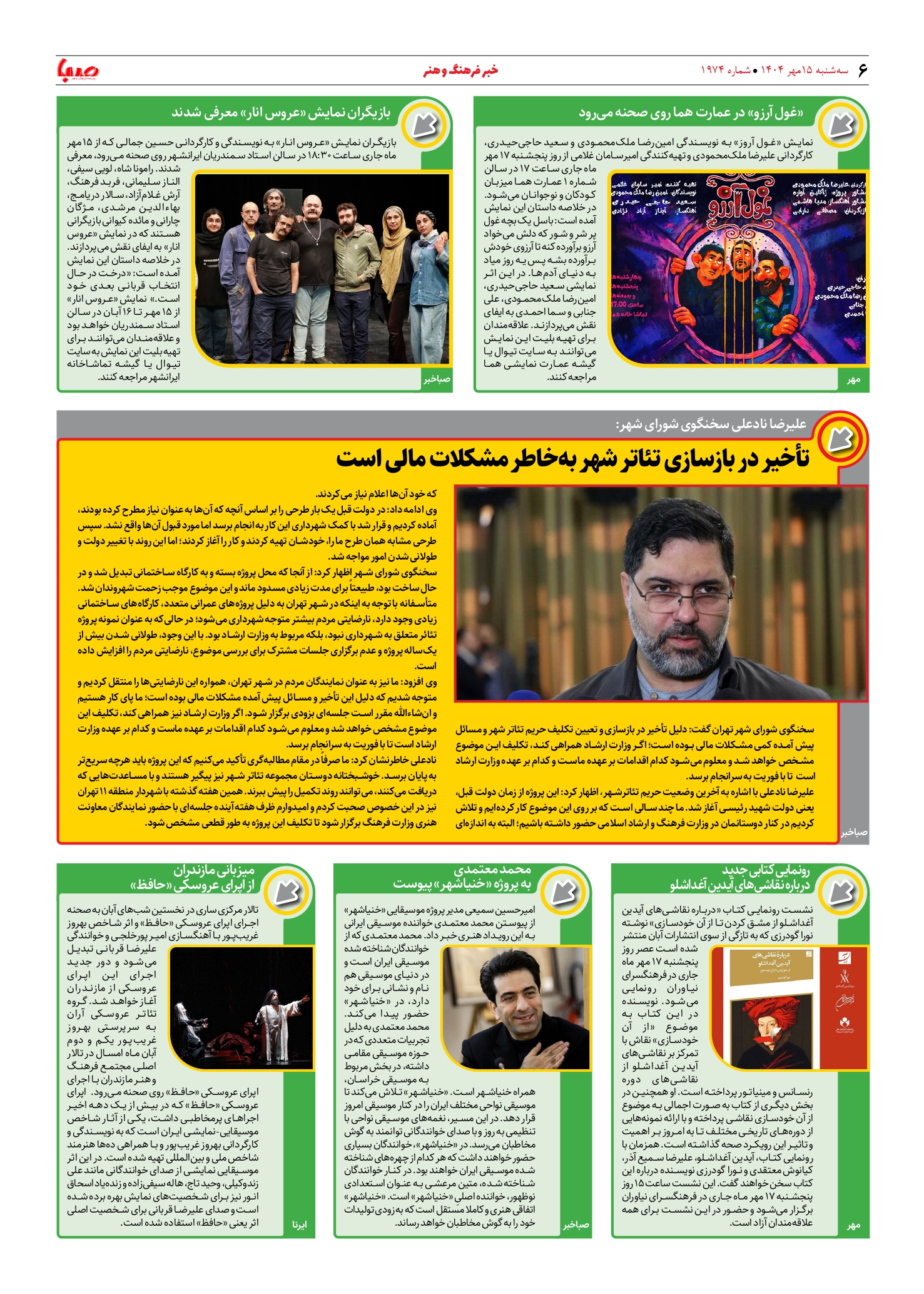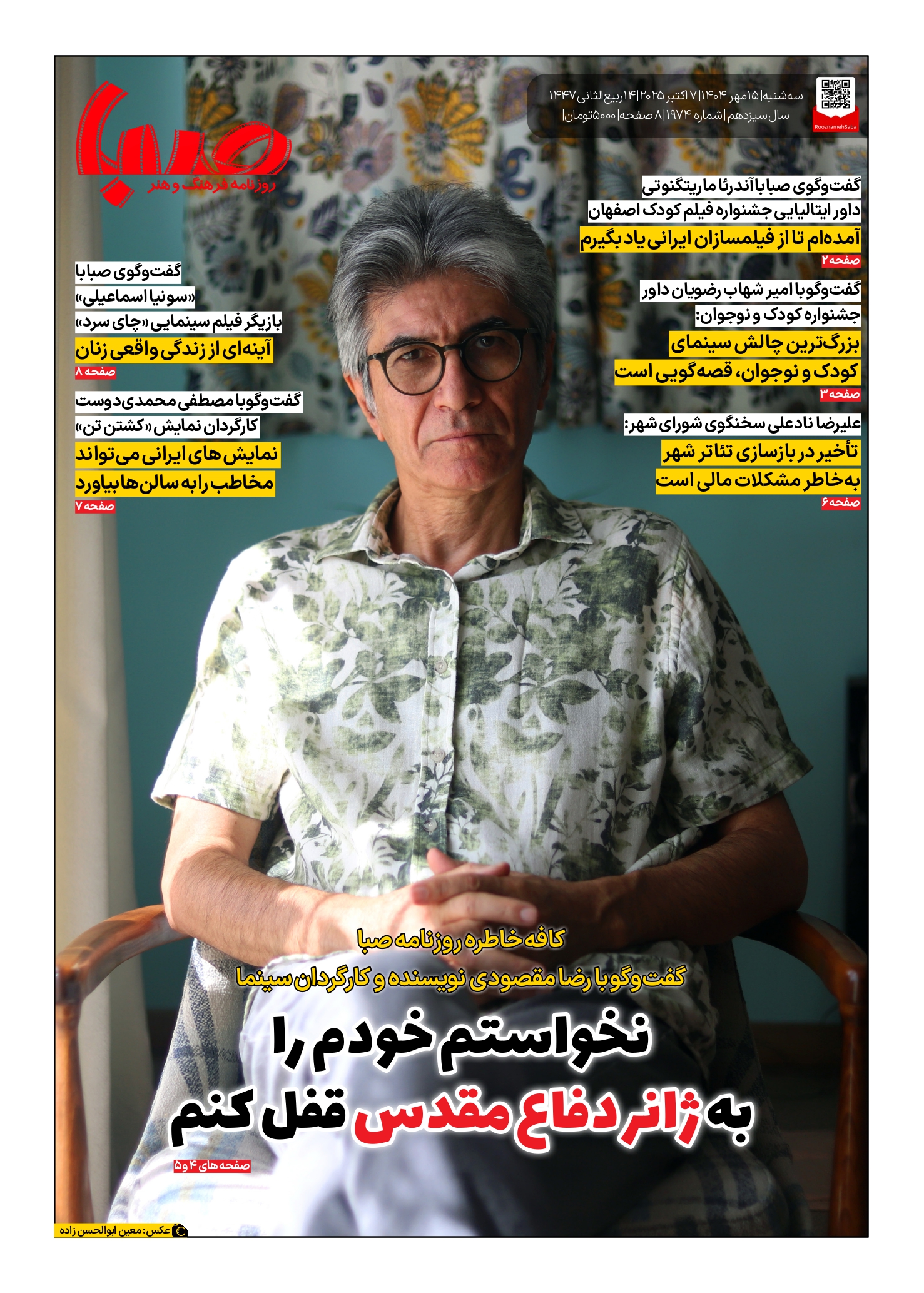 شماره ۱۹۷۴| روزنامه صبا سهشنبه ۱۵ مهر ۱۴۰۴