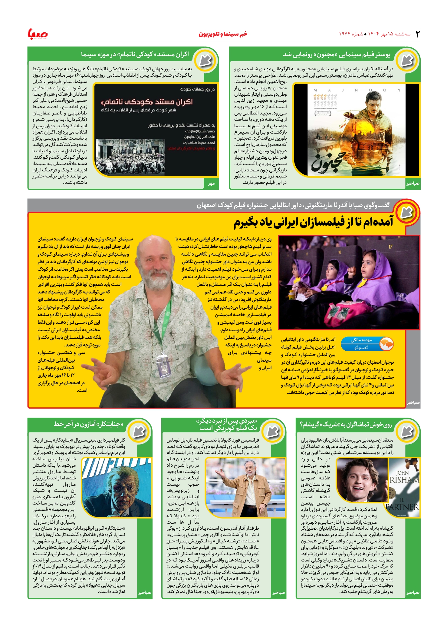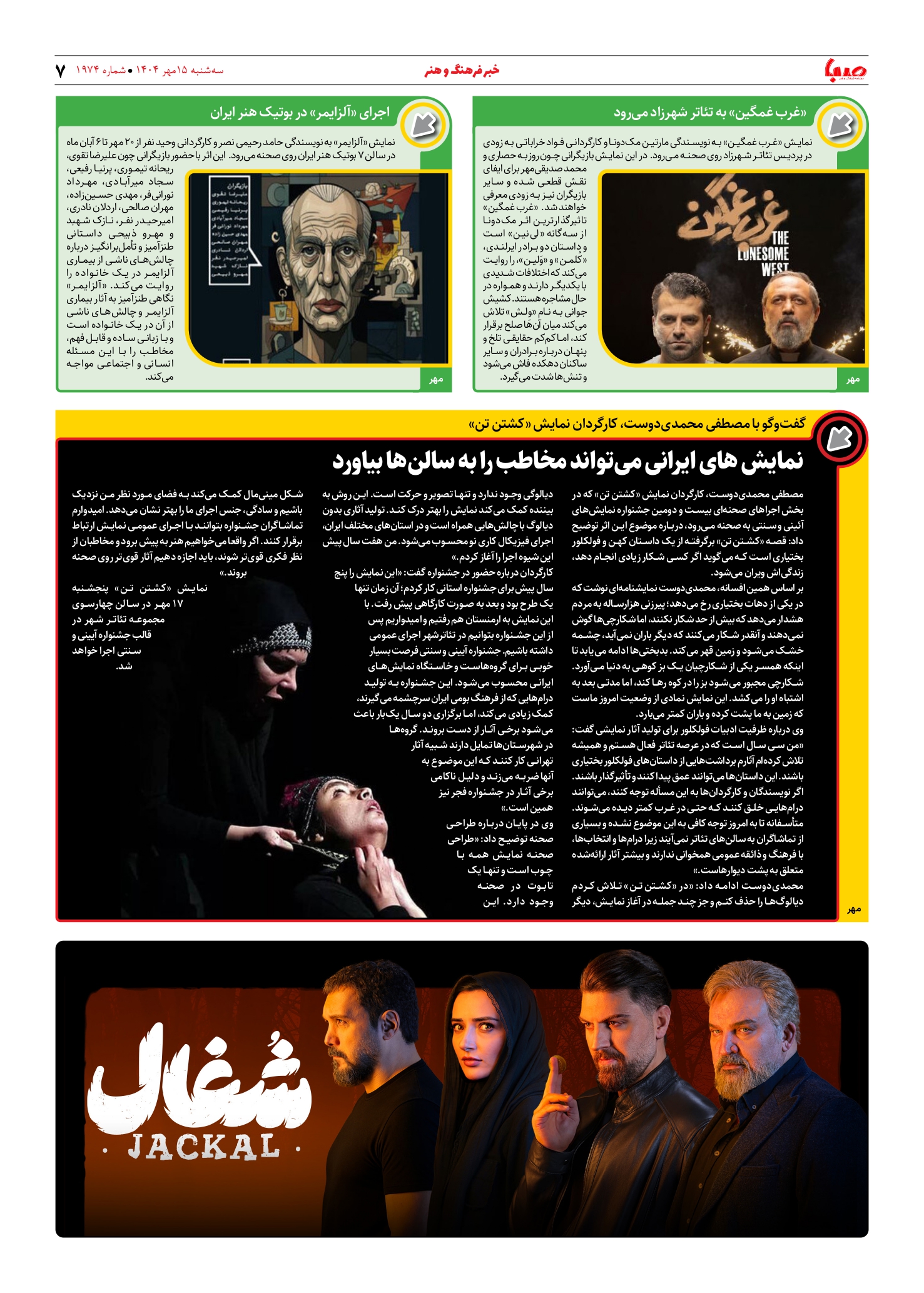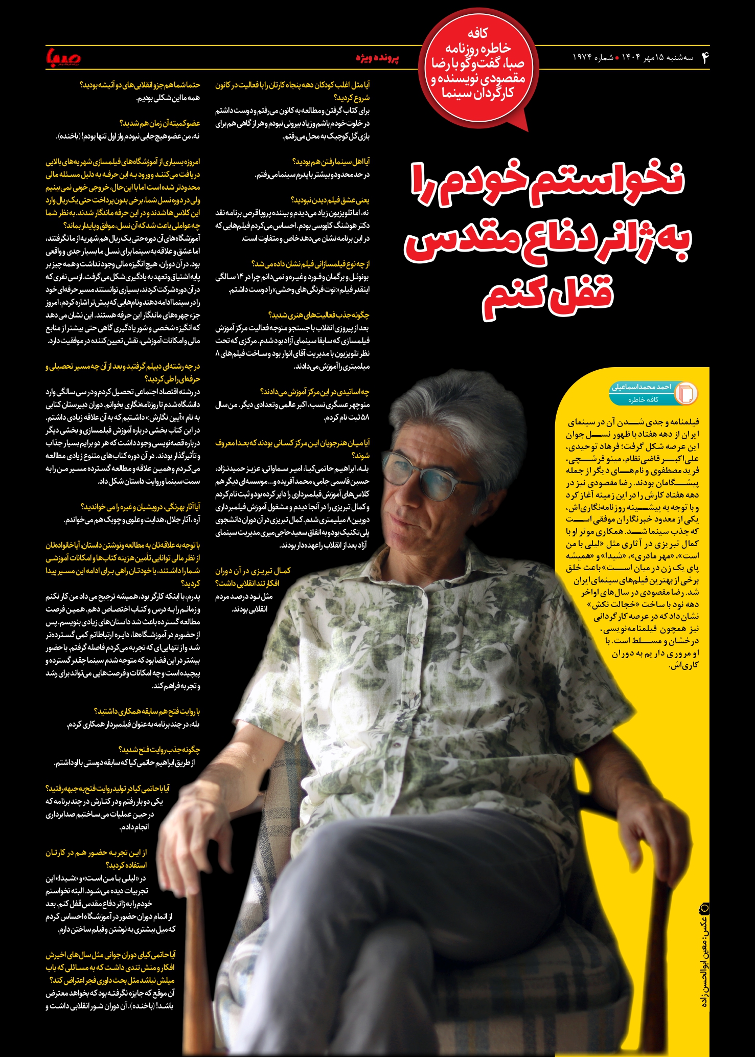 شماره ۱۹۷۴| روزنامه صبا سهشنبه ۱۵ مهر ۱۴۰۴