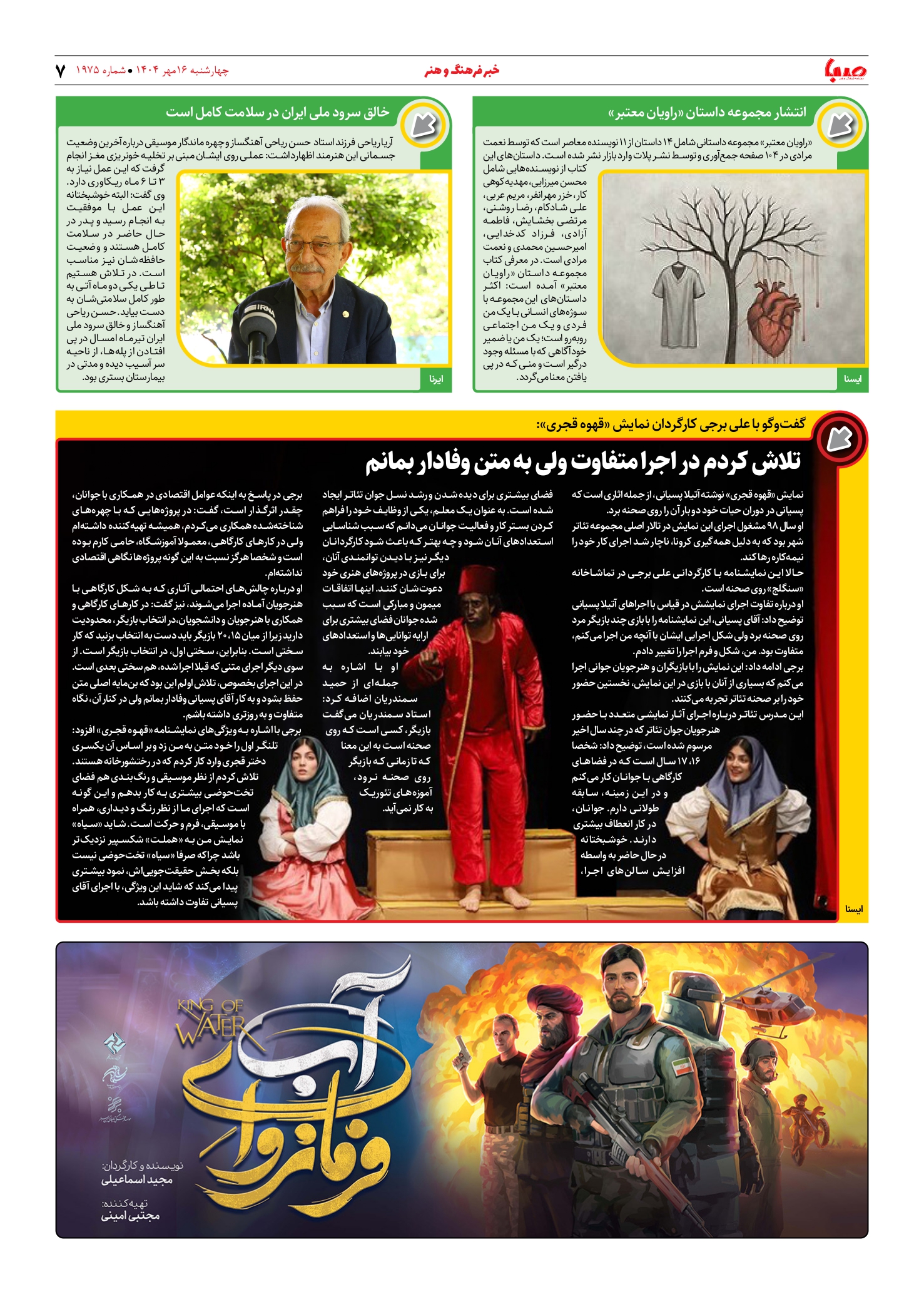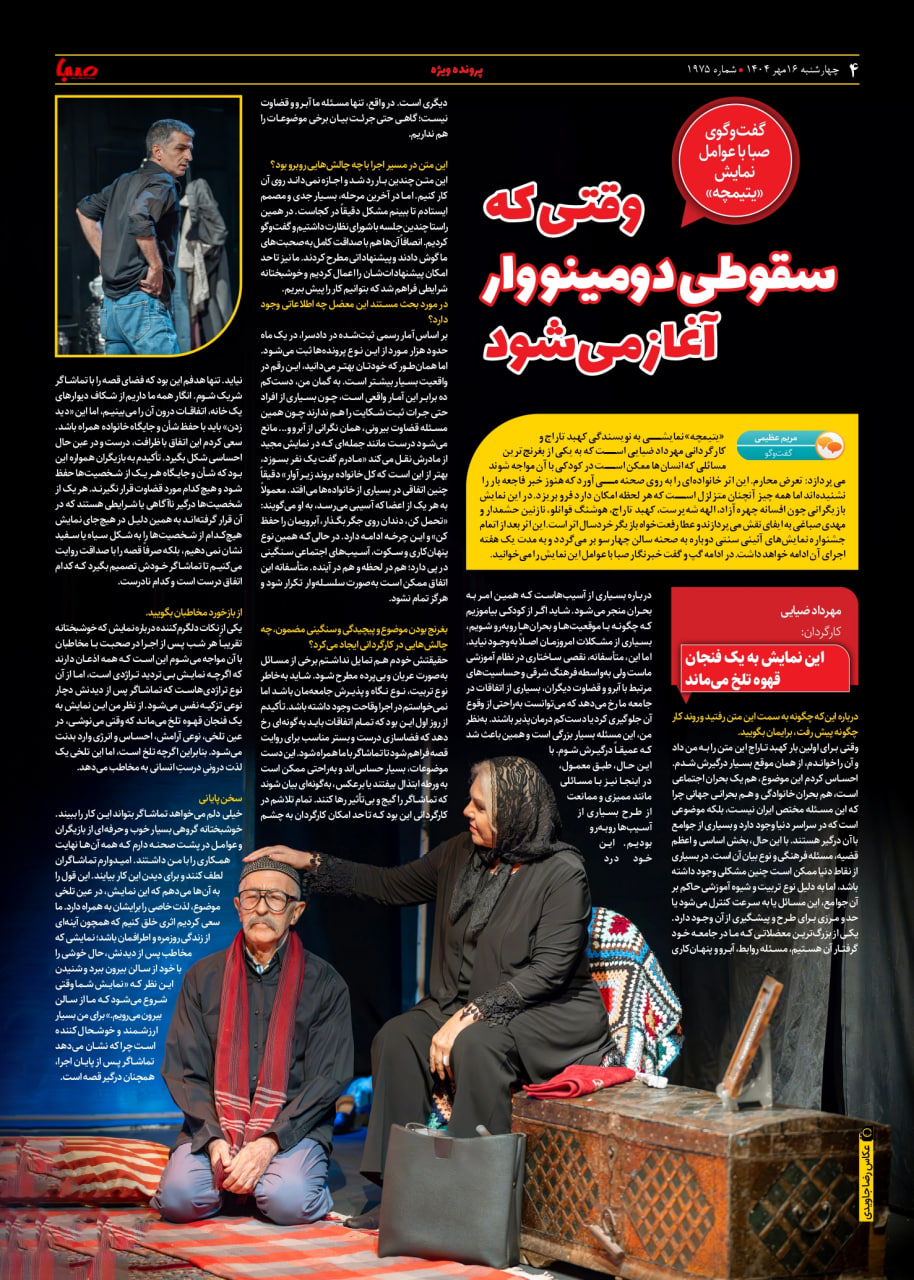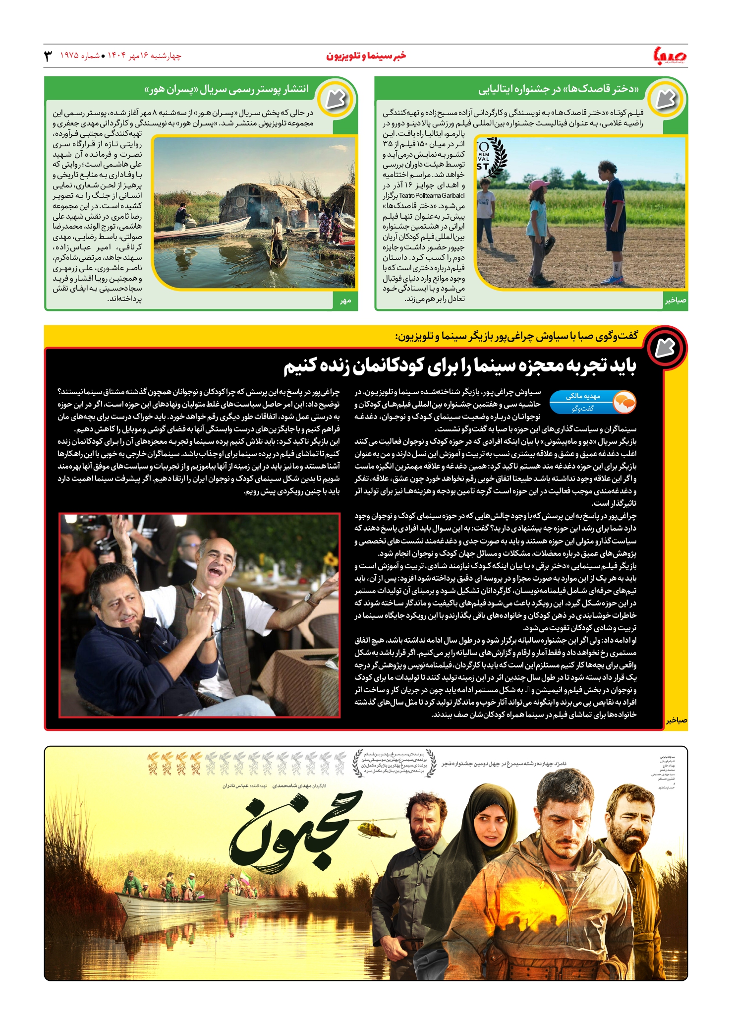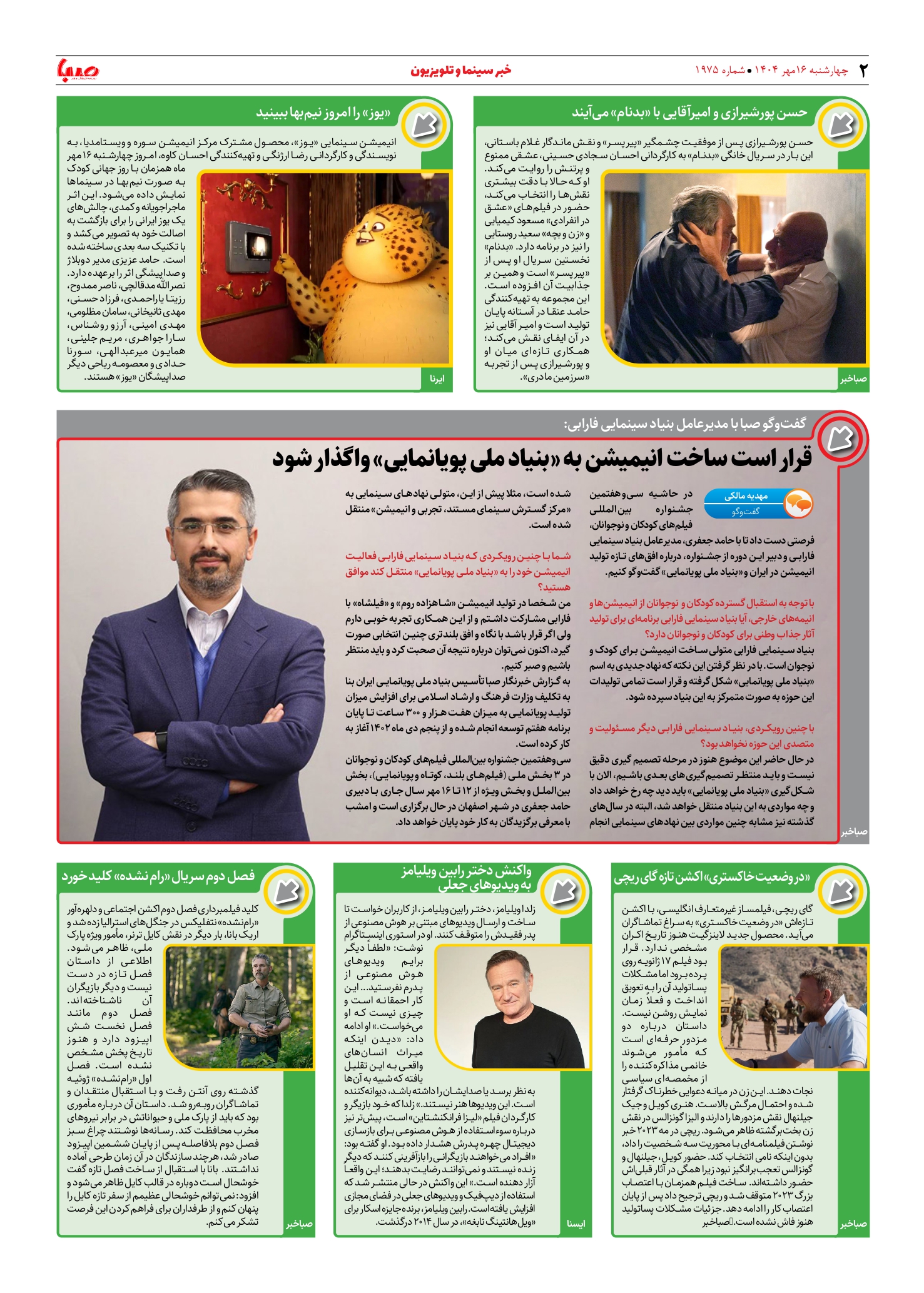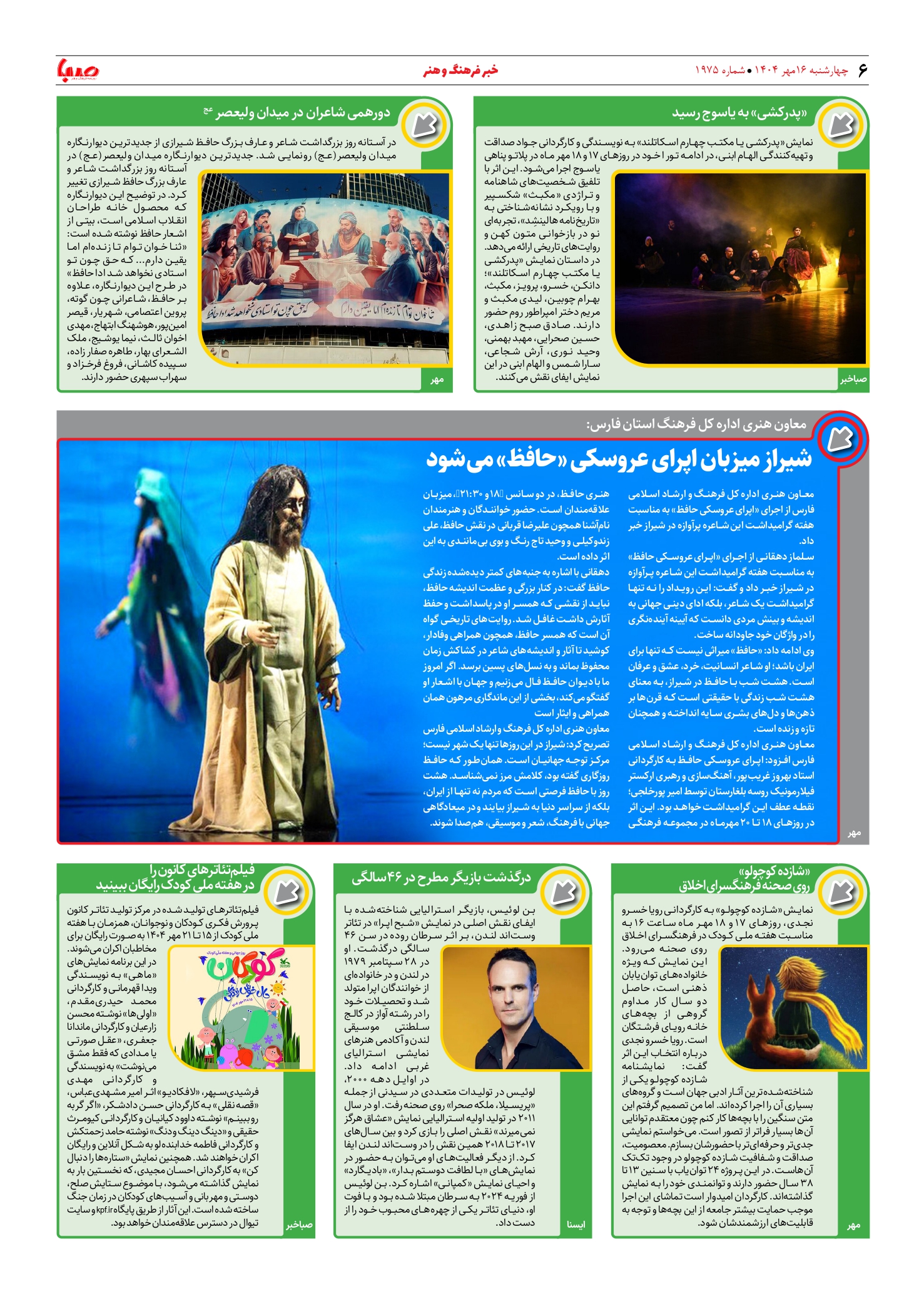 شماره ۱۹۷۵| روزنامه صبا چهارشنبه ۱۶ مهر ۱۴۰۴