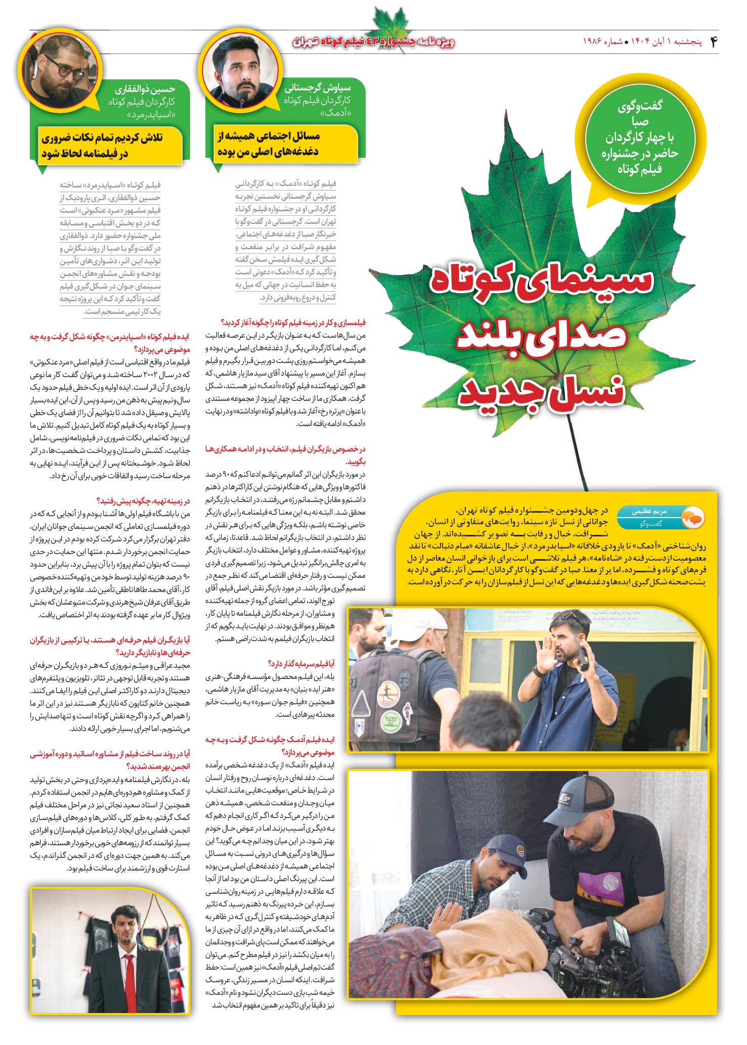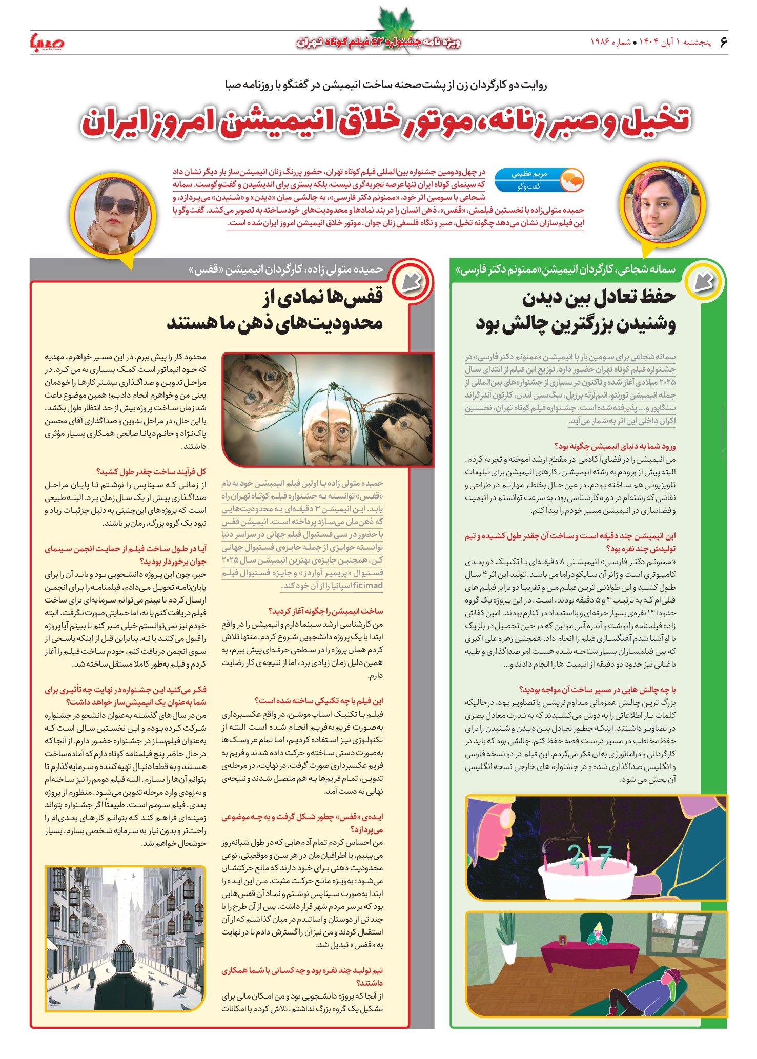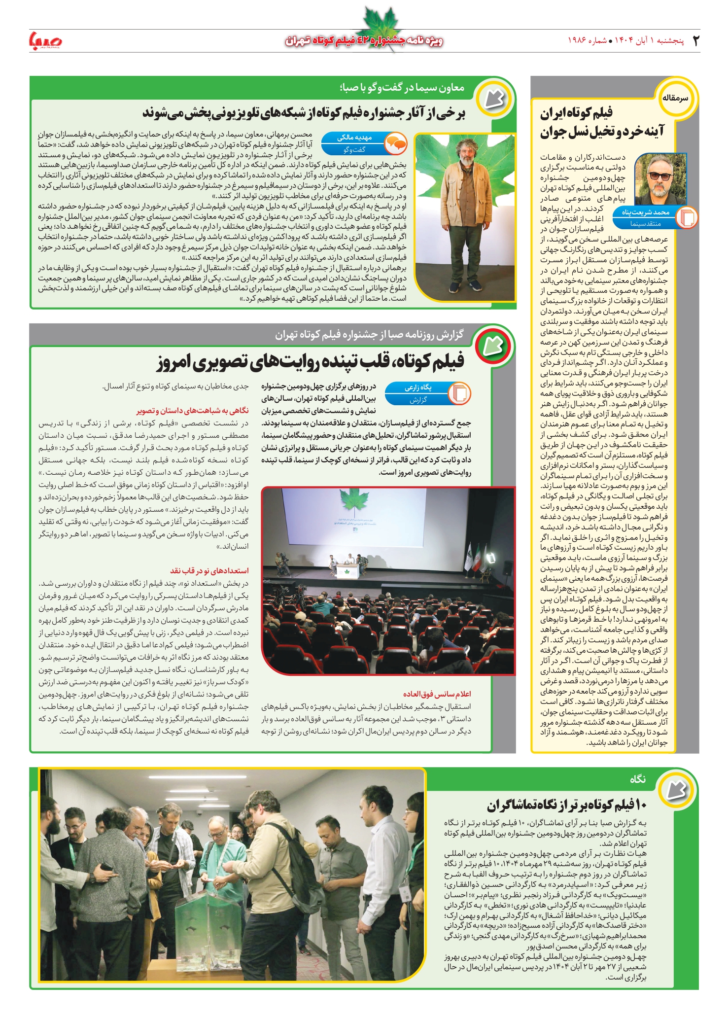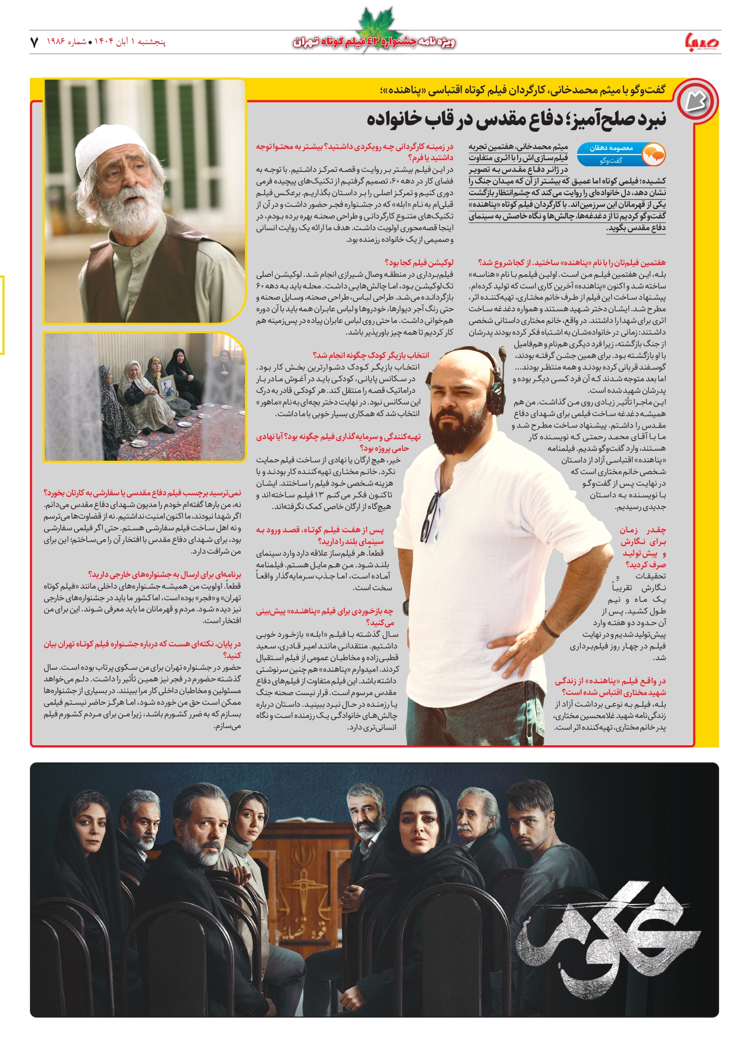 شماره ۱۹۸۶| روزنامه صبا پنجشنبه ۱ آبان ۱۴۰۴