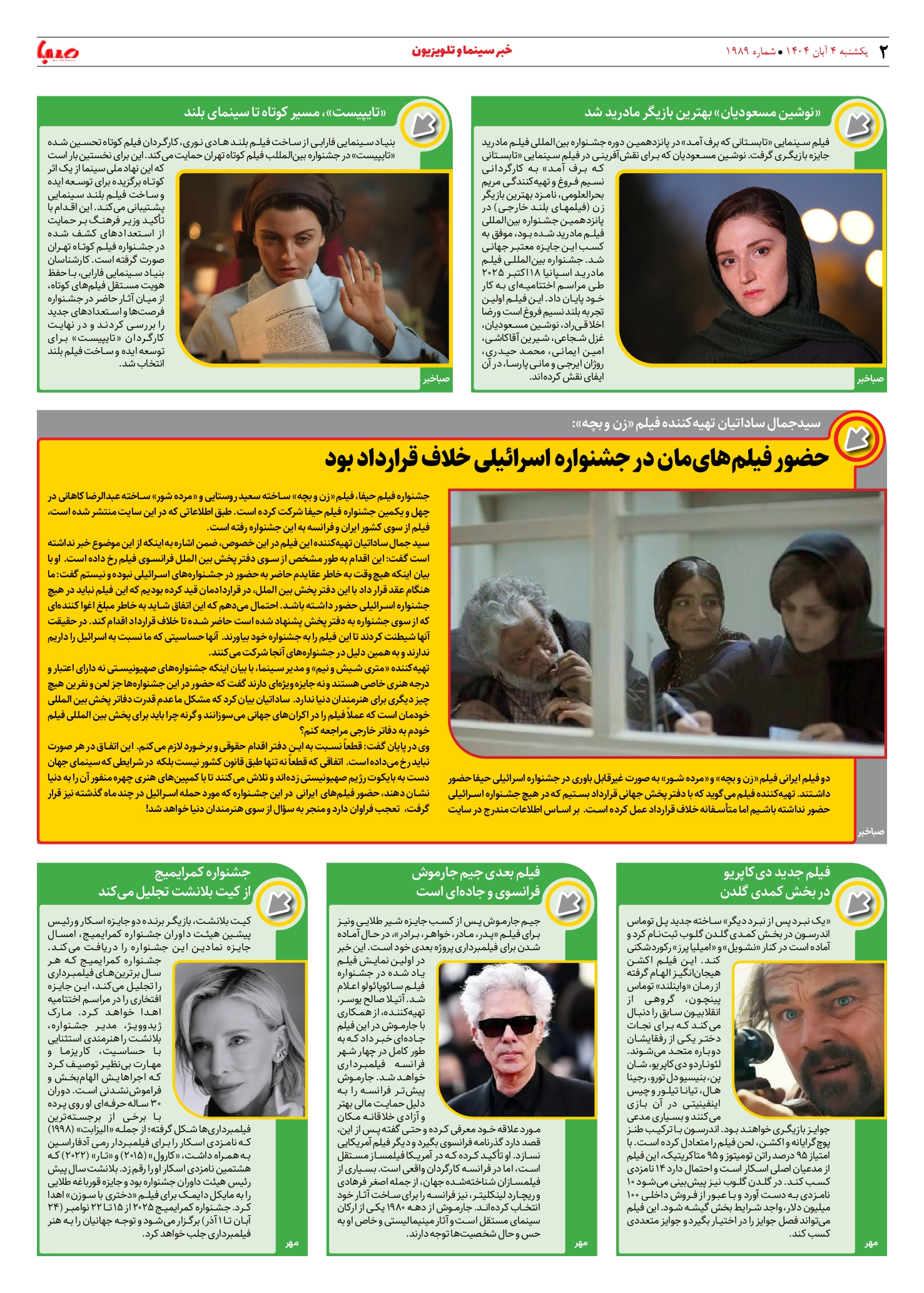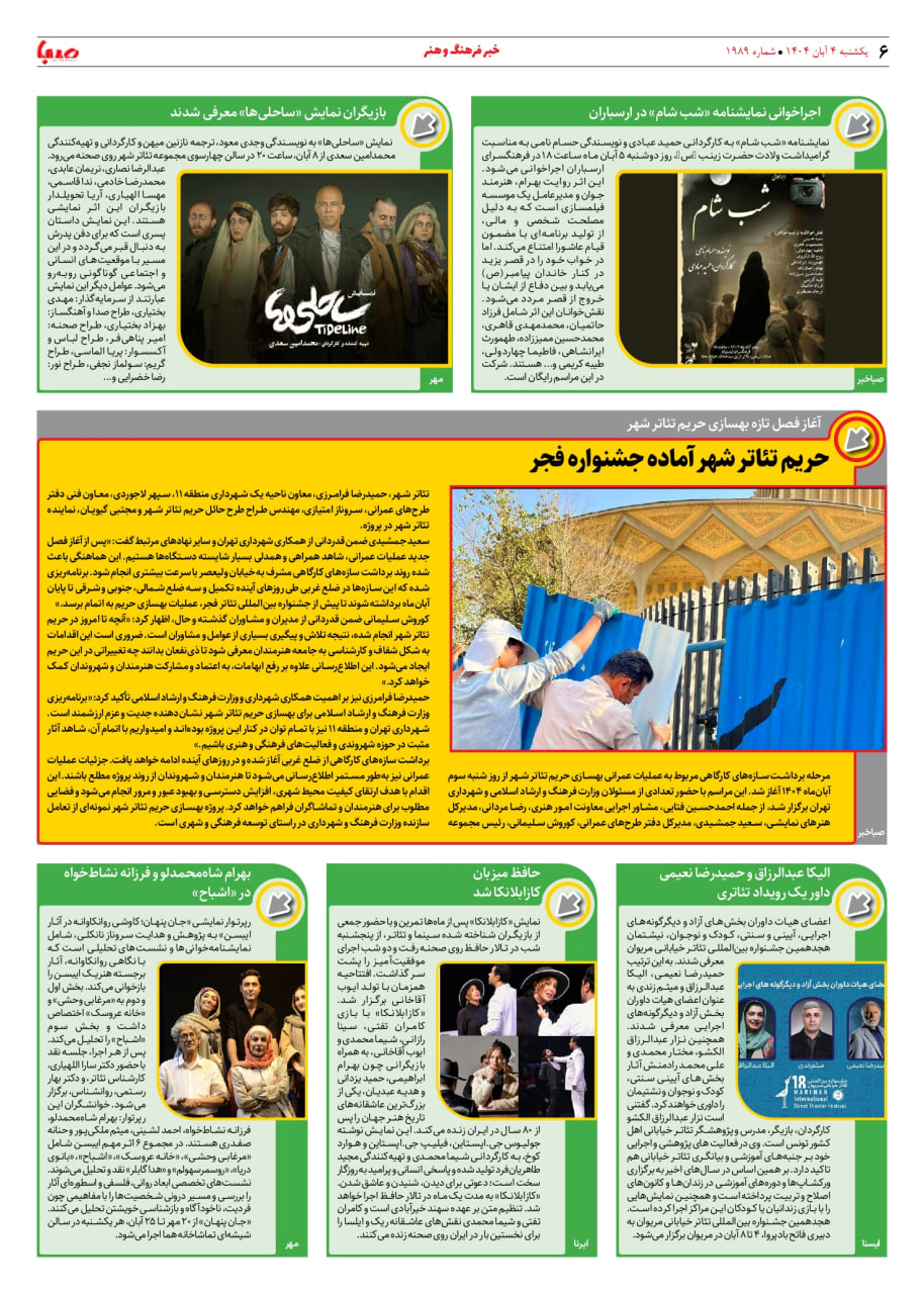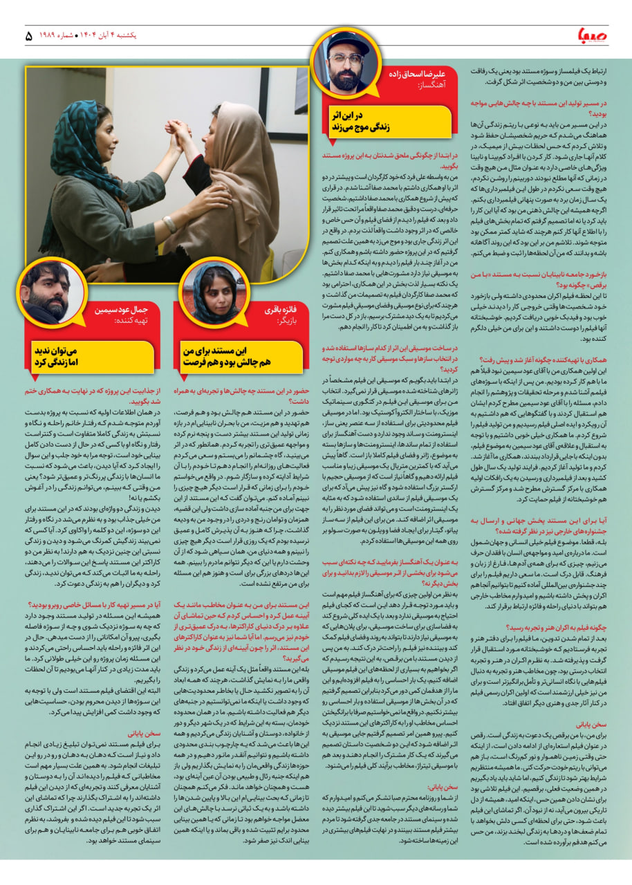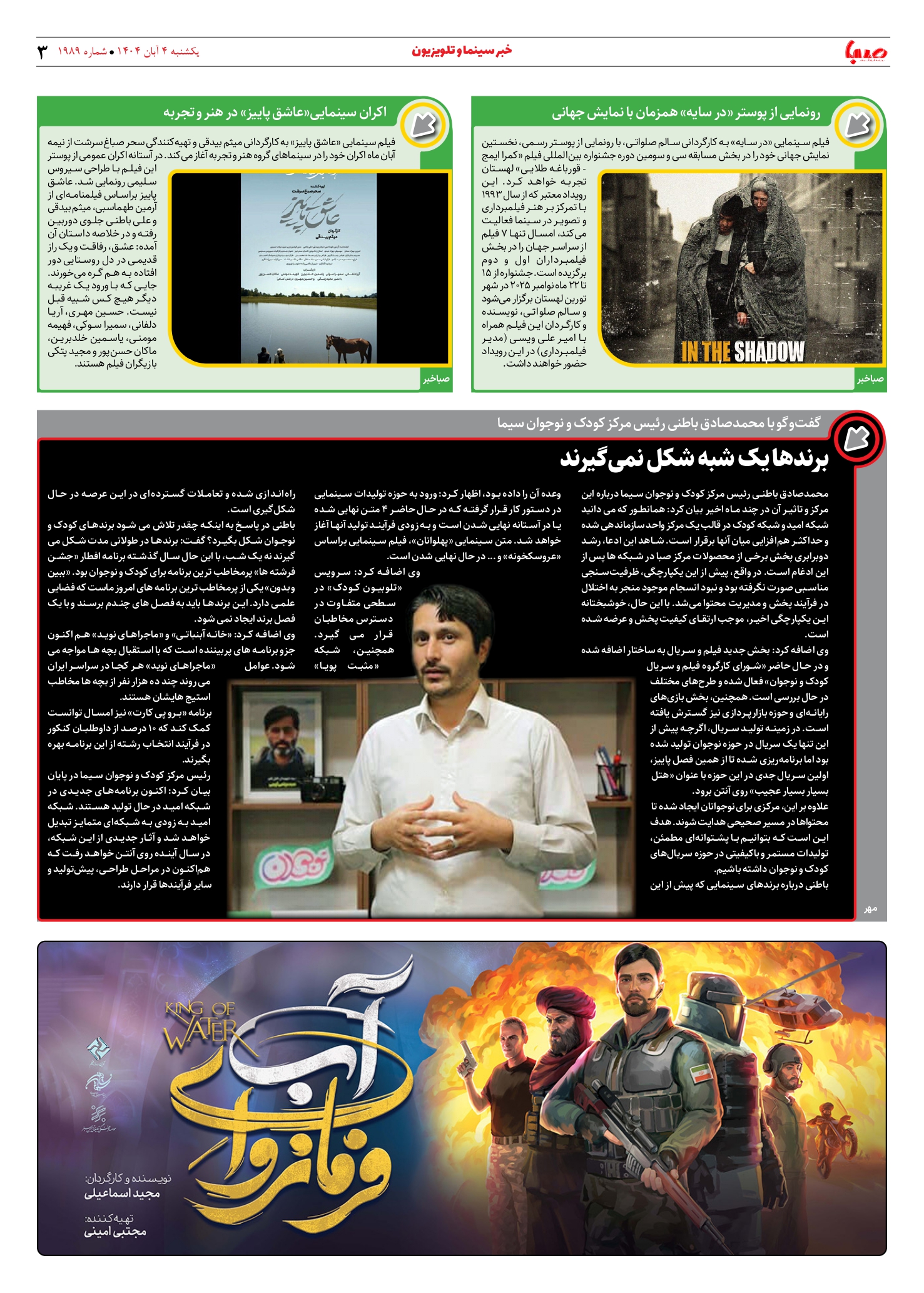 شماره ۱۹۸۹| روزنامه صبا یکشنبه ۴ آبان ۱۴۰۴