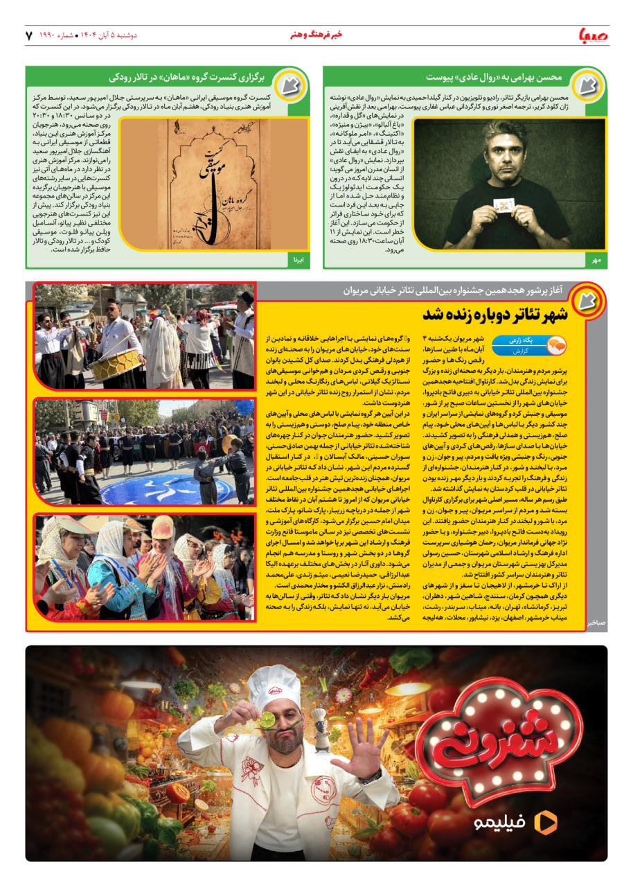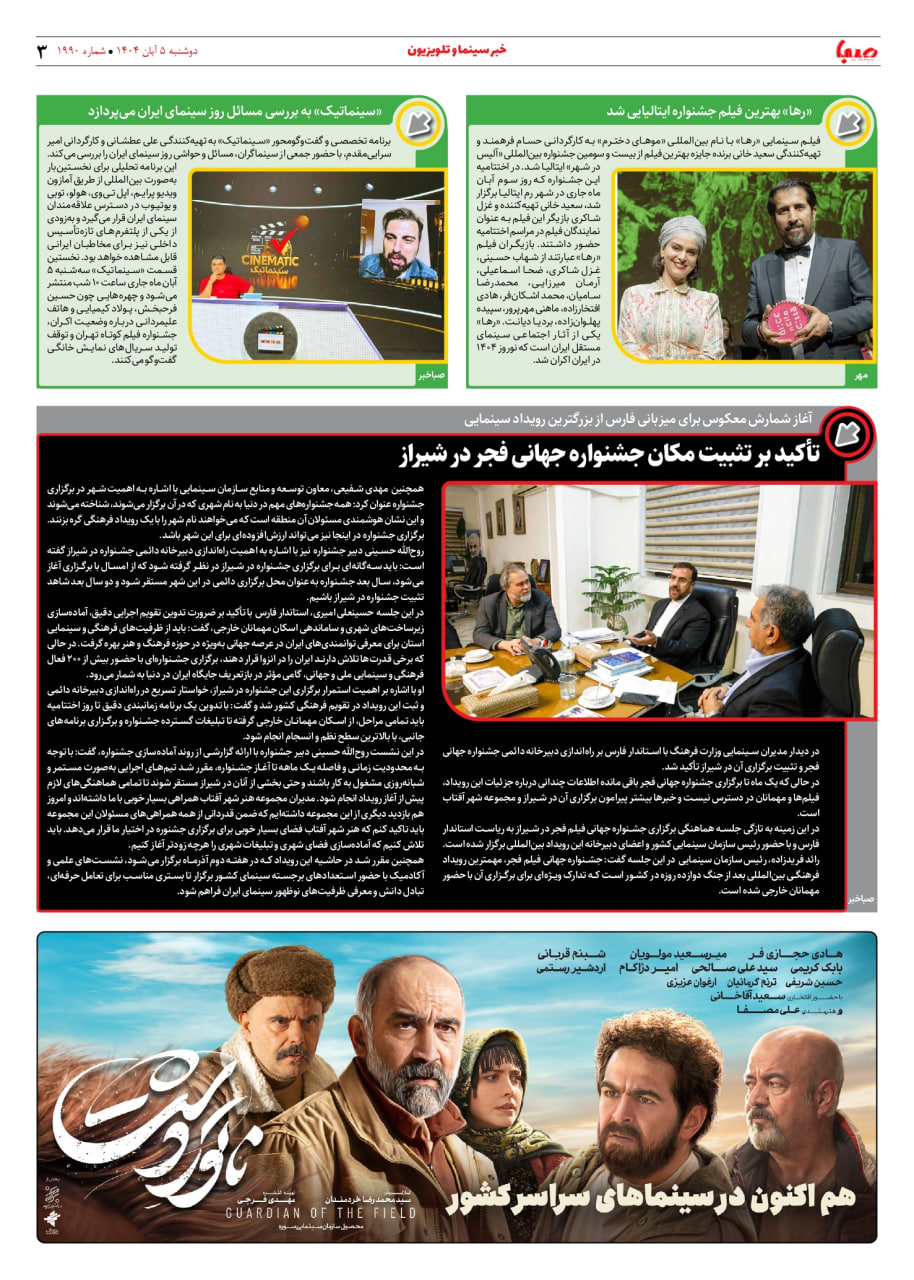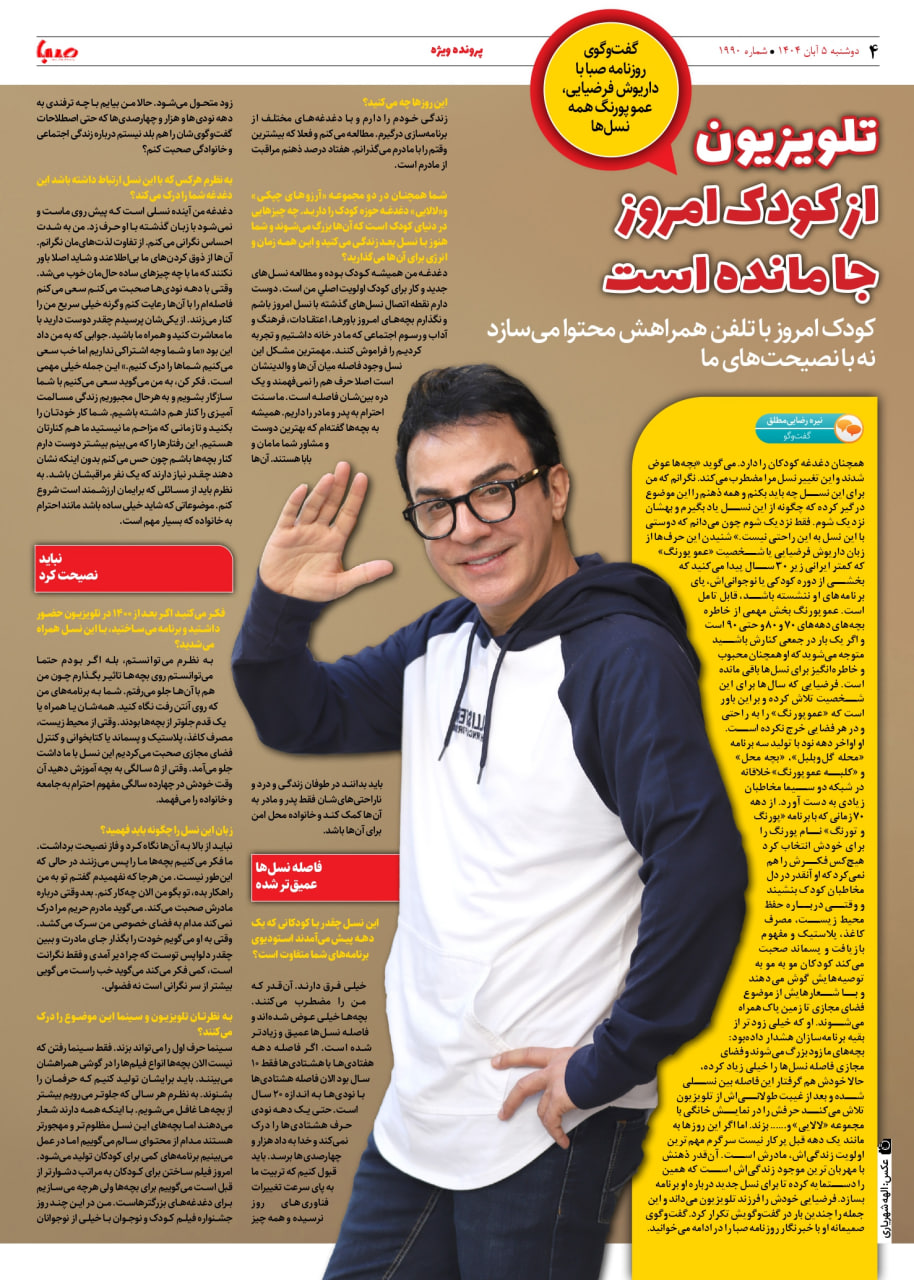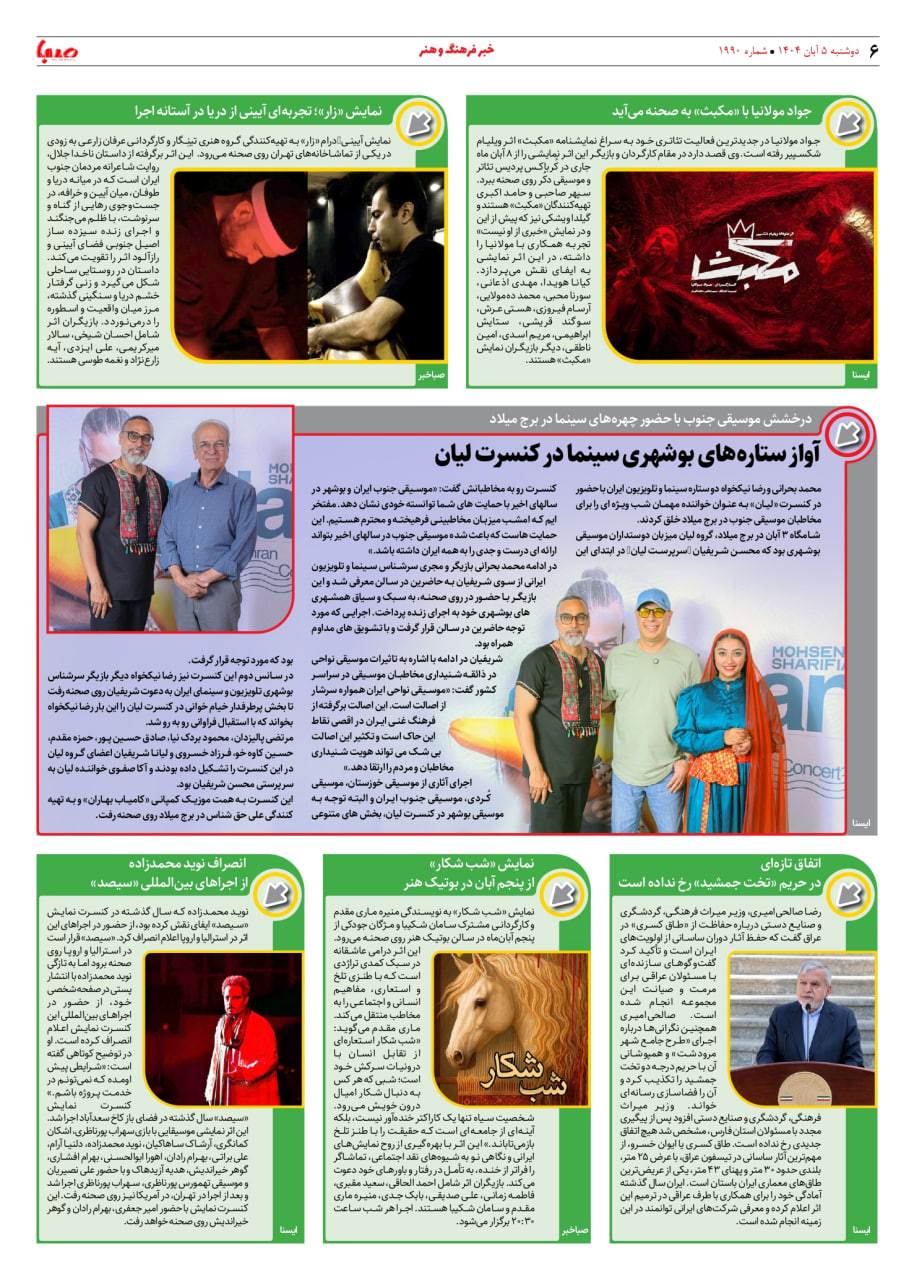 شماره ۱۹۹۰| روزنامه صبا دوشنبه ۵ آبان ۱۴۰۴
