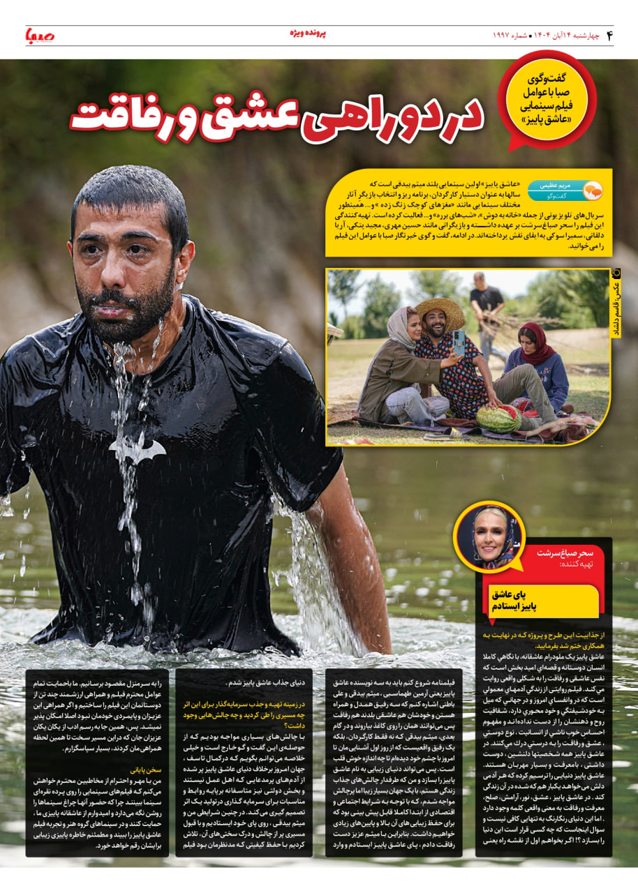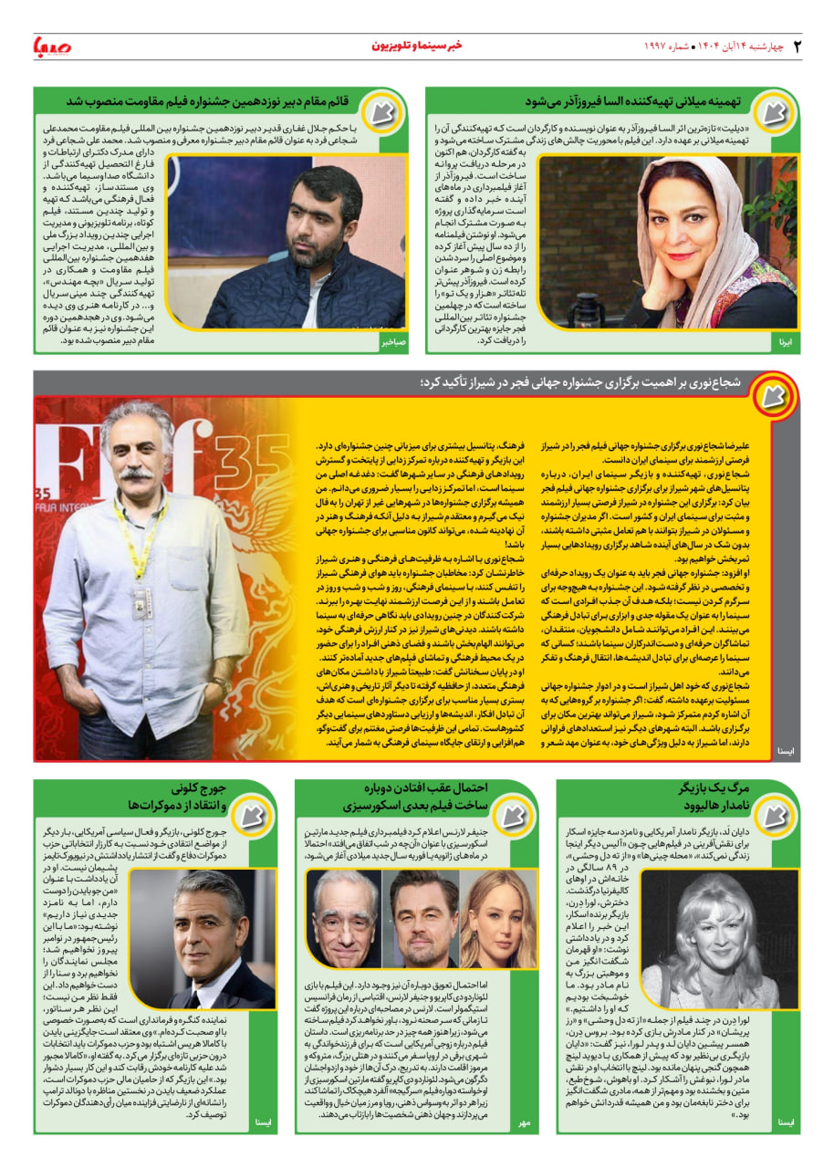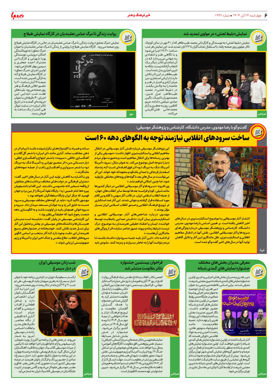 شماره ۱۹۹۷| روزنامه صبا چهارشنبه ۱۴ آبان ۱۴۰۴