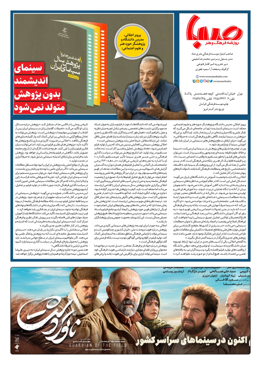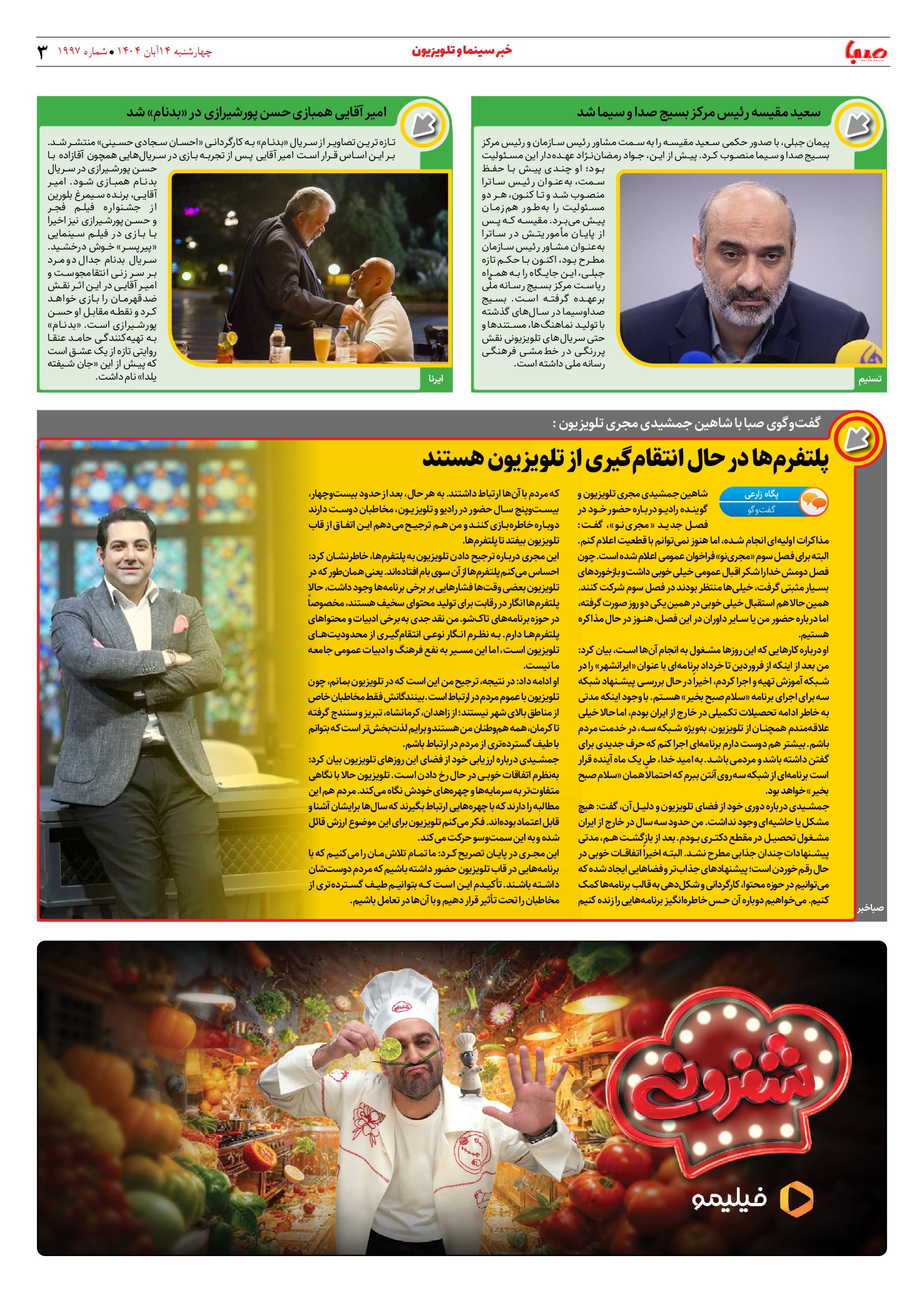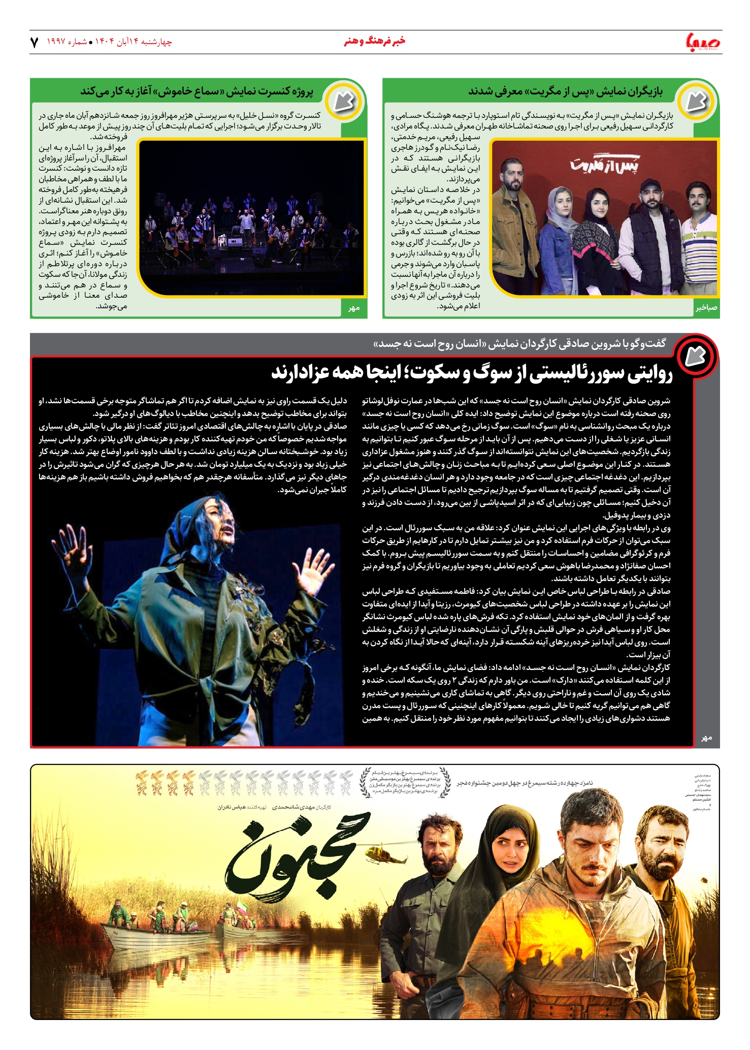 شماره ۱۹۹۷| روزنامه صبا چهارشنبه ۱۴ آبان ۱۴۰۴