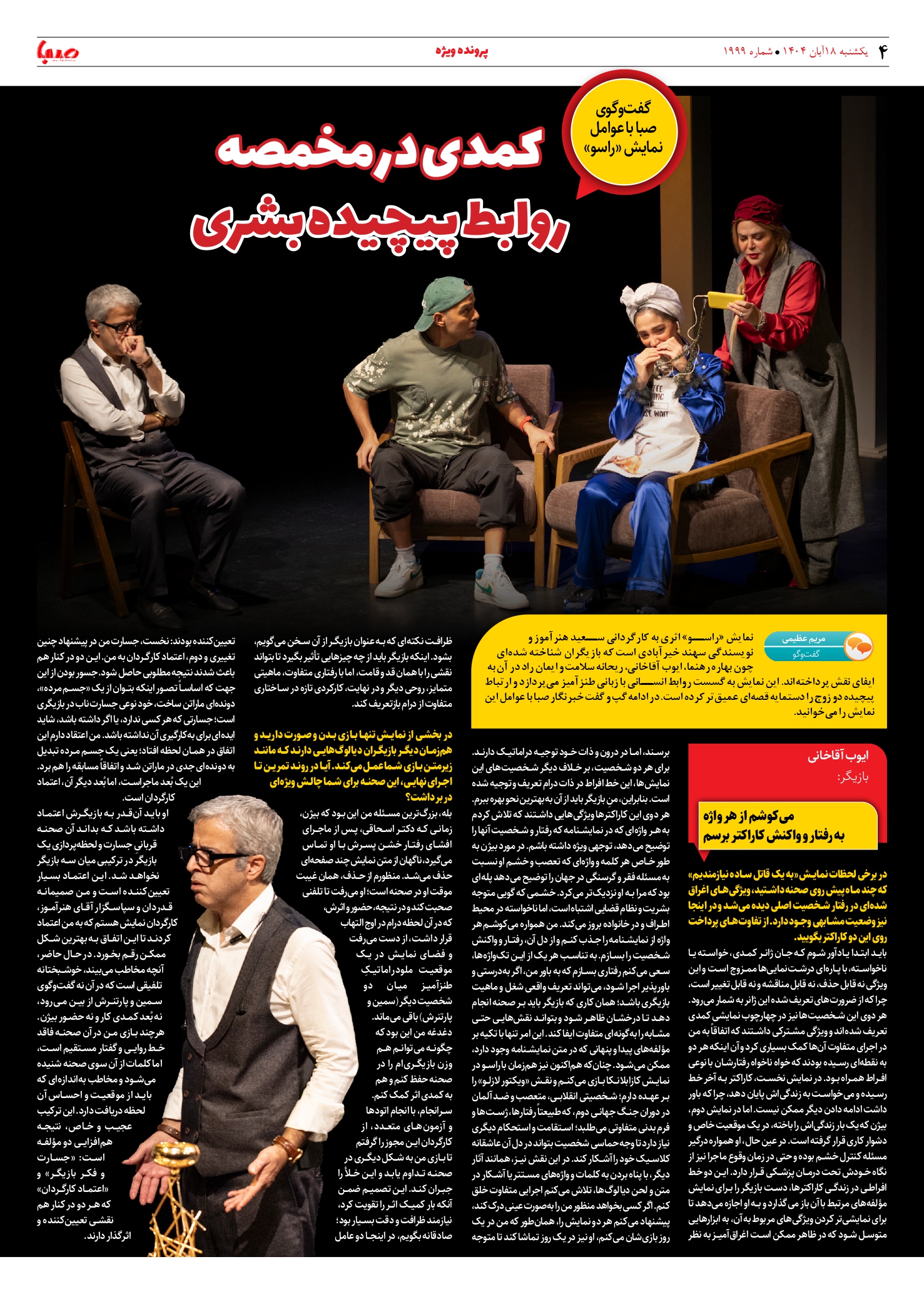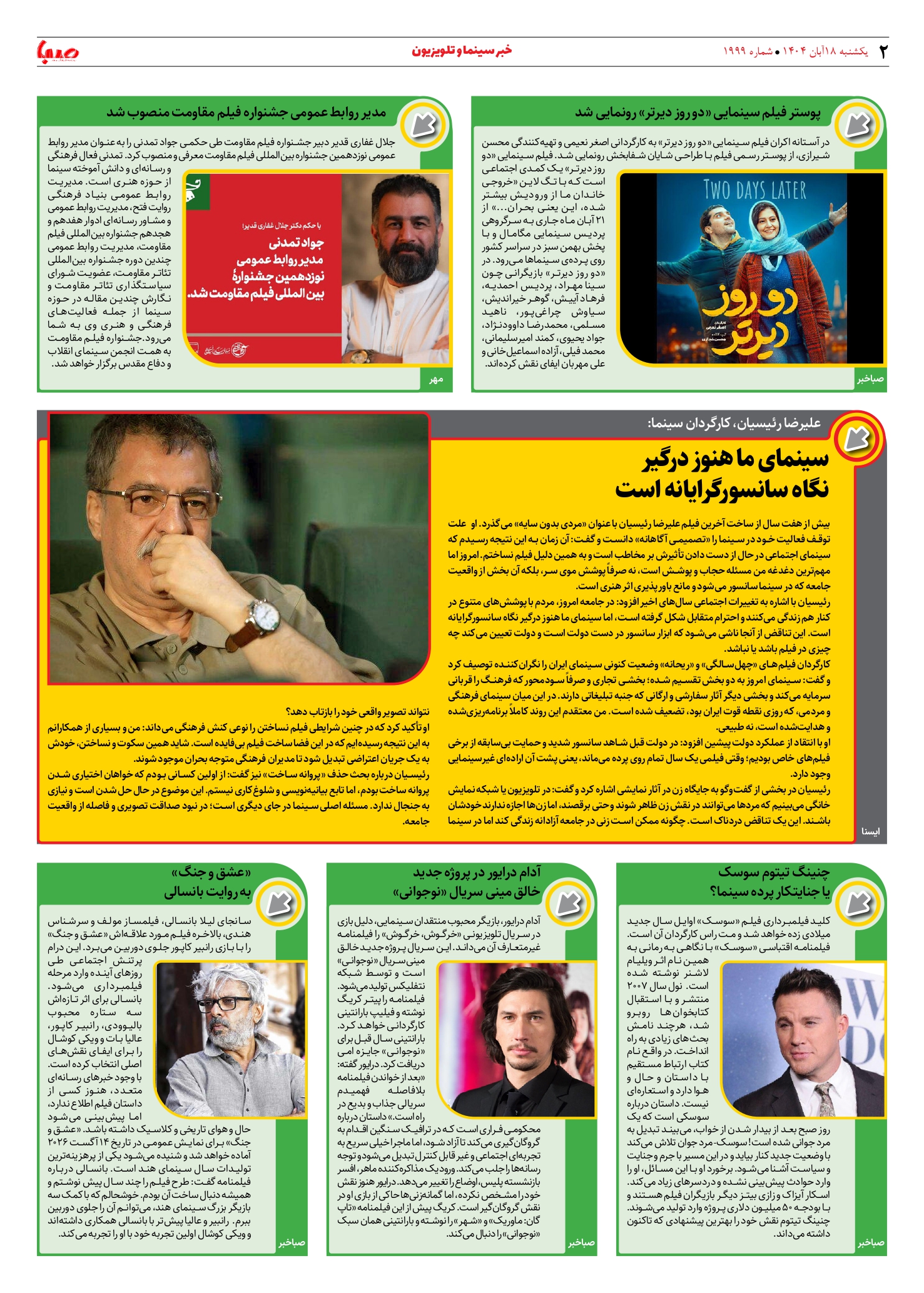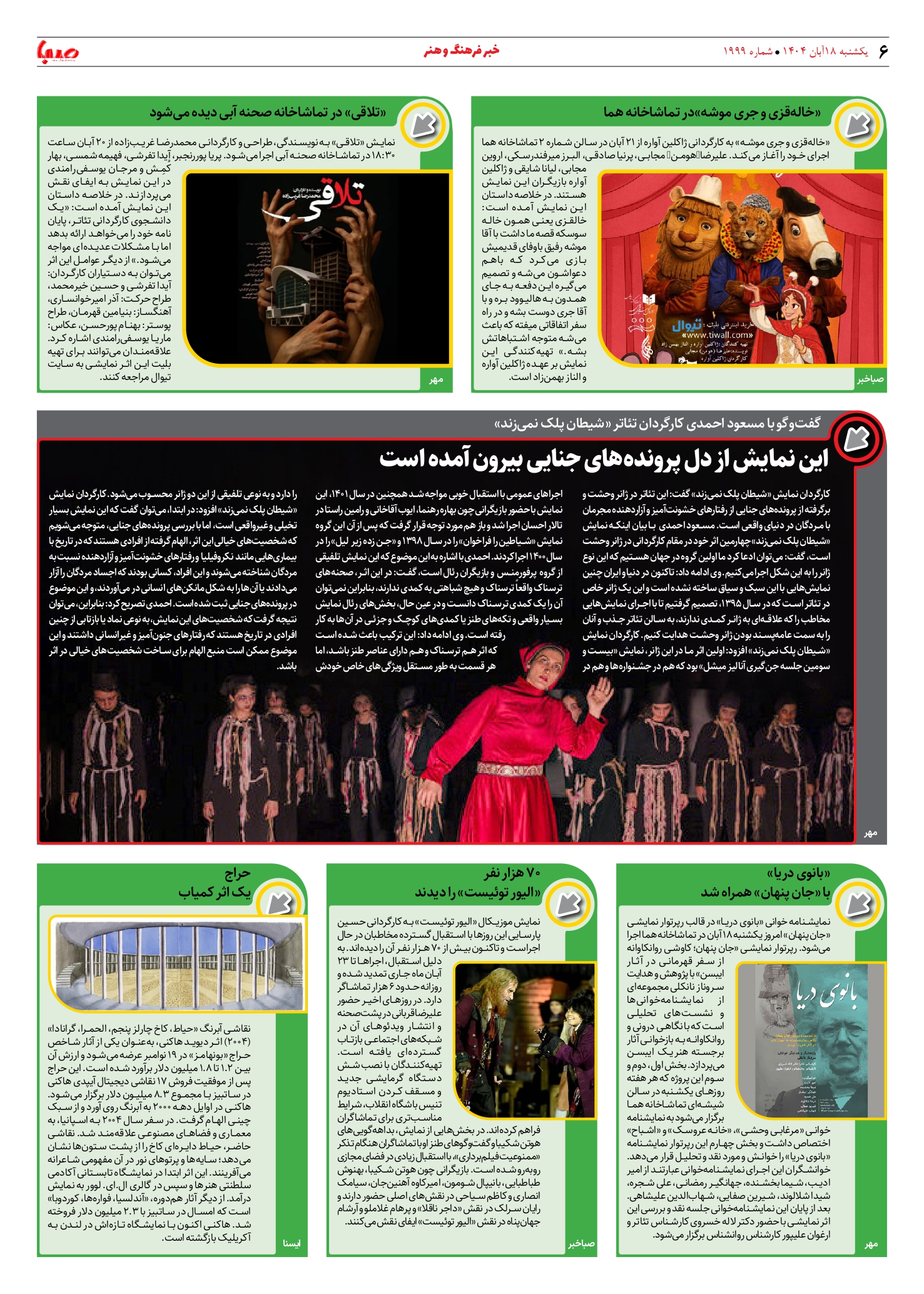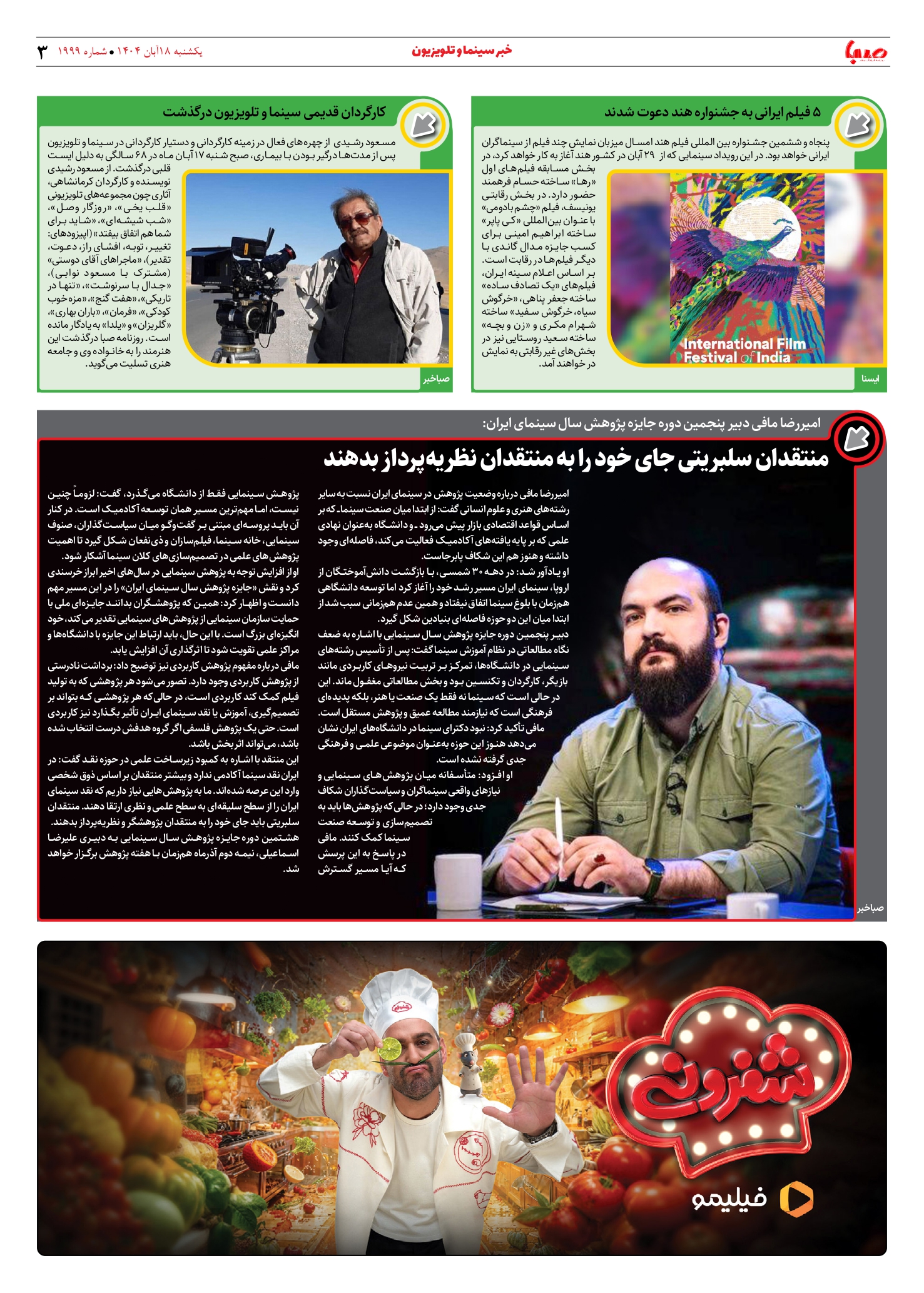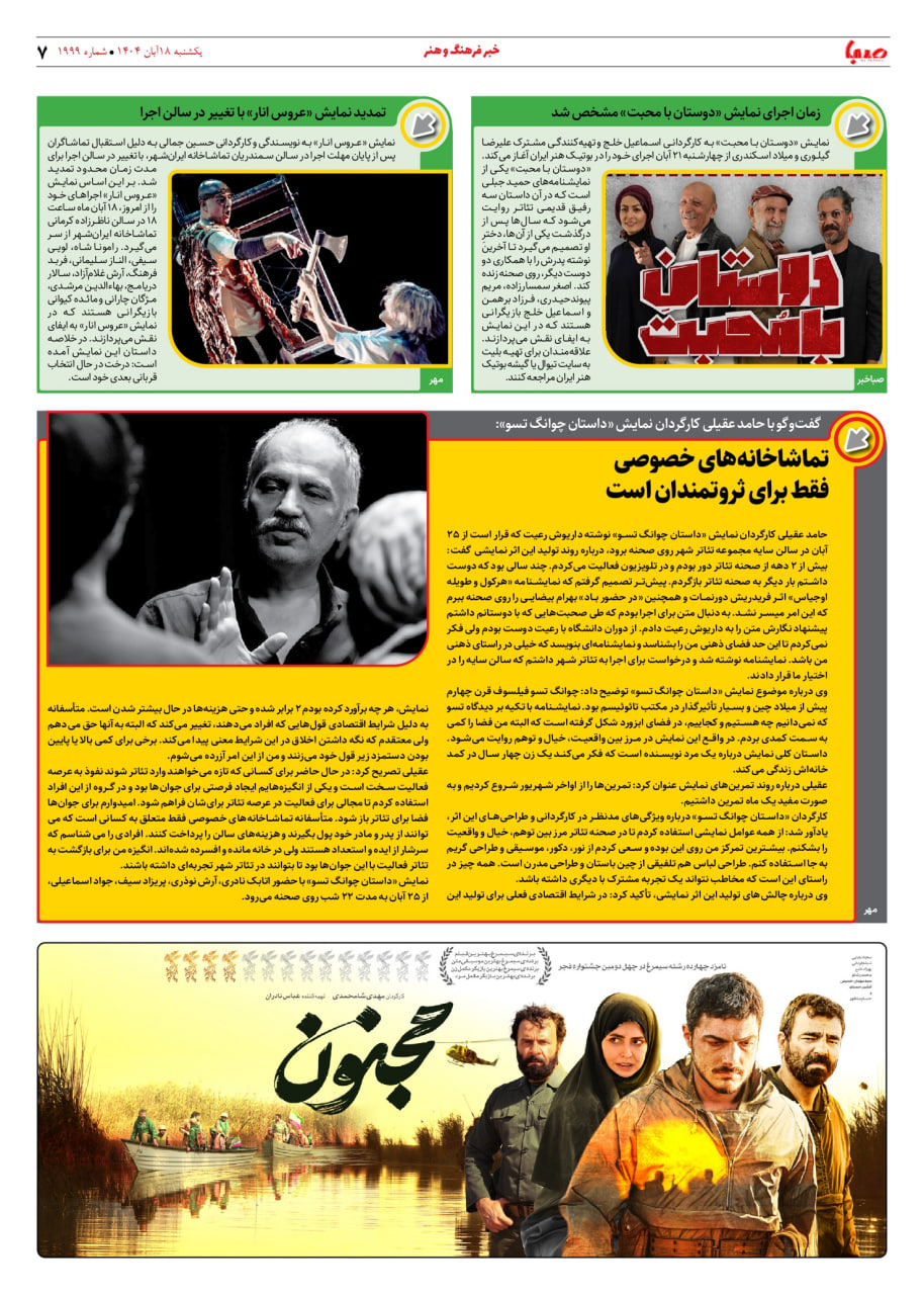 شماره ۱۹۹۹| روزنامه صبا یکشنبه ۱۸ آبان ۱۴۰۴