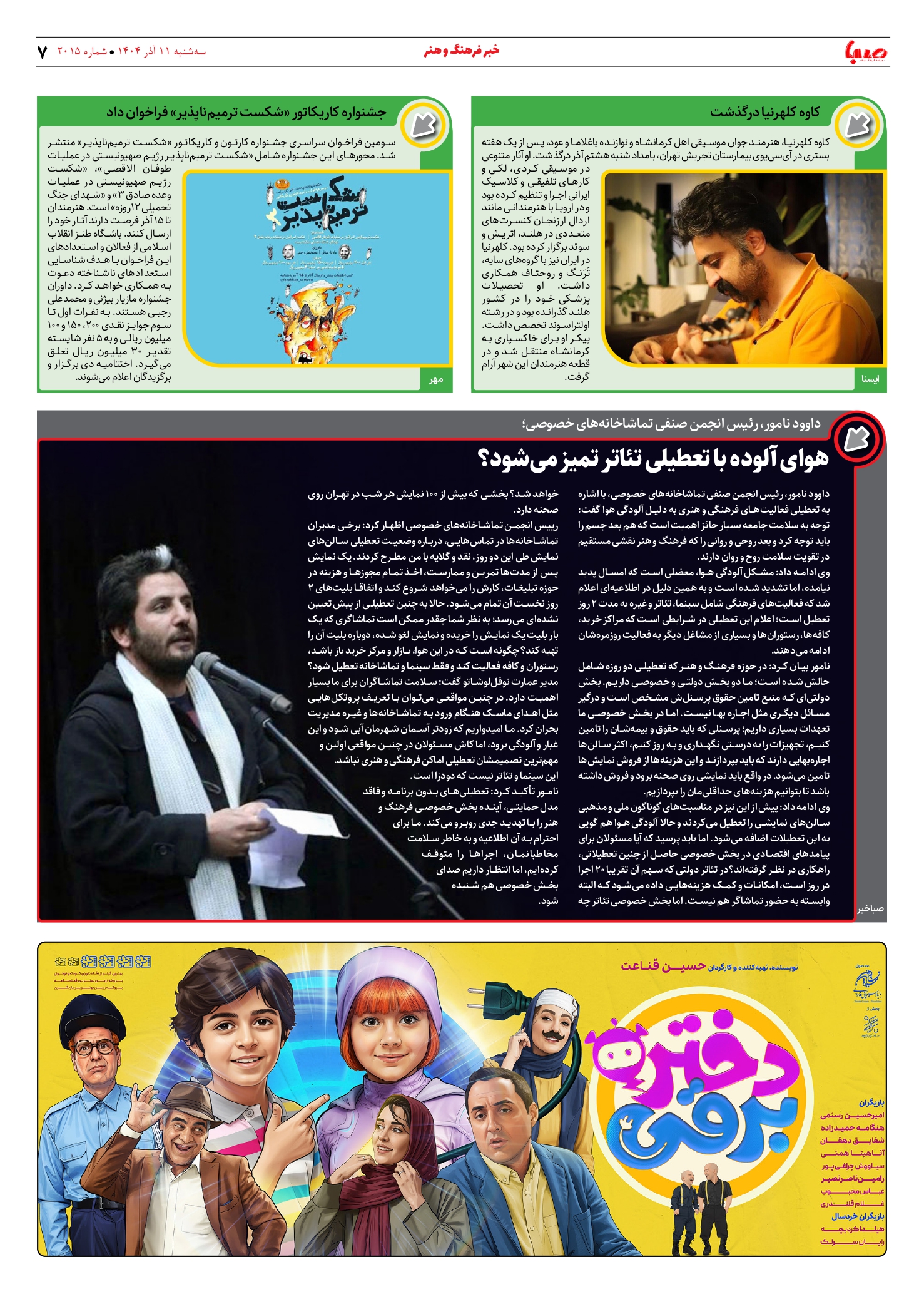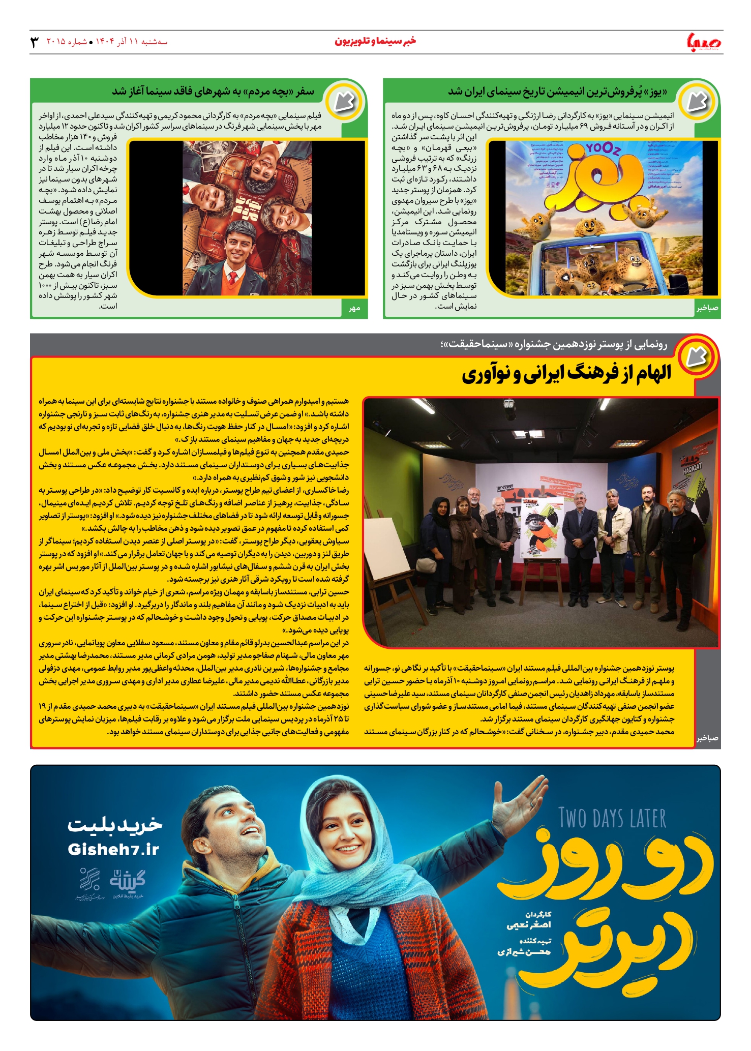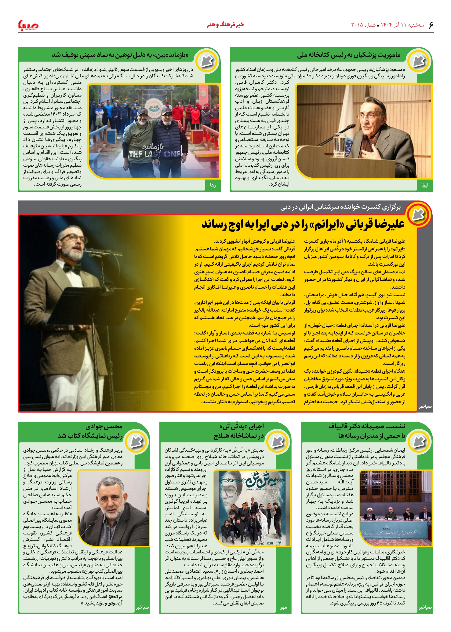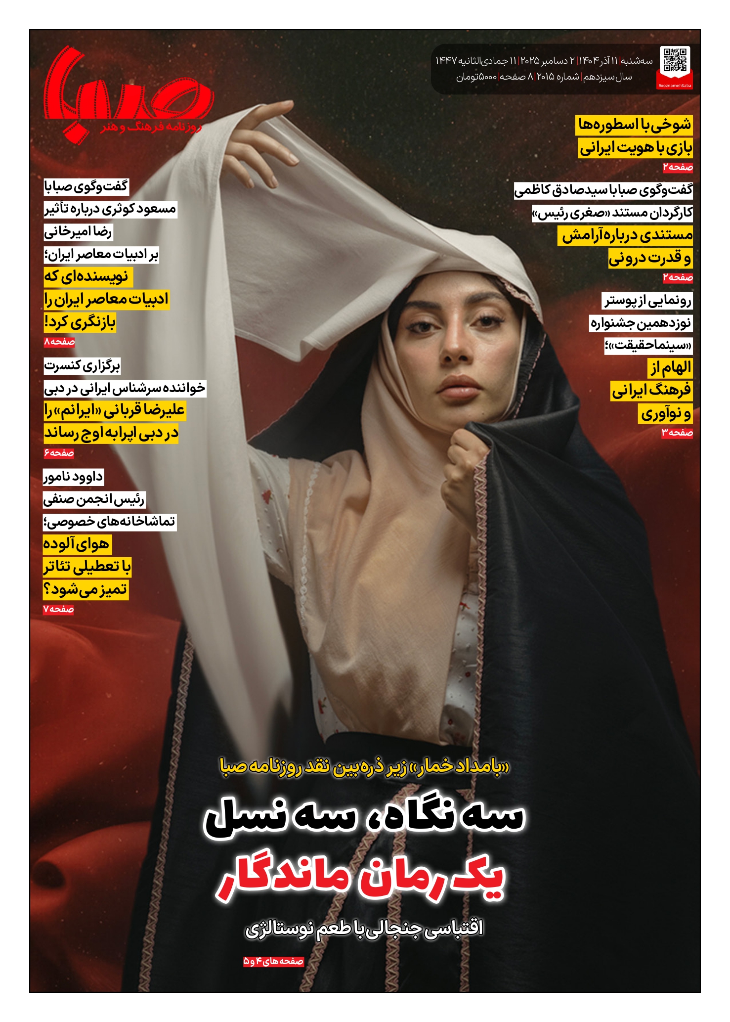 شماره 2015| روزنامه صبا سهشنبه 11 آذر ۱۴۰۴