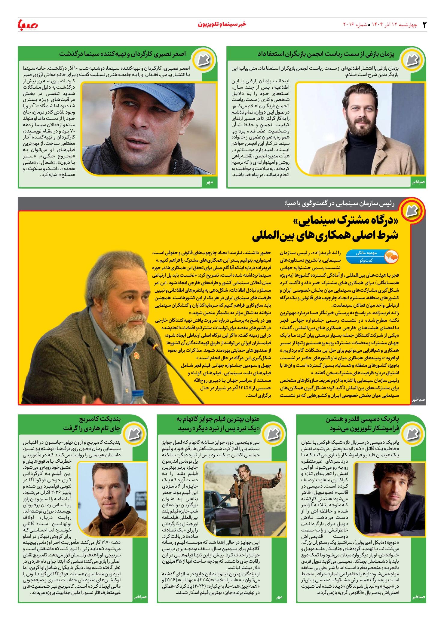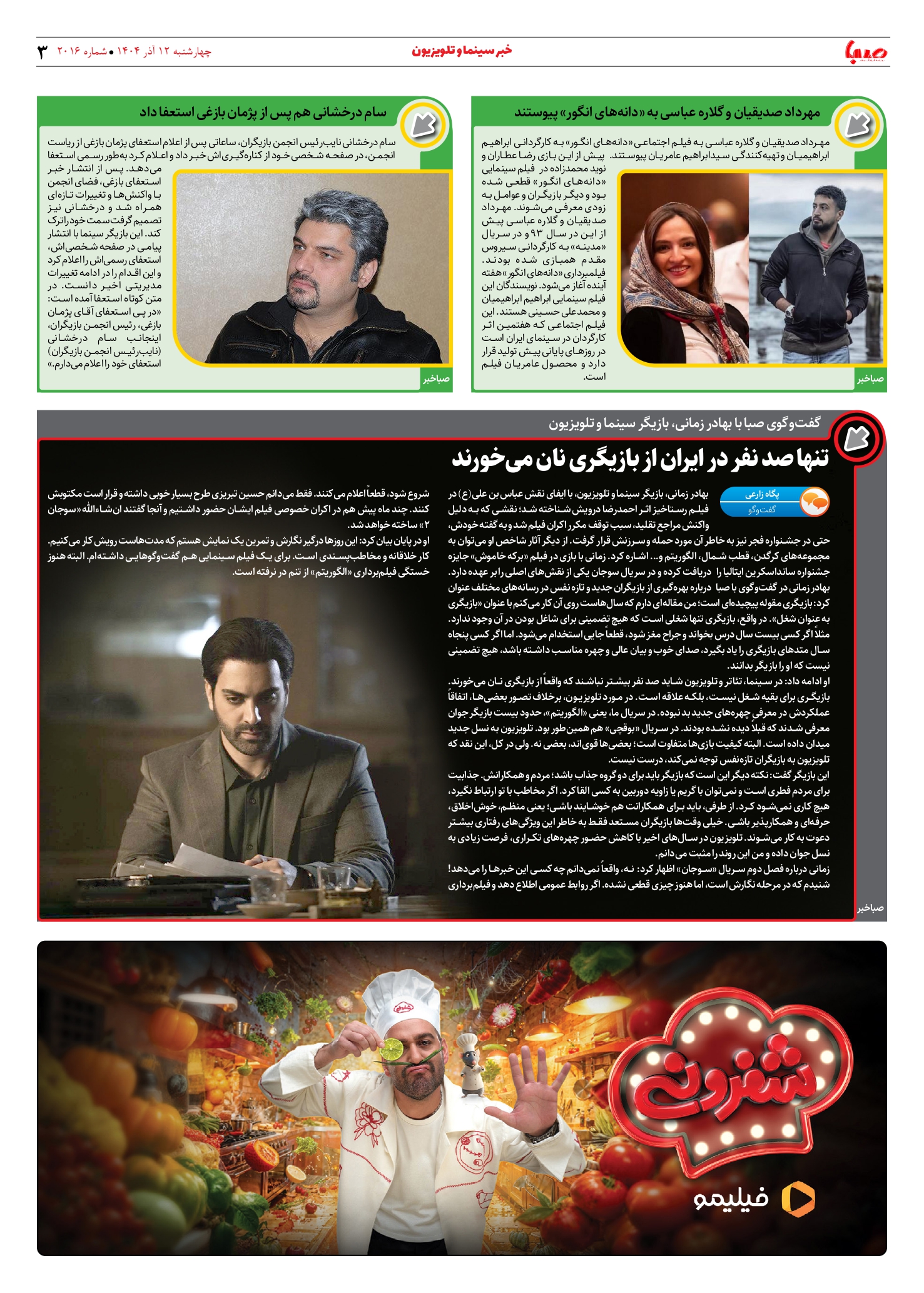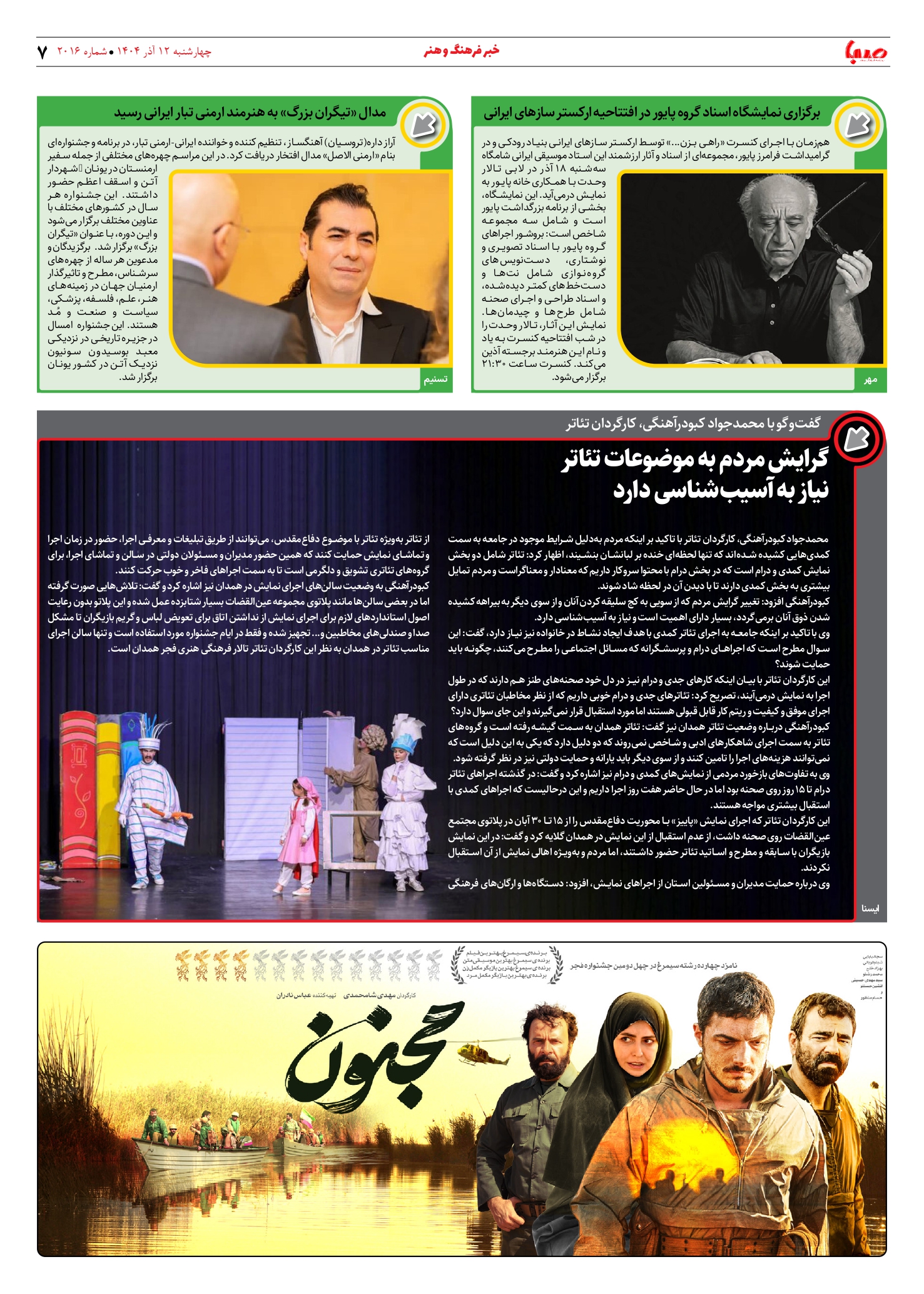شماره 2016| روزنامه صبا چهارشنبه 12 آذر ۱۴۰۴