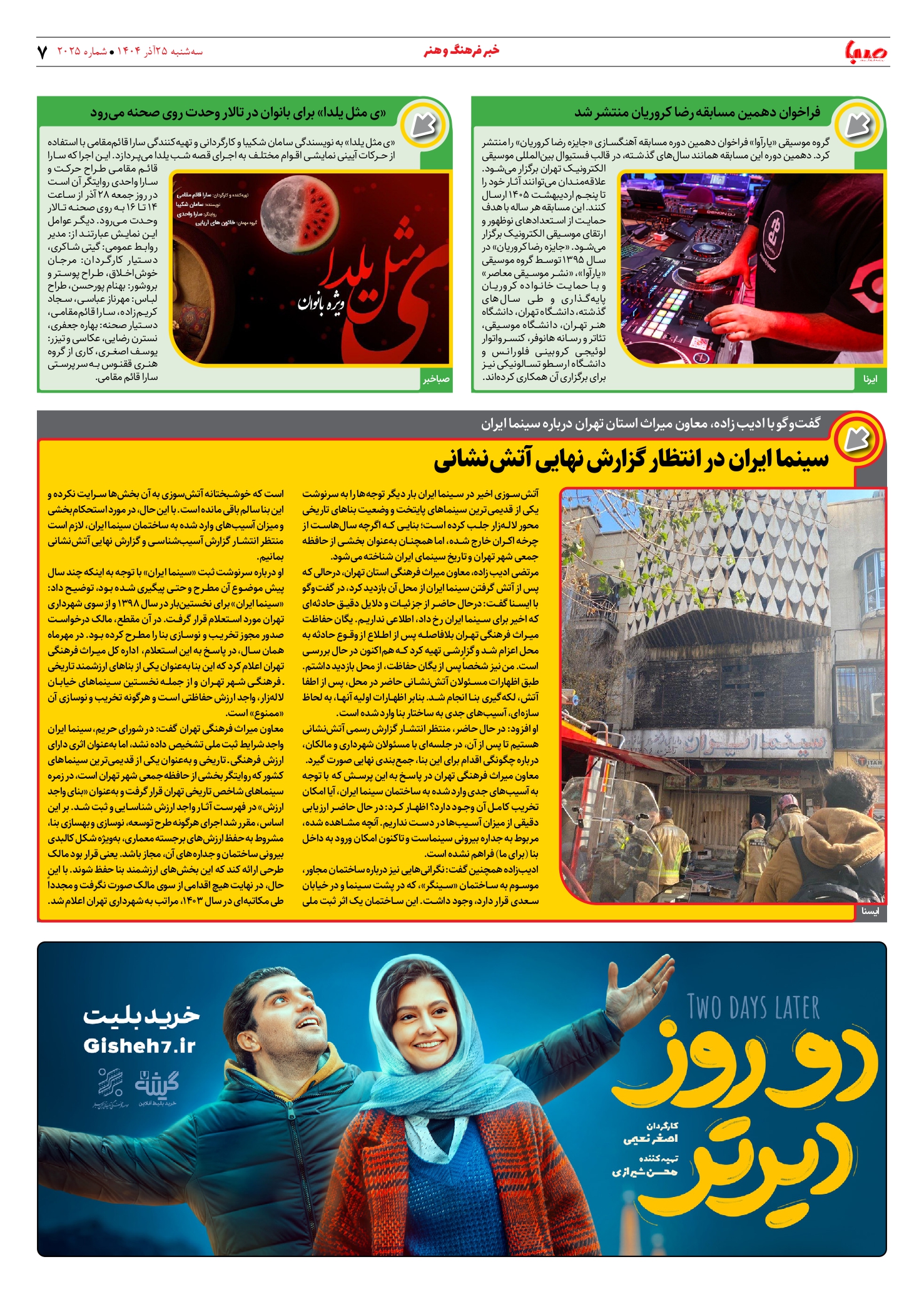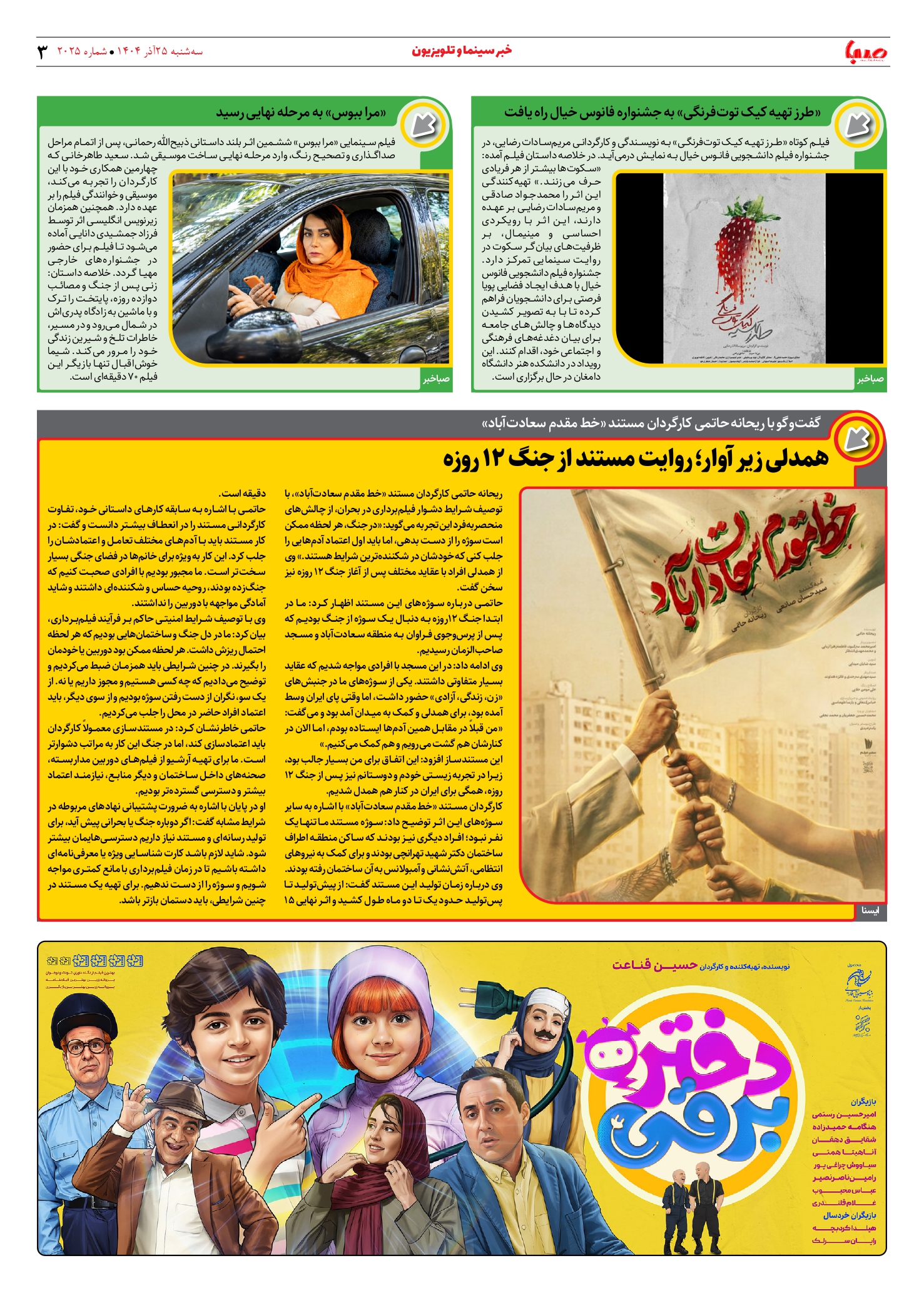 شماره 2025| روزنامه صبا سهشنبه 25 آذر ۱۴۰۴