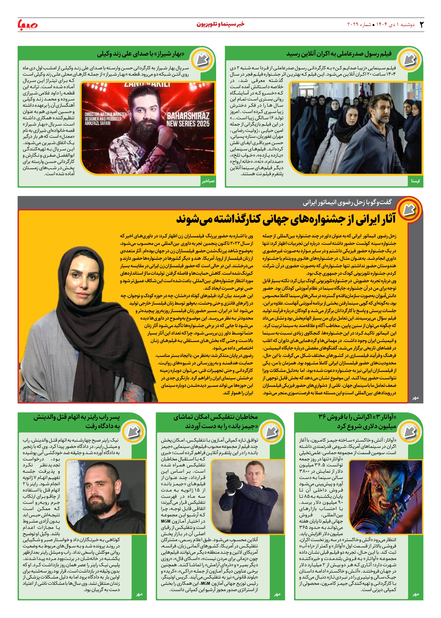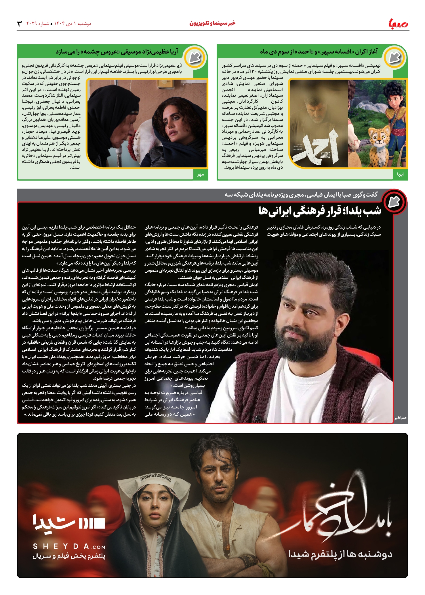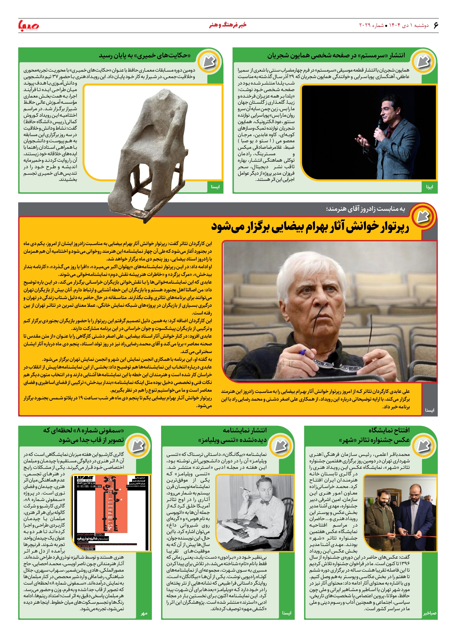 شماره 2029| روزنامه صبا دوشنبه 1 دی ۱۴۰۴