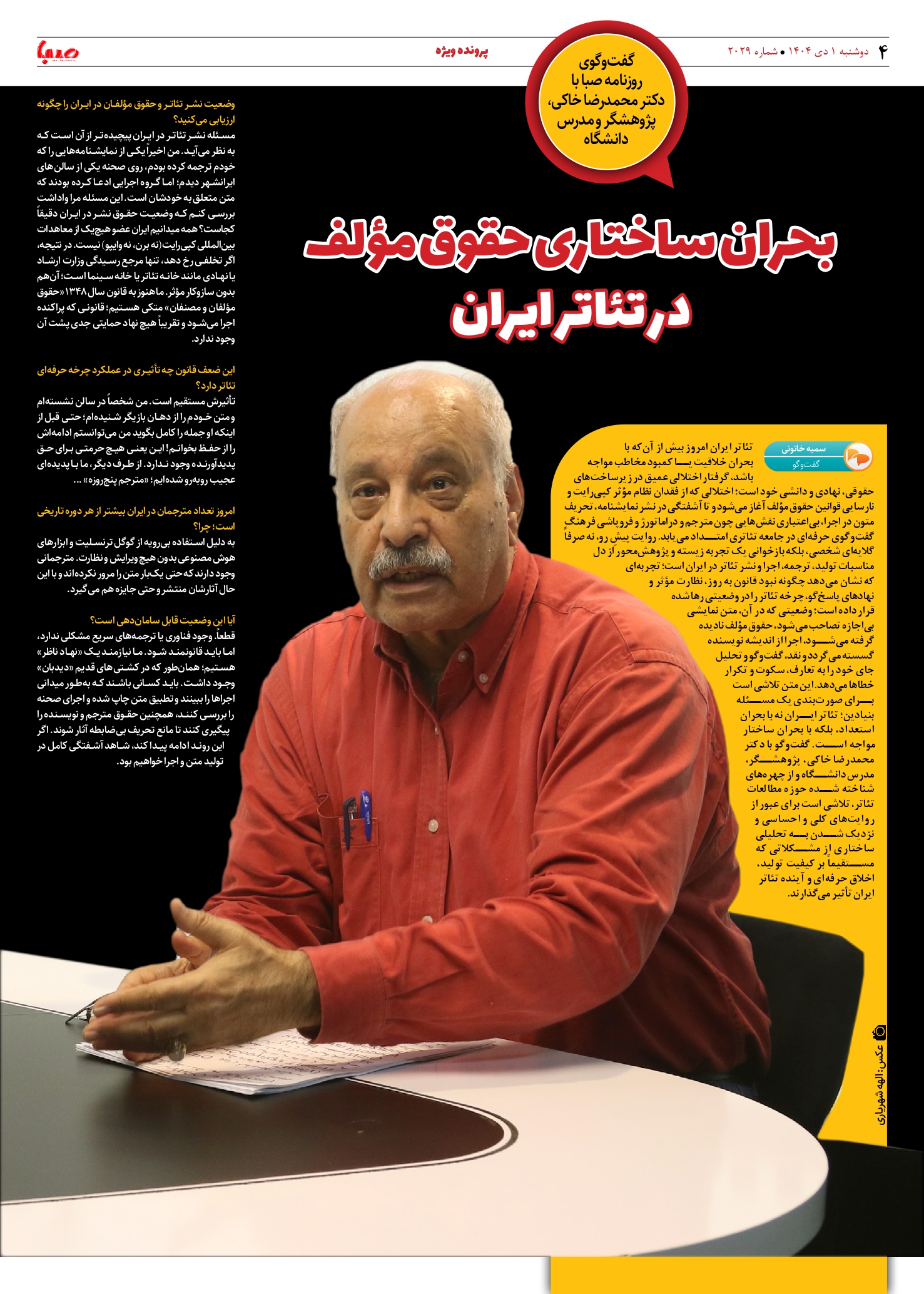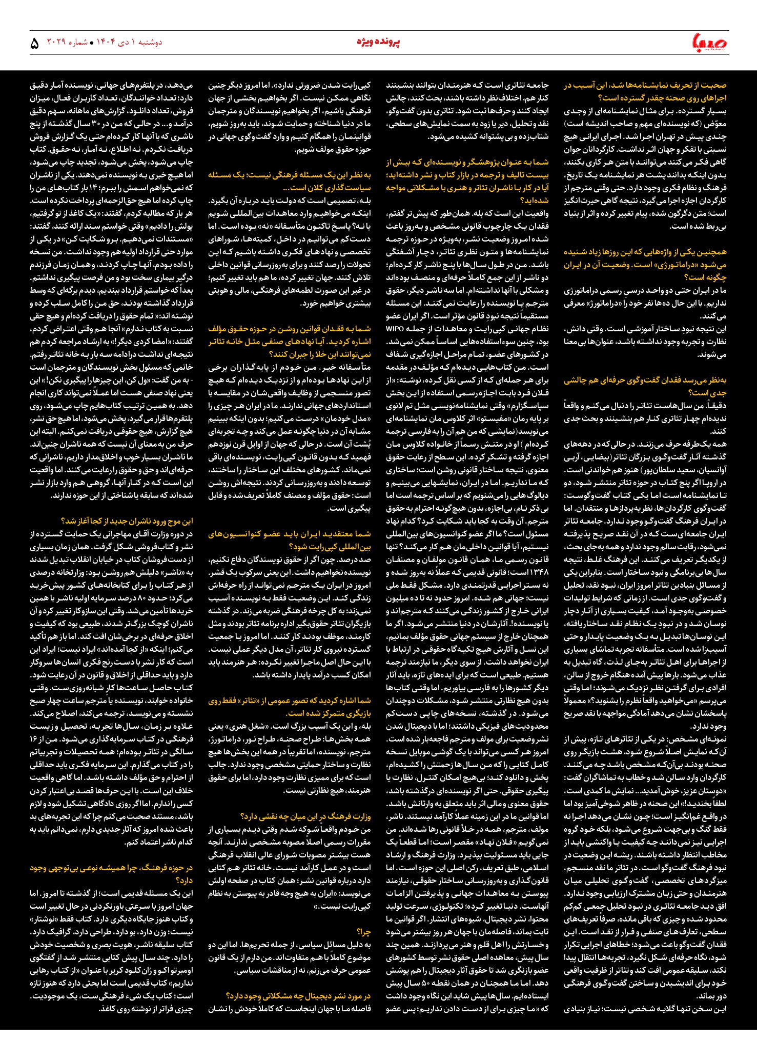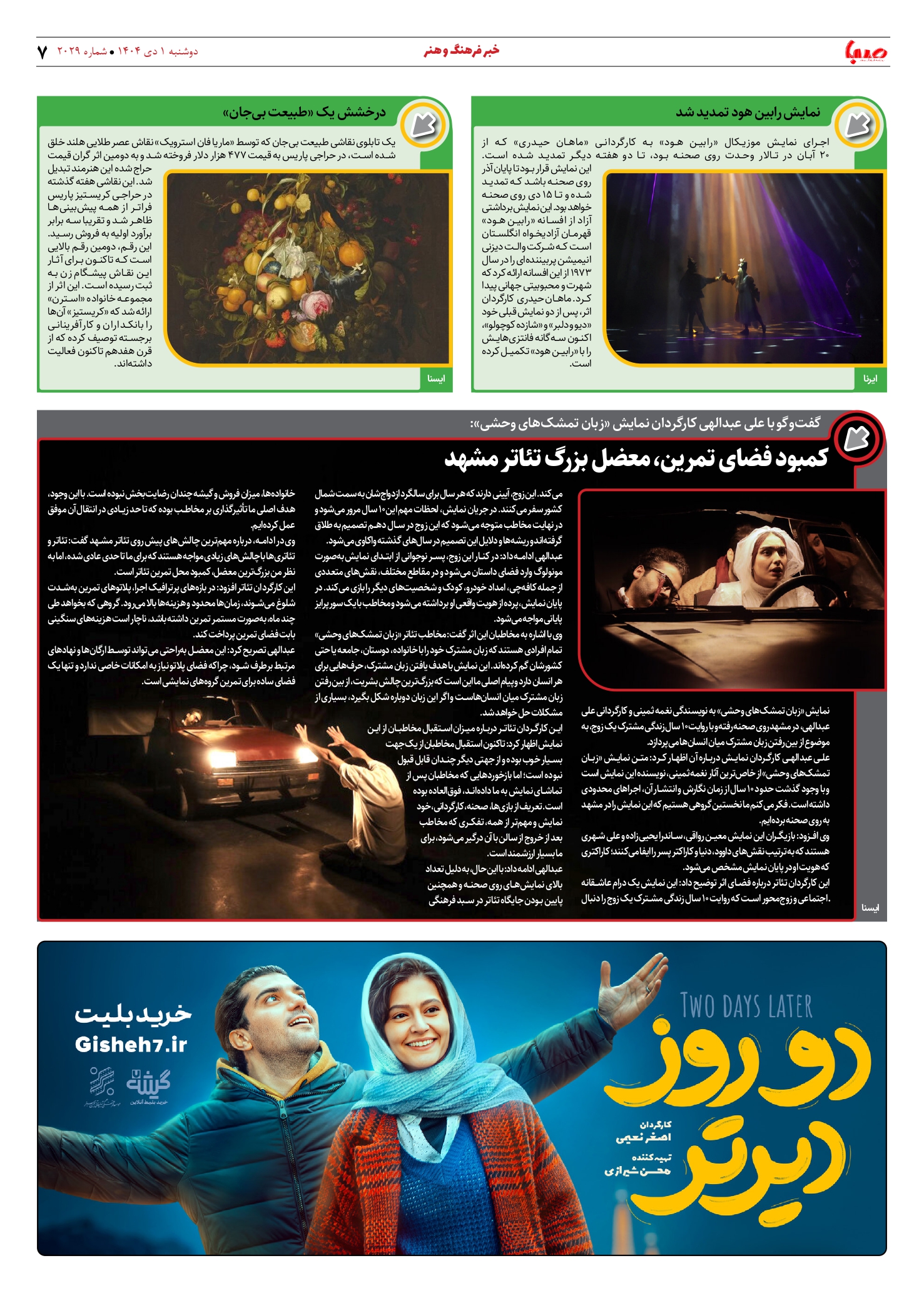 شماره 2029| روزنامه صبا دوشنبه 1 دی ۱۴۰۴
