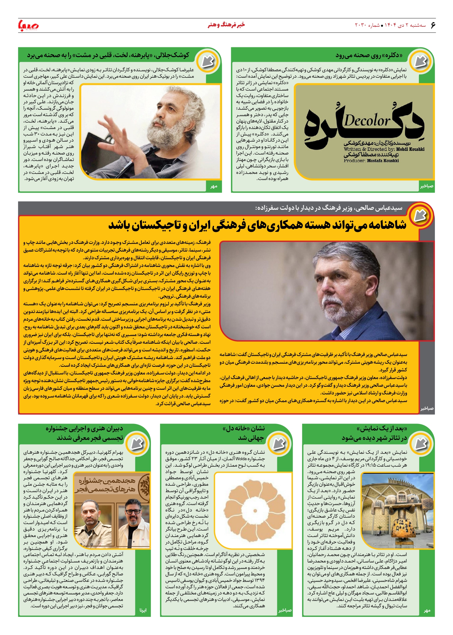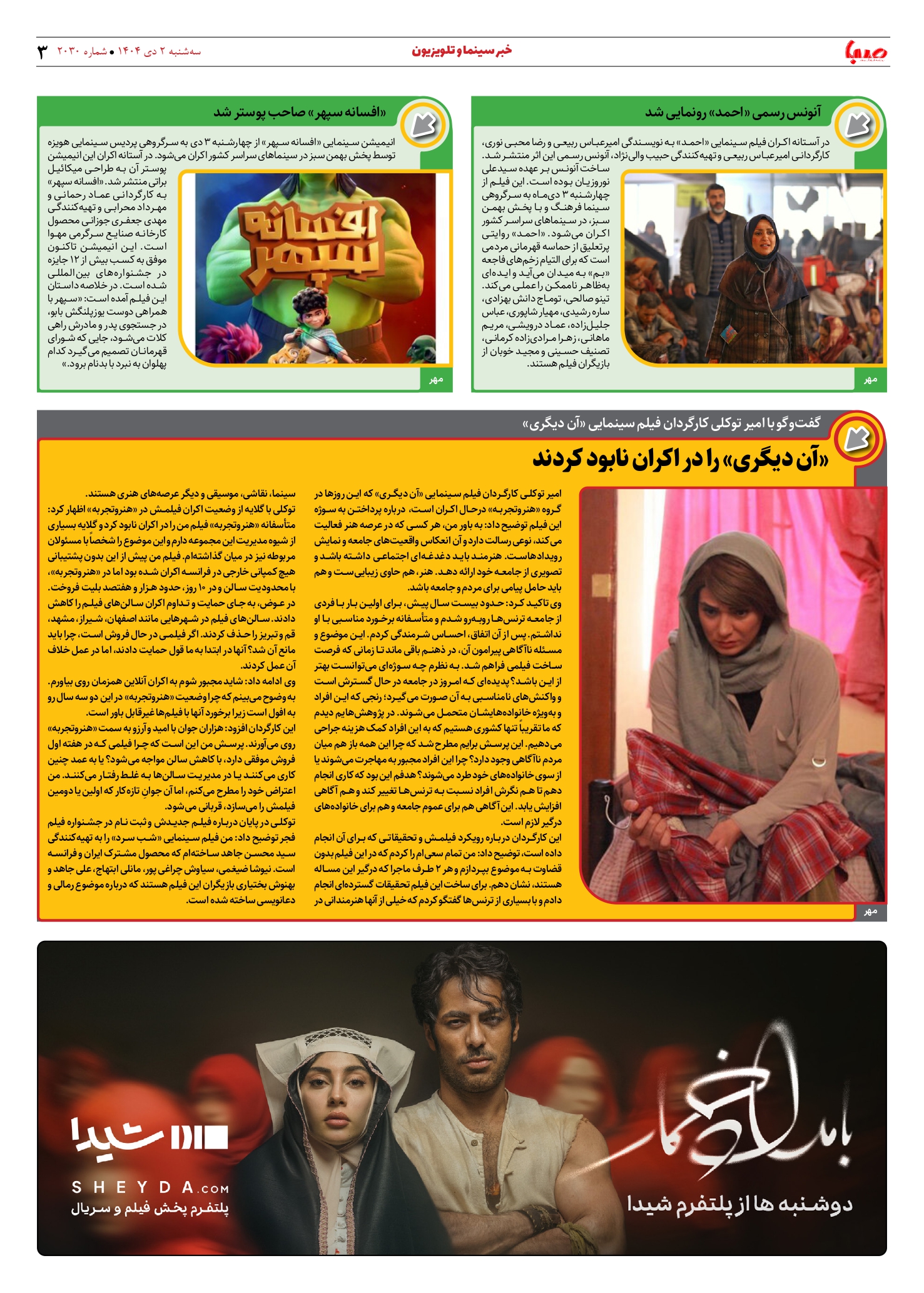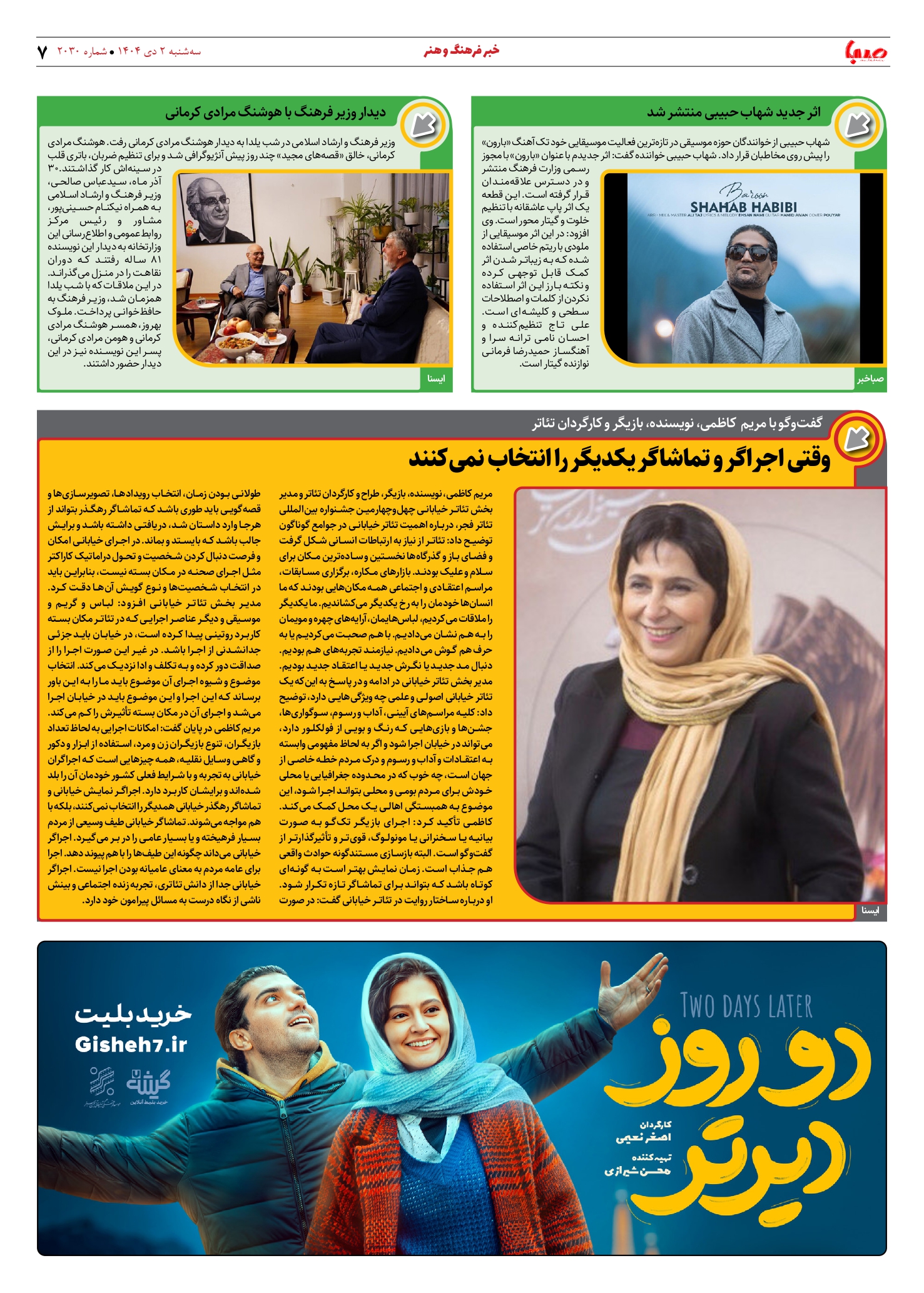 شماره 2030| روزنامه صبا سهشنبه 2 دی ۱۴۰۴