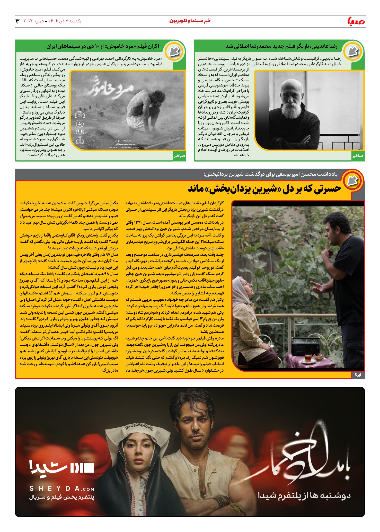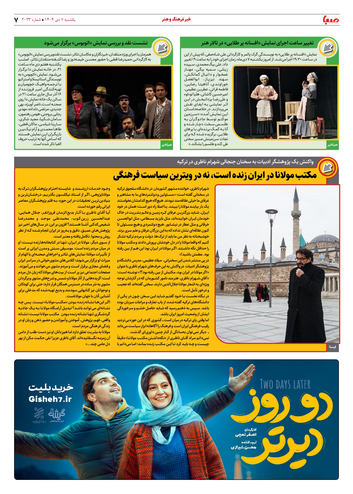 شماره 2033| روزنامه صبا یکشنبه 7 دی ۱۴۰۴